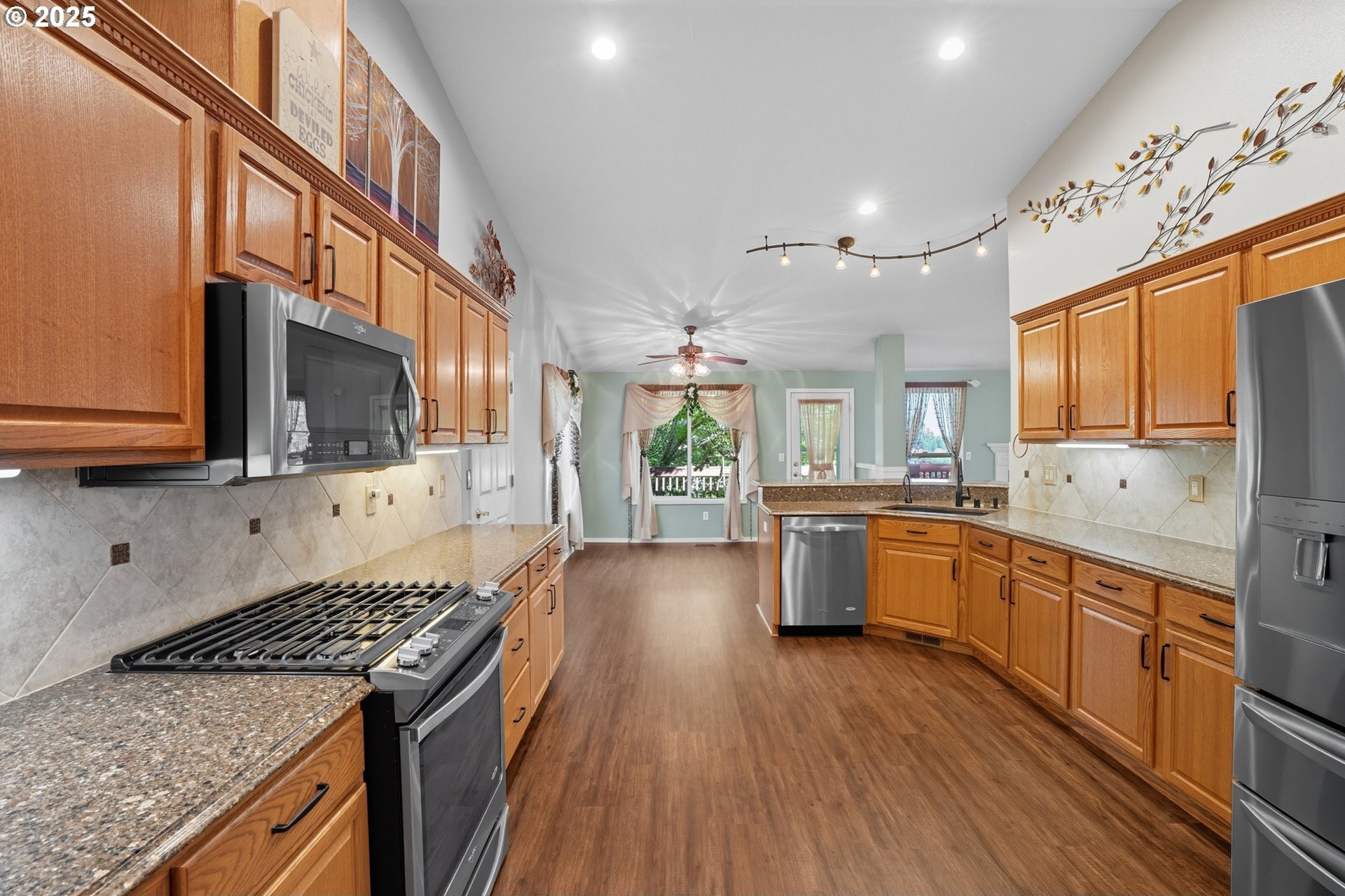 This well-maintained 3813 sq. ft, 5-bedroom home, originally built in 1997, offers a comfortable and functional layout with modern updates throughout. The main floor features a spacious primary bedroom, while four additional bedrooms provide ample space for family or guests, 2 of which have walk in closets. Additionally, one of these bedrooms is located in its own private ADU. It has it's own exterior entrance which has historically been rented for approximately $1,200/month—perfect for additional income or a home office.Situated on a quarter-acre lot, the home boasts a private deck surrounded by trees, creating a peaceful outdoor retreat. With a new roof (2017), new AC (2021), and new furnace (2020), the home is move-in ready and well-equipped for year-round comfort. The 26-foot deep garage and RV parking space with a 30-amp power source is perfect for RV owners or extra storage.Conveniently located just 1.3 miles from the elementary school, 1.4 miles to the middle school, and 1.1 miles to the high school, with downtown LaCenter less than a mile away, this home offers a perfect blend of privacy and accessibility.