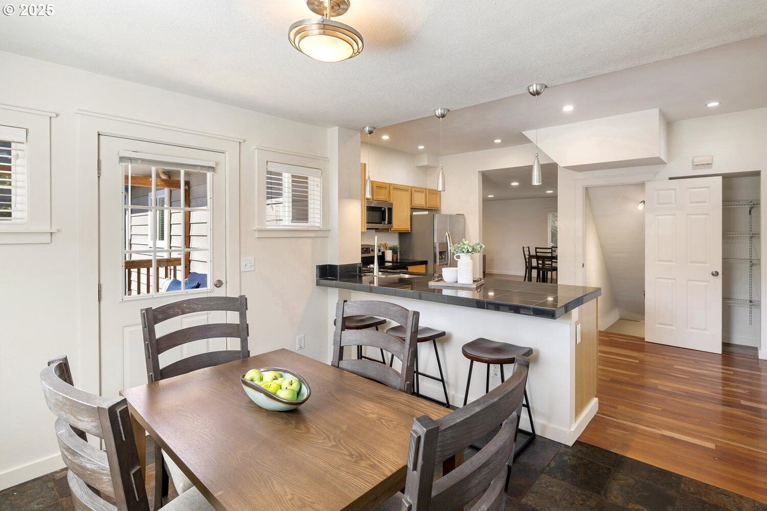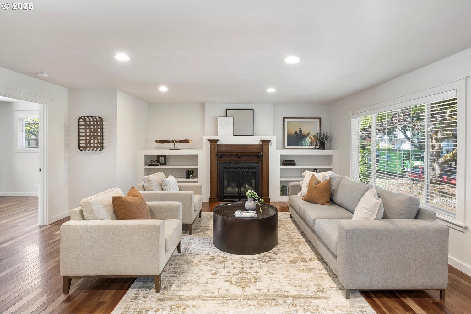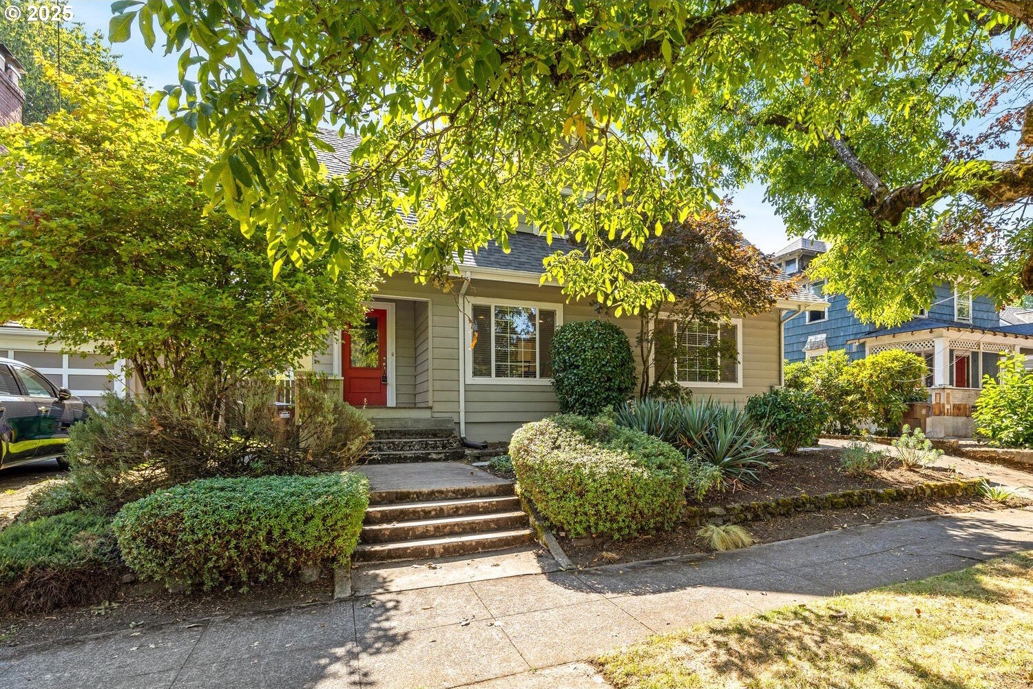 Timeless charm meets thoughtful modern updates in Portland's coveted Overlook neighborhood! Inviting front porch & entry welcome you into a spacious light filled living room with hardwoods & gas fireplace with built-in surround. The kitchen features ample cabinetry, pantry, eating bar & dining area. Main level bedroom with built-ins & hardwoods, attached full bath too. Upstairs you will find a loft atop the stairs with 2 bedrooms & full bathroom. The fully finished lower level brings you to the 4th bedroom, laundry room with 1/2 bath and don't miss the speakeasy style bonus/rec room hidden behind a bookshelf door! Abundant storage space throughout the home. The private backyard is ideal for entertaining with a generous deck off the kitchen, yard & garden space with raised beds. Detached garage with ADU potential! Dedicated driveway offers convenience & privacy. Recent upgrades include all new interior paint, all new carpet, newer gas furnace & central air. Commuting is a breeze with a bike score of 90 & easy access to bus, max lines, freeways & downtown. Just minutes from hip Mississippi, Williams, Alberta Arts, Adidas, parks, favorite cafe's & Portland's finest dining & entertainment. All this on a peaceful street full of history & community. [Home Energy Score = 3. HES Report at https://rpt.greenbuildingregistry.com/hes/OR10241953]