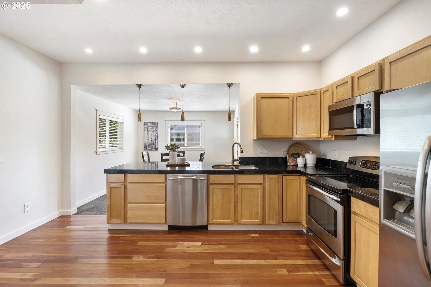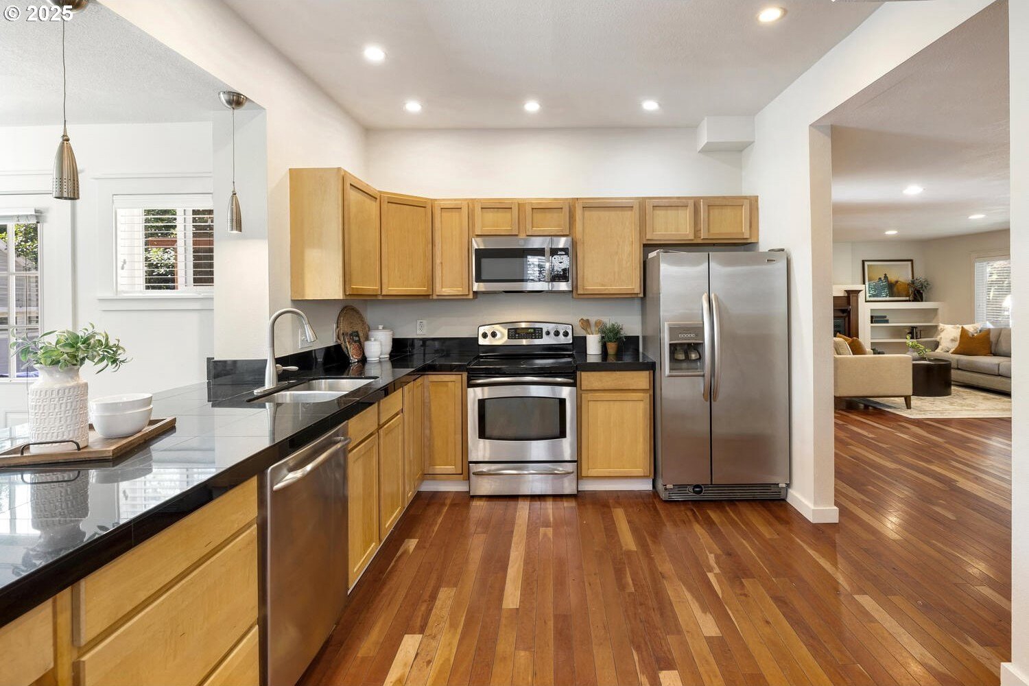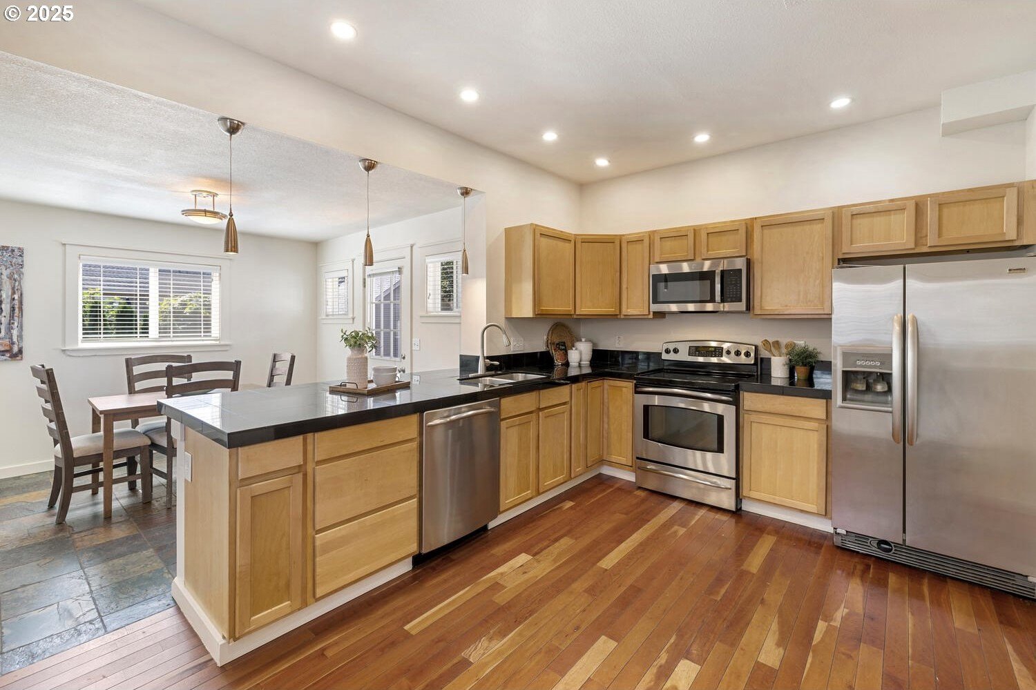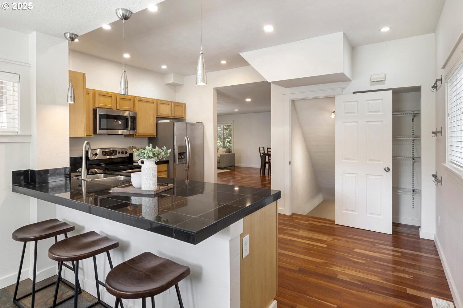 Timeless charm meets thoughtful modern updates in Portland's coveted Overlook neighborhood! Inviting front porch & entry welcome you into a spacious light filled living room with hardwoods & gas fireplace with built-in surround. The kitchen features ample cabinetry, pantry, eating bar & dining area. Main level bedroom with built-ins & hardwoods, attached full bath too. Upstairs you will find a loft atop the stairs with 2 bedrooms & full bathroom. The fully finished lower level brings you to the 4th bedroom, laundry room with 1/2 bath and don't miss the speakeasy style bonus/rec room hidden behind a bookshelf door! Abundant storage space throughout the home. The private backyard is ideal for entertaining with a generous deck off the kitchen, yard & garden space with raised beds. Detached garage with ADU potential! Dedicated driveway offers convenience & privacy. Recent upgrades include all new interior paint, all new carpet, newer gas furnace & central air. Commuting is a breeze with a bike score of 90 & easy access to bus, max lines, freeways & downtown. Just minutes from hip Mississippi, Williams, Alberta Arts, Adidas, parks, favorite cafe's & Portland's finest dining & entertainment. All this on a peaceful street full of history & community. [Home Energy Score = 3. HES Report at https://rpt.greenbuildingregistry.com/hes/OR10241953]