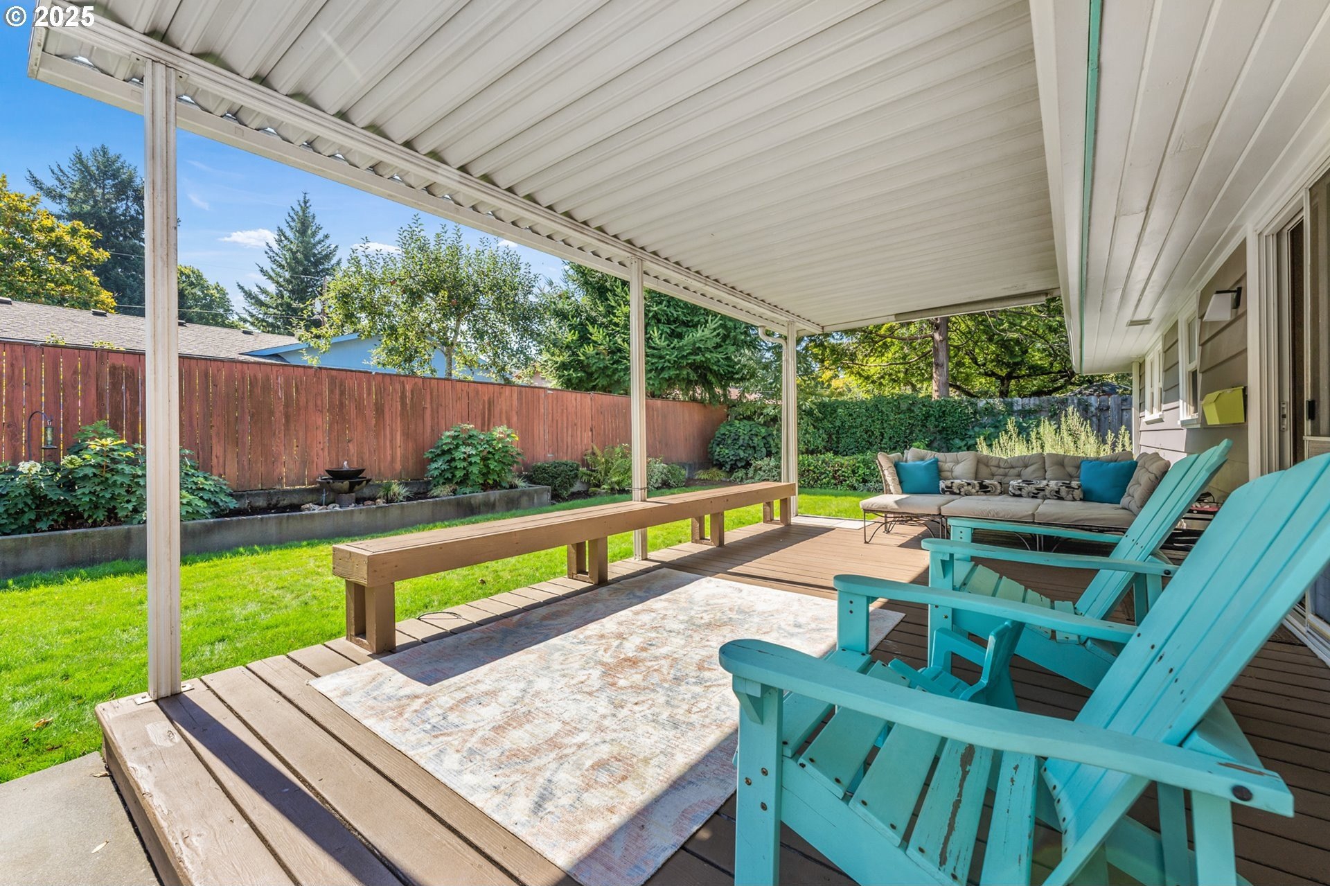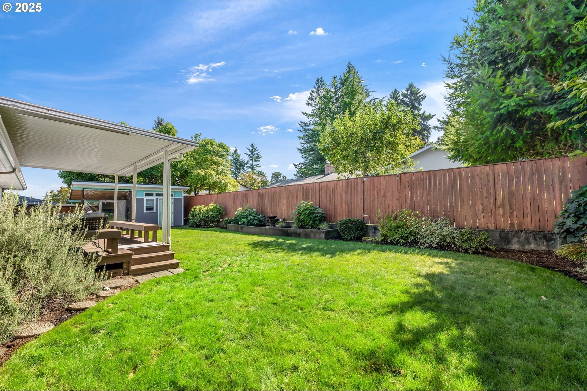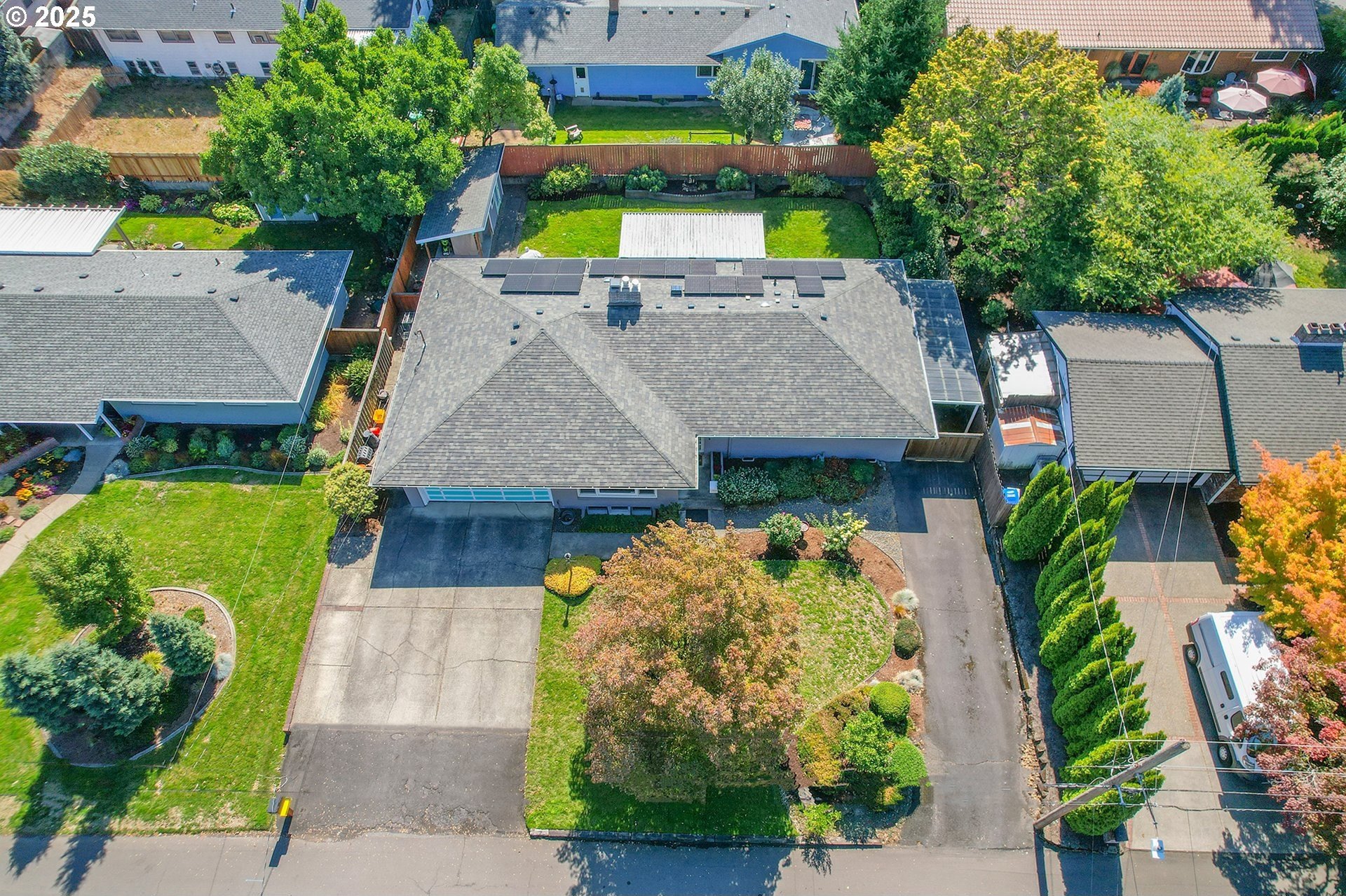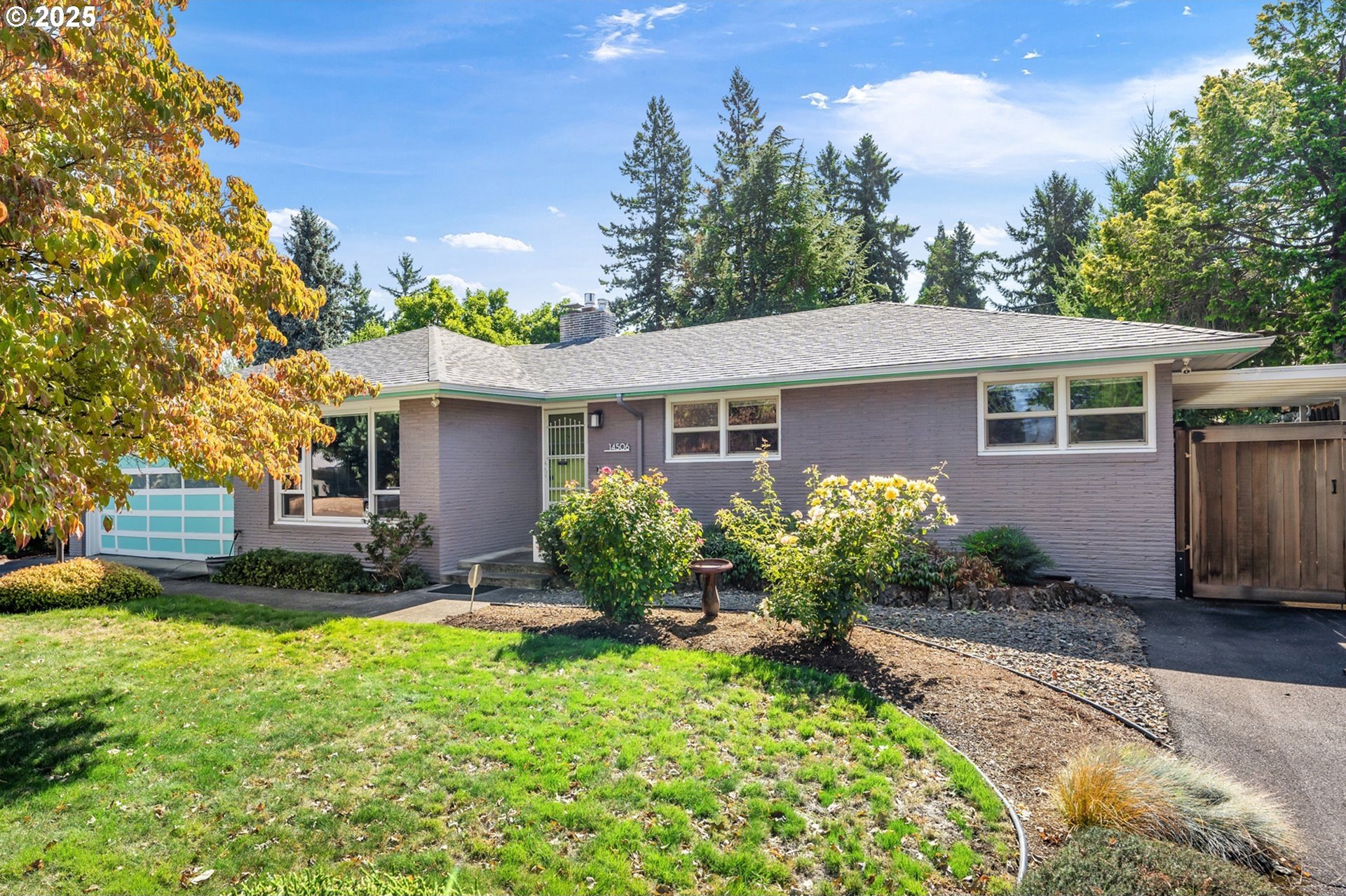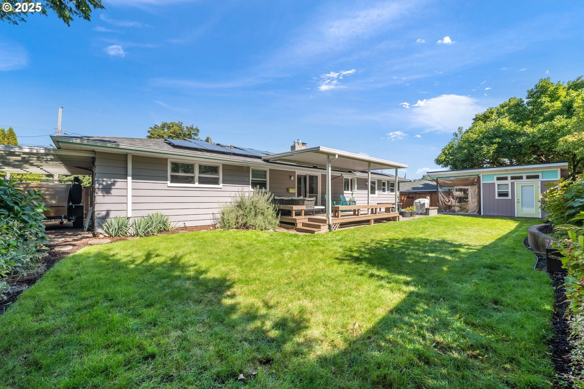 Classic 1958 Mid-Century in the sought after Glendoveer neighborhood. The main floor offers original hardwood floors throughout. A spacious living room is centered around the large picture windows, period fireplace and mahogany paneled feature wall. The adjoining formal dining room provides access to the expansive covered deck and private patio space, perfect for outdoor entertaining. An updated eat-in kitchen offers stainless steel appliances, granite, solid wood cabinets, and a cozy breakfast nook. The bedroom wing provides three bedrooms and two full baths, including the primary suite with a walk-in shower. The half bath and separate laundry room with additional storage completed the main floor. The lower level provides space for a large family/bonus room with a second fireplace, storage and a separate private office area. The home is situated on a beautifully landscaped 0.20 acre fenced lot with a second driveway and covered RV parking. The back yard also offers a studio sized outbuilding with power. Just a short walk to the Glendoveer Golf Course's walking trails and onsite restaurant. Mechanical updates include newer heat pump and mini-split HVAC system, PEX plumbing, solar attic fan, newer windows and a new solar power system. [Home Energy Score = 2. HES Report at https://rpt.greenbuildingregistry.com/hes/OR10041592]