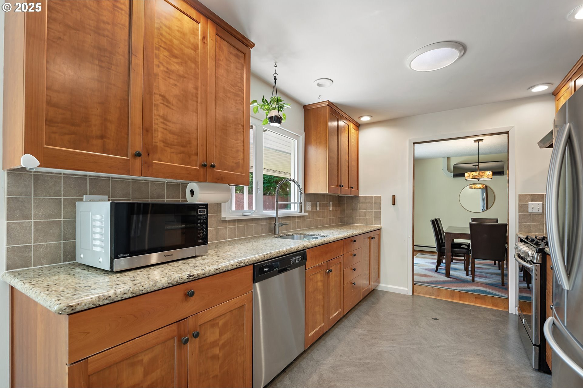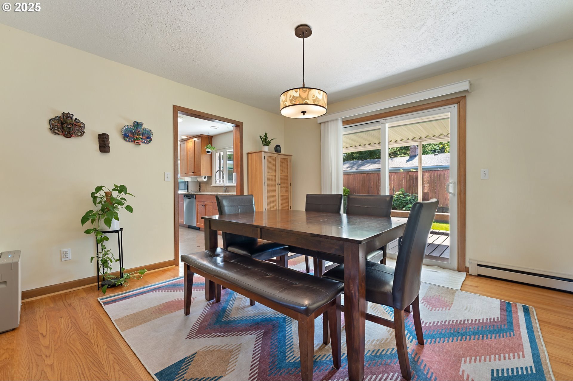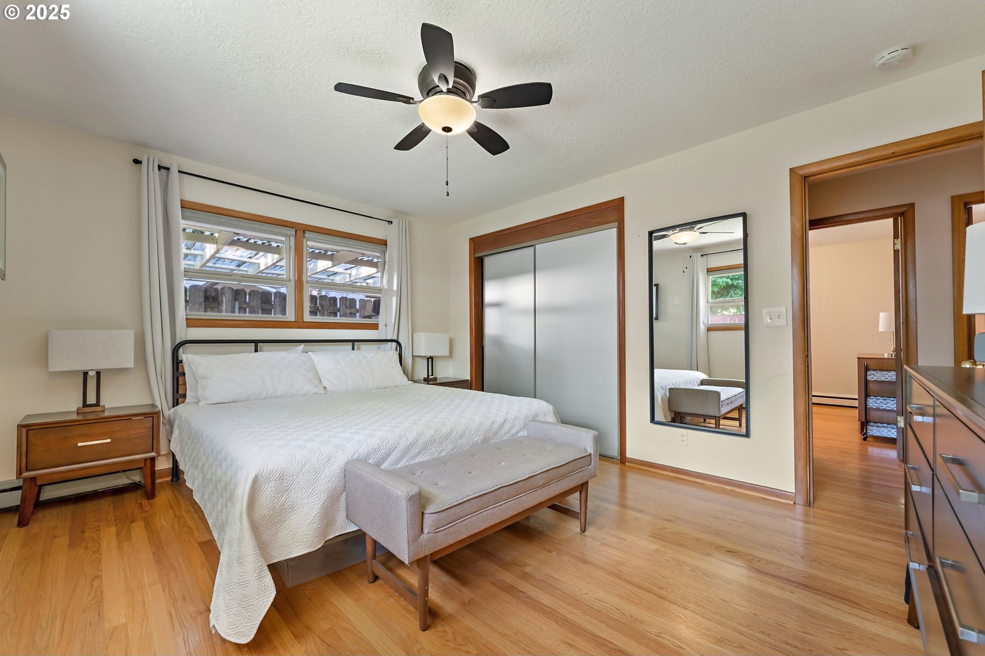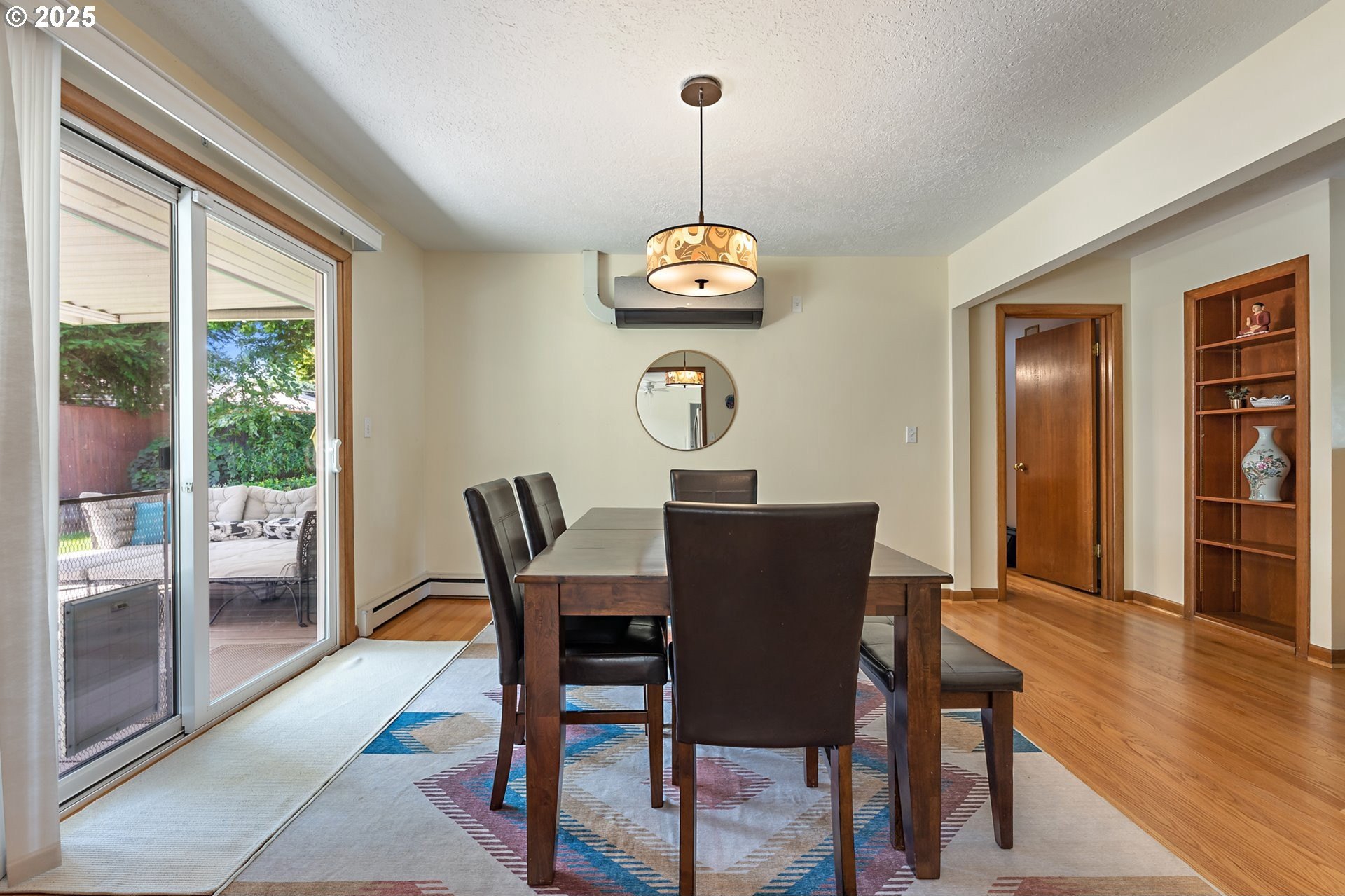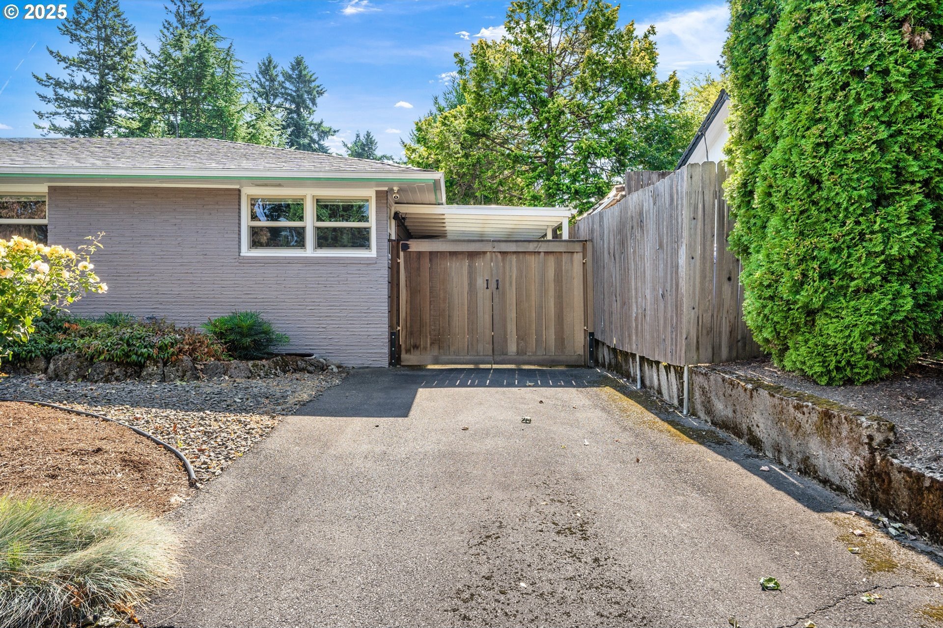 Classic 1958 Mid-Century in the sought after Glendoveer neighborhood. The main floor offers original hardwood floors throughout. A spacious living room is centered around the large picture windows, period fireplace and mahogany paneled feature wall. The adjoining formal dining room provides access to the expansive covered deck and private patio space, perfect for outdoor entertaining. An updated eat-in kitchen offers stainless steel appliances, granite, solid wood cabinets, and a cozy breakfast nook. The bedroom wing provides three bedrooms and two full baths, including the primary suite with a walk-in shower. The half bath and separate laundry room with additional storage completed the main floor. The lower level provides space for a large family/bonus room with a second fireplace, storage and a separate private office area. The home is situated on a beautifully landscaped 0.20 acre fenced lot with a second driveway and covered RV parking. The back yard also offers a studio sized outbuilding with power. Just a short walk to the Glendoveer Golf Course's walking trails and onsite restaurant. Mechanical updates include newer heat pump and mini-split HVAC system, PEX plumbing, solar attic fan, newer windows and a new solar power system. [Home Energy Score = 2. HES Report at https://rpt.greenbuildingregistry.com/hes/OR10041592]