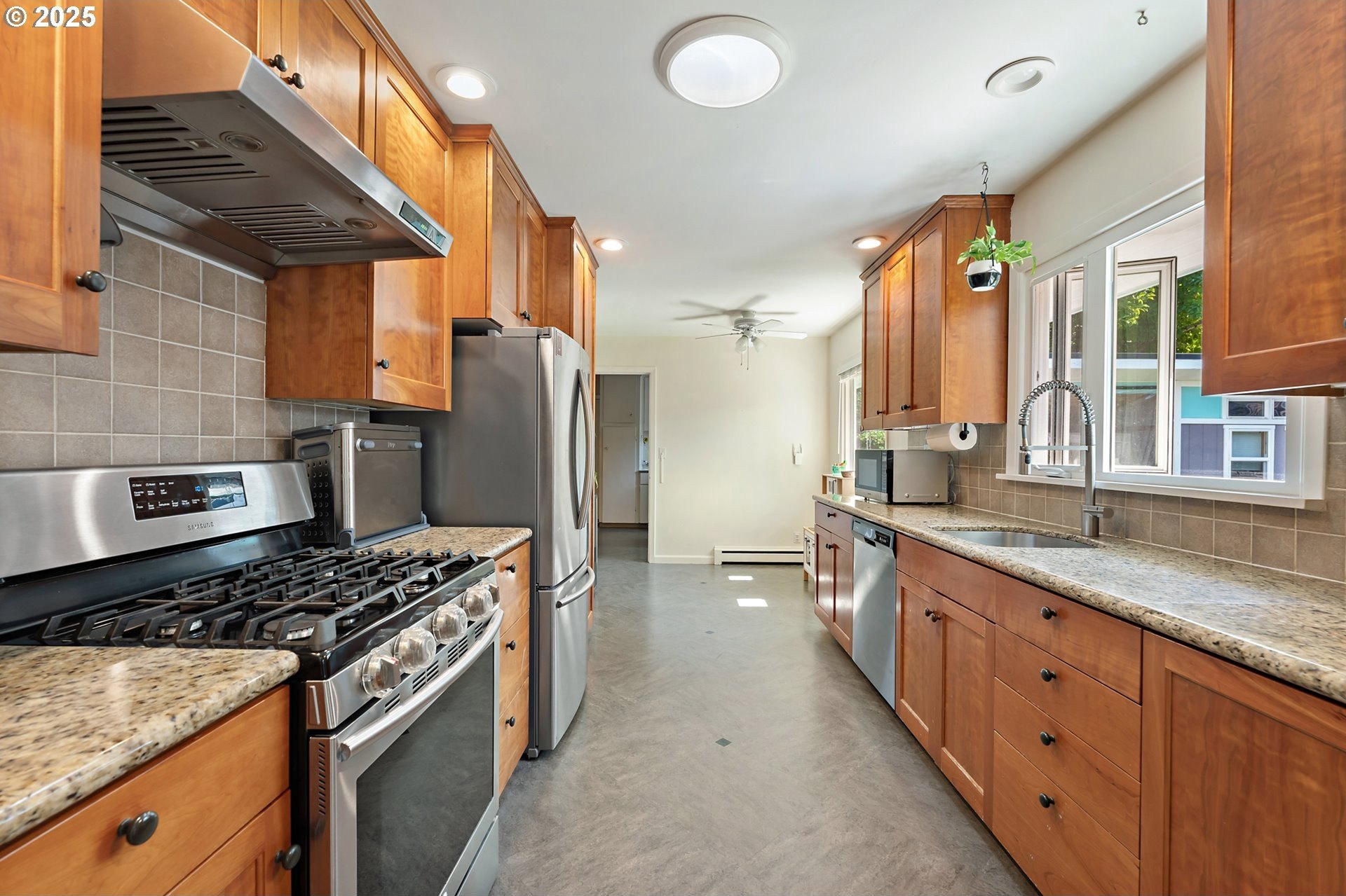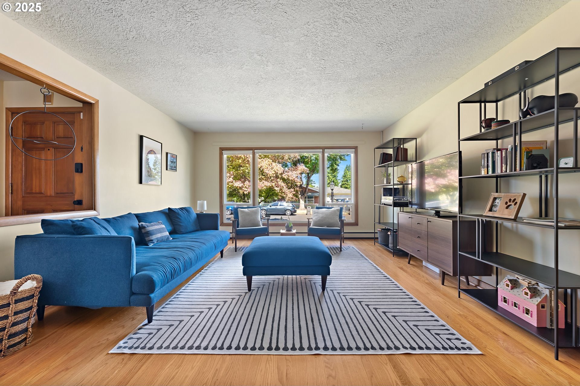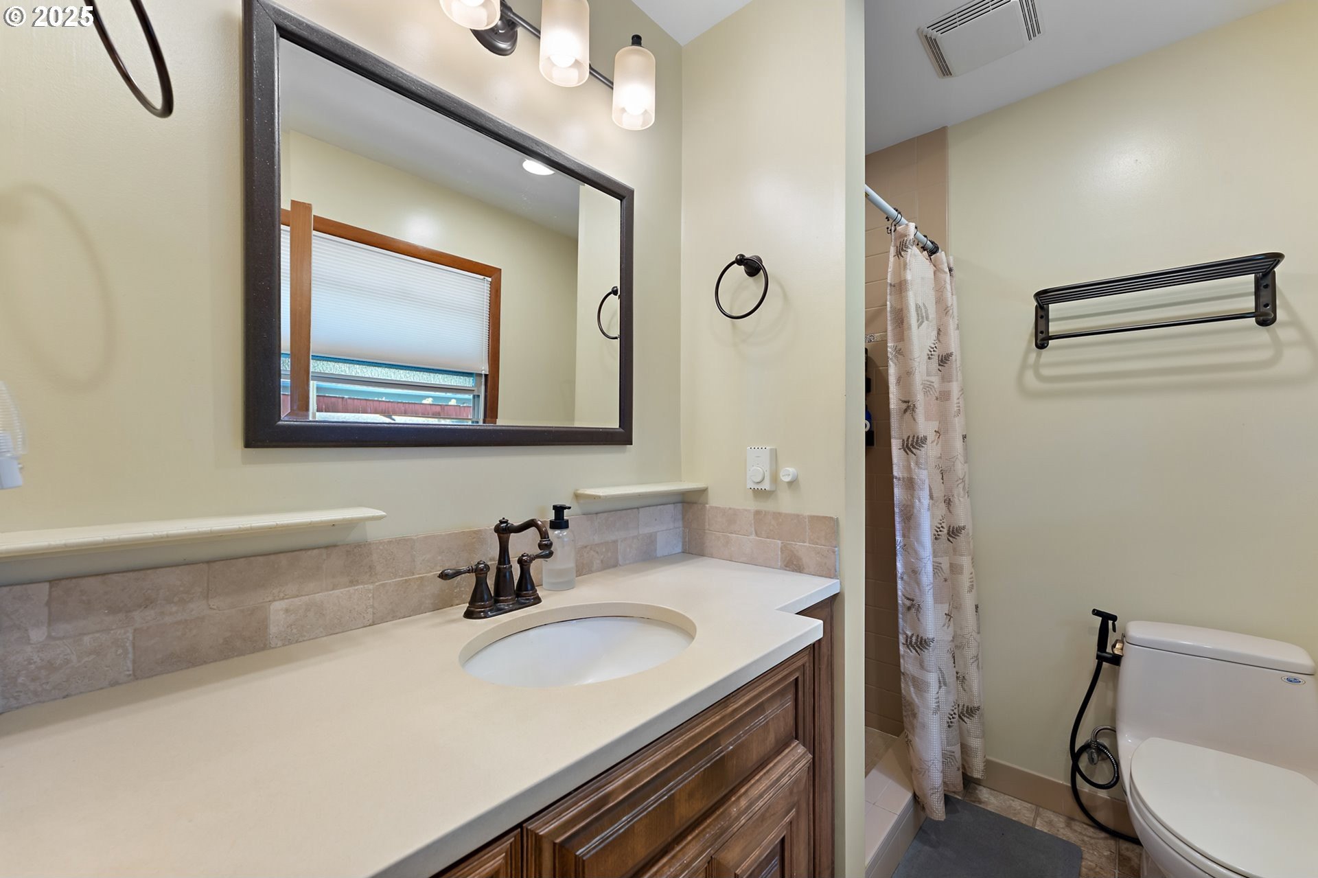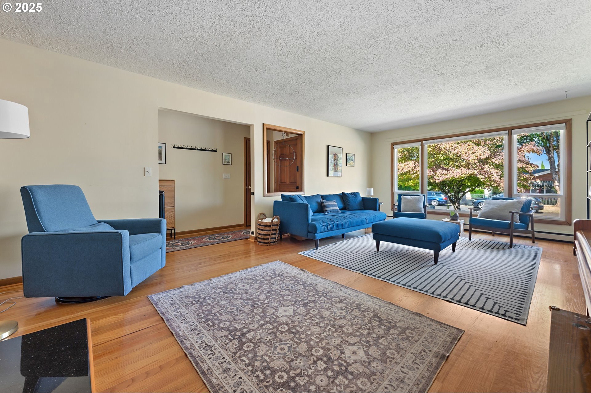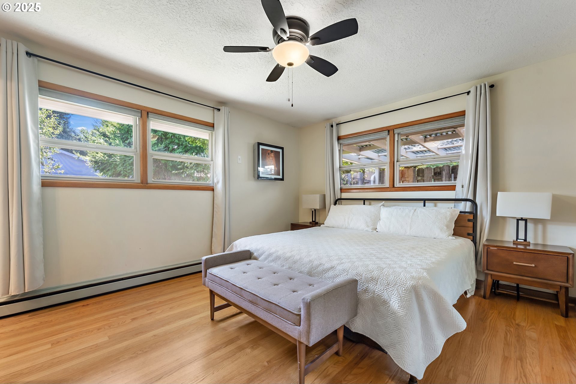 Classic 1958 Mid-Century in the sought after Glendoveer neighborhood. The main floor offers original hardwood floors throughout. A spacious living room is centered around the large picture windows, period fireplace and mahogany paneled feature wall. The adjoining formal dining room provides access to the expansive covered deck and private patio space, perfect for outdoor entertaining. An updated eat-in kitchen offers stainless steel appliances, granite, solid wood cabinets, and a cozy breakfast nook. The bedroom wing provides three bedrooms and two full baths, including the primary suite with a walk-in shower. The half bath and separate laundry room with additional storage completed the main floor. The lower level provides space for a large family/bonus room with a second fireplace, storage and a separate private office area. The home is situated on a beautifully landscaped 0.20 acre fenced lot with a second driveway and covered RV parking. The back yard also offers a studio sized outbuilding with power. Just a short walk to the Glendoveer Golf Course's walking trails and onsite restaurant. Mechanical updates include newer heat pump and mini-split HVAC system, PEX plumbing, solar attic fan, newer windows and a new solar power system. [Home Energy Score = 2. HES Report at https://rpt.greenbuildingregistry.com/hes/OR10041592]
