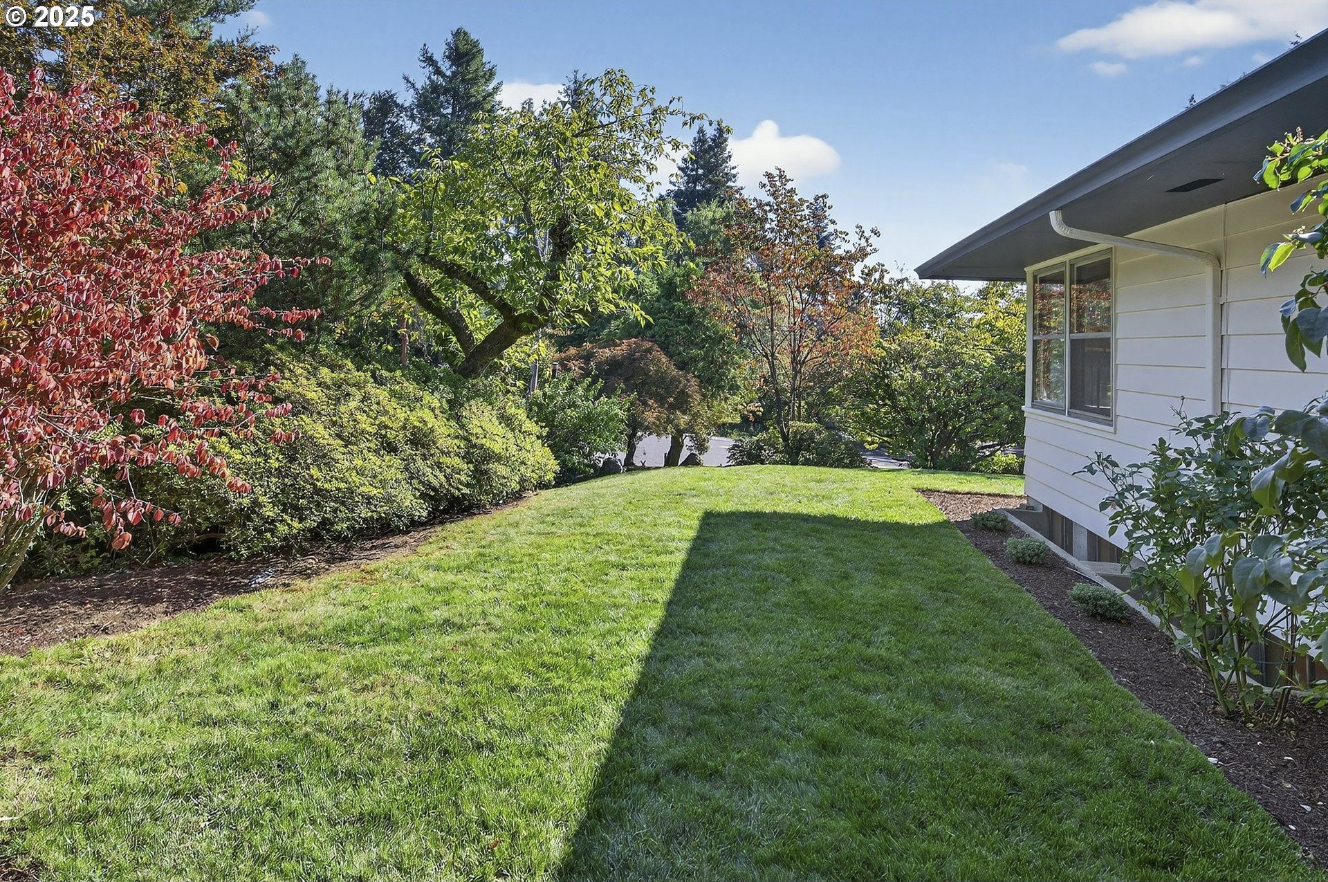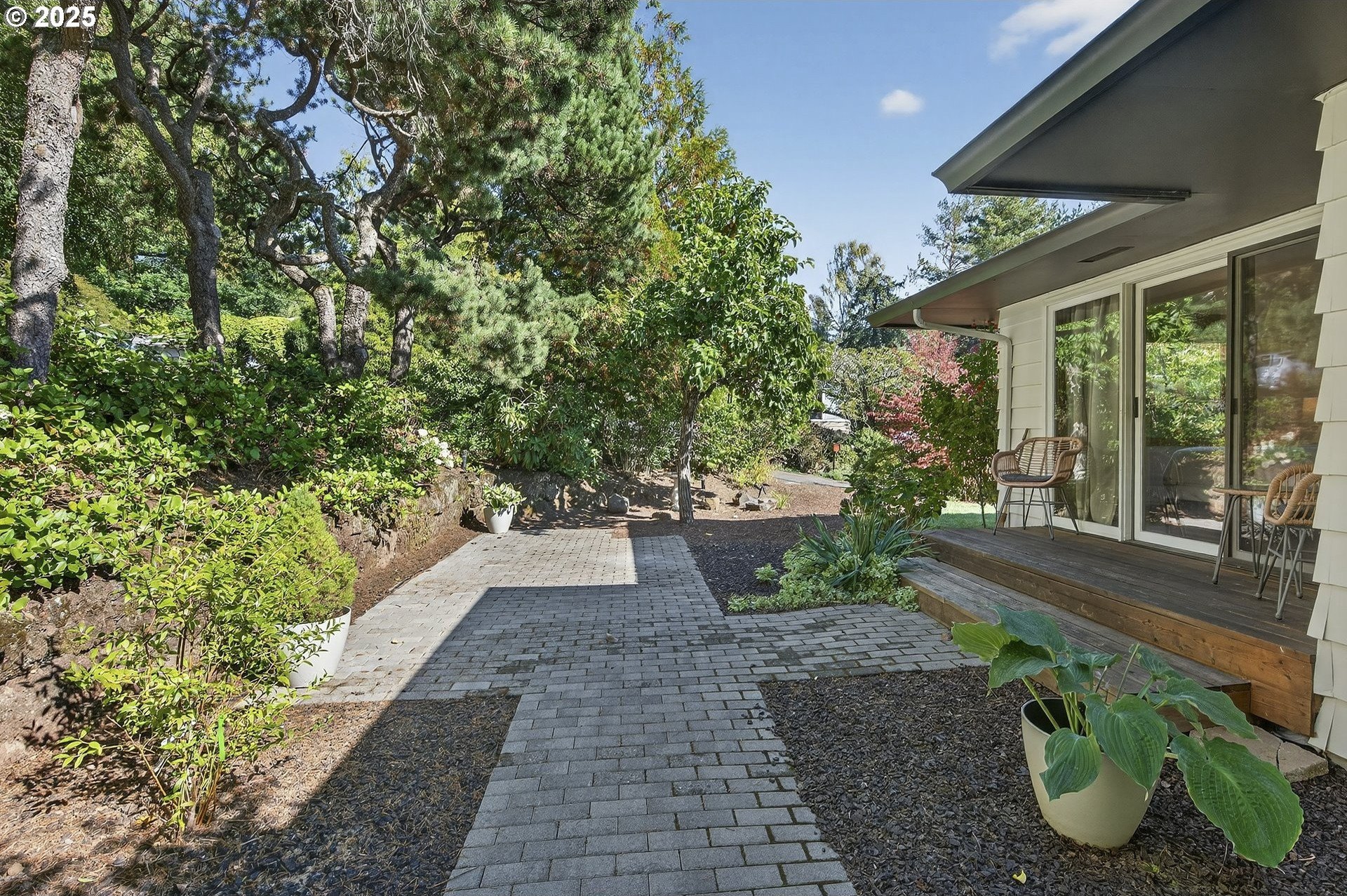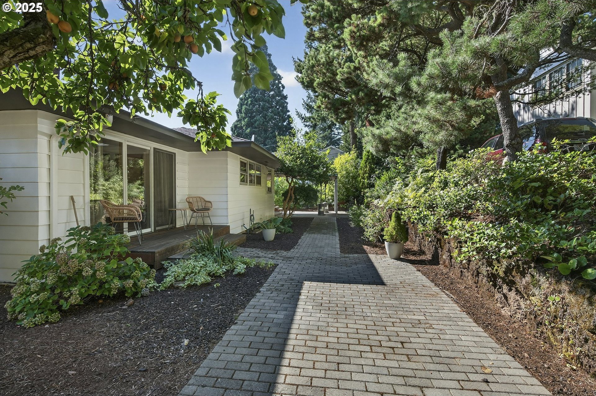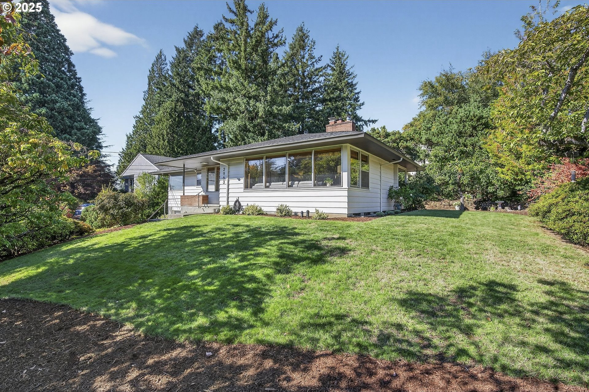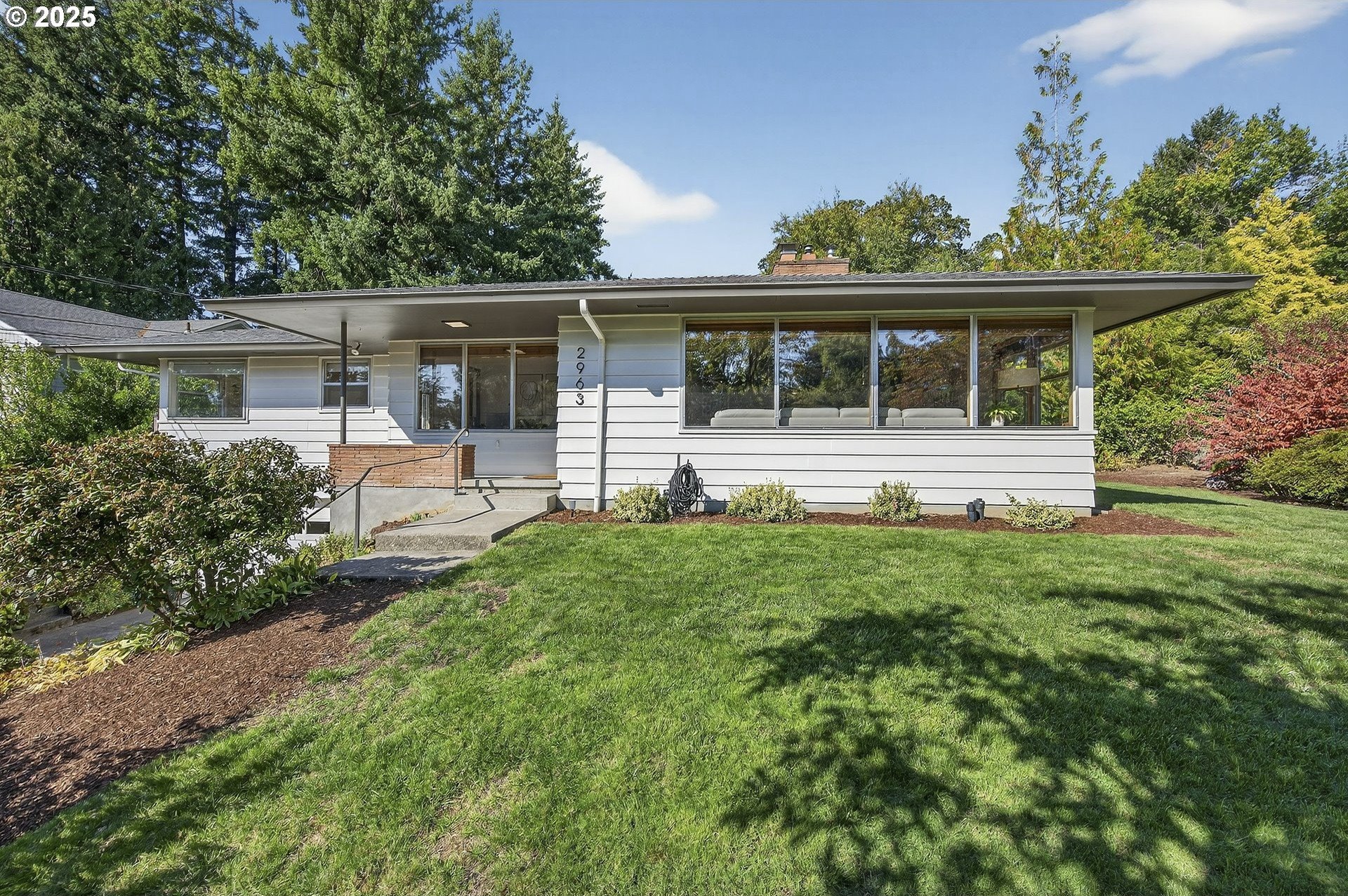 There's so much to love about this mid-century gem in Portland's sought-after Hillsdale neighborhood! Set up off the street, on a corner lot w/ beautiful, mature landscaping on all sides, this home enjoys great privacy and natural light. The living room is unlike any other. It's incredibly spacious, w/ fun, mid-century built-ins and design details, beautiful hardwood floors and lots of great, big, picture windows. The floor plan and positioning of this home is pretty perfect, too. The main floor puts living, dining and kitchen at the front of the home with 3 bedrooms and a full bathroom in the back and easy access to the backyard and patio from the kitchen and one of the bedrooms. Every window enjoys attractive views of the mature, variegated landscaping that surrounds the house. The light, bright lower-level has nice, tall ceilings and includes a big family room, 4th bedroom, 2nd full bathroom and great storage. Well cared for over the years, with valuable system improvements and thoughtful updates aligned with mid-century character and design. Recent updates include: lower-level bathroom remodel (incl new plumbing, shower pan, shower tile, and vanity - '25), new main water line ('25), new electric water heater ('24), new electric panel ('24), EV charging outlet ('24), generator outlet ('24), and new sewer line ('22). The backyard features a spacious covered patio off of the kitchen for year-round use and enjoyment, a covered deck off of one of the bedrooms, blueberry bushes, a Japanese nashi pear tree, blooming camellia bushes and so much more! With its super central location, this home enjoys several, quick commute options into downtown, NW, Lake Oswego and Beaverton. OHSU is just up the hill and a network of quiet, forested, nature trails minutes away. [Home Energy Score = 3. HES Report at https://rpt.greenbuildingregistry.com/hes/OR10134883]