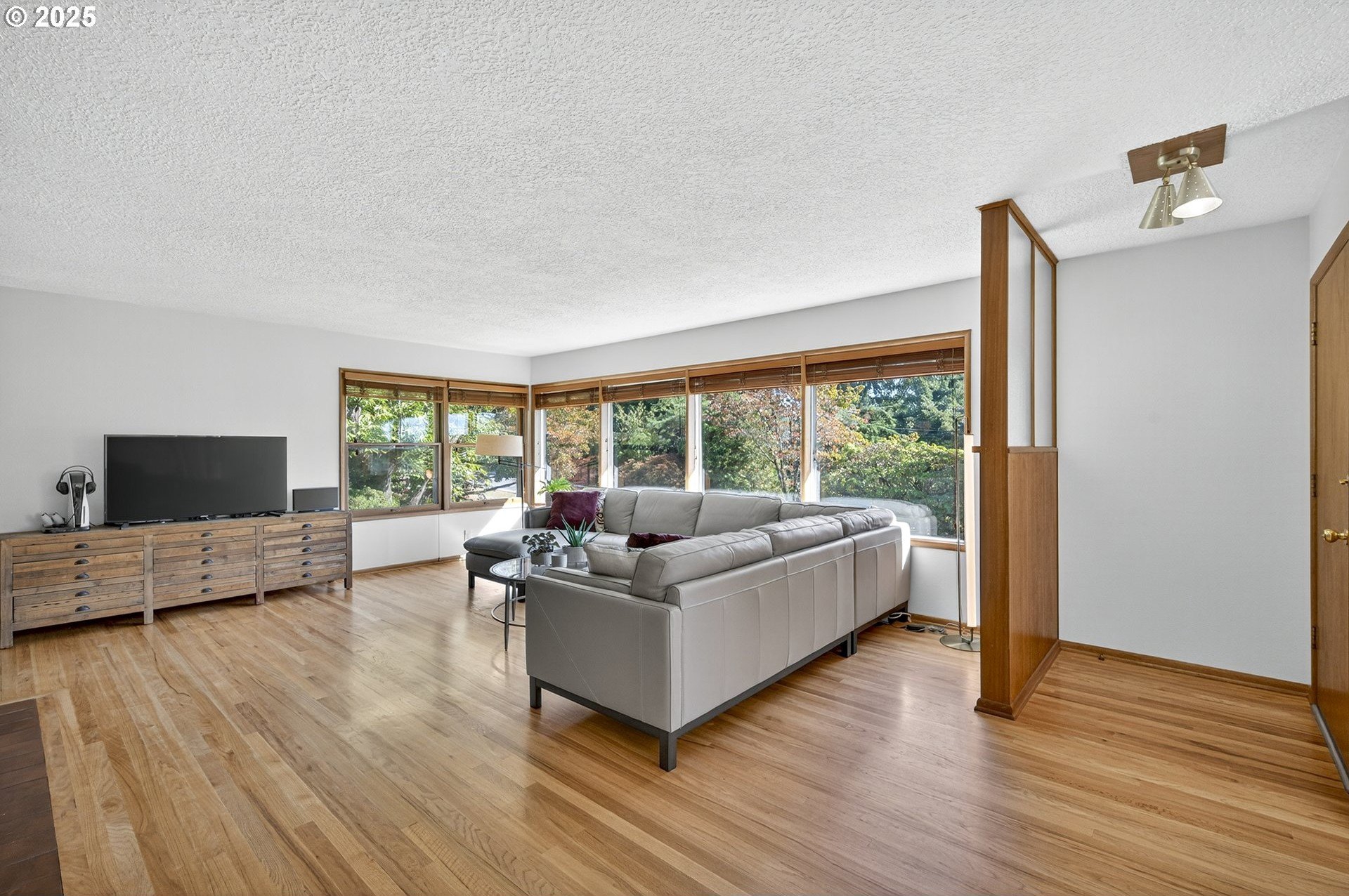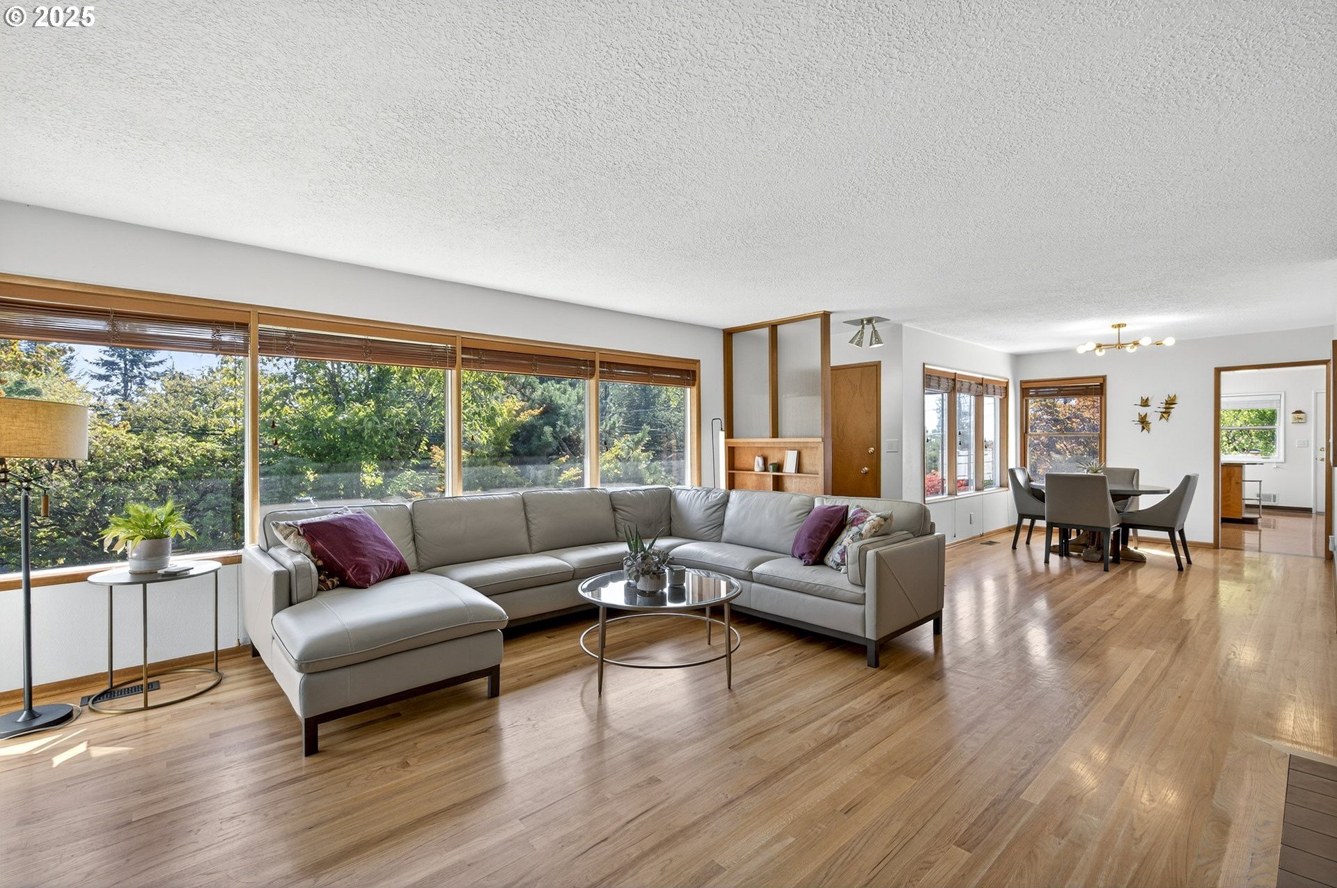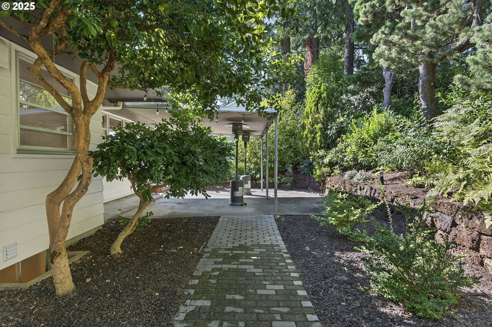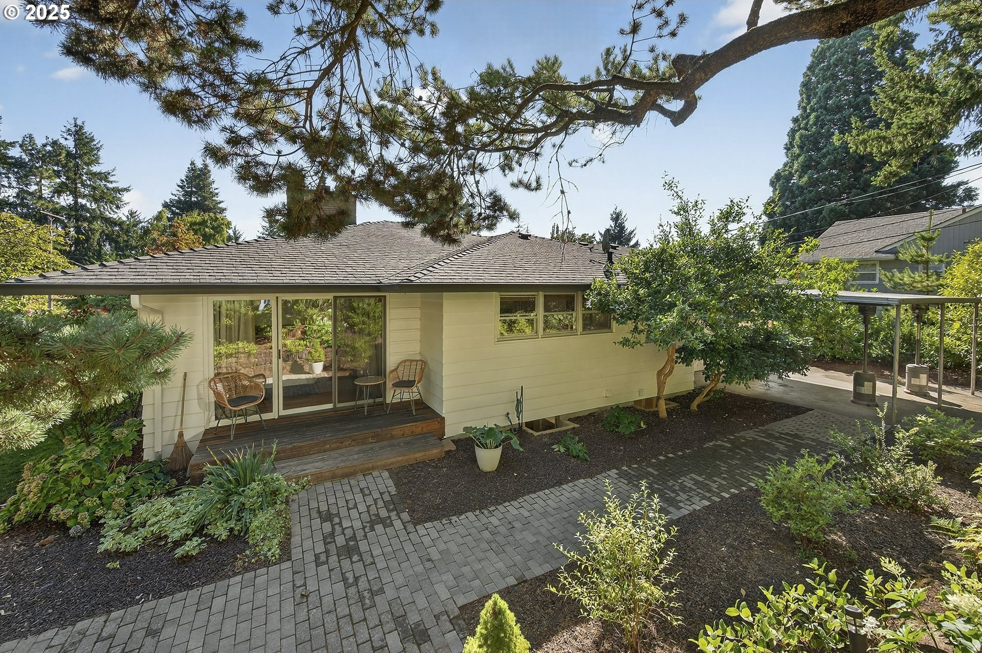 There's so much to love about this mid-century gem in Portland's sought-after Hillsdale neighborhood! Set up off the street, on a corner lot w/ beautiful, mature landscaping on all sides, this home enjoys great privacy and natural light. The living room is unlike any other. It's incredibly spacious, w/ fun, mid-century built-ins and design details, beautiful hardwood floors and lots of great, big, picture windows. The floor plan and positioning of this home is pretty perfect, too. The main floor puts living, dining and kitchen at the front of the home with 3 bedrooms and a full bathroom in the back and easy access to the backyard and patio from the kitchen and one of the bedrooms. Every window enjoys attractive views of the mature, variegated landscaping that surrounds the house. The light, bright lower-level has nice, tall ceilings and includes a big family room, 4th bedroom, 2nd full bathroom and great storage. Well cared for over the years, with valuable system improvements and thoughtful updates aligned with mid-century character and design. Recent updates include: lower-level bathroom remodel (incl new plumbing, shower pan, shower tile, and vanity - '25), new main water line ('25), new electric water heater ('24), new electric panel ('24), EV charging outlet ('24), generator outlet ('24), and new sewer line ('22). The backyard features a spacious covered patio off of the kitchen for year-round use and enjoyment, a covered deck off of one of the bedrooms, blueberry bushes, a Japanese nashi pear tree, blooming camellia bushes and so much more! With its super central location, this home enjoys several, quick commute options into downtown, NW, Lake Oswego and Beaverton. OHSU is just up the hill and a network of quiet, forested, nature trails minutes away. [Home Energy Score = 3. HES Report at https://rpt.greenbuildingregistry.com/hes/OR10134883]