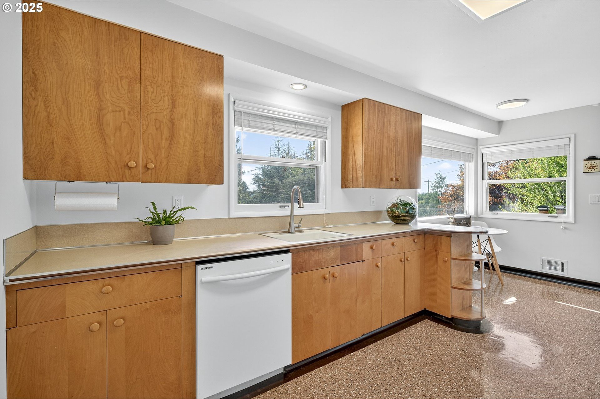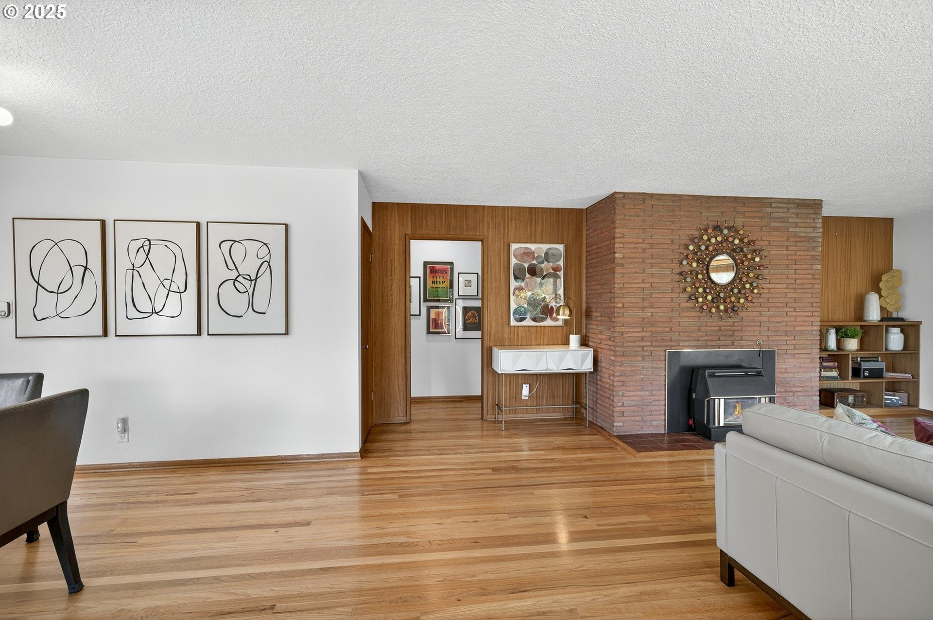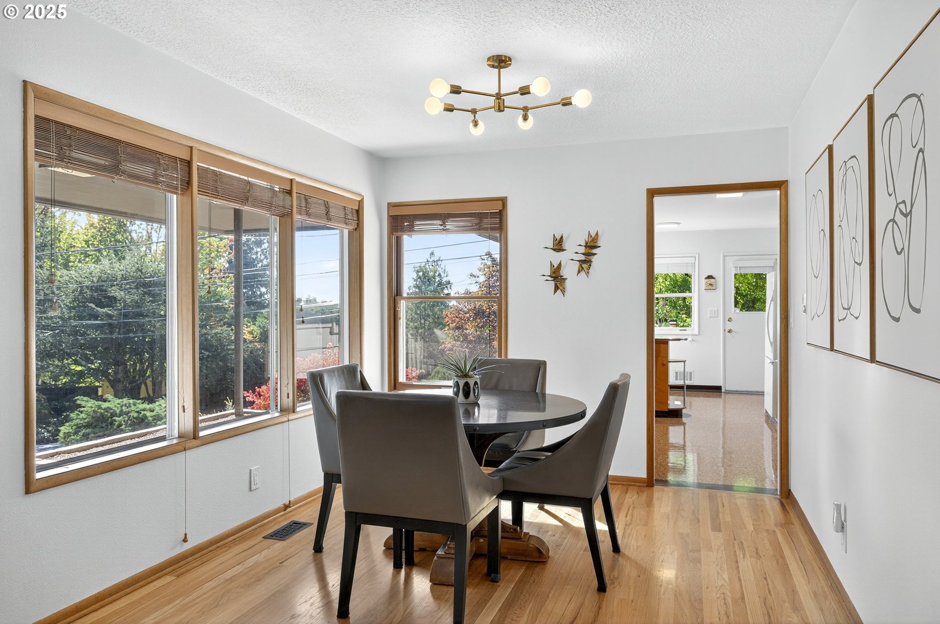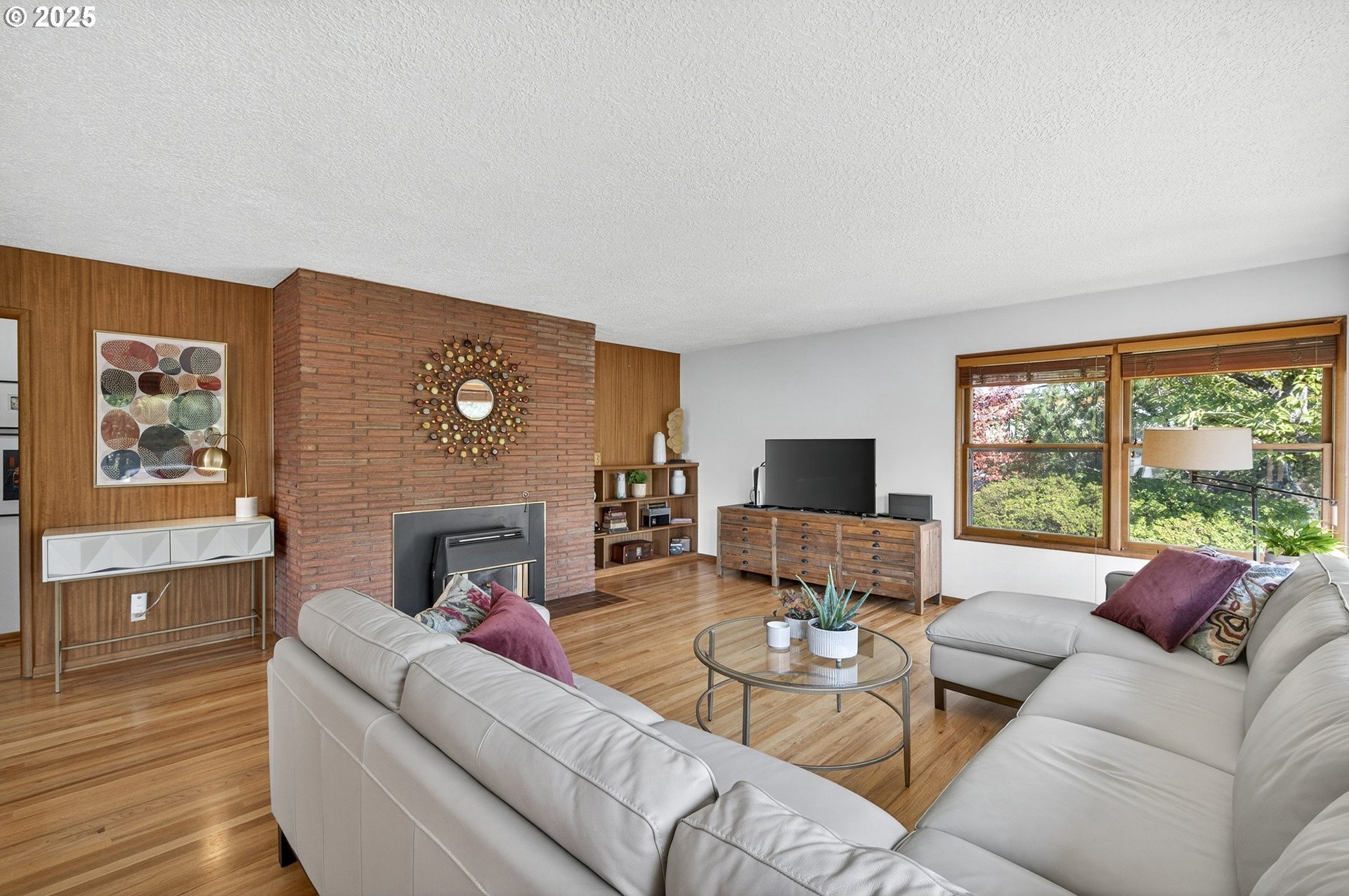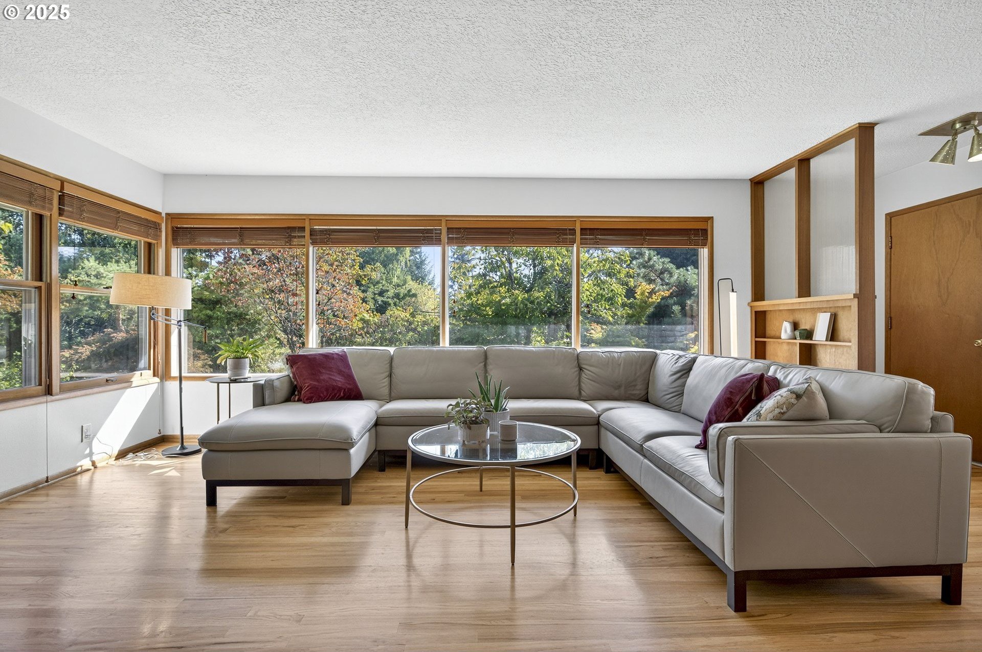 There's so much to love about this mid-century gem in Portland's sought-after Hillsdale neighborhood! Set up off the street, on a corner lot w/ beautiful, mature landscaping on all sides, this home enjoys great privacy and natural light. The living room is unlike any other. It's incredibly spacious, w/ fun, mid-century built-ins and design details, beautiful hardwood floors and lots of great, big, picture windows. The floor plan and positioning of this home is pretty perfect, too. The main floor puts living, dining and kitchen at the front of the home with 3 bedrooms and a full bathroom in the back and easy access to the backyard and patio from the kitchen and one of the bedrooms. Every window enjoys attractive views of the mature, variegated landscaping that surrounds the house. The light, bright lower-level has nice, tall ceilings and includes a big family room, 4th bedroom, 2nd full bathroom and great storage. Well cared for over the years, with valuable system improvements and thoughtful updates aligned with mid-century character and design. Recent updates include: lower-level bathroom remodel (incl new plumbing, shower pan, shower tile, and vanity - '25), new main water line ('25), new electric water heater ('24), new electric panel ('24), EV charging outlet ('24), generator outlet ('24), and new sewer line ('22). The backyard features a spacious covered patio off of the kitchen for year-round use and enjoyment, a covered deck off of one of the bedrooms, blueberry bushes, a Japanese nashi pear tree, blooming camellia bushes and so much more! With its super central location, this home enjoys several, quick commute options into downtown, NW, Lake Oswego and Beaverton. OHSU is just up the hill and a network of quiet, forested, nature trails minutes away. [Home Energy Score = 3. HES Report at https://rpt.greenbuildingregistry.com/hes/OR10134883]