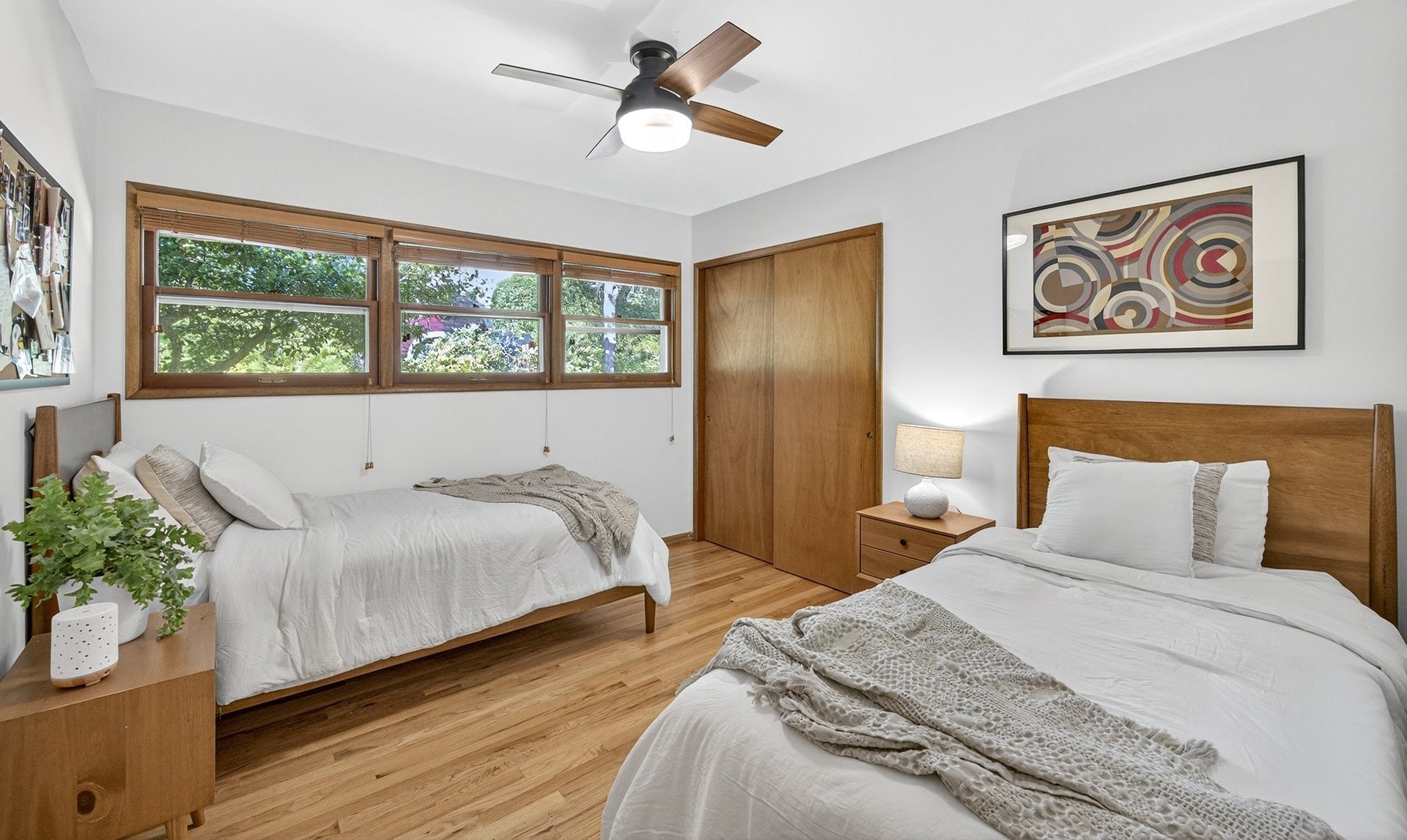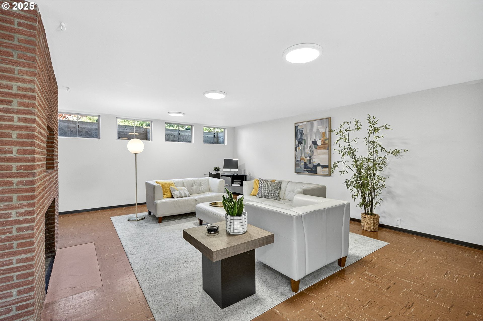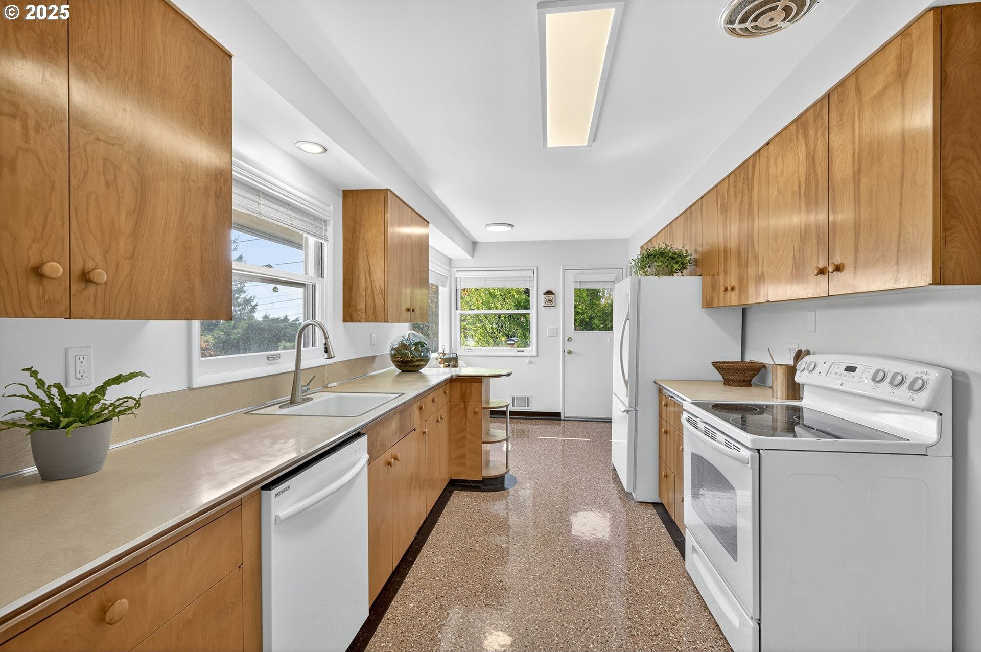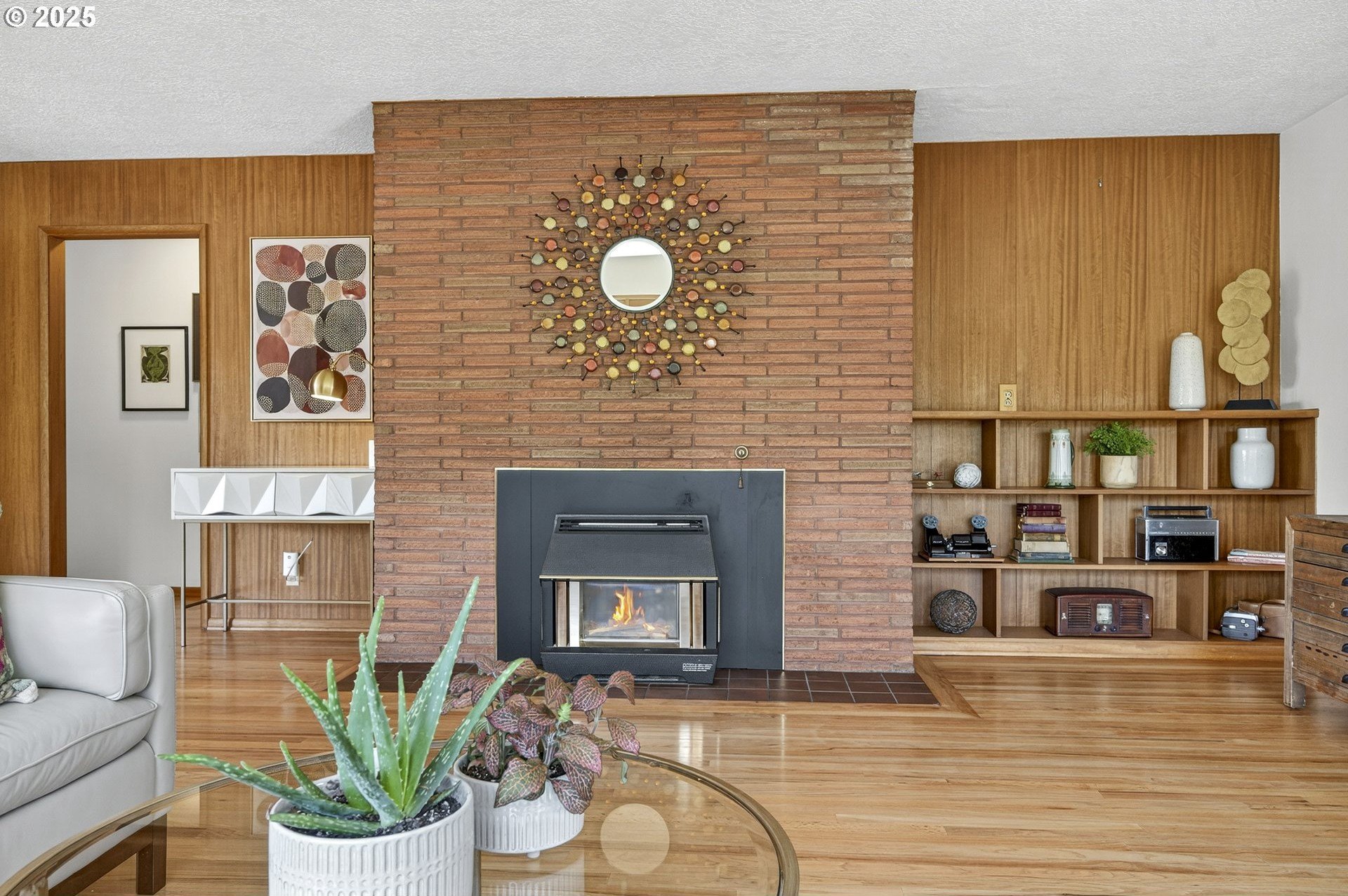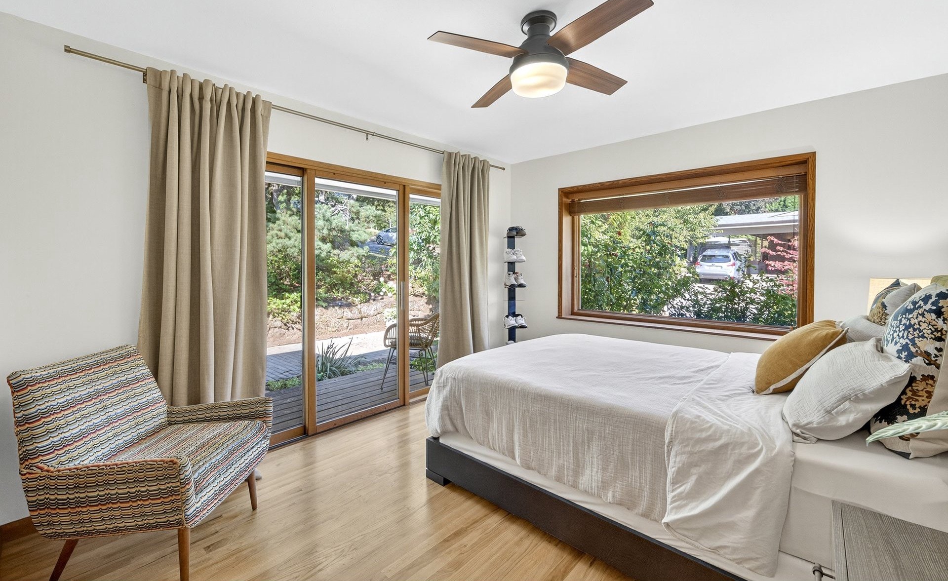 There's so much to love about this mid-century gem in Portland's sought-after Hillsdale neighborhood! Set up off the street, on a corner lot w/ beautiful, mature landscaping on all sides, this home enjoys great privacy and natural light. The living room is unlike any other. It's incredibly spacious, w/ fun, mid-century built-ins and design details, beautiful hardwood floors and lots of great, big, picture windows. The floor plan and positioning of this home is pretty perfect, too. The main floor puts living, dining and kitchen at the front of the home with 3 bedrooms and a full bathroom in the back and easy access to the backyard and patio from the kitchen and one of the bedrooms. Every window enjoys attractive views of the mature, variegated landscaping that surrounds the house. The light, bright lower-level has nice, tall ceilings and includes a big family room, 4th bedroom, 2nd full bathroom and great storage. Well cared for over the years, with valuable system improvements and thoughtful updates aligned with mid-century character and design. Recent updates include: lower-level bathroom remodel (incl new plumbing, shower pan, shower tile, and vanity - '25), new main water line ('25), new electric water heater ('24), new electric panel ('24), EV charging outlet ('24), generator outlet ('24), and new sewer line ('22). The backyard features a spacious covered patio off of the kitchen for year-round use and enjoyment, a covered deck off of one of the bedrooms, blueberry bushes, a Japanese nashi pear tree, blooming camellia bushes and so much more! With its super central location, this home enjoys several, quick commute options into downtown, NW, Lake Oswego and Beaverton. OHSU is just up the hill and a network of quiet, forested, nature trails minutes away. [Home Energy Score = 3. HES Report at https://rpt.greenbuildingregistry.com/hes/OR10134883]
