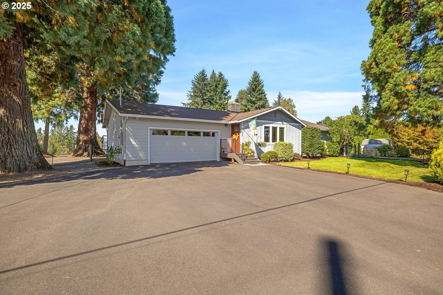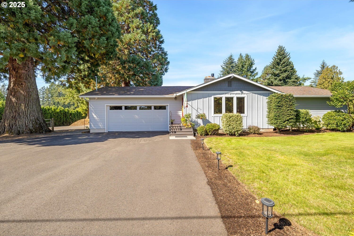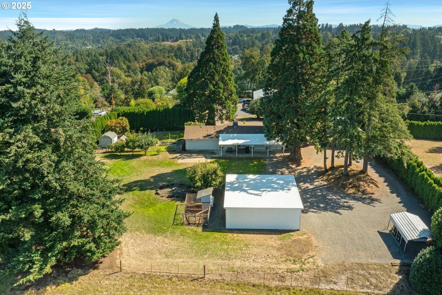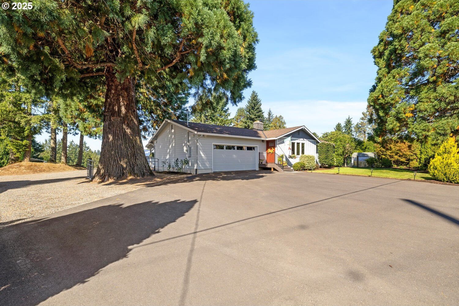 Meticulously maintained on 1 acre, just minutes to town! Many updates within the last few years including a new roof, gutters, driveway, chimney, windows, siding, paint & electrical panel. Inside enjoy fresh updates to the kitchen with new appliances, cabinetry & countertops. New flooring throughout, new interior paint, cozy wood burning fireplace on the main level & gas fireplace insert at lower level family room! All main level living with finished basement & storage room. Forced air gas furnace & whole house fan for cooling. Outside you will find a Mt. Hood view out front & plenty of space out back. Exterior features a workshop with shop space & a finished office. Large lean-to at back of shop for storage & parking. Oversized RV cover to store your toys too! Fully fenced, beautifully landscaped, private yard with so much room to roam. Many fruit trees, fenced garden, raised beds, greenhouse, tool shed & a coop your chickens will love. The big covered backyard patio & firepit with territorial views create a haven for relaxation & entertainment. So clean & well cared for. Ideal location near schools, shopping, restaurants & parks. Country living, yet only minutes to city & freeway access making your commute a breeze. Welcome home!
