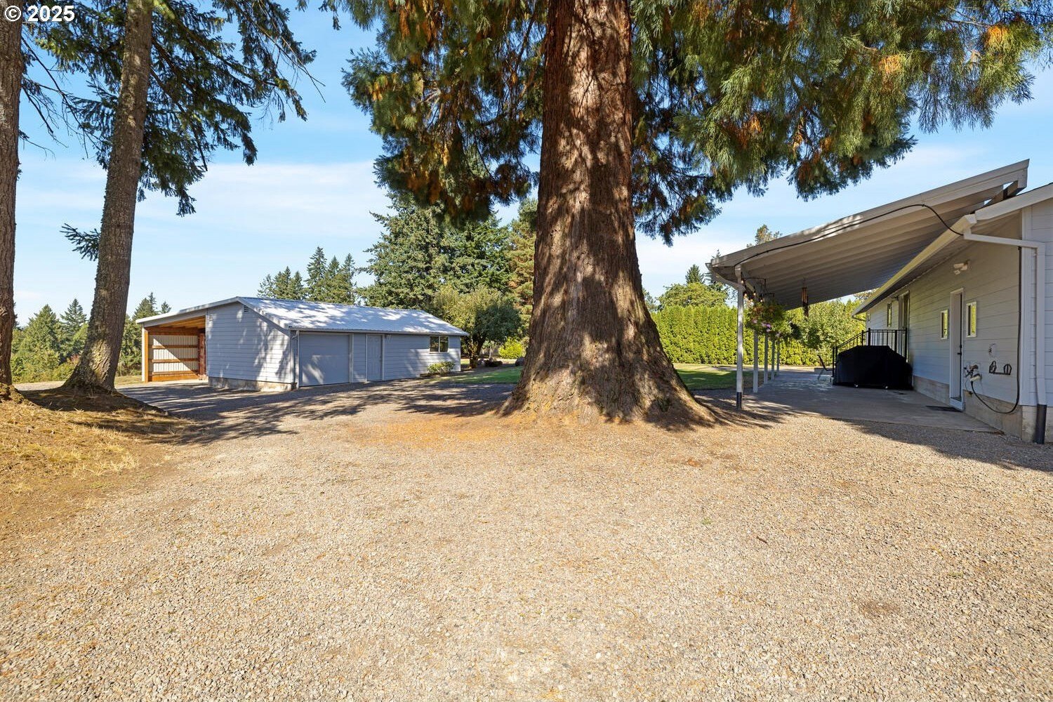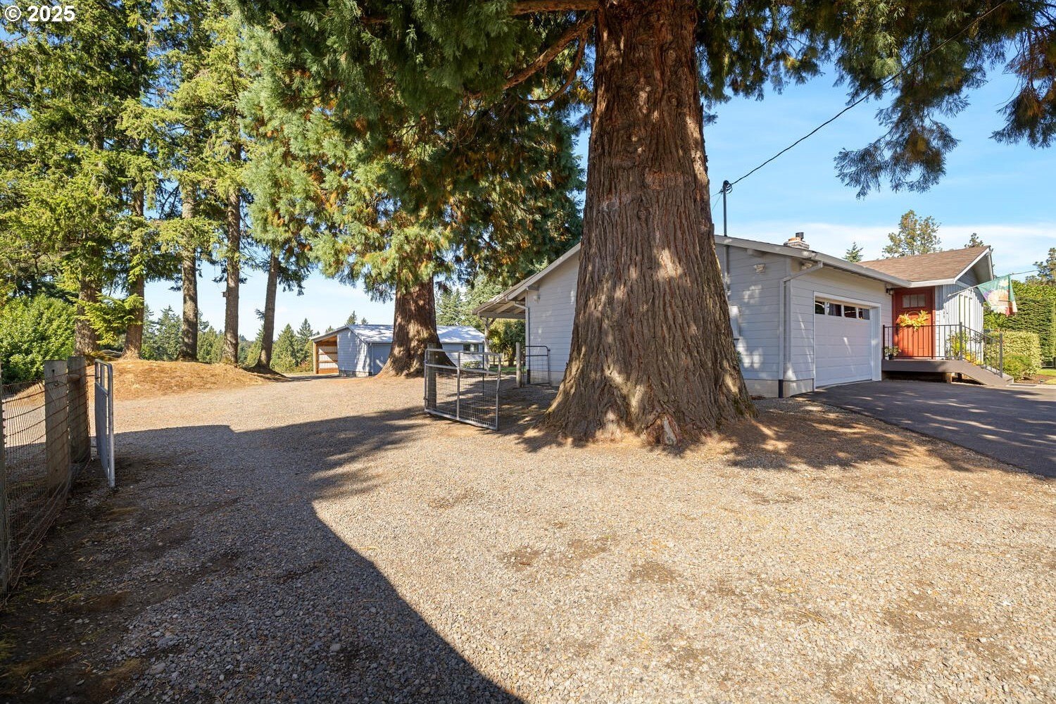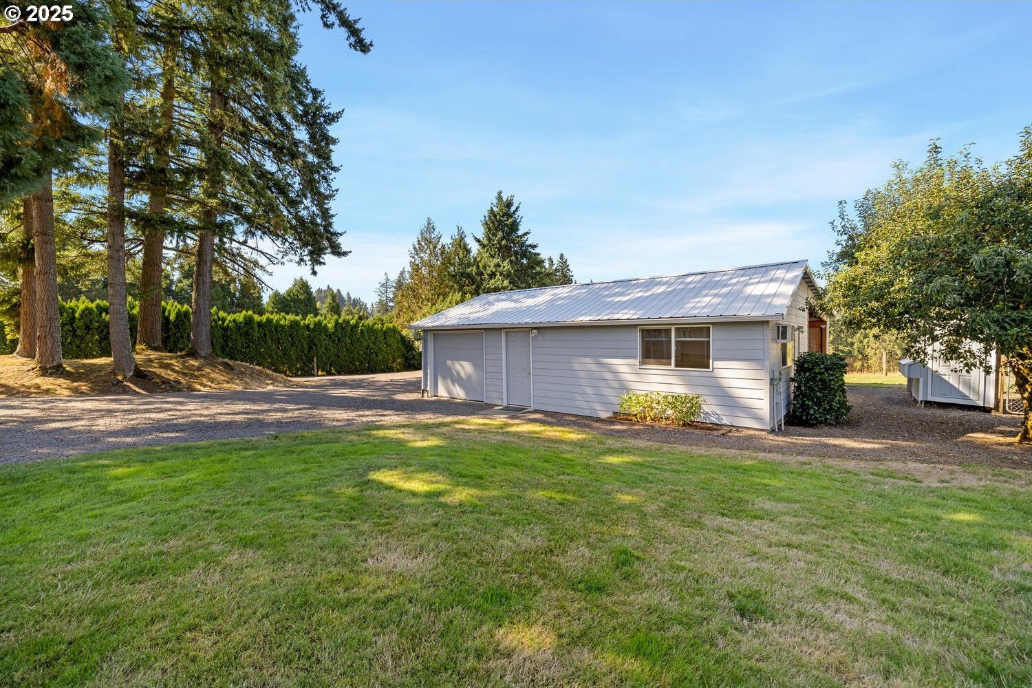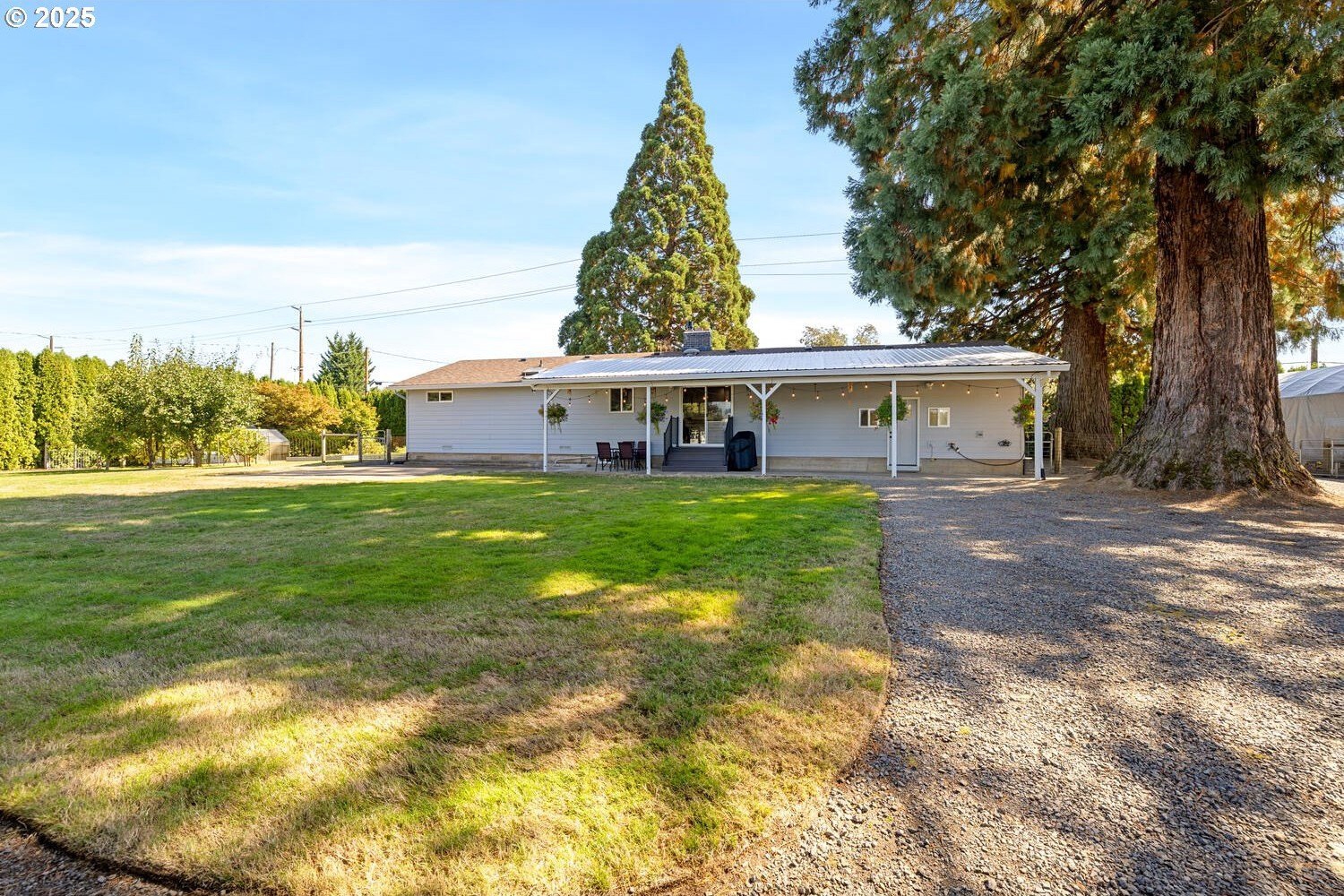 Meticulously maintained on 1 acre, just minutes to town! Many updates within the last few years including a new roof, gutters, driveway, chimney, windows, siding, paint & electrical panel. Inside enjoy fresh updates to the kitchen with new appliances, cabinetry & countertops. New flooring throughout, new interior paint, cozy wood burning fireplace on the main level & gas fireplace insert at lower level family room! All main level living with finished basement & storage room. Forced air gas furnace & whole house fan for cooling. Outside you will find a Mt. Hood view out front & plenty of space out back. Exterior features a workshop with shop space & a finished office. Large lean-to at back of shop for storage & parking. Oversized RV cover to store your toys too! Fully fenced, beautifully landscaped, private yard with so much room to roam. Many fruit trees, fenced garden, raised beds, greenhouse, tool shed & a coop your chickens will love. The big covered backyard patio & firepit with territorial views create a haven for relaxation & entertainment. So clean & well cared for. Ideal location near schools, shopping, restaurants & parks. Country living, yet only minutes to city & freeway access making your commute a breeze. Welcome home!