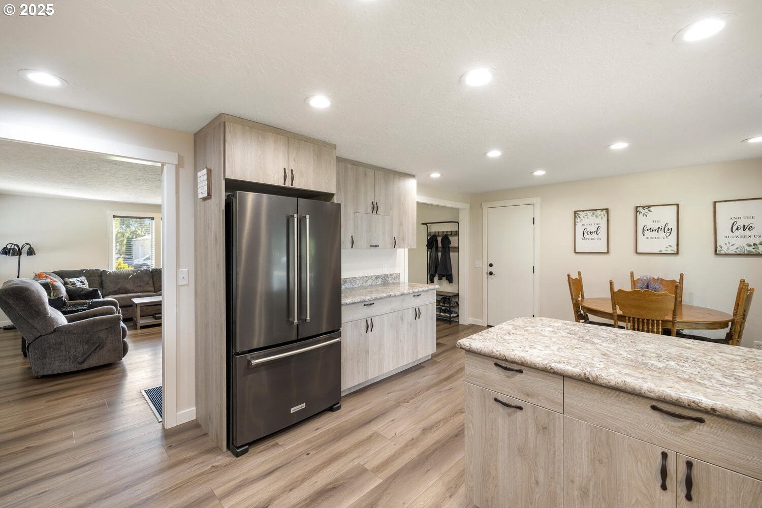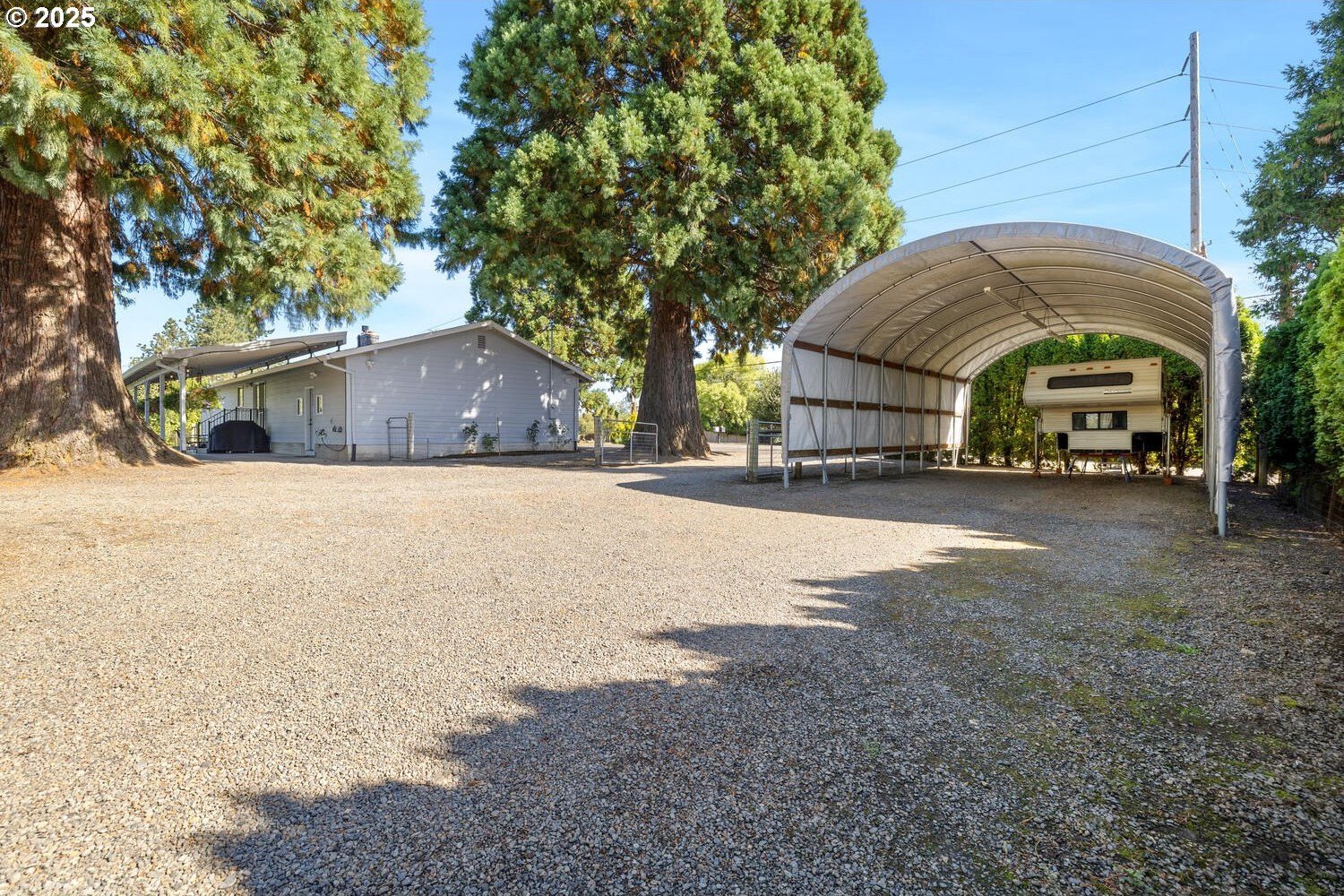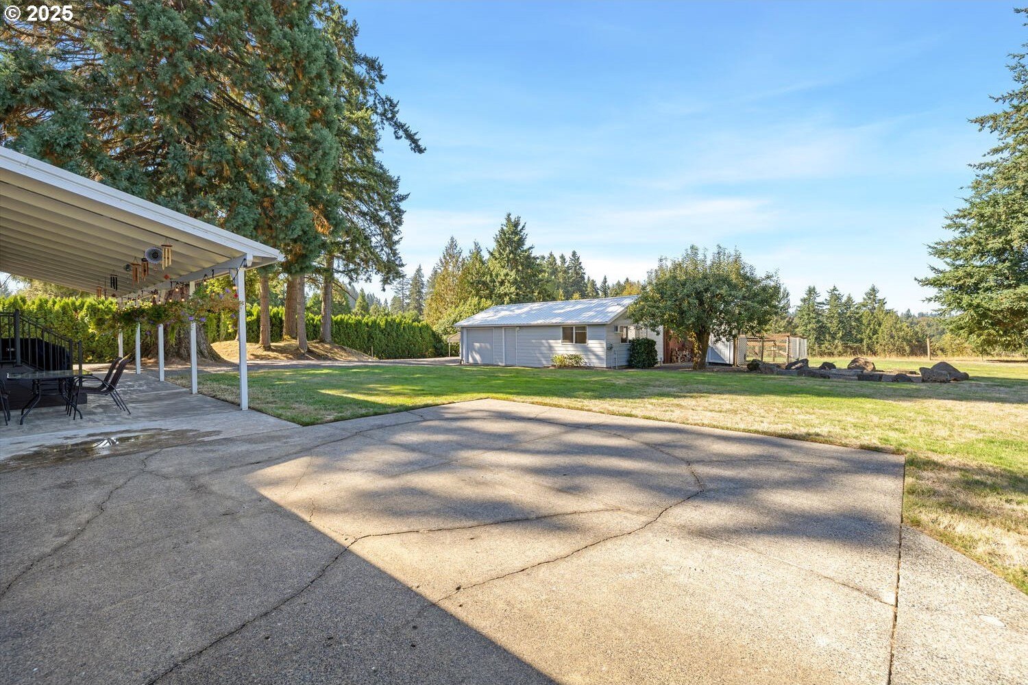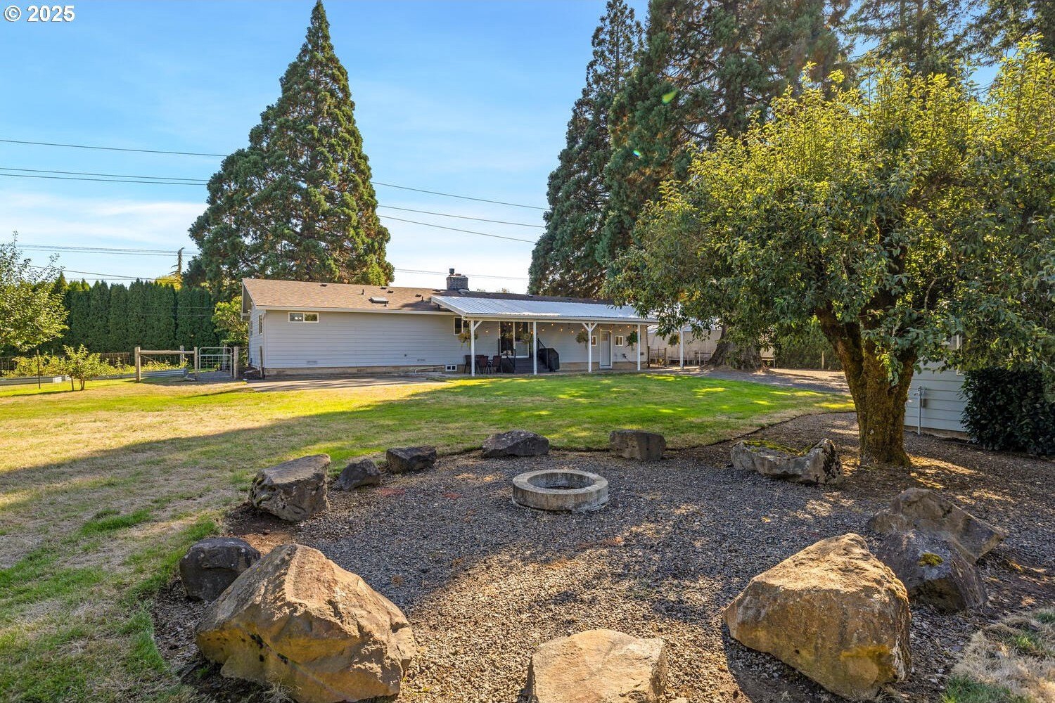 Meticulously maintained on 1 acre, just minutes to town! Many updates within the last few years including a new roof, gutters, driveway, chimney, windows, siding, paint & electrical panel. Inside enjoy fresh updates to the kitchen with new appliances, cabinetry & countertops. New flooring throughout, new interior paint, cozy wood burning fireplace on the main level & gas fireplace insert at lower level family room! All main level living with finished basement & storage room. Forced air gas furnace & whole house fan for cooling. Outside you will find a Mt. Hood view out front & plenty of space out back. Exterior features a workshop with shop space & a finished office. Large lean-to at back of shop for storage & parking. Oversized RV cover to store your toys too! Fully fenced, beautifully landscaped, private yard with so much room to roam. Many fruit trees, fenced garden, raised beds, greenhouse, tool shed & a coop your chickens will love. The big covered backyard patio & firepit with territorial views create a haven for relaxation & entertainment. So clean & well cared for. Ideal location near schools, shopping, restaurants & parks. Country living, yet only minutes to city & freeway access making your commute a breeze. Welcome home!