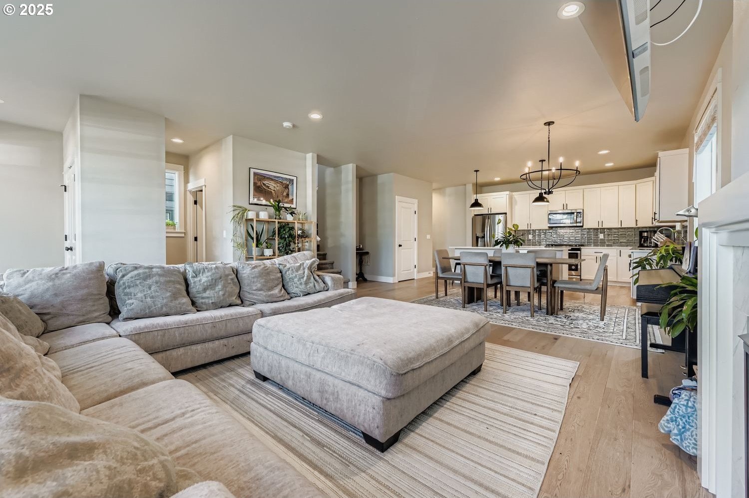 Built in 2022, this modern home blends a thoughtful design with an unbeatable location on the edge of the Columbia River Gorge. Step inside to discover an open, inviting floor plan with a spacious kitchen featuring a walk-in pantry, oversized island, and plenty of room to gather. A cozy gas fireplace anchors the living area, while upstairs you will find four bedrooms, a convenient laundry room, and a fantastic layout with a primary suite that features two walk-in closets. The current owners have already added air conditioning, making this home comfortable year-round. Set high on the ridge, the front porch is the perfect spot to take in sweeping sunsets and enjoy quiet evenings in this friendly neighborhood. Around the corner you will find a local park, and just minutes away is the fun Imagination Station play area. Nature lovers will appreciate the easy access to the Gorge, Mt. Hood, and the nearby Sandy River—not to mention one of the best dog parks around.Commuters will love the quick connection to I-84, while weekends bring endless options: hip new spots in downtown Troutdale, food carts, golf at Edgefield, and shopping just minutes from your door. Reach out for a showing. Welcome home!