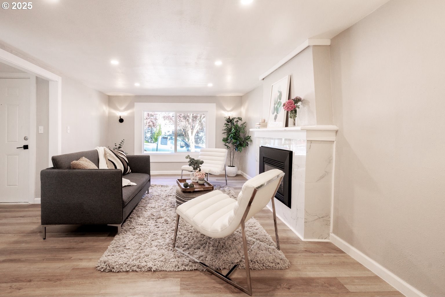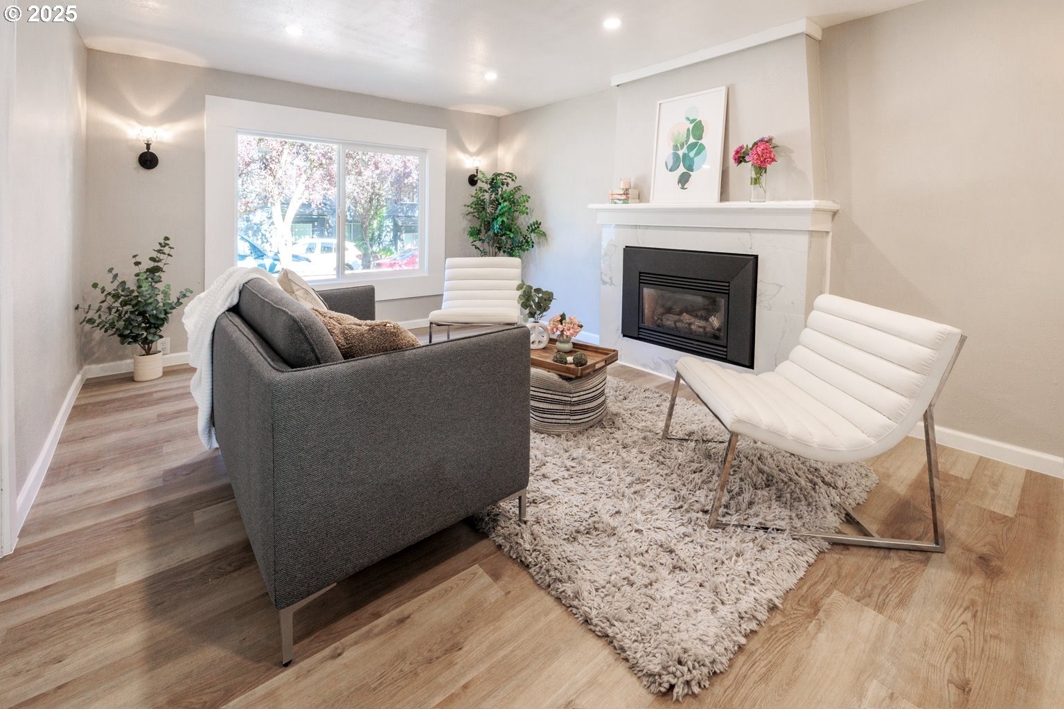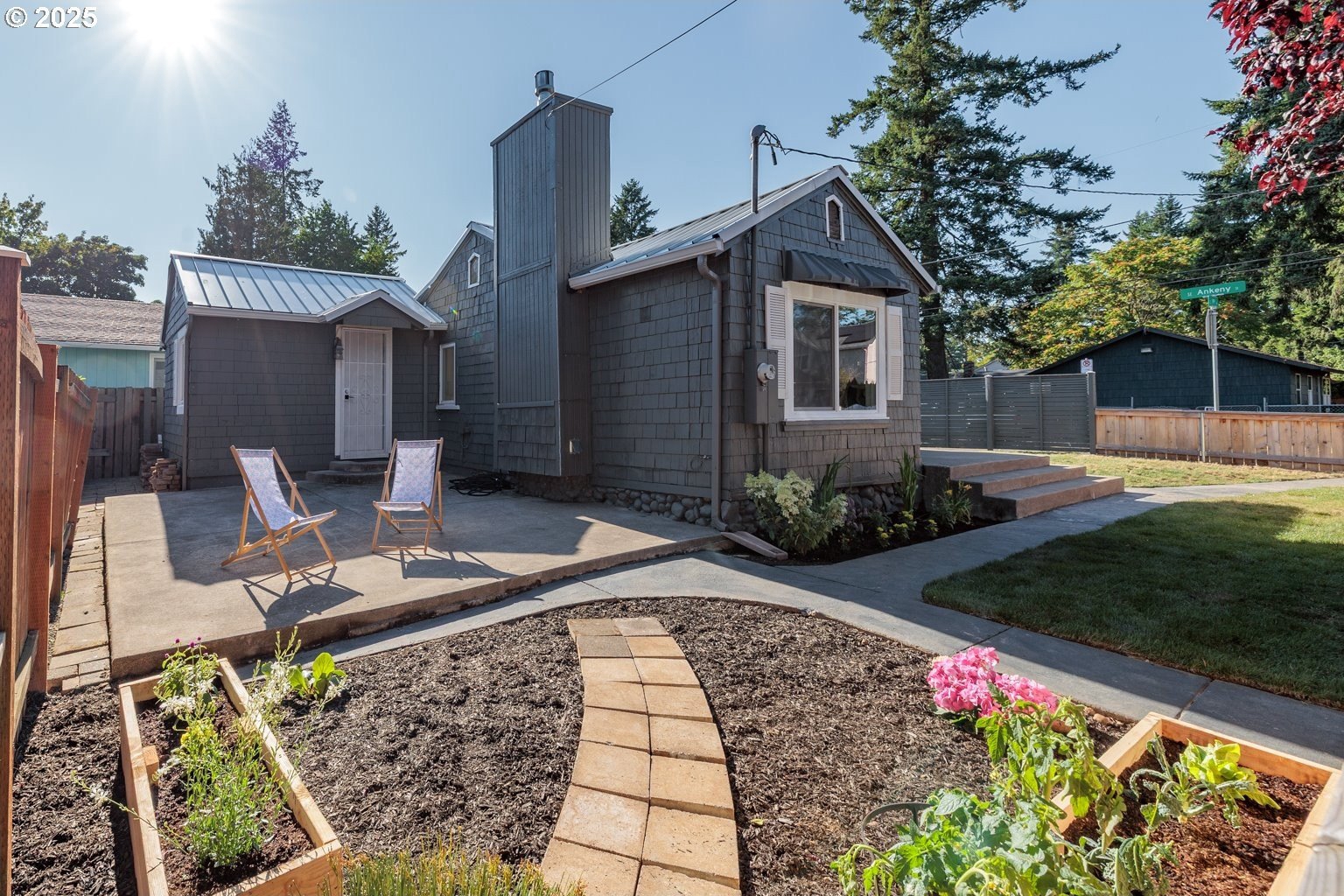 Welcome to this beautifully updated home where modern style meets everyday comfort. Step inside to a light-filled living room featuring fresh paint, brand-new Luxury Vinyl Plank flooring, and a cozy fireplace perfect for relaxing evenings. The kitchen has been fully reimagined with new cabinetry, sleek granite countertops, modern sink, and stainless steel appliances. The spacious bedrooms are filled with natural light, while the fully renovated bathroom offers a spa-like feel with a walk-in shower and elegant tile flooring. Enjoy your morning coffee or evening unwind in the private backyard, complete with a sunny patio, low-maintenance landscaping, raised garden beds, and a handy storage shed. A large 585 sq. ft. unfinished basement provides excellent storage or future finishing potential. Conveniently located near Ventura Park, local dining and nightlife on East Burnside, and just steps from the MAX station, this home offers the perfect balance of comfort, convenience, and urban accessibility. Don’t miss the opportunity to own this move-in ready East Portland gem! [Home Energy Score = 5. HES Report at https://rpt.greenbuildingregistry.com/hes/OR10235636]