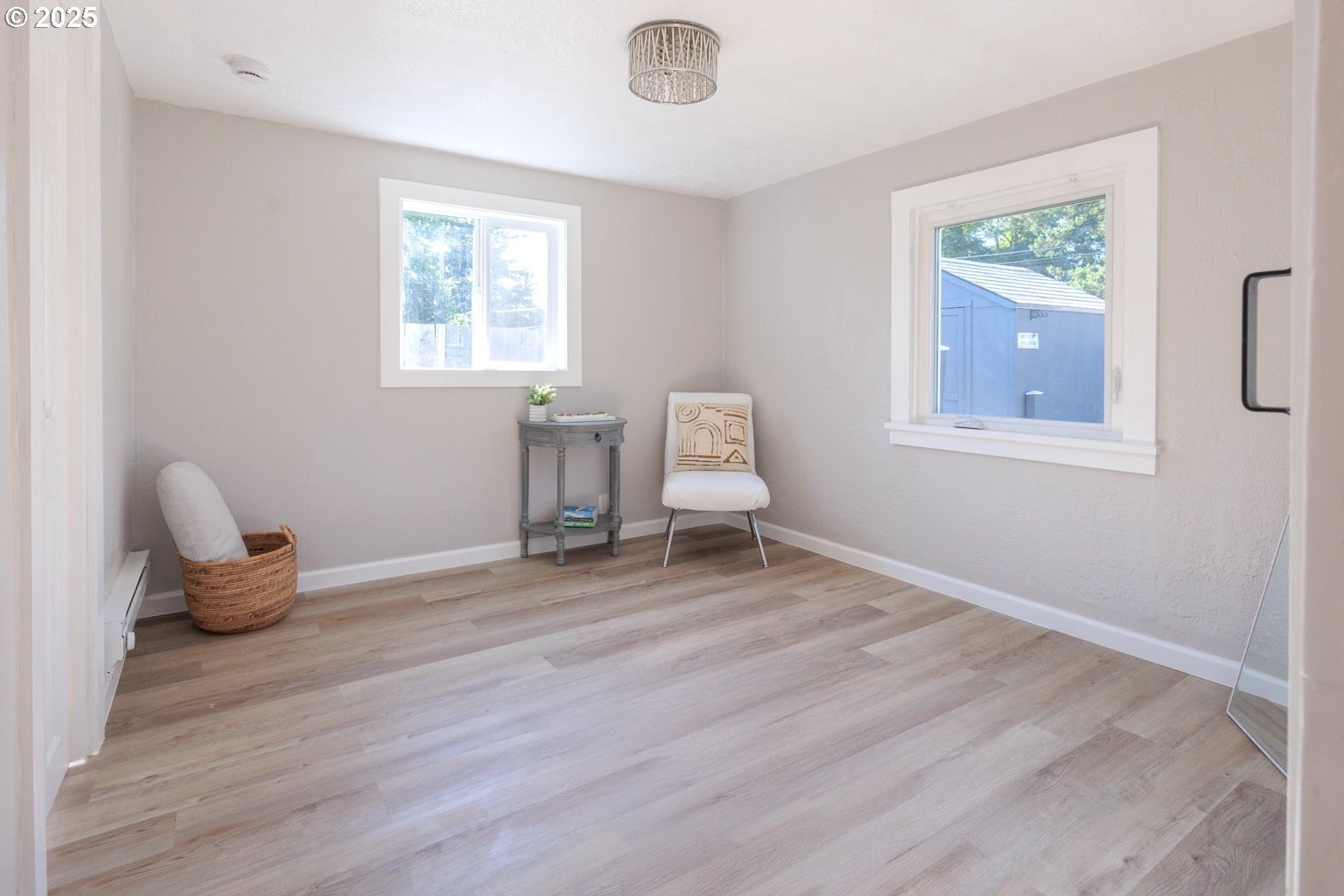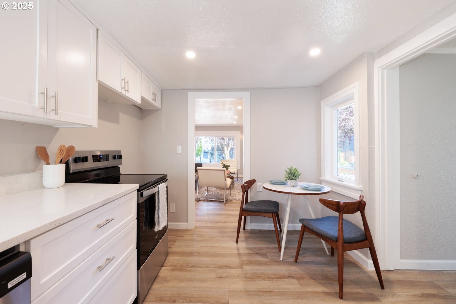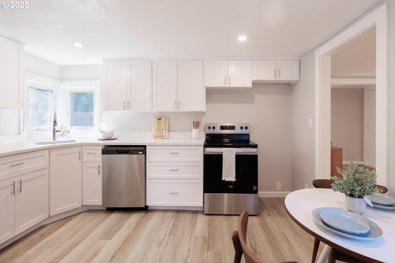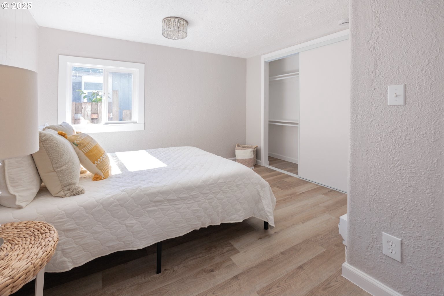 Welcome to this beautifully updated home where modern style meets everyday comfort. Step inside to a light-filled living room featuring fresh paint, brand-new Luxury Vinyl Plank flooring, and a cozy fireplace perfect for relaxing evenings. The kitchen has been fully reimagined with new cabinetry, sleek granite countertops, modern sink, and stainless steel appliances. The spacious bedrooms are filled with natural light, while the fully renovated bathroom offers a spa-like feel with a walk-in shower and elegant tile flooring. Enjoy your morning coffee or evening unwind in the private backyard, complete with a sunny patio, low-maintenance landscaping, raised garden beds, and a handy storage shed. A large 585 sq. ft. unfinished basement provides excellent storage or future finishing potential. Conveniently located near Ventura Park, local dining and nightlife on East Burnside, and just steps from the MAX station, this home offers the perfect balance of comfort, convenience, and urban accessibility. Don’t miss the opportunity to own this move-in ready East Portland gem! [Home Energy Score = 5. HES Report at https://rpt.greenbuildingregistry.com/hes/OR10235636]