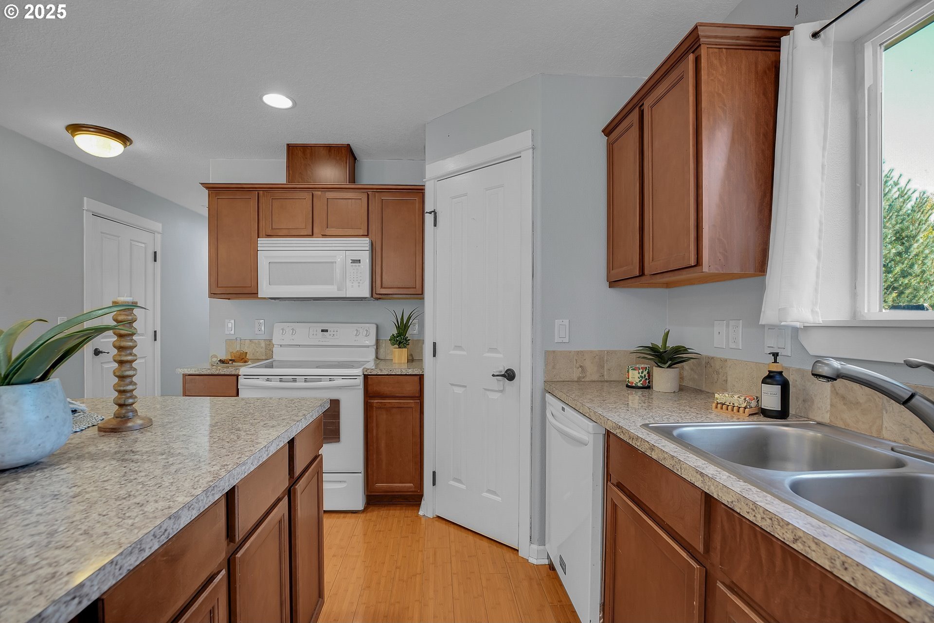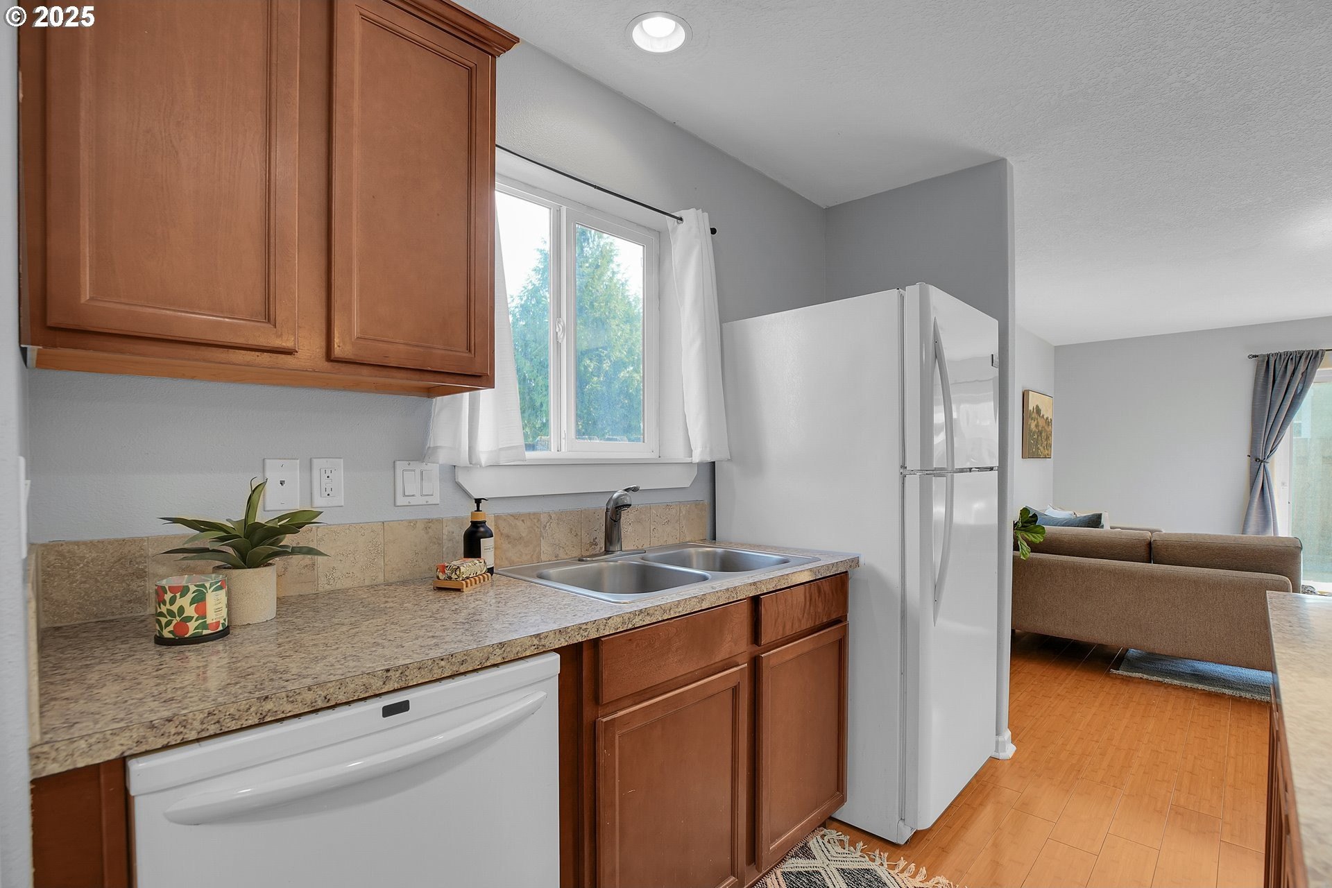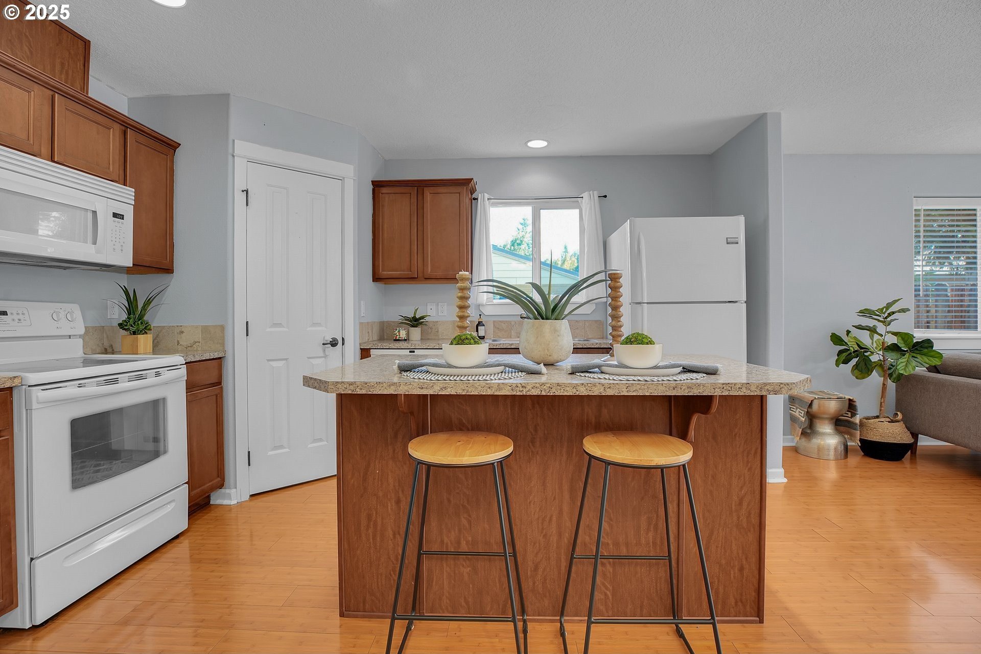 Charming, single-level home in Forest Grove. Welcome to this well maintained 3-bedroom, 2-bathroom home nestled in a quiet Forest Grove neighborhood. Designed for comfort and convenience, this single-level residence features an open floorplan that effortlessly connects the living, dining, and kitchen areas—perfect for entertaining or everyday living. Step inside to find bamboo flooring throughout the main living spaces, creating a warm and modern feel. The kitchen comes fully equipped with appliances included, making it truly move-in ready. Enjoy abundant natural light and a seamless indoor-outdoor flow to the back patio, ideal for relaxing or hosting summer barbecues. The backyard is low maintenance but still offers raised garden beds ready for your favorite vegetables and herbs. A new roof adds peace of mind and long-term value to this well-cared-for home. Located just minutes from parks, schools, shops, and downtown Forest Grove, this home offers the perfect balance of suburban tranquility and urban convenience. Don't miss your chance to own this wonderful home —schedule a showing today! Open houses this Saturday and Sunday from 12-2pm