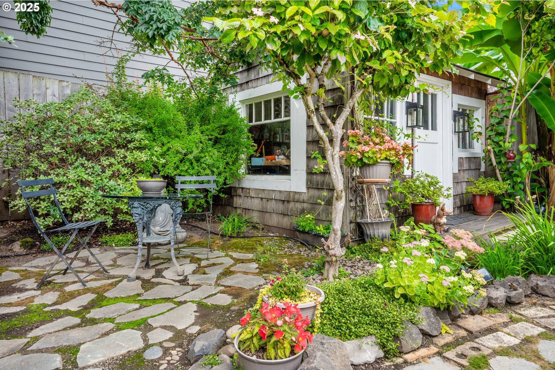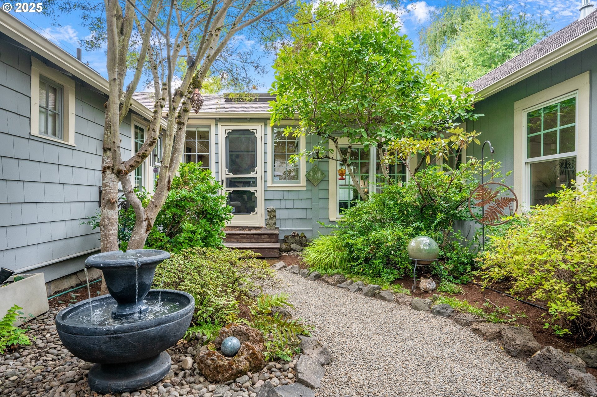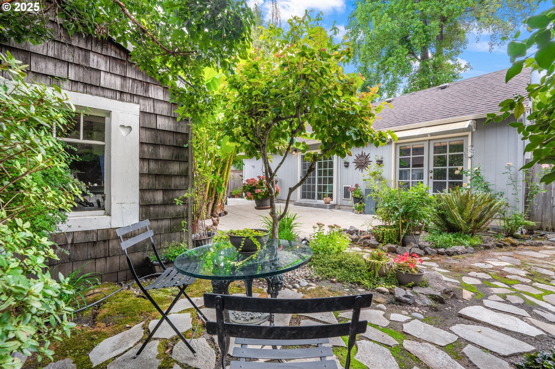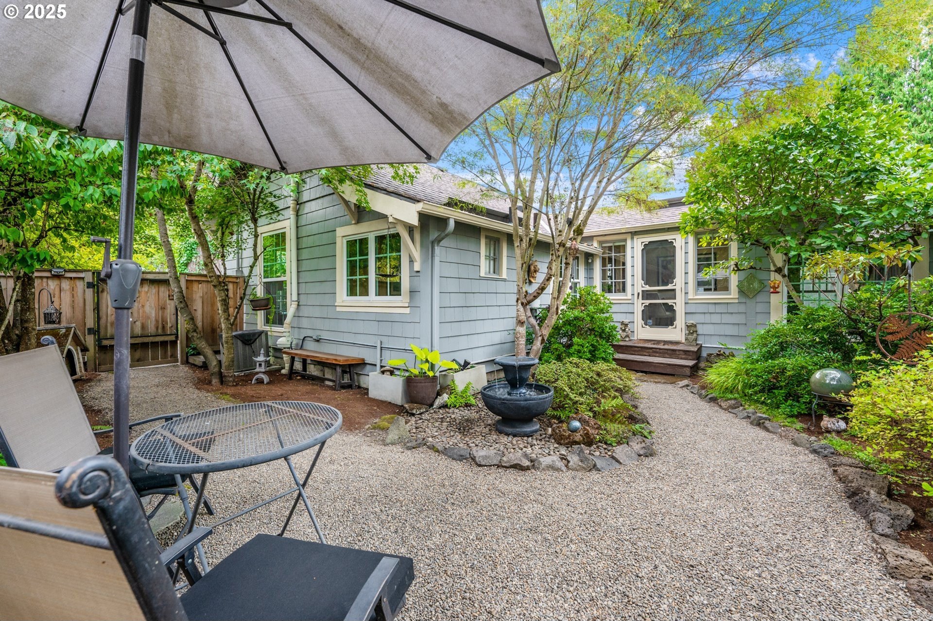 Tucked away in coveted Eastmoreland, this one-of-a-kind retreat offers an unparalleled blend of charm, privacy, and modern comfort. Every room is designed to connect seamlessly with the outdoors, creating the epitome of indoor-outdoor living. Expansive windows frame enchanting gardens, thoughtfully curated by a master gardener, while multiple patios create the backdrop for dining, relaxation, and year-round inspiration. The unique layout creates a courtyard-style feel, with both bedrooms, including a spacious primary suite, tucked away from the main living areas for peace and quiet. Countless updates throughout include an open remodeled kitchen, luxurious bathrooms, and dual HVAC systems for exceptional efficiency. A newer covered patio & private parking pad enhance the outdoor features of this truly special property. Prized location for its scenic beauty and walkability, just moments from parks, restaurants, & shops in Woodstock, Sellwood & Moreland. More than a home, this is a sanctuary in the city—plan your escape and come see it today!