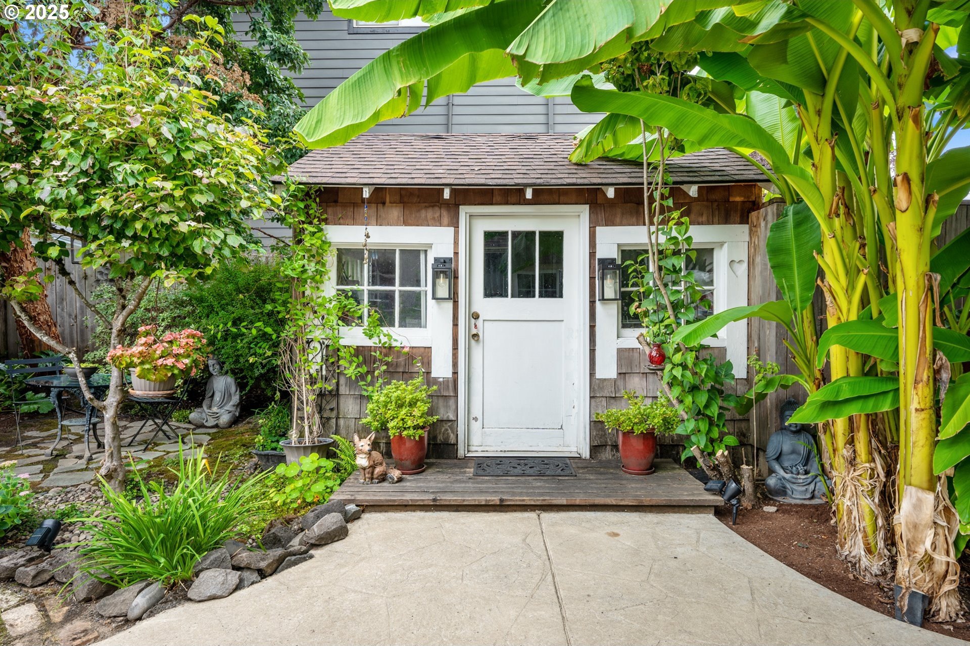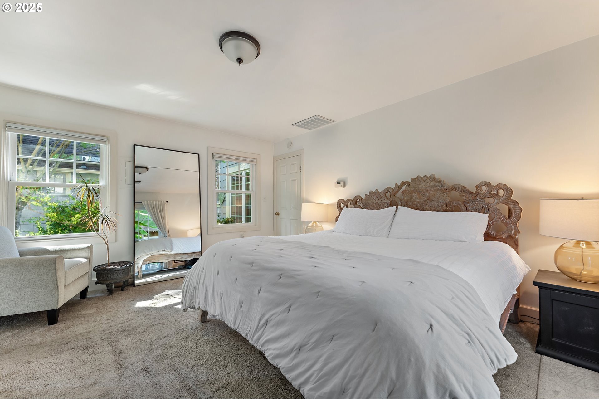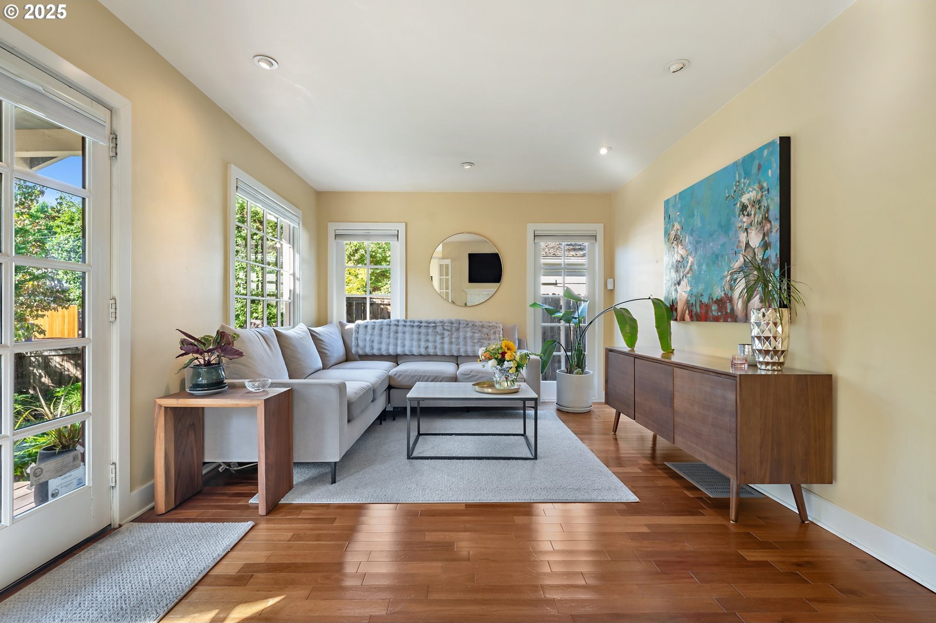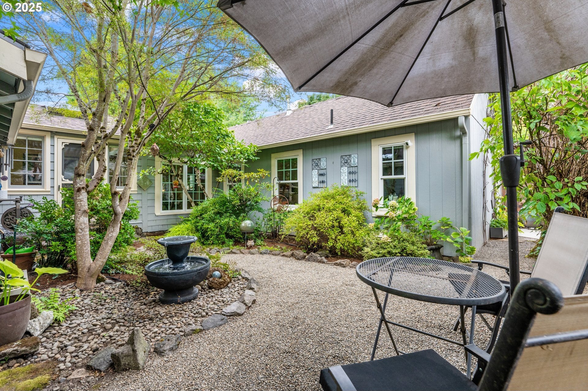 Tucked away in coveted Eastmoreland, this one-of-a-kind retreat offers an unparalleled blend of charm, privacy, and modern comfort. Every room is designed to connect seamlessly with the outdoors, creating the epitome of indoor-outdoor living. Expansive windows frame enchanting gardens, thoughtfully curated by a master gardener, while multiple patios create the backdrop for dining, relaxation, and year-round inspiration. The unique layout creates a courtyard-style feel, with both bedrooms, including a spacious primary suite, tucked away from the main living areas for peace and quiet. Countless updates throughout include an open remodeled kitchen, luxurious bathrooms, and dual HVAC systems for exceptional efficiency. A newer covered patio & private parking pad enhance the outdoor features of this truly special property. Prized location for its scenic beauty and walkability, just moments from parks, restaurants, & shops in Woodstock, Sellwood & Moreland. More than a home, this is a sanctuary in the city—plan your escape and come see it today!