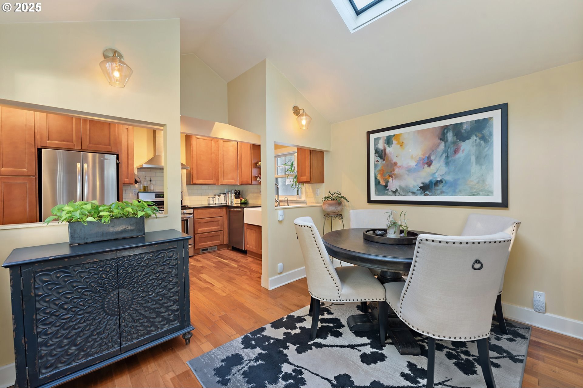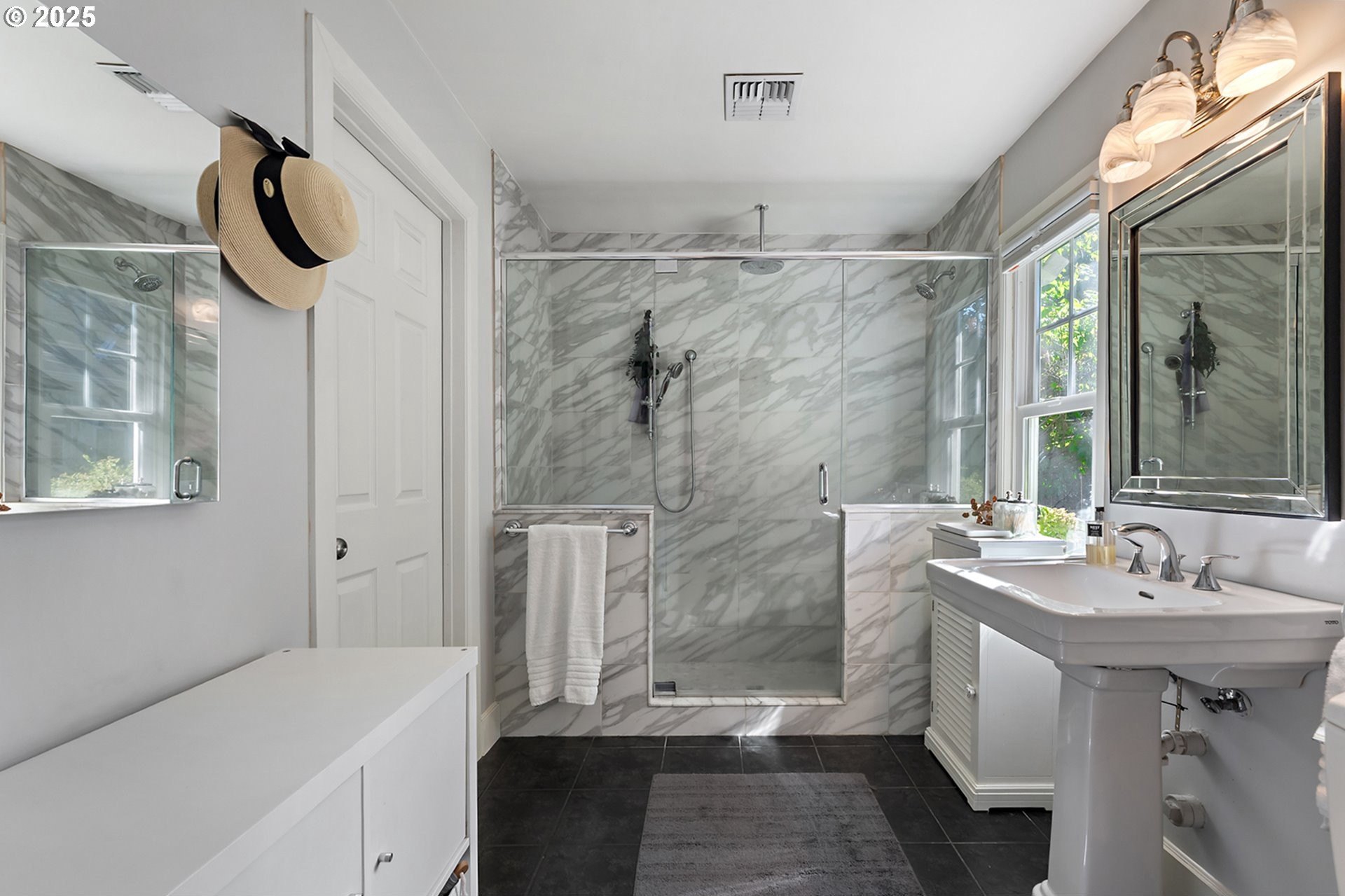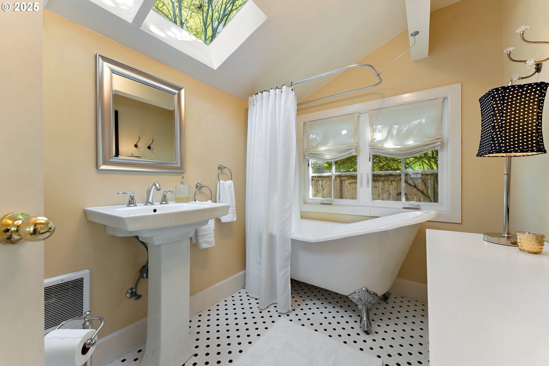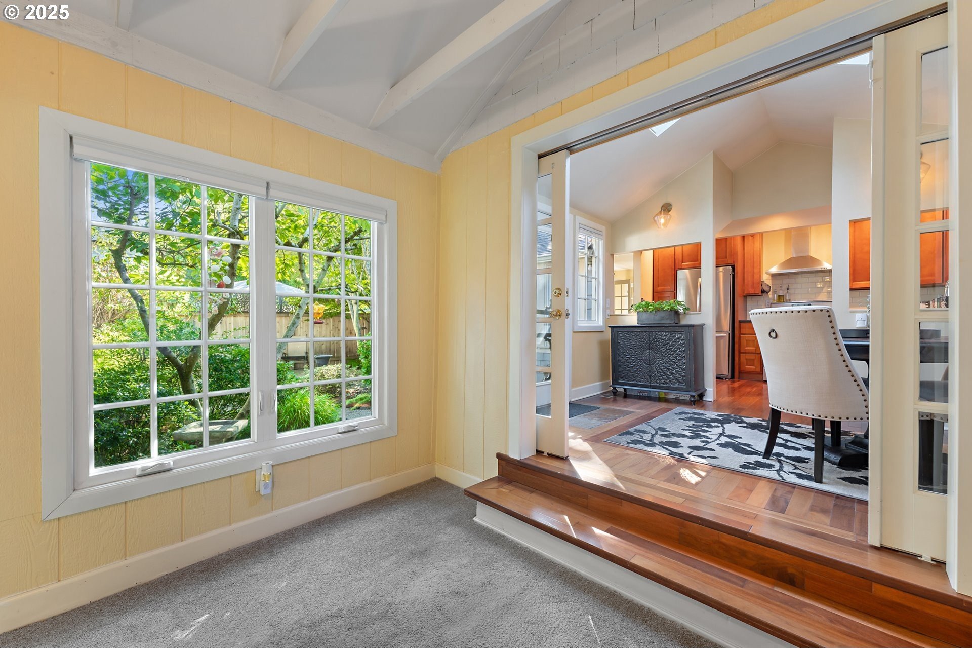 Tucked away in coveted Eastmoreland, this one-of-a-kind retreat offers an unparalleled blend of charm, privacy, and modern comfort. Every room is designed to connect seamlessly with the outdoors, creating the epitome of indoor-outdoor living. Expansive windows frame enchanting gardens, thoughtfully curated by a master gardener, while multiple patios create the backdrop for dining, relaxation, and year-round inspiration. The unique layout creates a courtyard-style feel, with both bedrooms, including a spacious primary suite, tucked away from the main living areas for peace and quiet. Countless updates throughout include an open remodeled kitchen, luxurious bathrooms, and dual HVAC systems for exceptional efficiency. A newer covered patio & private parking pad enhance the outdoor features of this truly special property. Prized location for its scenic beauty and walkability, just moments from parks, restaurants, & shops in Woodstock, Sellwood & Moreland. More than a home, this is a sanctuary in the city—plan your escape and come see it today!