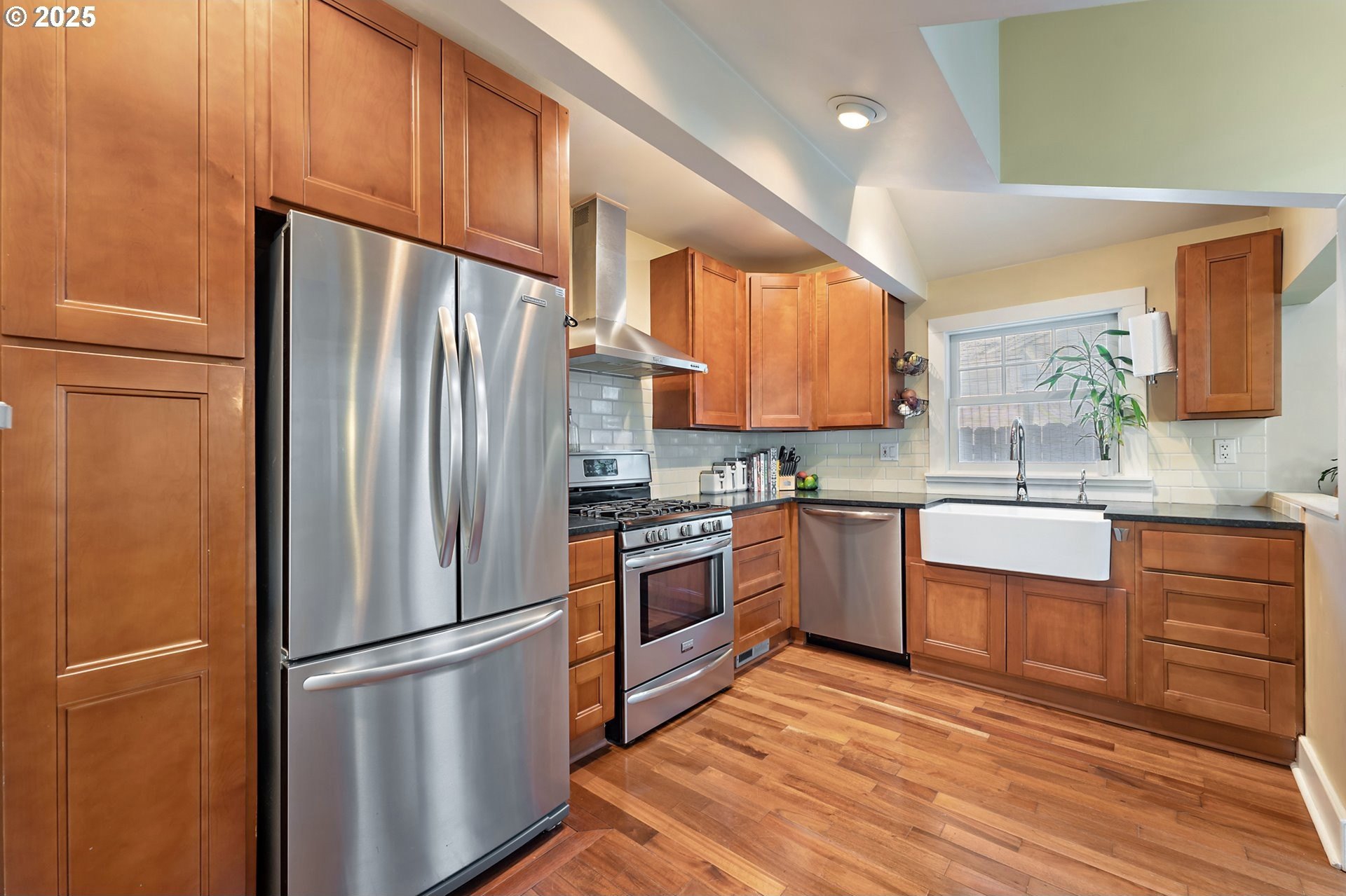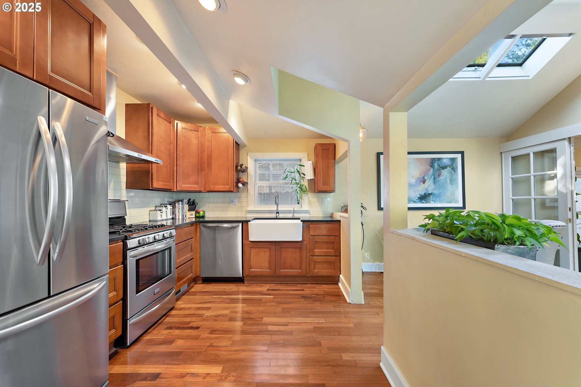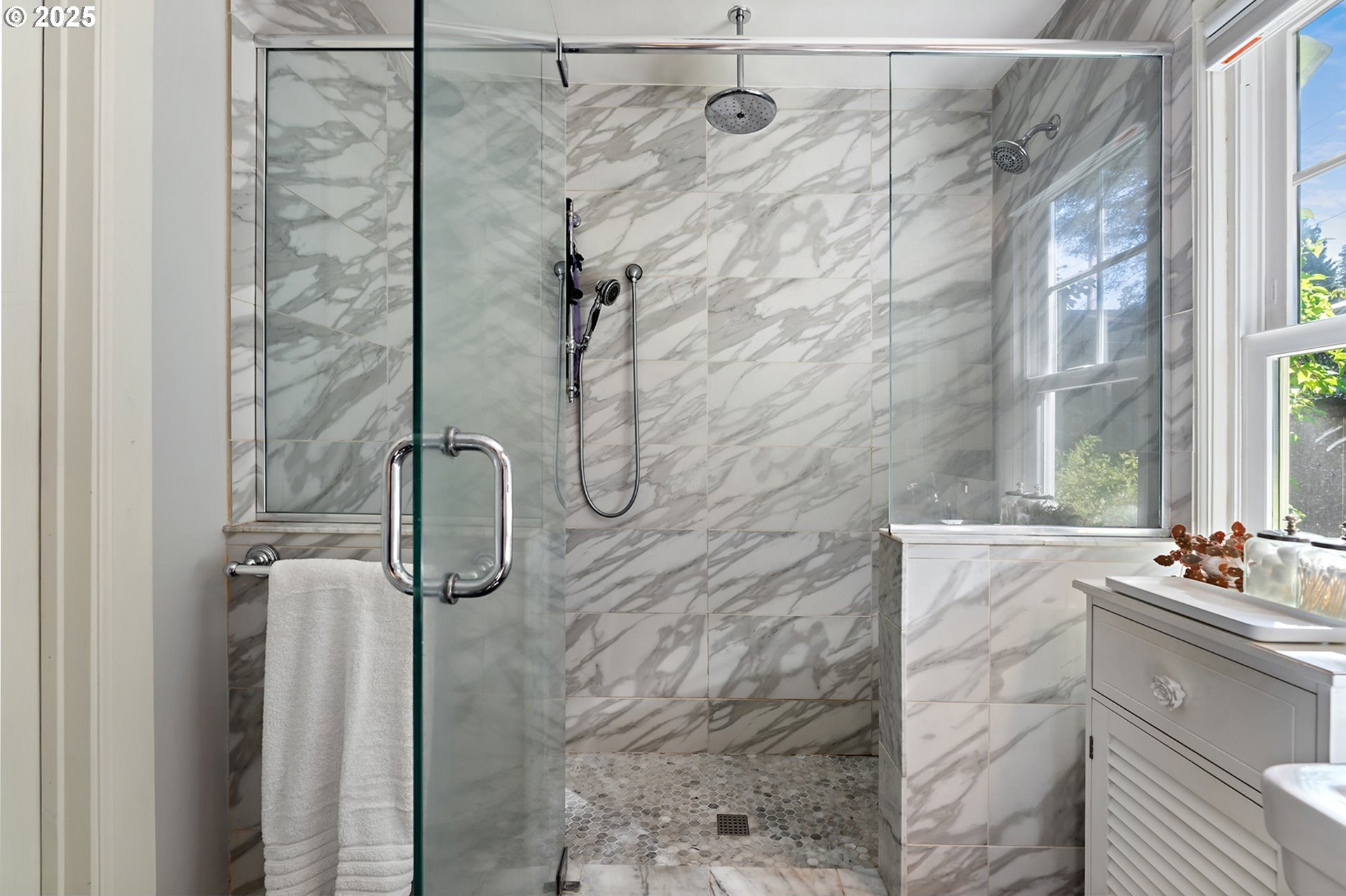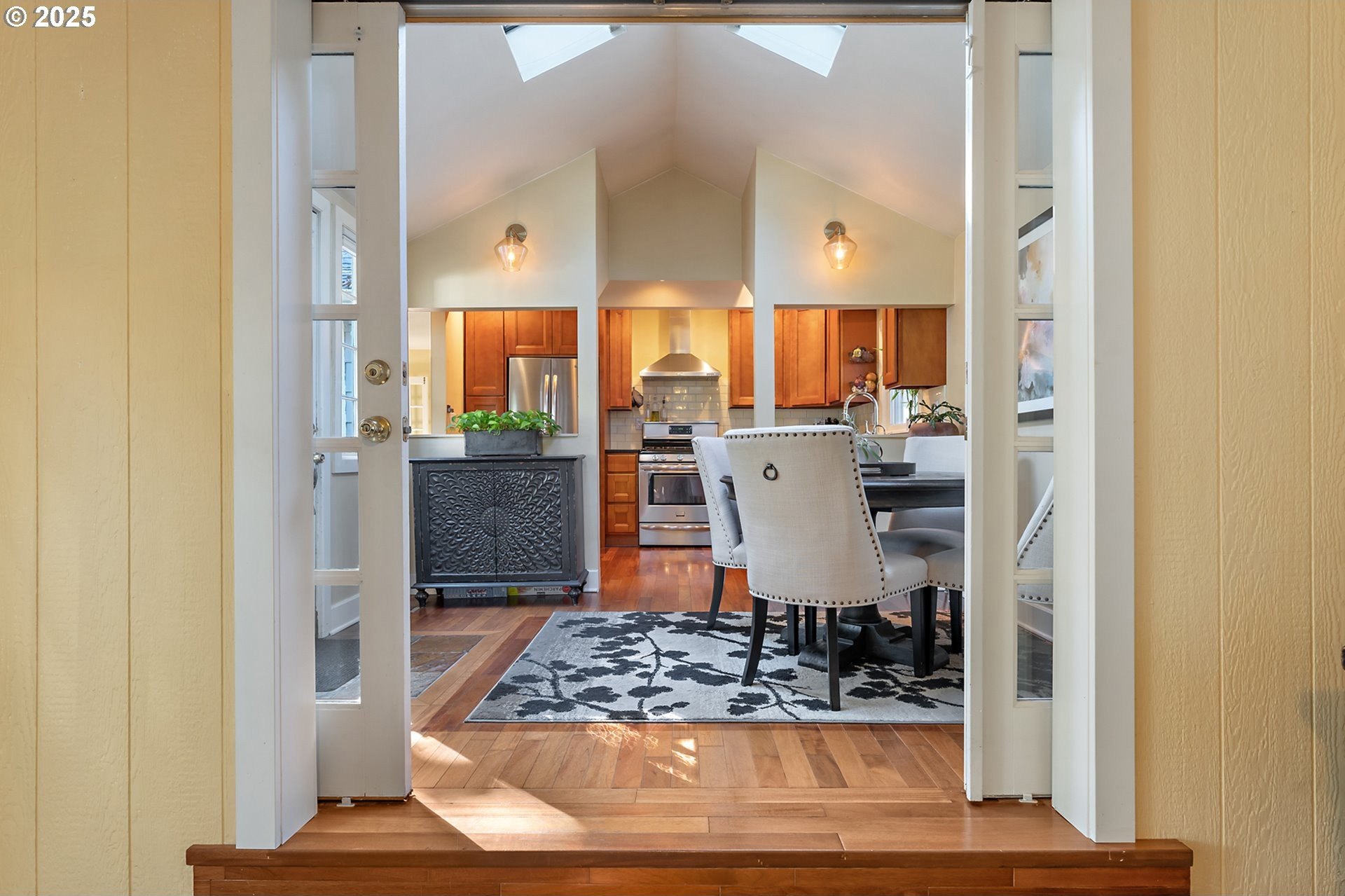 Tucked away in coveted Eastmoreland, this one-of-a-kind retreat offers an unparalleled blend of charm, privacy, and modern comfort. Every room is designed to connect seamlessly with the outdoors, creating the epitome of indoor-outdoor living. Expansive windows frame enchanting gardens, thoughtfully curated by a master gardener, while multiple patios create the backdrop for dining, relaxation, and year-round inspiration. The unique layout creates a courtyard-style feel, with both bedrooms, including a spacious primary suite, tucked away from the main living areas for peace and quiet. Countless updates throughout include an open remodeled kitchen, luxurious bathrooms, and dual HVAC systems for exceptional efficiency. A newer covered patio & private parking pad enhance the outdoor features of this truly special property. Prized location for its scenic beauty and walkability, just moments from parks, restaurants, & shops in Woodstock, Sellwood & Moreland. More than a home, this is a sanctuary in the city—plan your escape and come see it today!