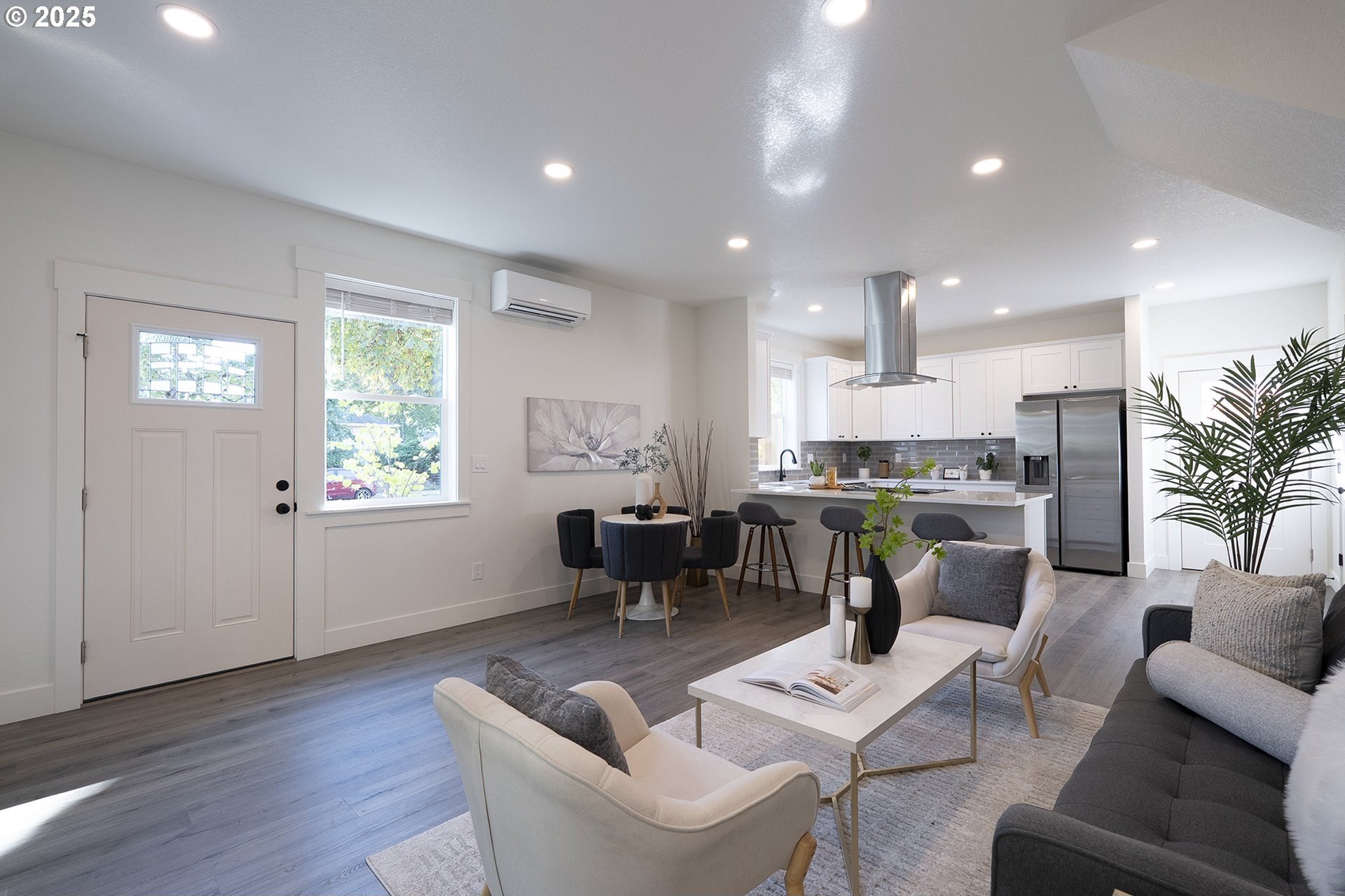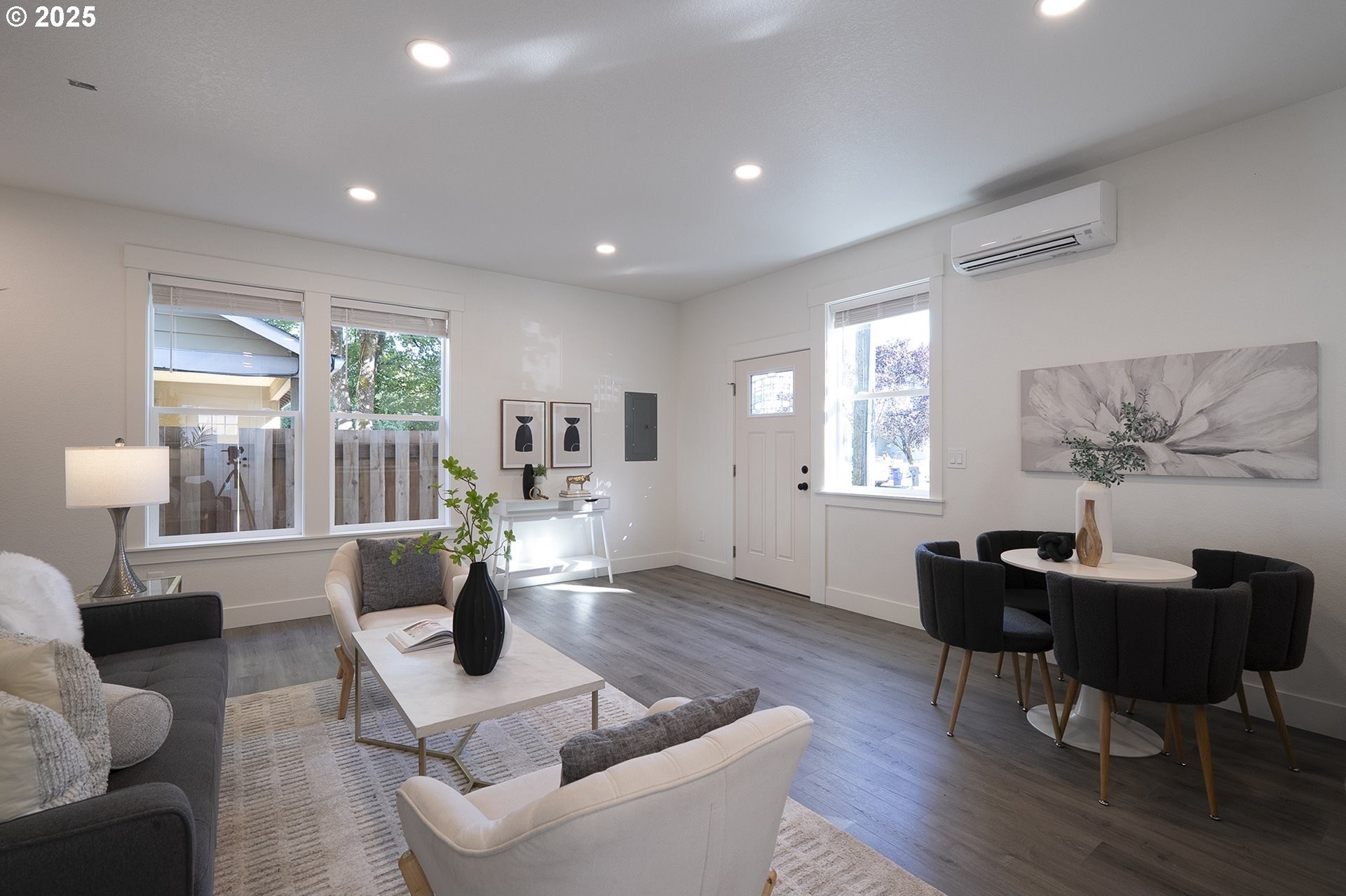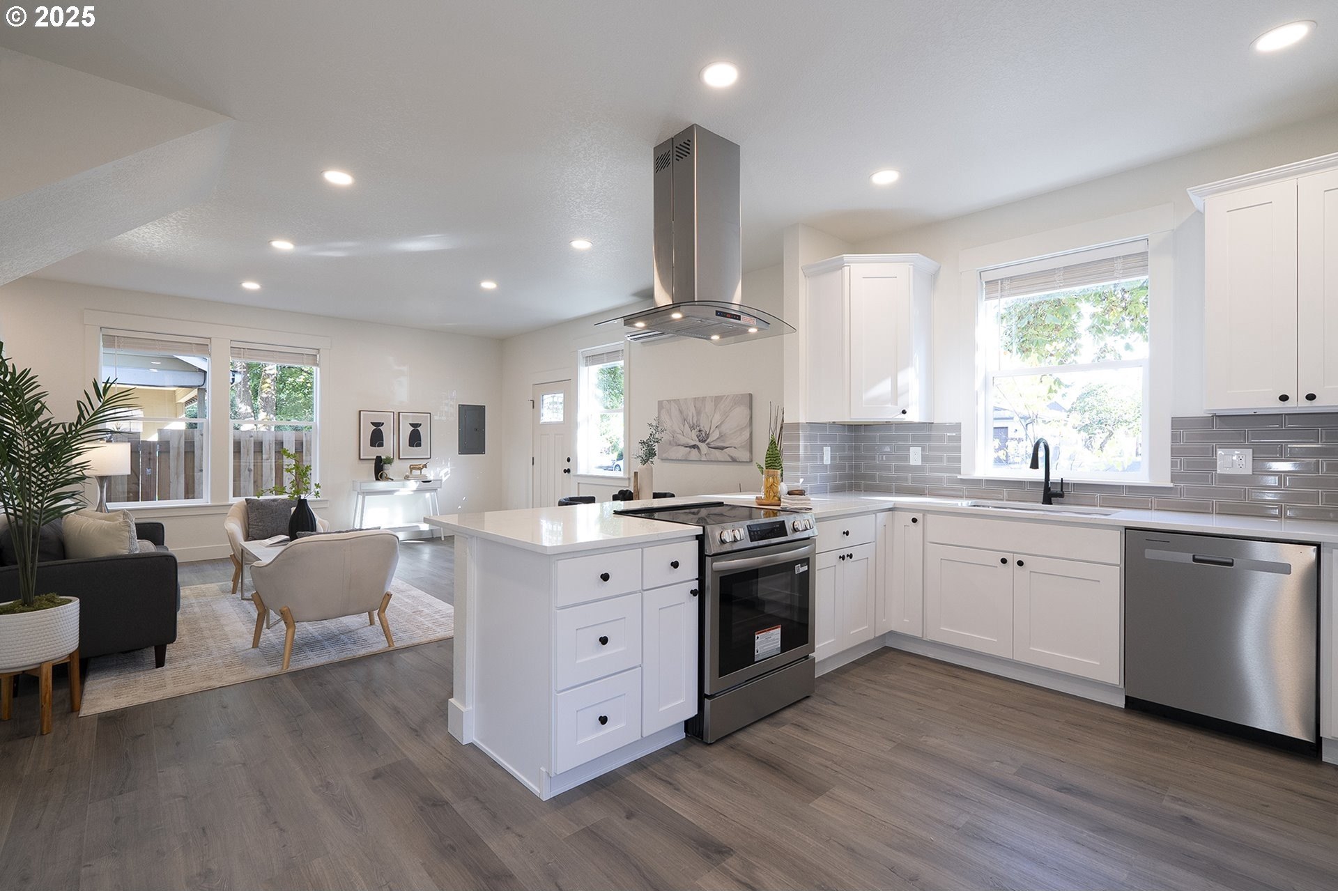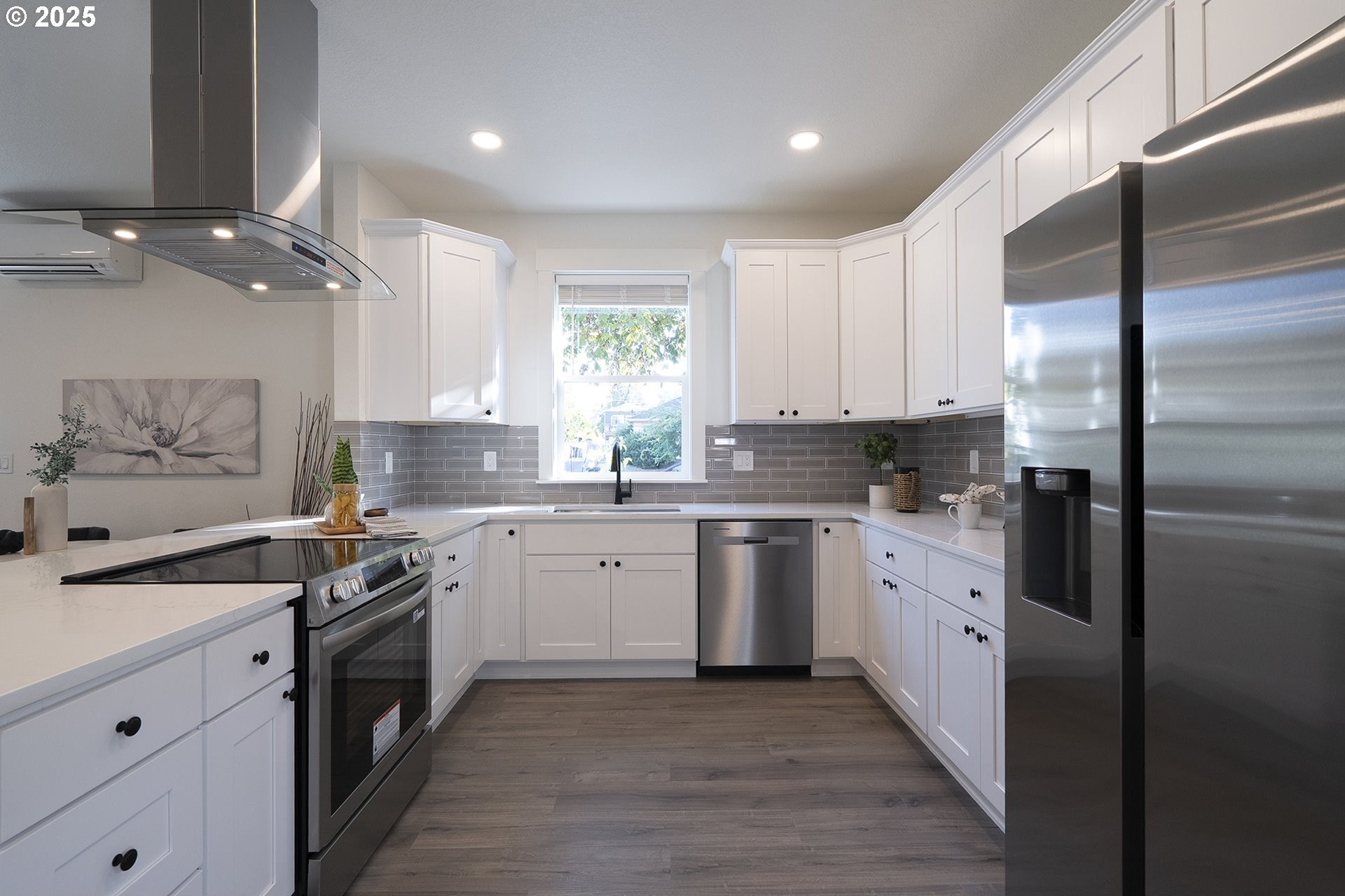 Beautiful brand new construction in the prime Woodstock District! Nine foot ceilings on the main floor with open floor plan. Luxury vinyl plank flooring, wood wrapped windows, eat bar, quartz countertops, stainless steel appliances including built in range, refrigerator, dishwasher and hood vent. Home comes with window coverings, washer and dryer. The entire upstairs is vaulted, each room feels spacious. TEN YEAR PROPERTY TAX ABATEMENT! Typically property taxes will be between $900 and $1,200 per year! Great Woodstock location, low price, very low taxes, new construction with builder warranty. It doesn't get any better!
