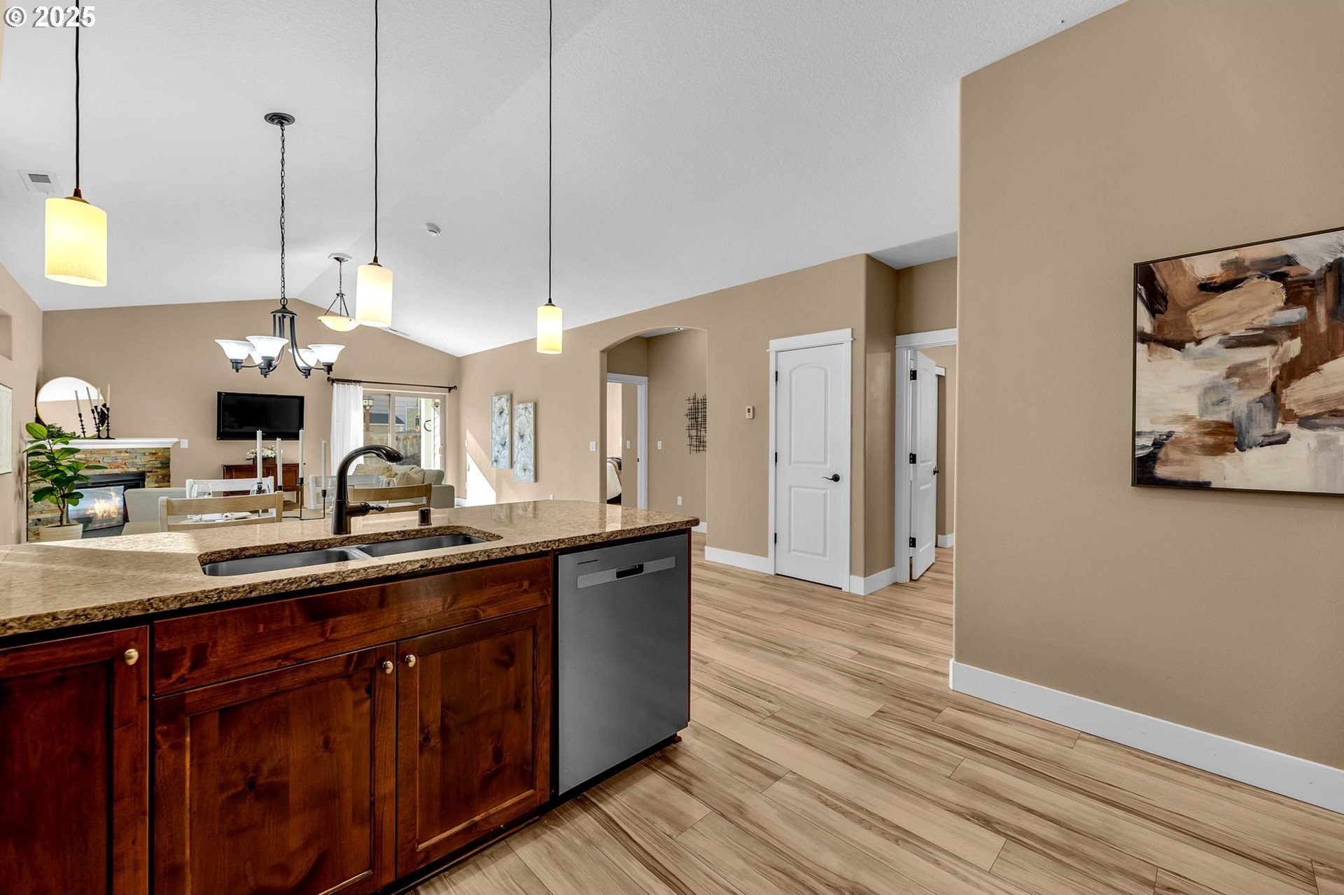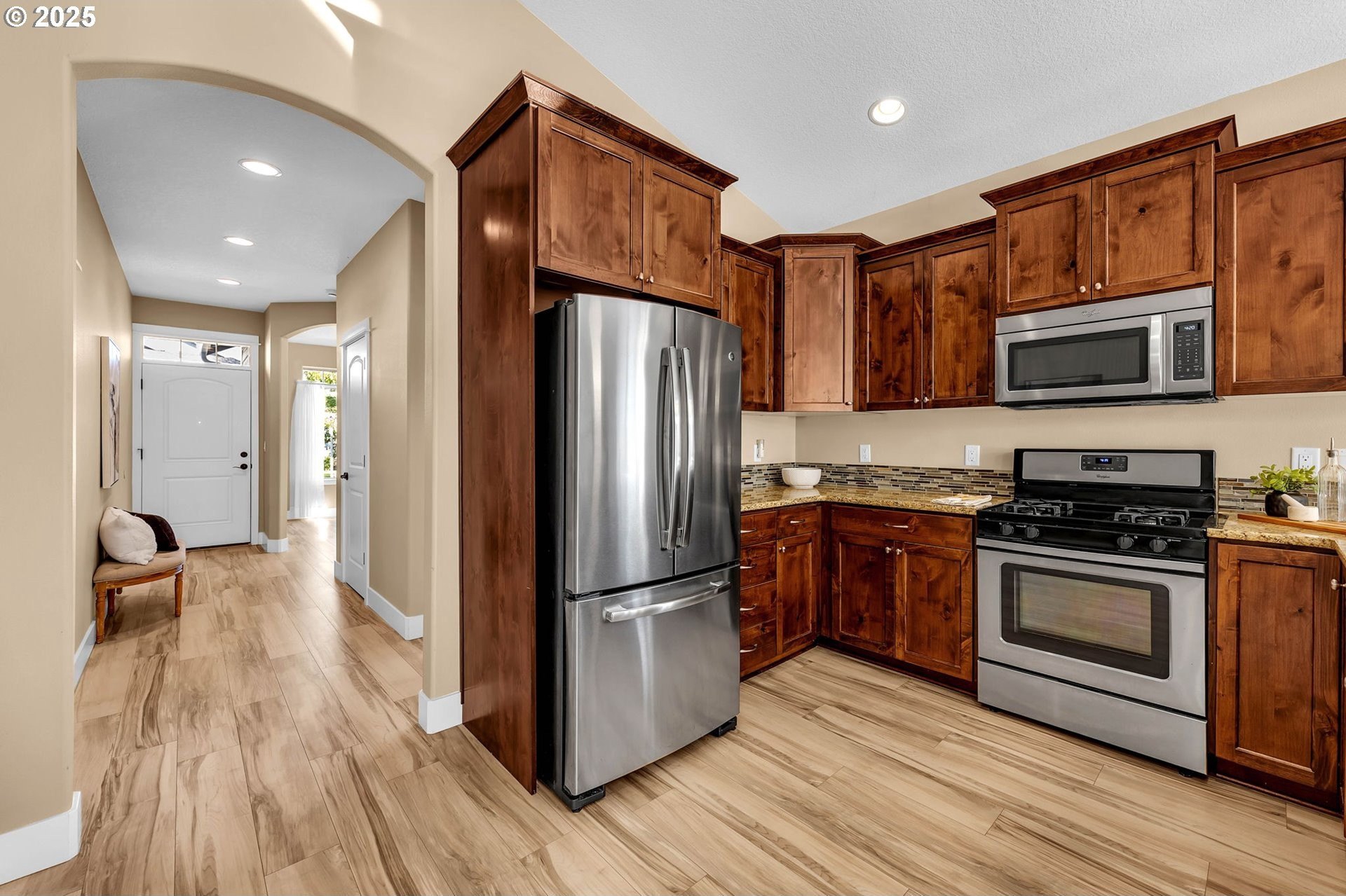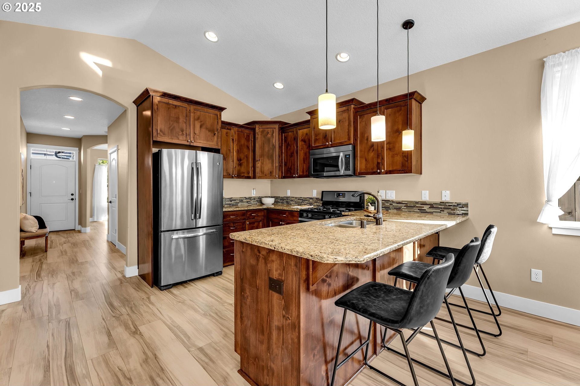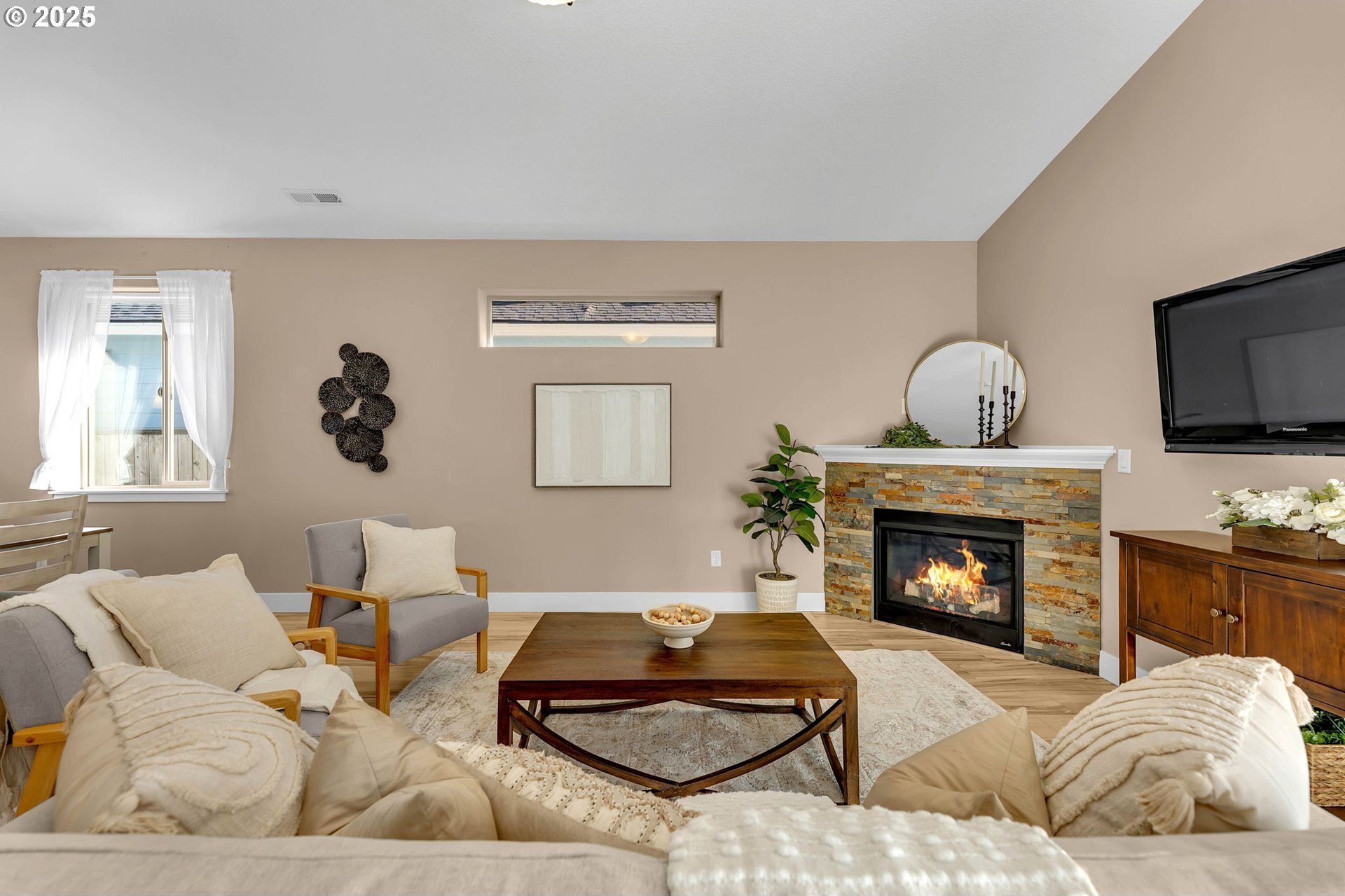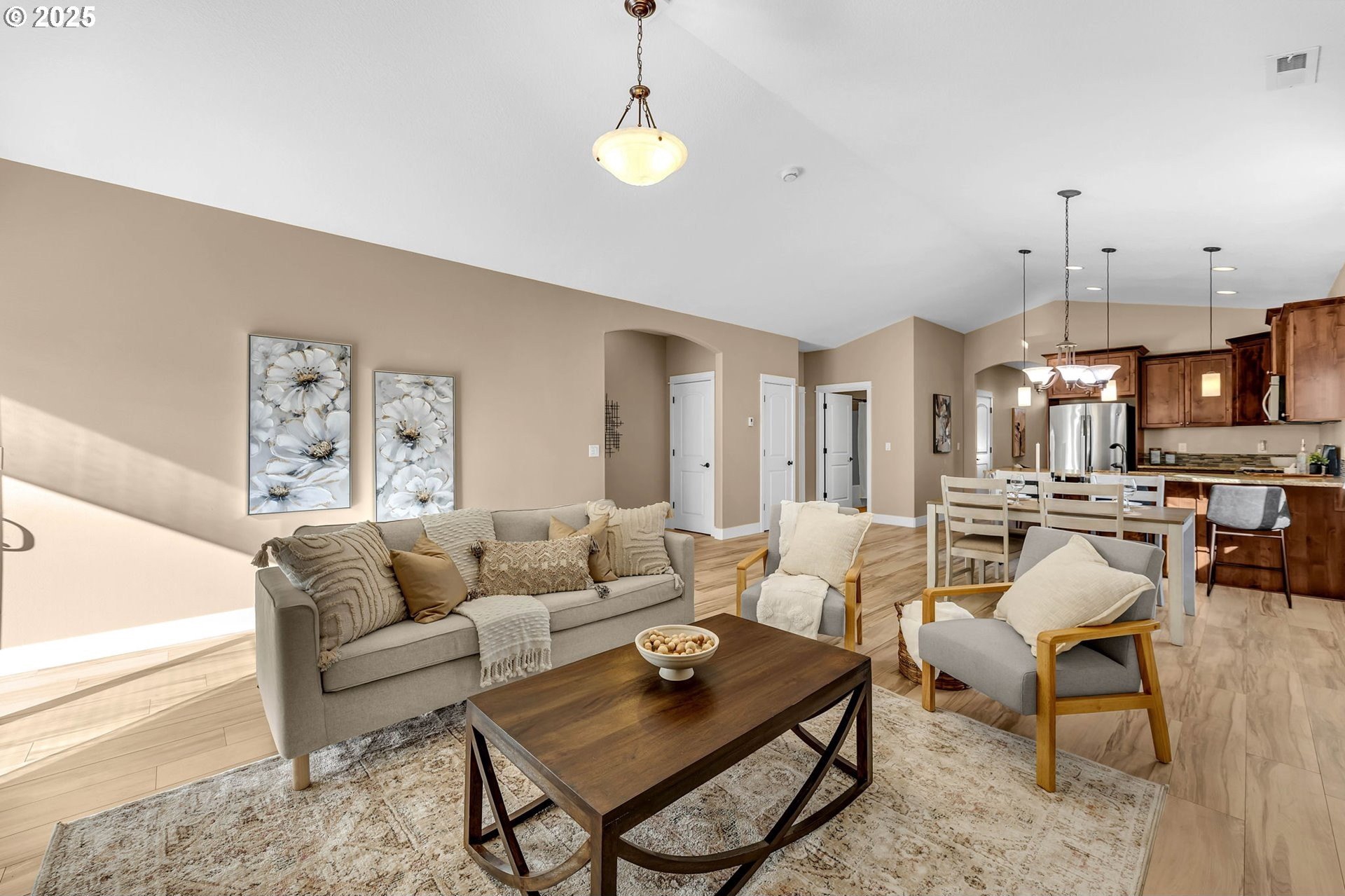 Welcome to this charming single-level home just minutes from downtown Vancouver! Thoughtfully updated, it offers easy living with laminate flooring throughout, vaulted ceilings, and plenty of natural light from large windows. The kitchen is both stylish and functional, with rich wood cabinetry, granite countertops, stainless steel appliances, a gas range, and pantry. The primary suite offers vaulted ceilings, a walk-in closet, and an ensuite bathroom featuring a dual-sink vanity and walk-in shower.You’ll find storage in all the right places—coat, linen, and pantry closets, plus built-in shelving in the laundry room and second bathroom. Step outside to a covered patio and low-maintenance backyard, perfect for relaxing or entertaining year-round. Located just four blocks from West Minnehaha Neighborhood Park, one mile from Ike Memorial Dog Park, and three miles from vibrant downtown Vancouver, this home puts everything you need within easy reach.