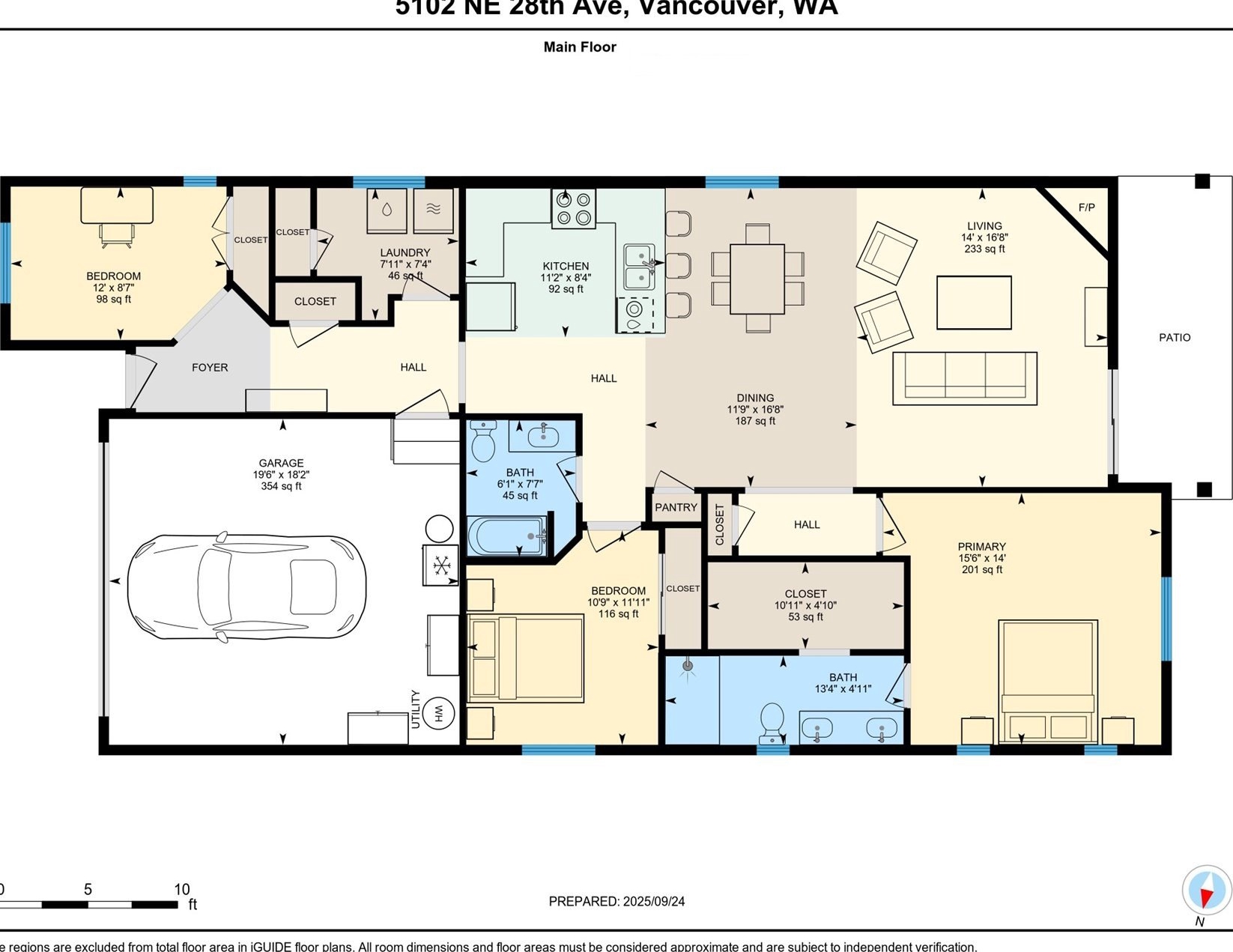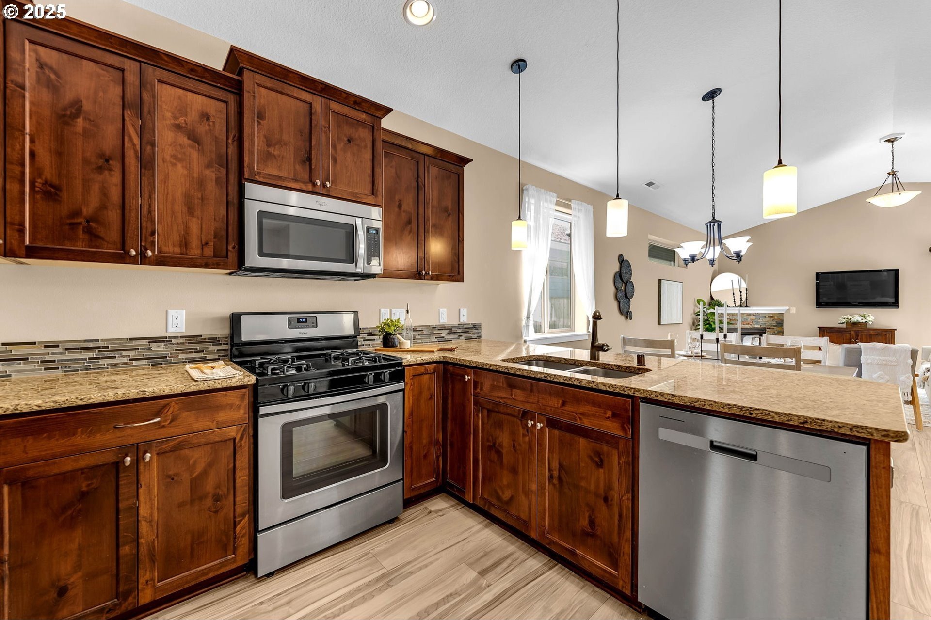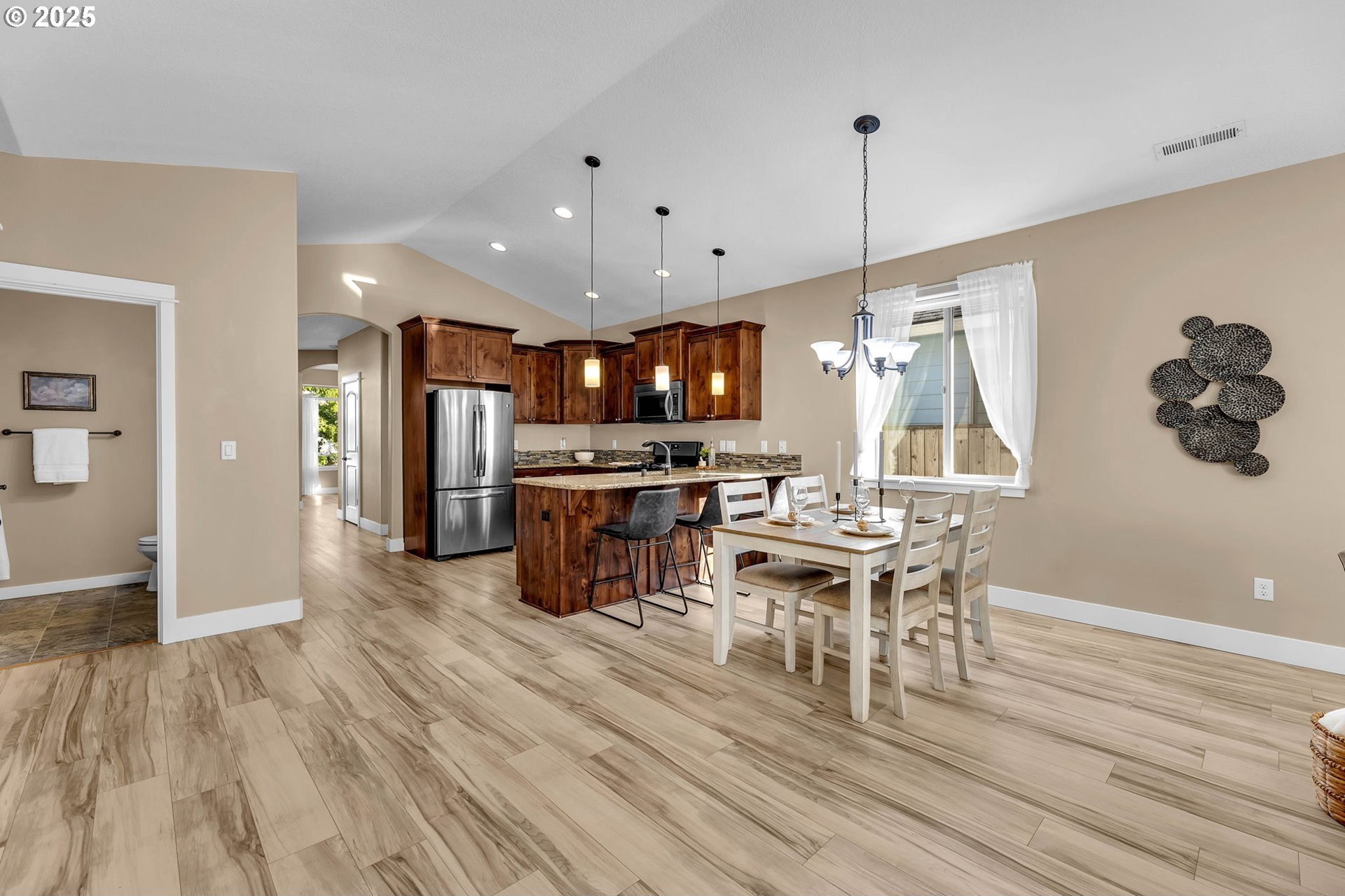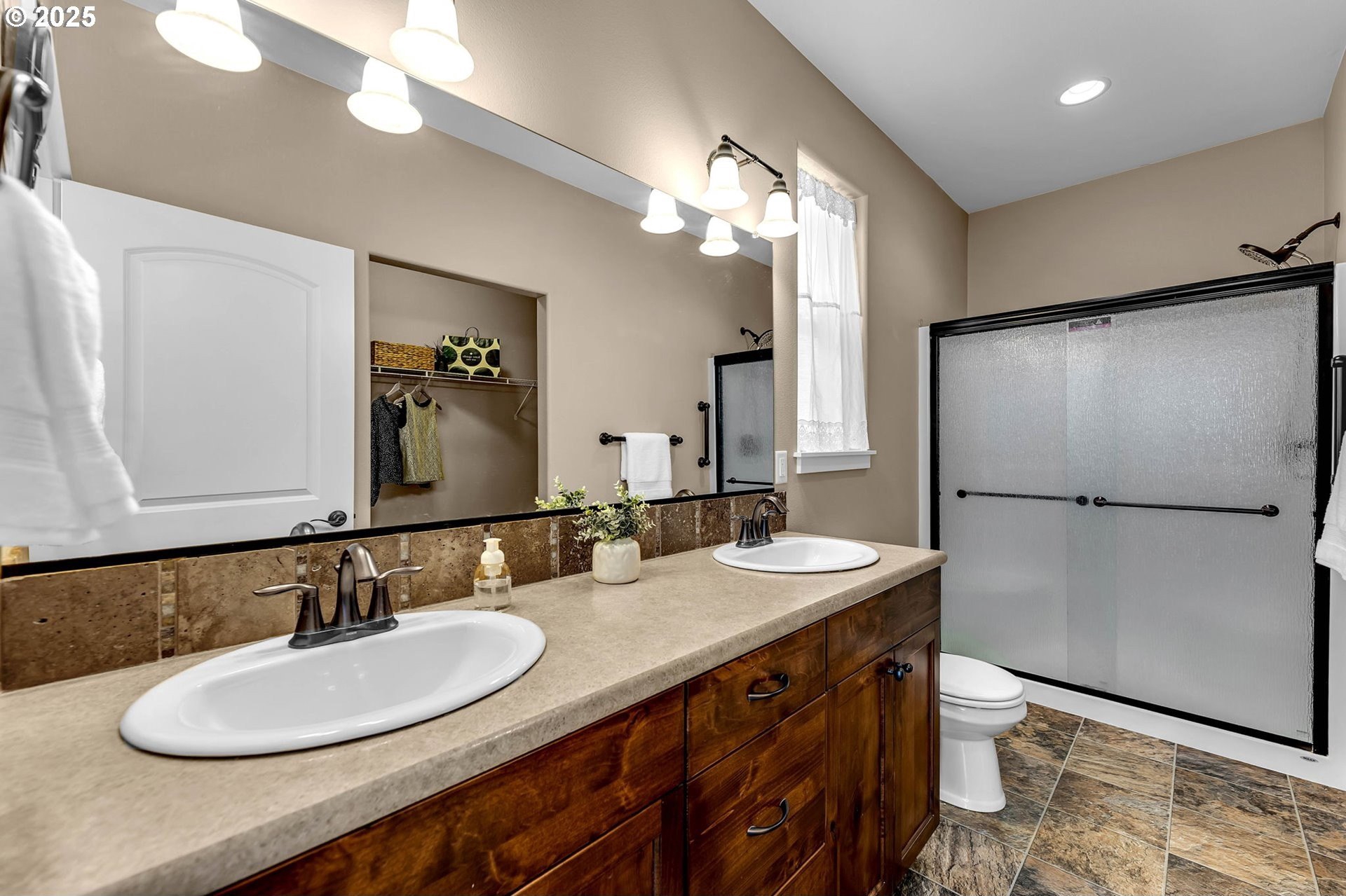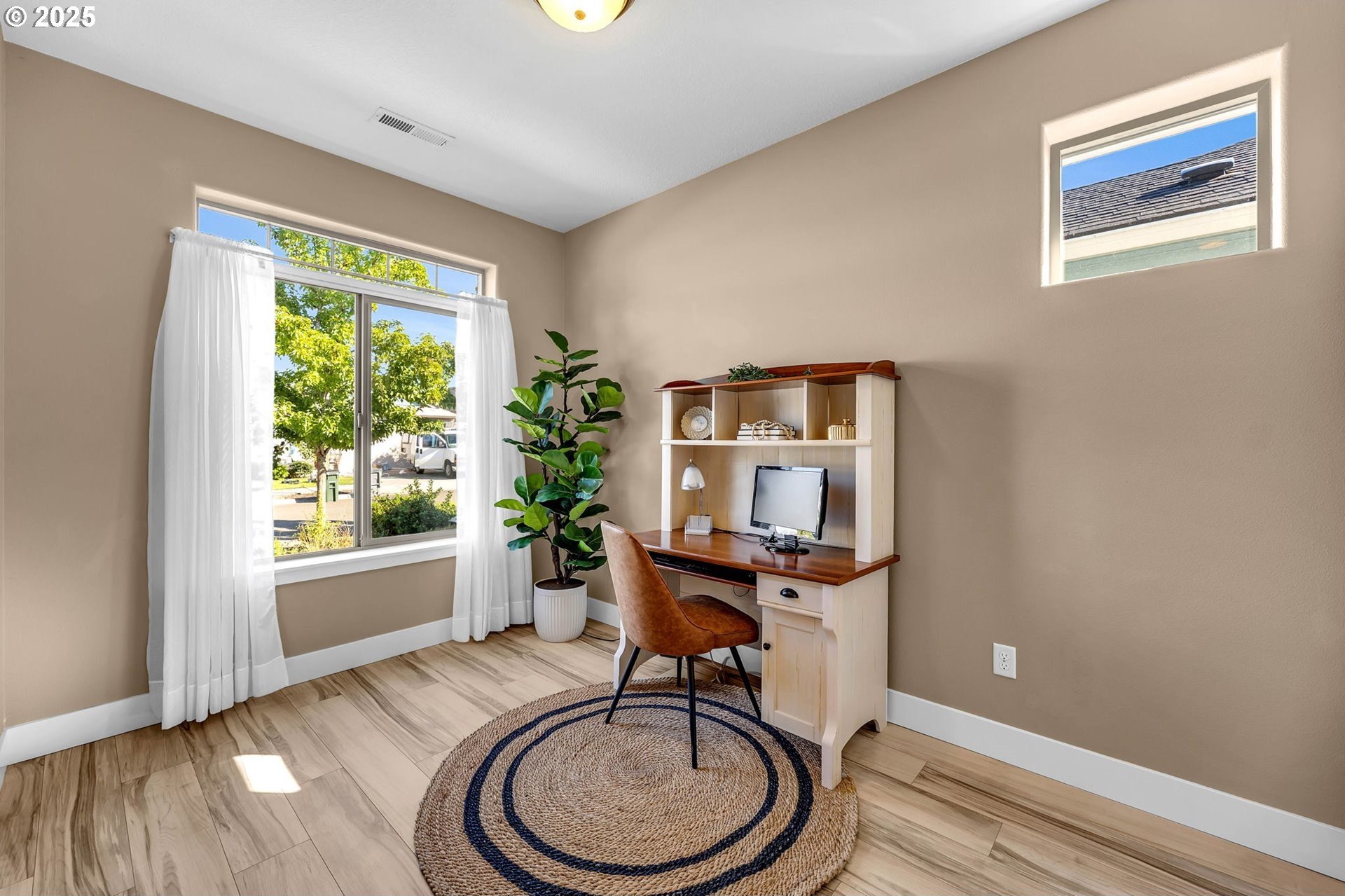 Welcome to this charming single-level home just minutes from downtown Vancouver! Thoughtfully updated, it offers easy living with laminate flooring throughout, vaulted ceilings, and plenty of natural light from large windows. The kitchen is both stylish and functional, with rich wood cabinetry, granite countertops, stainless steel appliances, a gas range, and pantry. The primary suite offers vaulted ceilings, a walk-in closet, and an ensuite bathroom featuring a dual-sink vanity and walk-in shower.You’ll find storage in all the right places—coat, linen, and pantry closets, plus built-in shelving in the laundry room and second bathroom. Step outside to a covered patio and low-maintenance backyard, perfect for relaxing or entertaining year-round. Located just four blocks from West Minnehaha Neighborhood Park, one mile from Ike Memorial Dog Park, and three miles from vibrant downtown Vancouver, this home puts everything you need within easy reach.