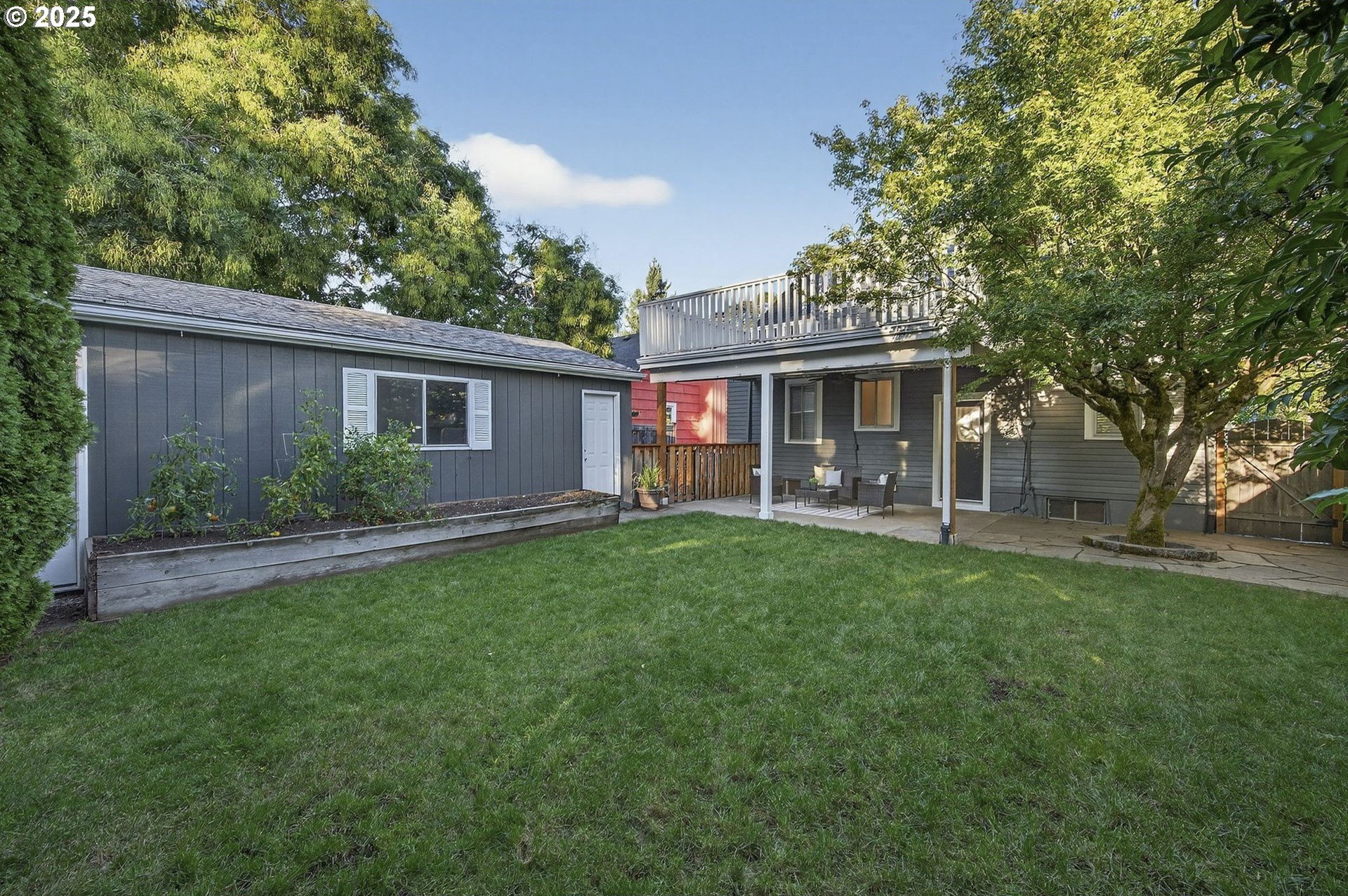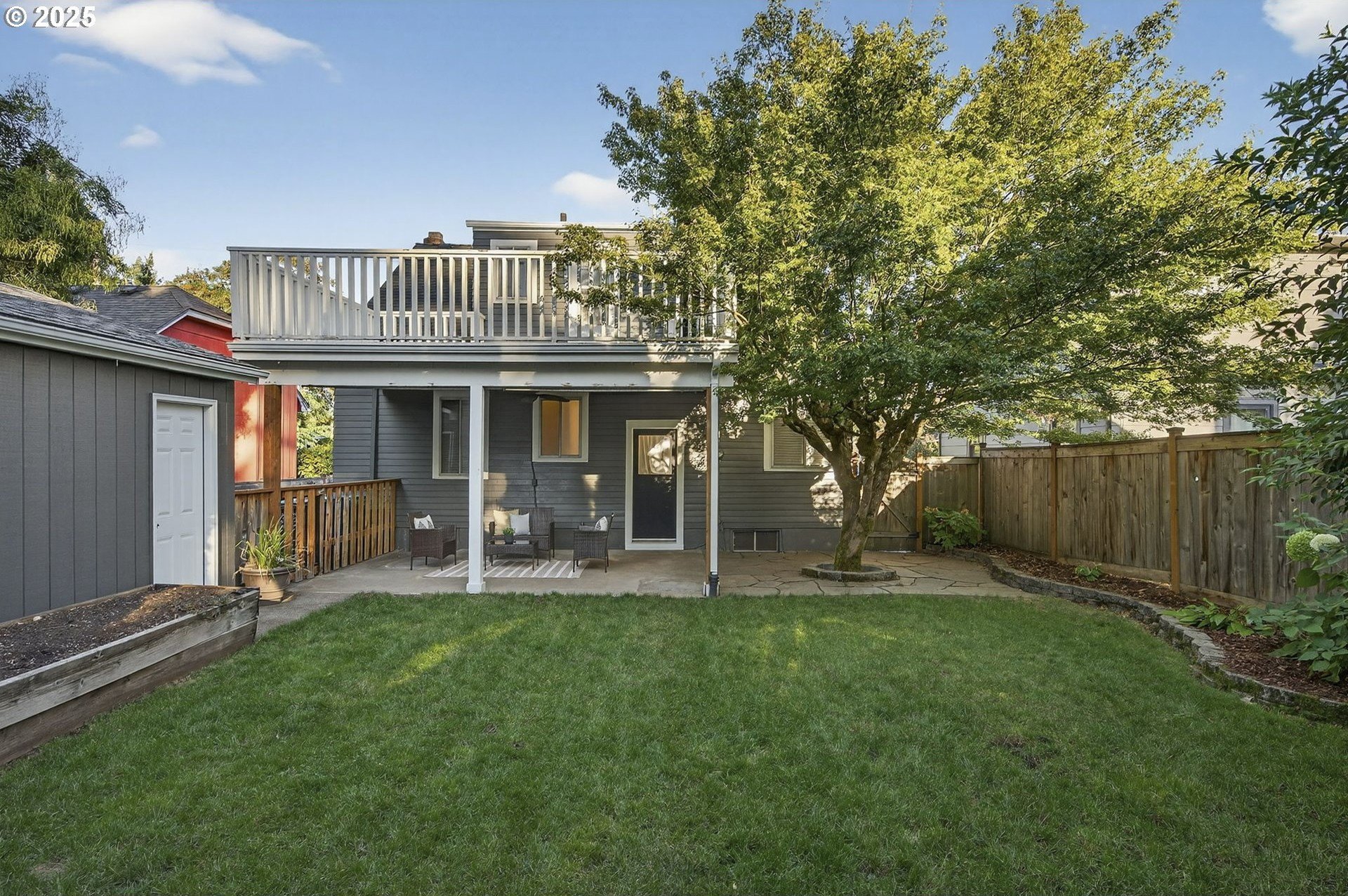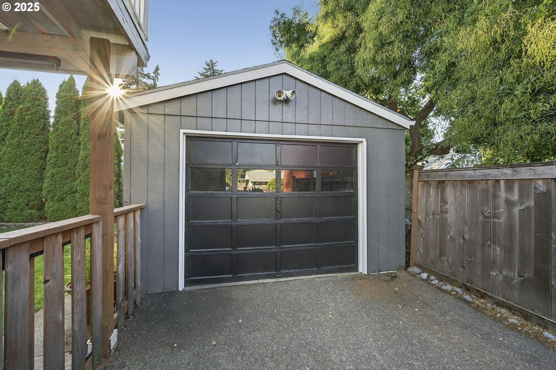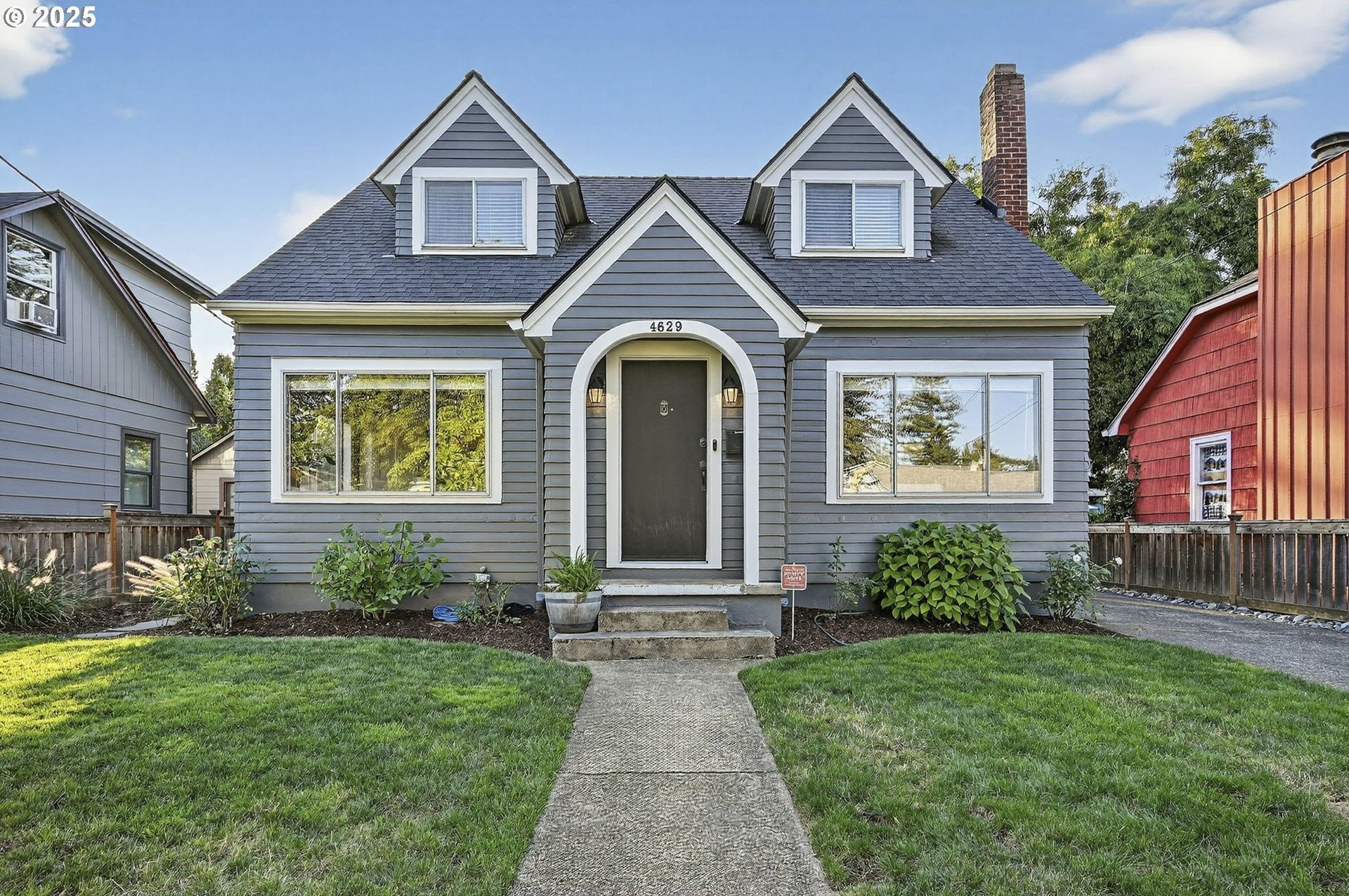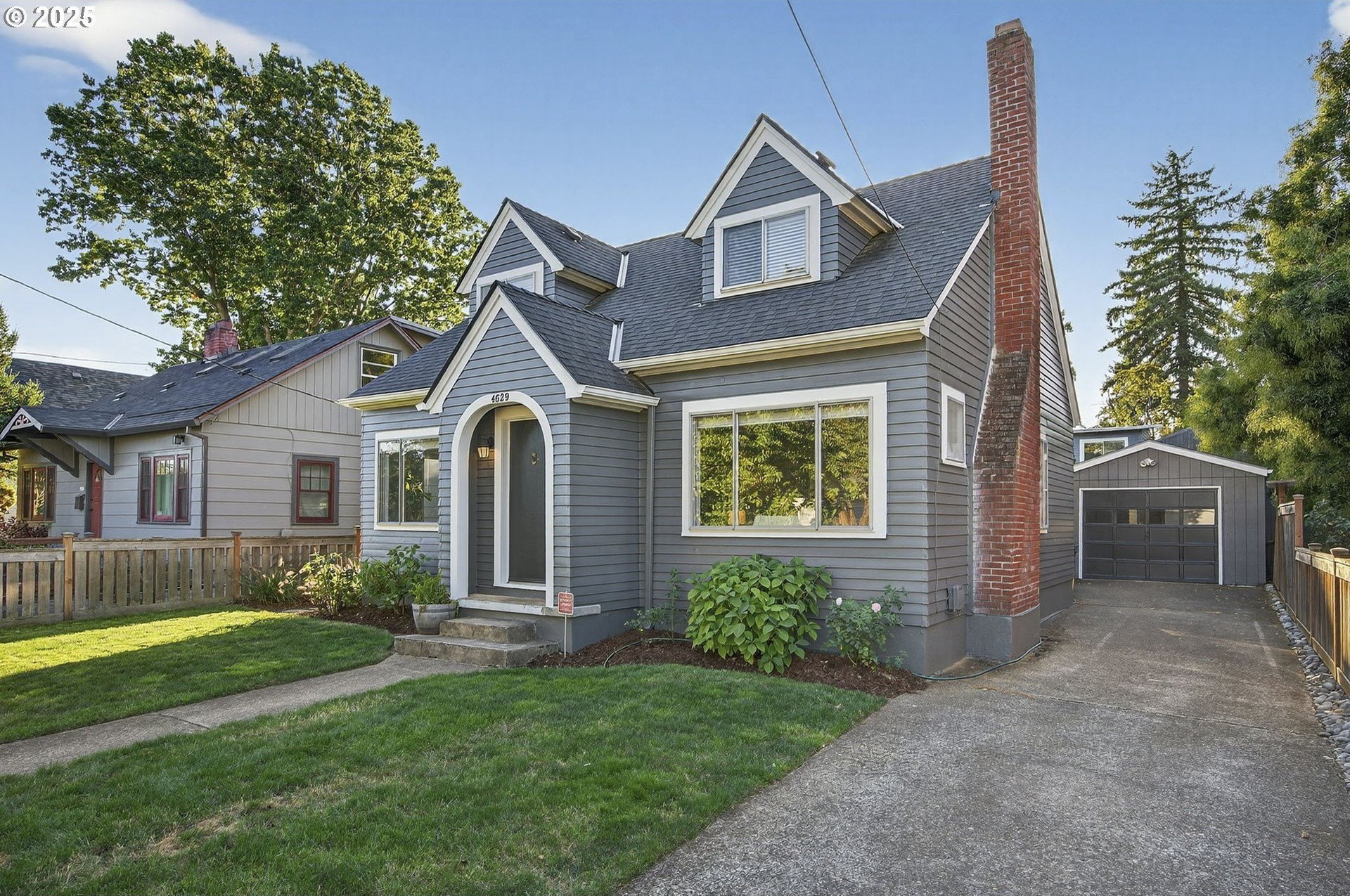 Welcome to this charming 1926 Cape Cod Revival in Portland’s Foster-Powell neighborhood. The main floor features a spacious living room with original hardwood floors, a wood burning fireplace, and large windows, along with a formal dining room, a kitchen with butcher block counters and a breakfast nook, a full bath, and a generously sized bedroom. Upstairs you will find two large bedrooms and a half bath with hall access to an upper deck overlooking the yard. The basement offers laundry, abundant storage, and space for a playroom or office. With a separate exterior connection from the covered patio, the basement provides potential for an ADU conversion subject to city approval while still allowing patio access for the main home. Outside, enjoy a covered patio retreat with string lights and a ceiling fan perfect for summer evenings, garden beds for those who love to grow their own, and a detached garage that is ideal for parking, projects, or a studio. A long gated driveway provides plenty of space for RV parking. This home is close to neighborhood favorites including the newly renovated Holgate Library, Mt. Scott Community Center & Park, Essex Park, and the soon to be renovated Portland Mercado with its vibrant food carts and community gatherings. Schedule your showing today!