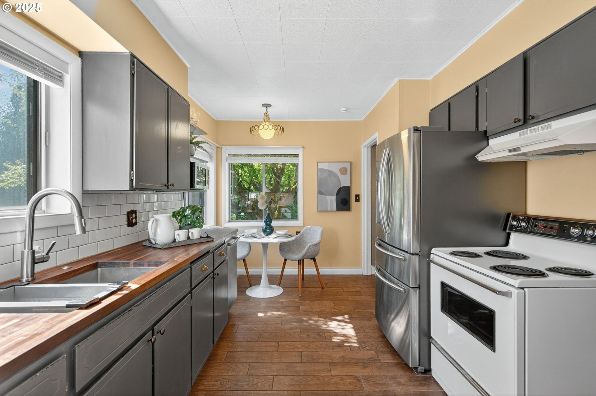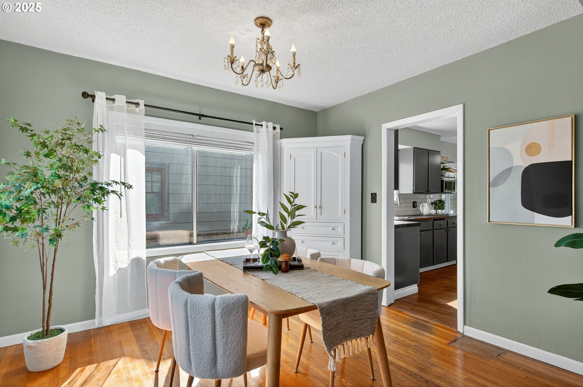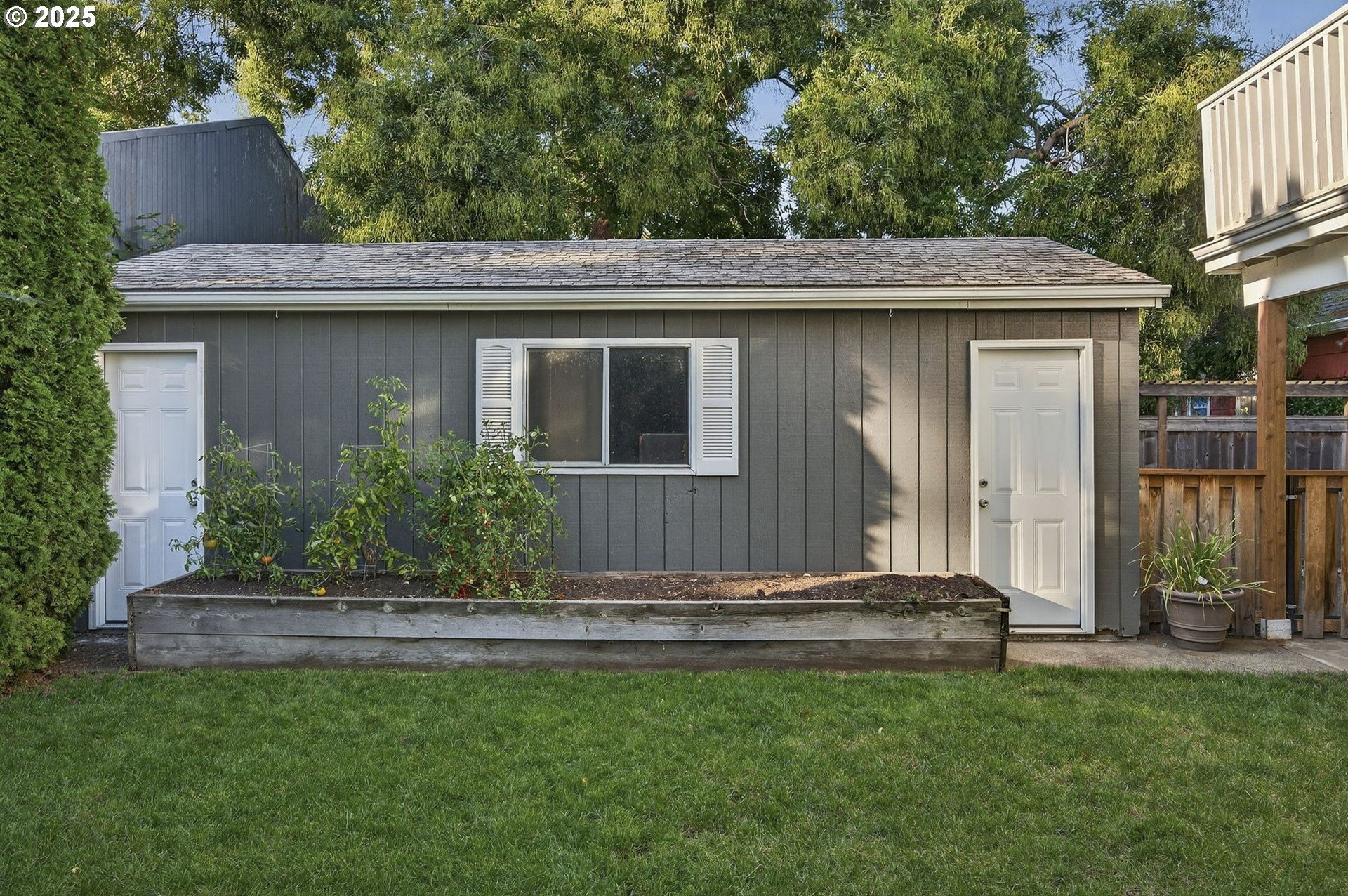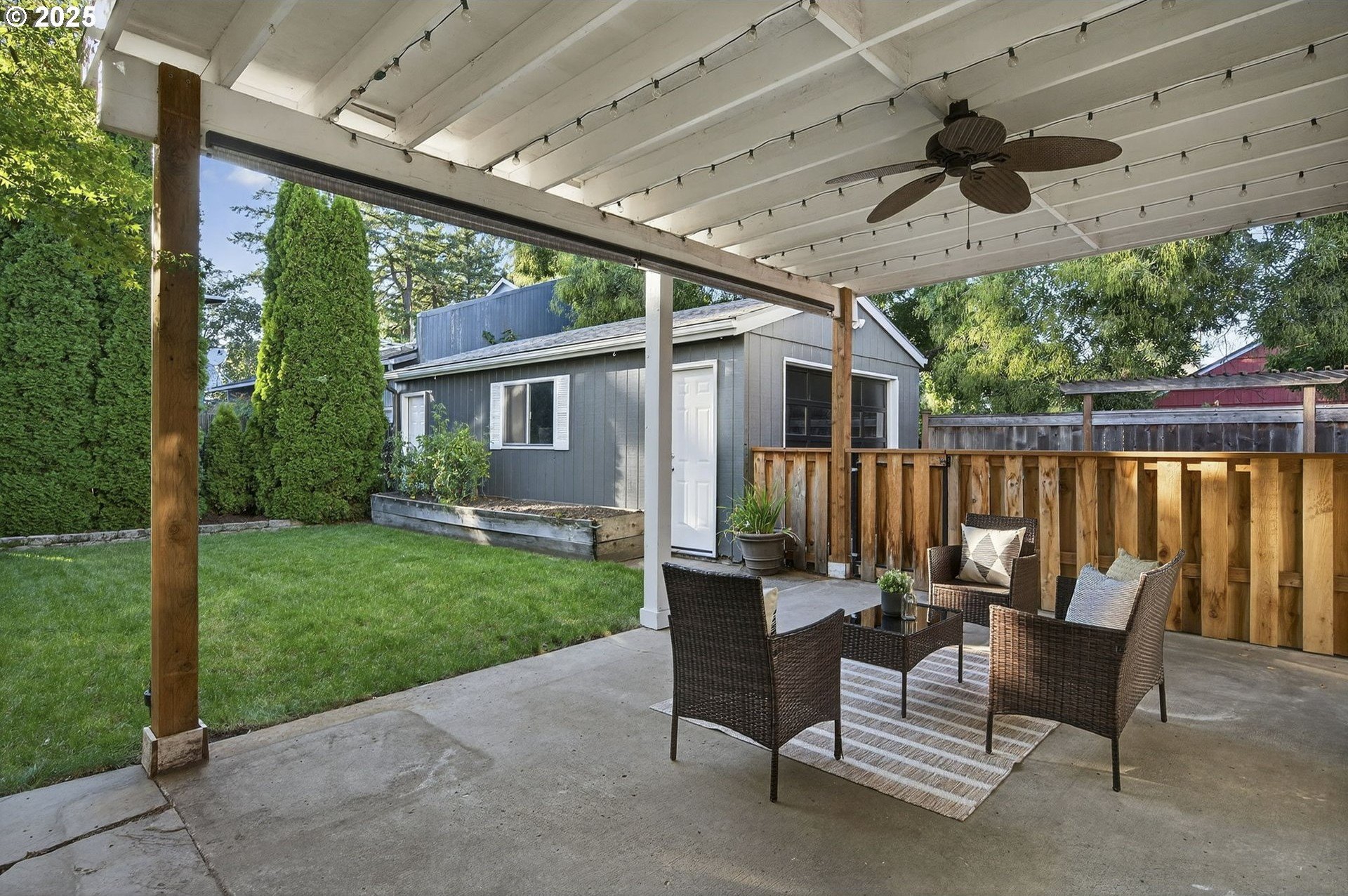 Welcome to this charming 1926 Cape Cod Revival in Portland’s Foster-Powell neighborhood. The main floor features a spacious living room with original hardwood floors, a wood burning fireplace, and large windows, along with a formal dining room, a kitchen with butcher block counters and a breakfast nook, a full bath, and a generously sized bedroom. Upstairs you will find two large bedrooms and a half bath with hall access to an upper deck overlooking the yard. The basement offers laundry, abundant storage, and space for a playroom or office. With a separate exterior connection from the covered patio, the basement provides potential for an ADU conversion subject to city approval while still allowing patio access for the main home. Outside, enjoy a covered patio retreat with string lights and a ceiling fan perfect for summer evenings, garden beds for those who love to grow their own, and a detached garage that is ideal for parking, projects, or a studio. A long gated driveway provides plenty of space for RV parking. This home is close to neighborhood favorites including the newly renovated Holgate Library, Mt. Scott Community Center & Park, Essex Park, and the soon to be renovated Portland Mercado with its vibrant food carts and community gatherings. Schedule your showing today!