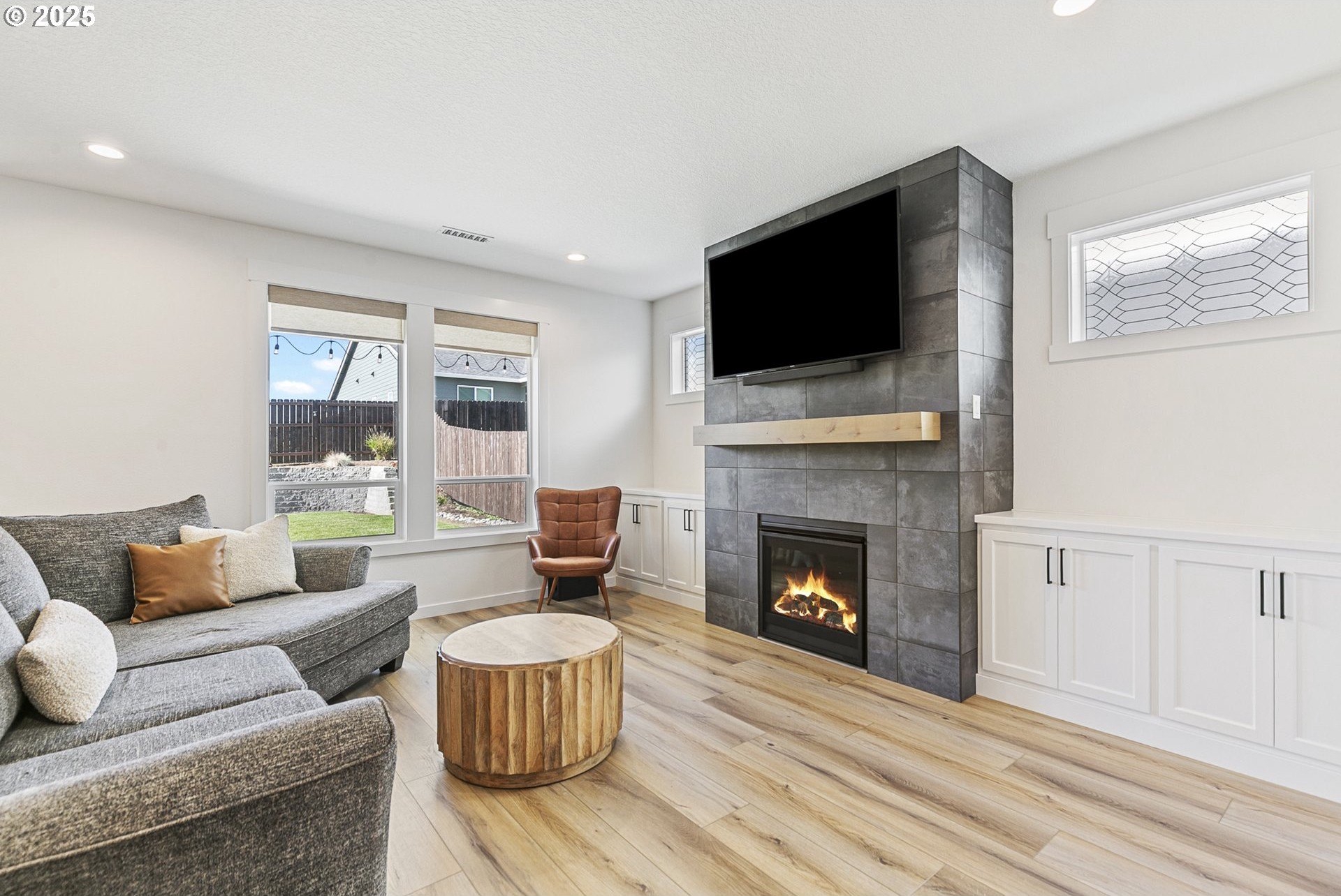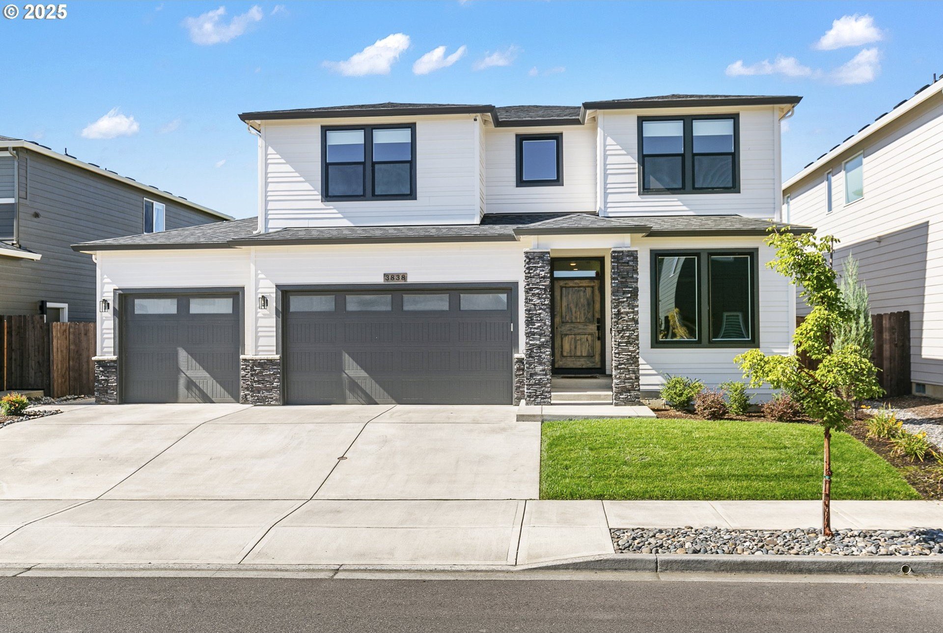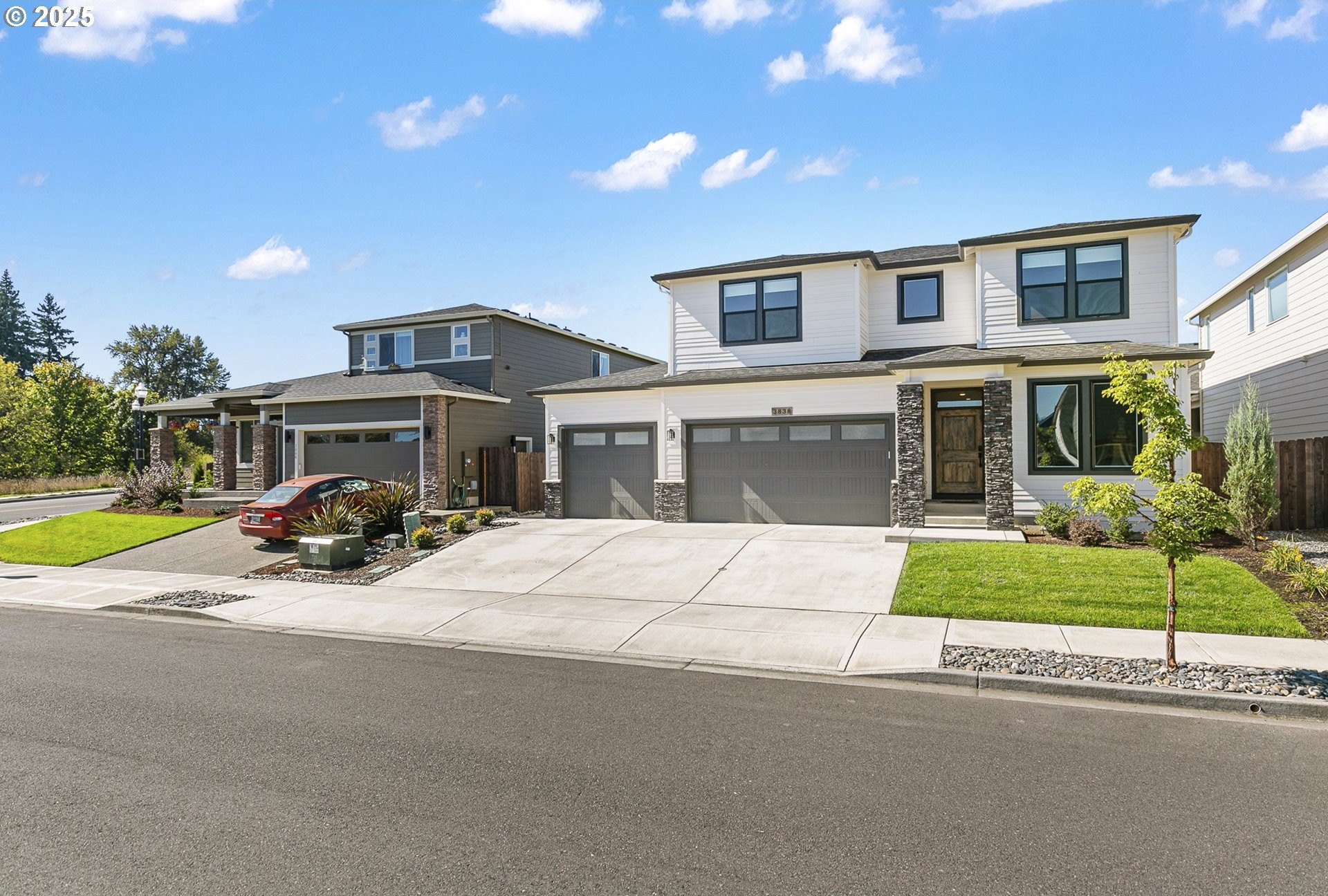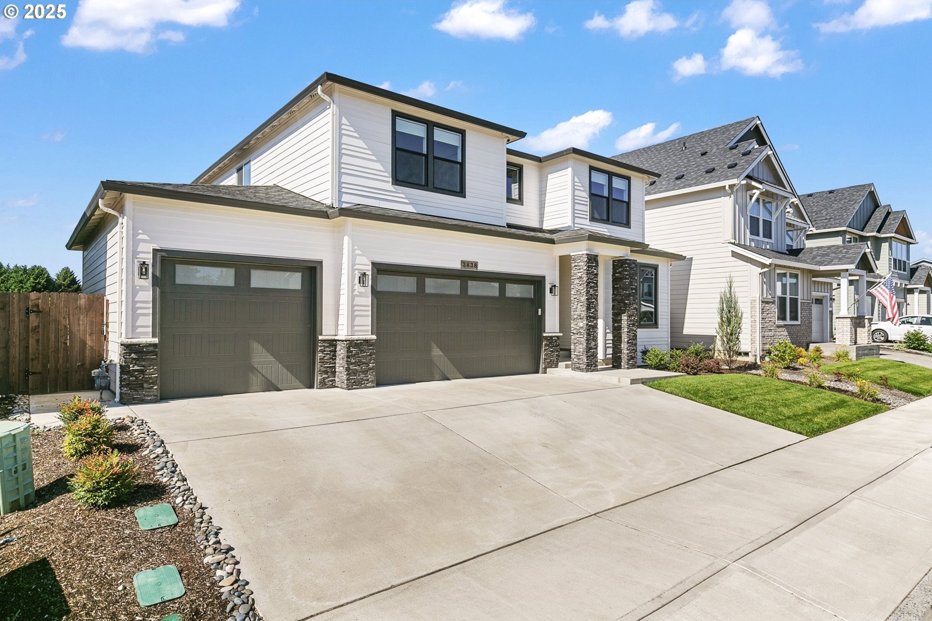 Welcome to this beautifully designed home featuring 9’ ceilings and LVP flooring throughout the main level. The versatile office/guest room with barn door sits just off the entry. A cozy gas fireplace with built-ins creates the heart of the living room, while the chef’s kitchen offers stainless steel appliances, quartz countertops, farmhouse sink, cooktop with separate oven, Microwave, walk-in pantry, open shelving, and coffee bar. Upstairs, the spacious primary suite custom barn door, soaking tub, dual-head tile shower, and walk-in closet. Three additional bedrooms, a bonus room that was used as an office, and full hall bath complete the upper level. Enjoy outdoor living with a covered patio, rear deck, and full sprinkler system. Oversized 3-car garage with overhead storage, EV CHARGER! plus HOA covering front yard landscaping.