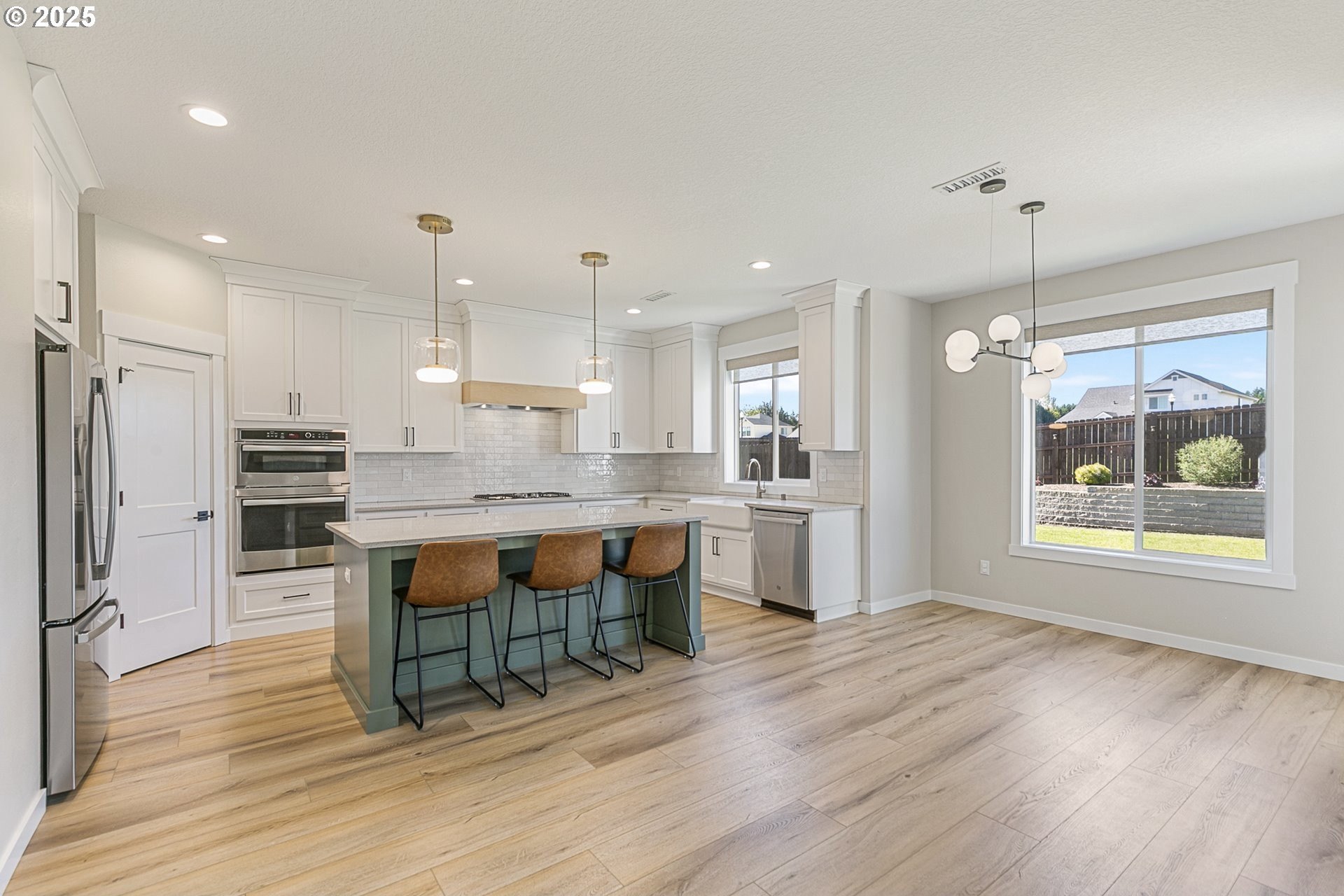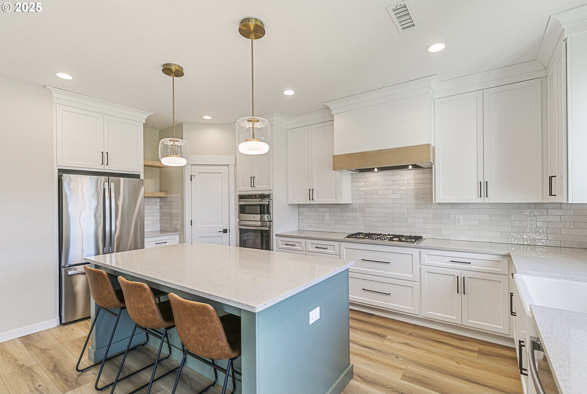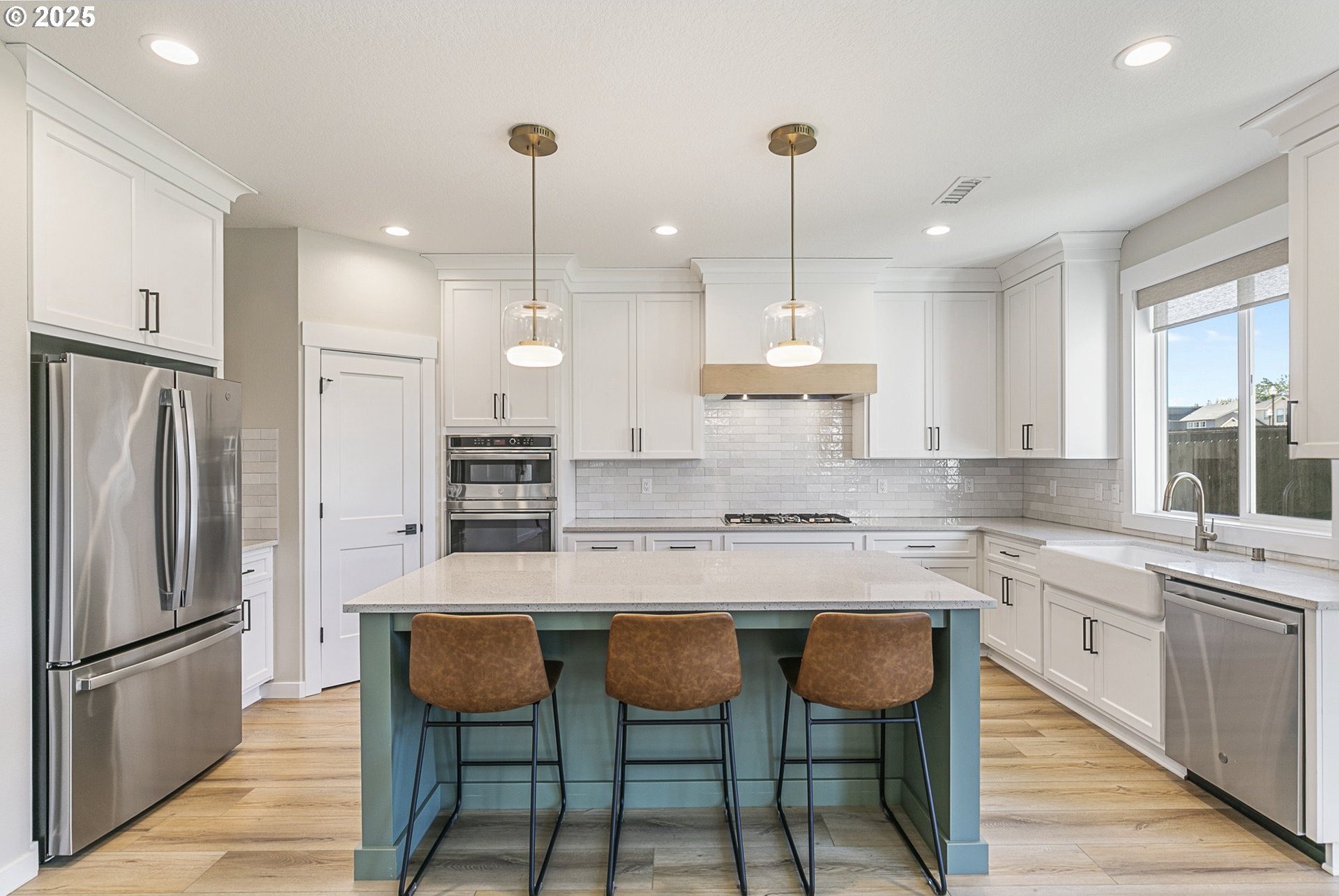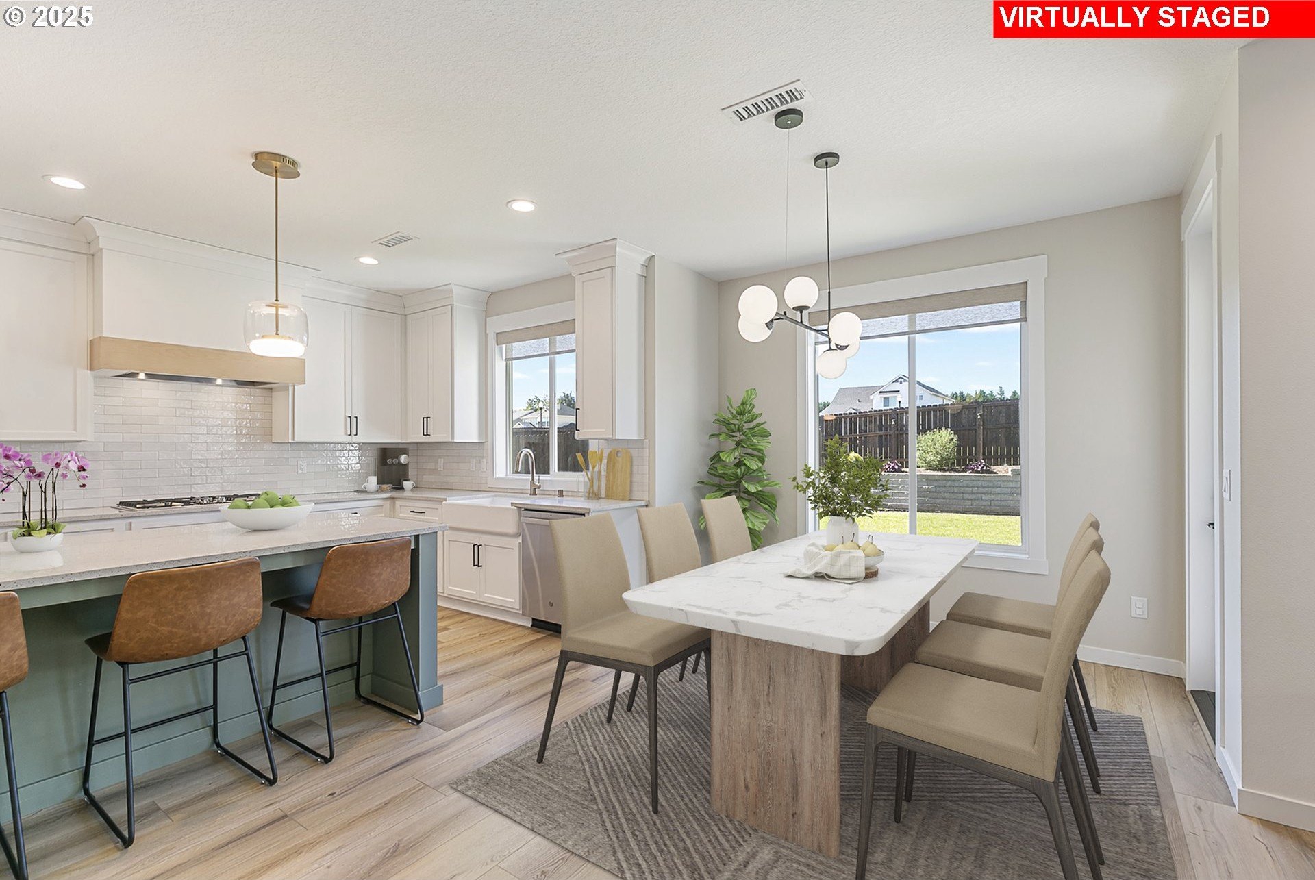Welcome to this beautifully designed home featuring 9’ ceilings and LVP flooring throughout the main level. The versatile office/guest room with barn door sits just off the entry. A cozy gas fireplace with built-ins creates the heart of the living room, while the chef’s kitchen offers stainless steel appliances, quartz countertops, farmhouse sink, cooktop with separate oven, Microwave, walk-in pantry, open shelving, and coffee bar. Upstairs, the spacious primary suite custom barn door, soaking tub, dual-head tile shower, and walk-in closet. Three additional bedrooms, a bonus room that was used as an office, and full hall bath complete the upper level. Enjoy outdoor living with a covered patio, rear deck, and full sprinkler system. Oversized 3-car garage with overhead storage, EV CHARGER! plus HOA covering front yard landscaping.