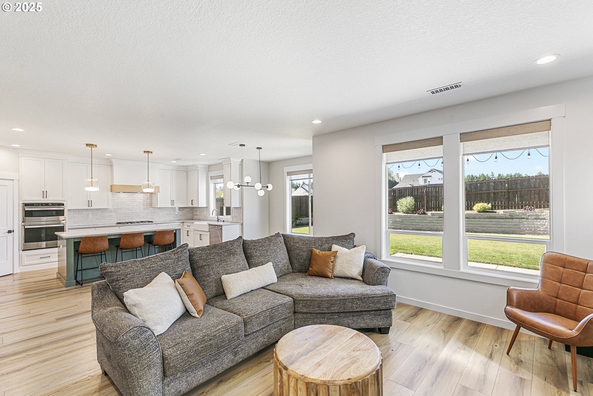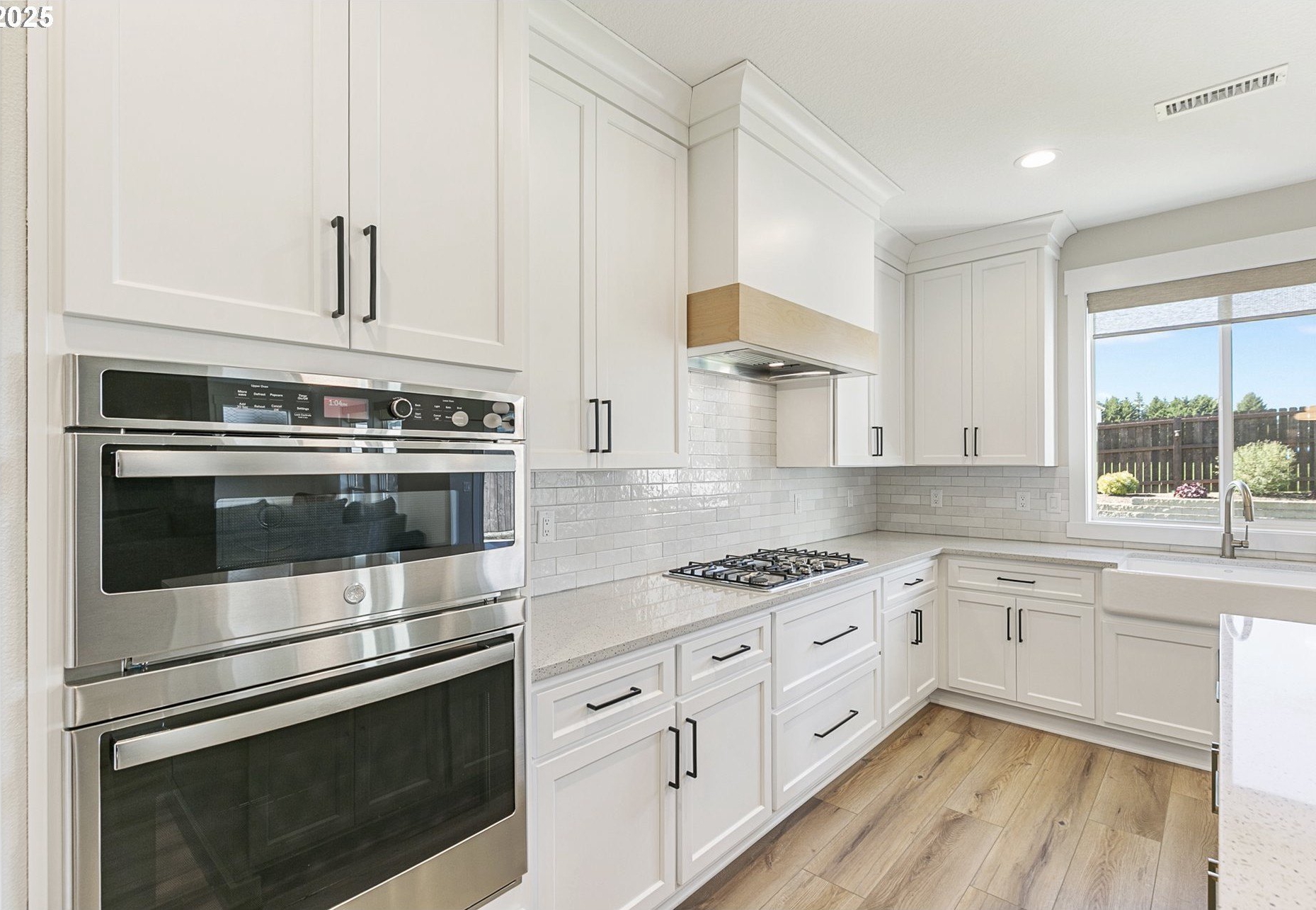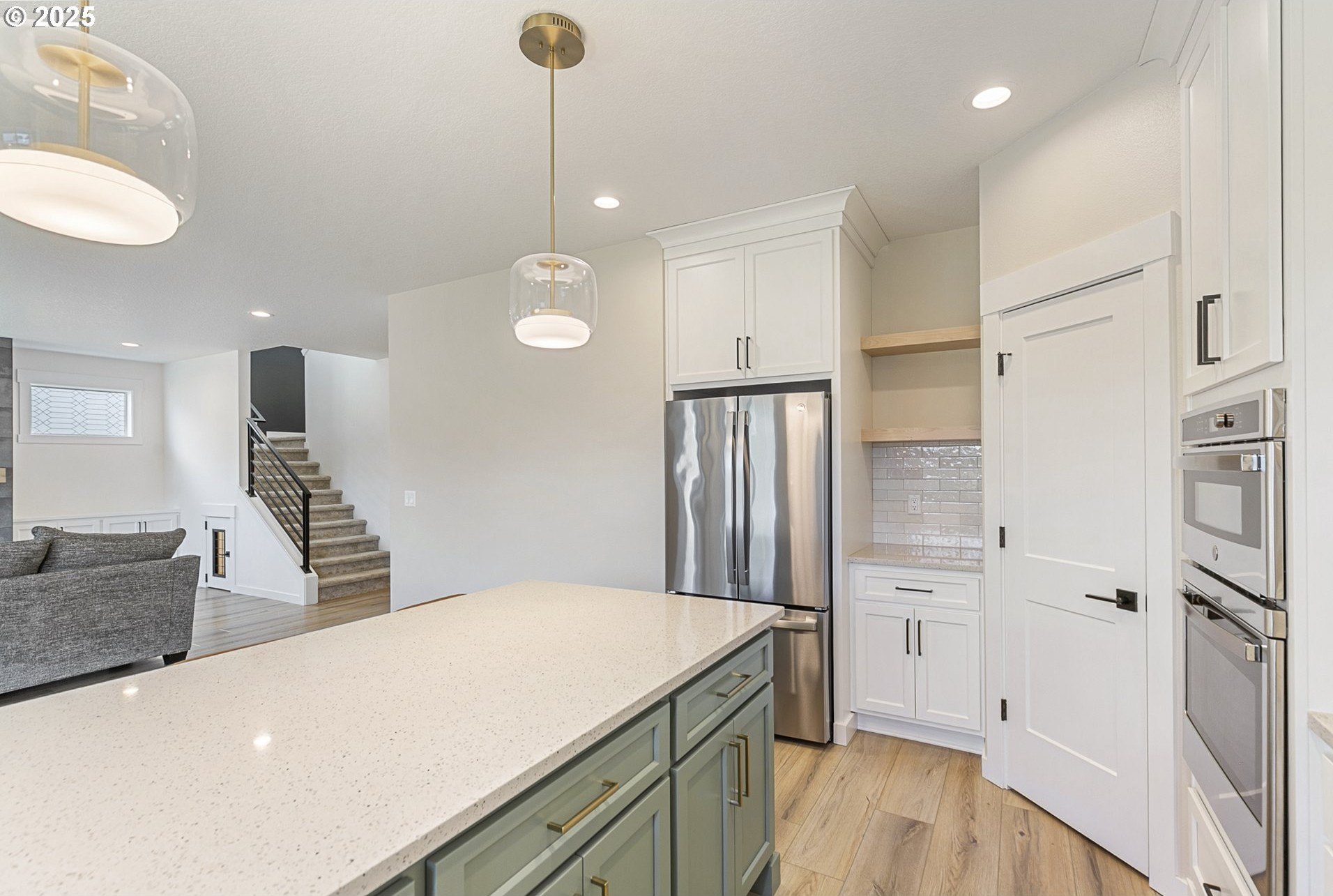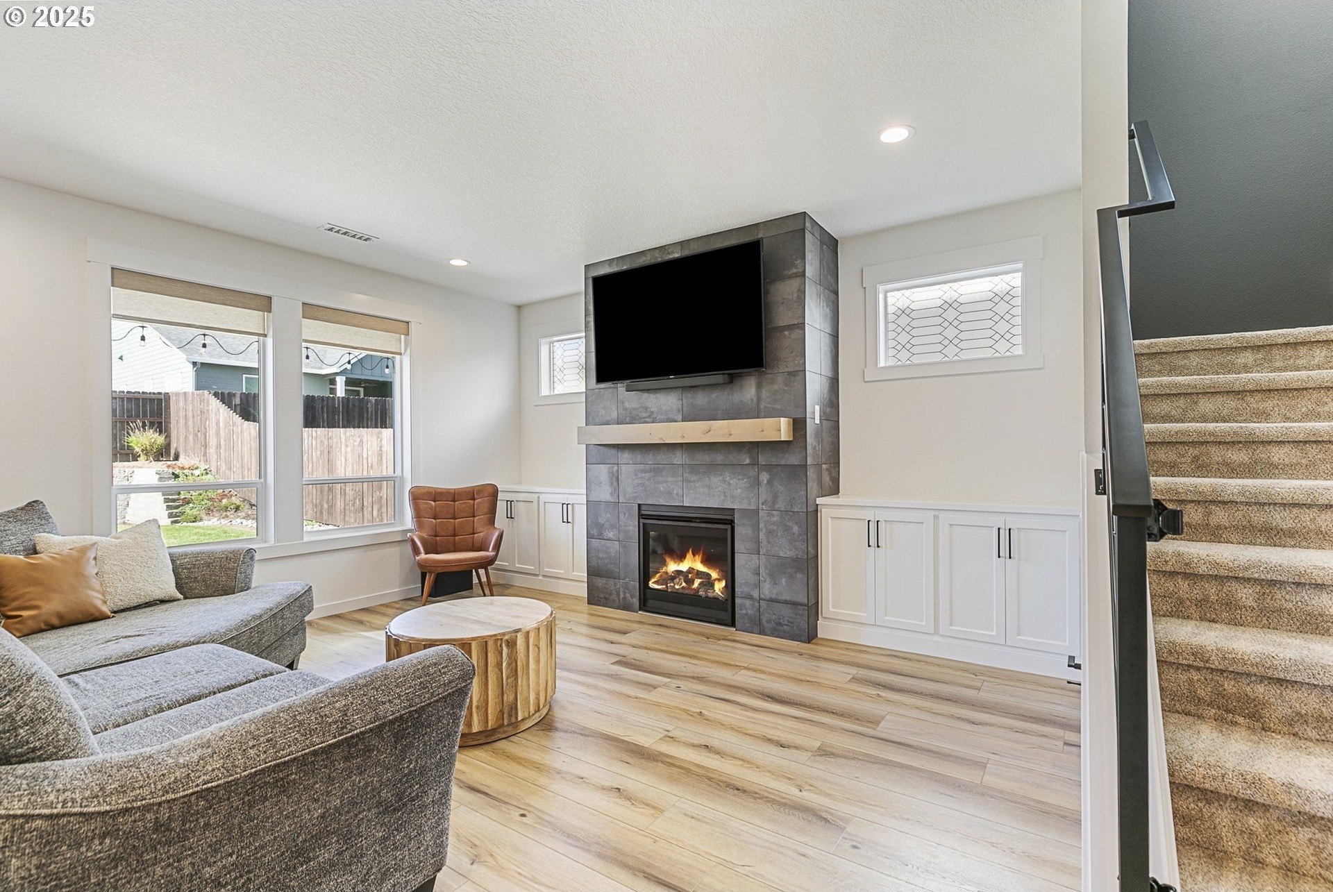 Welcome to this beautifully designed home featuring 9’ ceilings and LVP flooring throughout the main level. The versatile office/guest room with barn door sits just off the entry. A cozy gas fireplace with built-ins creates the heart of the living room, while the chef’s kitchen offers stainless steel appliances, quartz countertops, farmhouse sink, cooktop with separate oven, Microwave, walk-in pantry, open shelving, and coffee bar. Upstairs, the spacious primary suite custom barn door, soaking tub, dual-head tile shower, and walk-in closet. Three additional bedrooms, a bonus room that was used as an office, and full hall bath complete the upper level. Enjoy outdoor living with a covered patio, rear deck, and full sprinkler system. Oversized 3-car garage with overhead storage, EV CHARGER! plus HOA covering front yard landscaping.