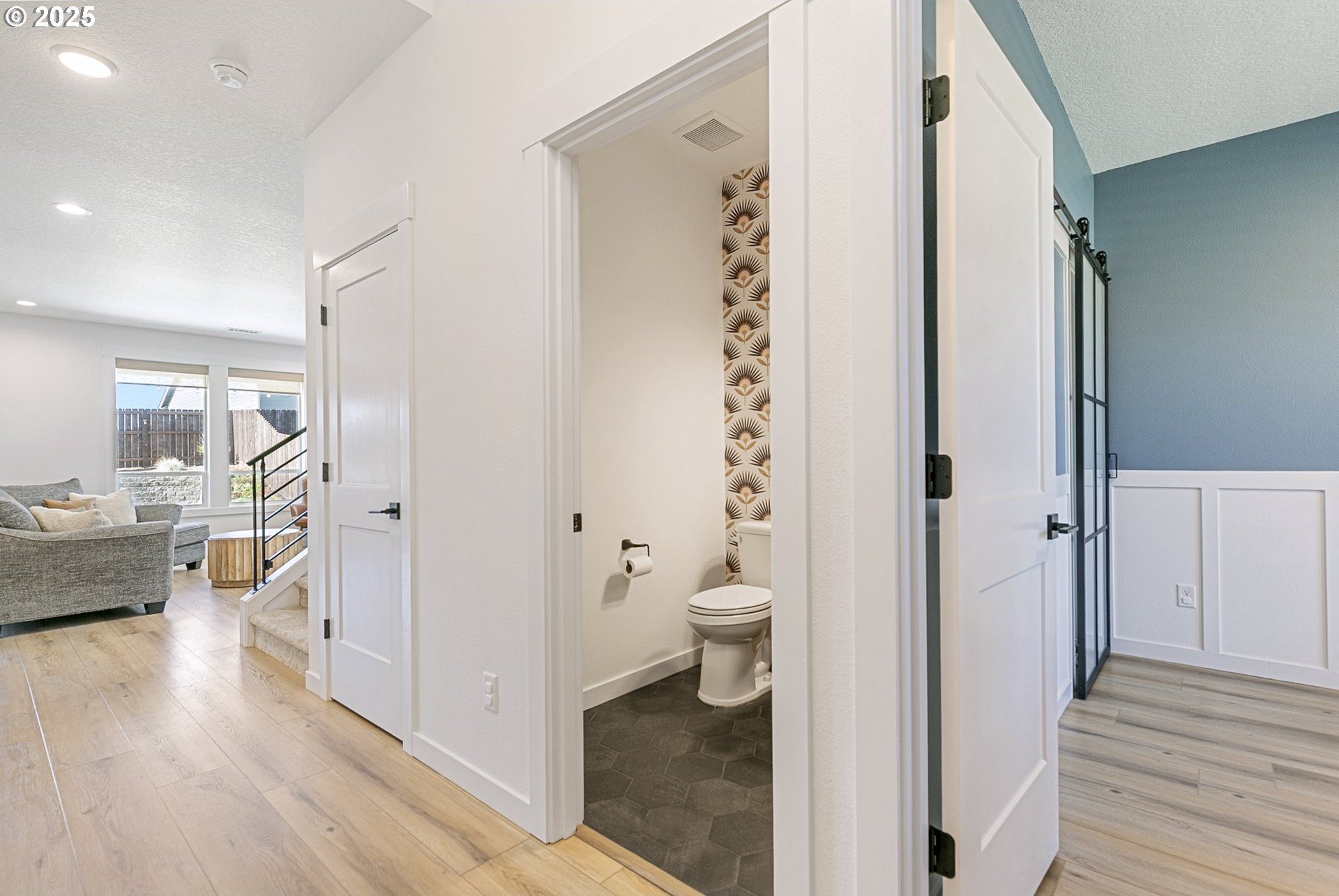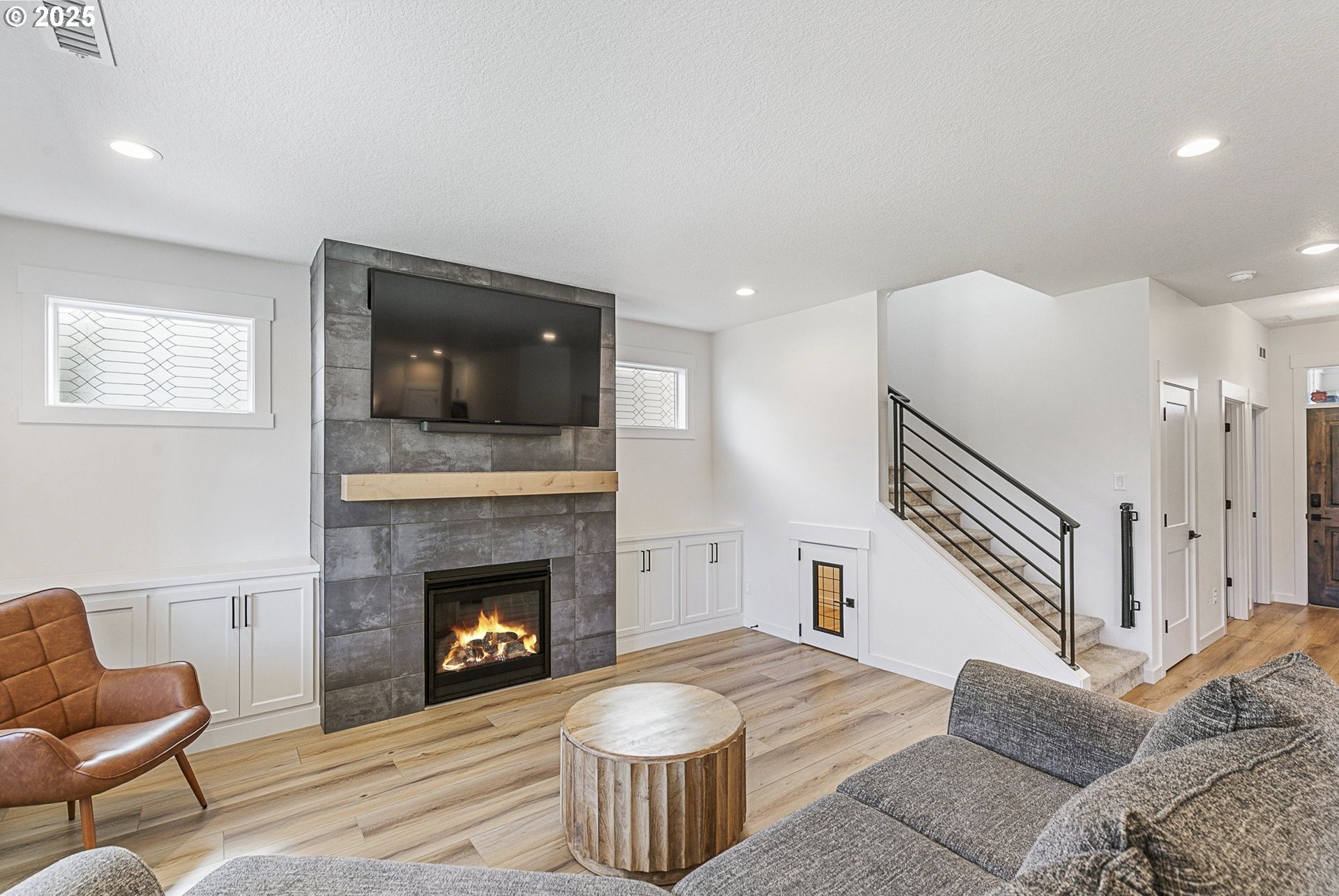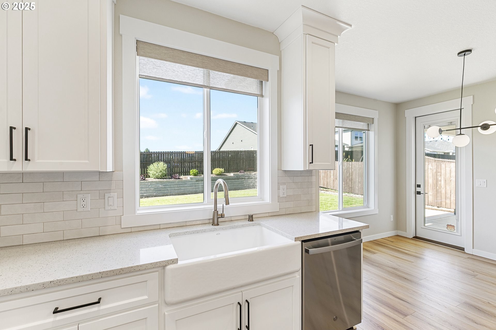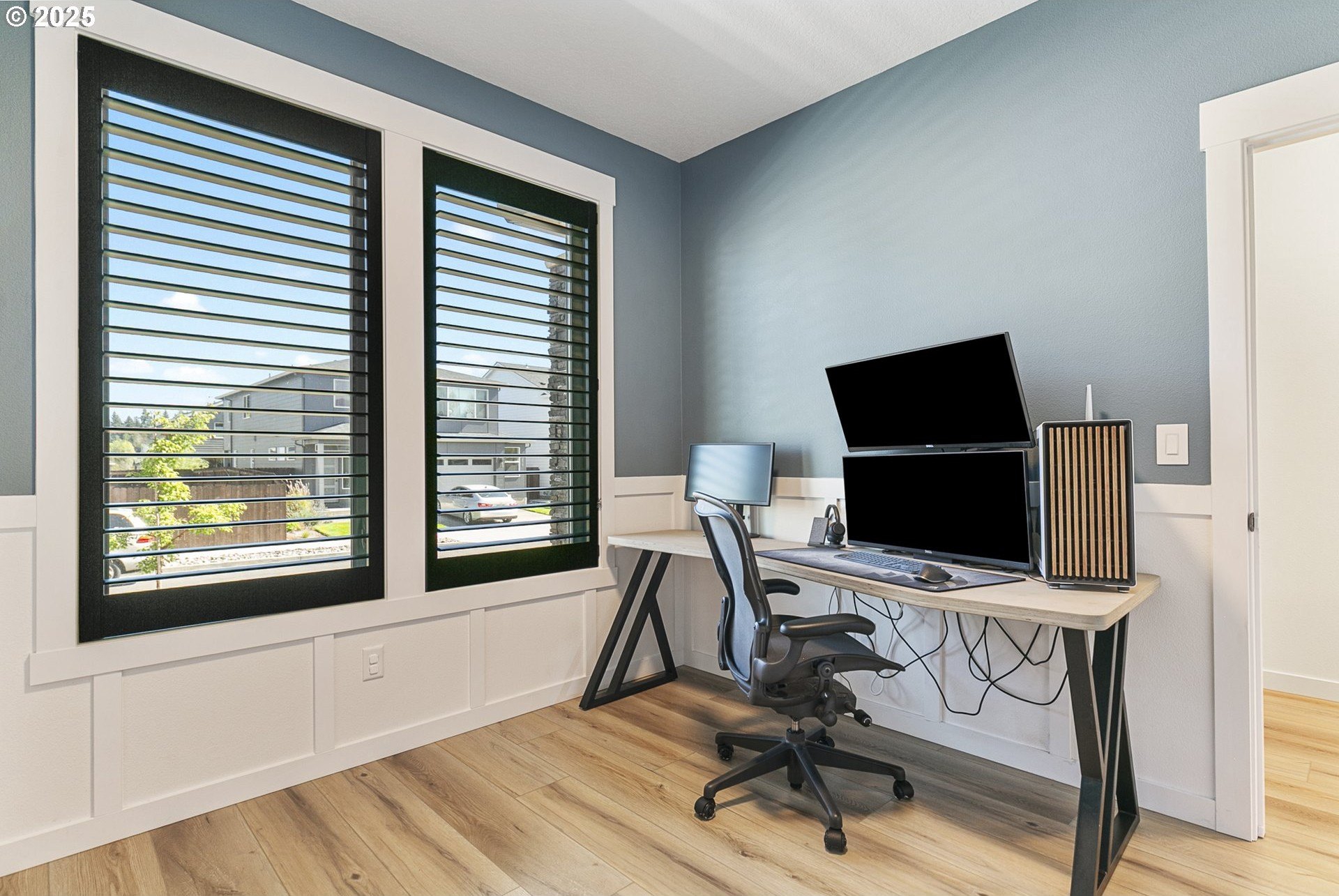 Welcome to this beautifully designed home featuring 9’ ceilings and LVP flooring throughout the main level. The versatile office/guest room with barn door sits just off the entry. A cozy gas fireplace with built-ins creates the heart of the living room, while the chef’s kitchen offers stainless steel appliances, quartz countertops, farmhouse sink, cooktop with separate oven, Microwave, walk-in pantry, open shelving, and coffee bar. Upstairs, the spacious primary suite custom barn door, soaking tub, dual-head tile shower, and walk-in closet. Three additional bedrooms, a bonus room that was used as an office, and full hall bath complete the upper level. Enjoy outdoor living with a covered patio, rear deck, and full sprinkler system. Oversized 3-car garage with overhead storage, EV CHARGER! plus HOA covering front yard landscaping.