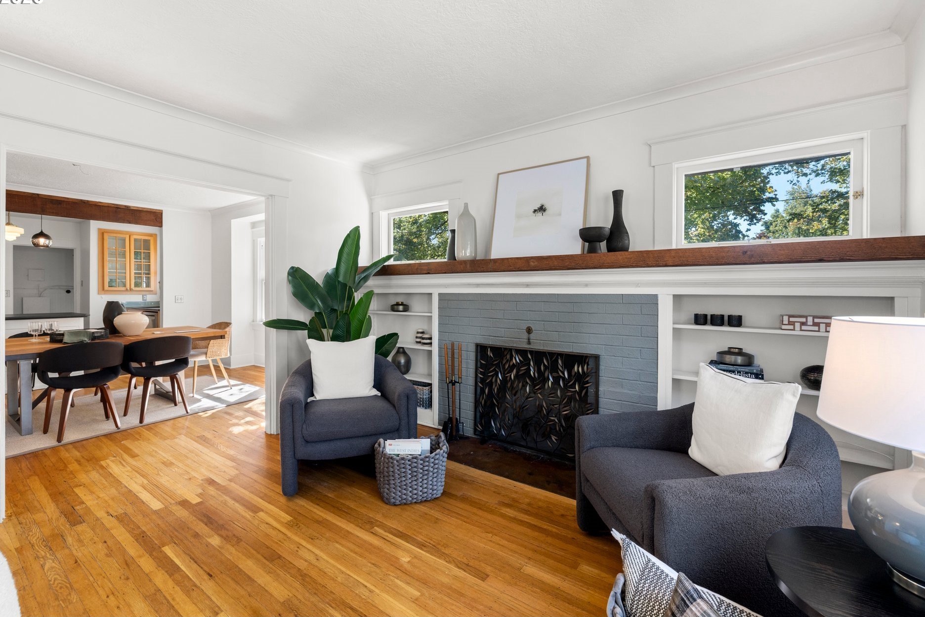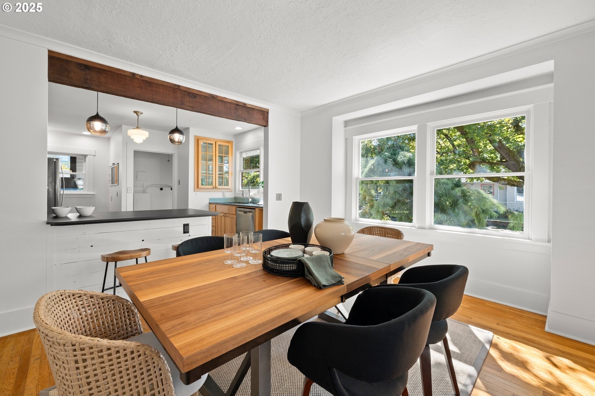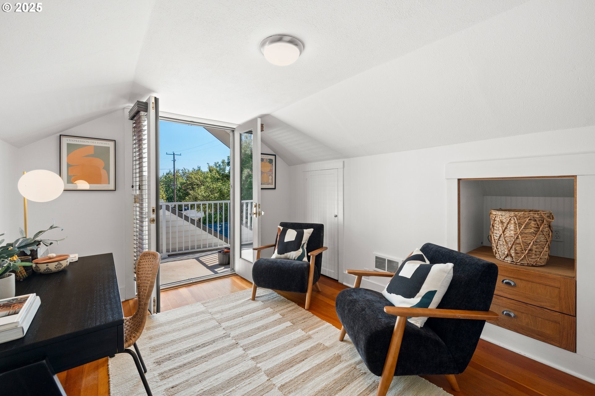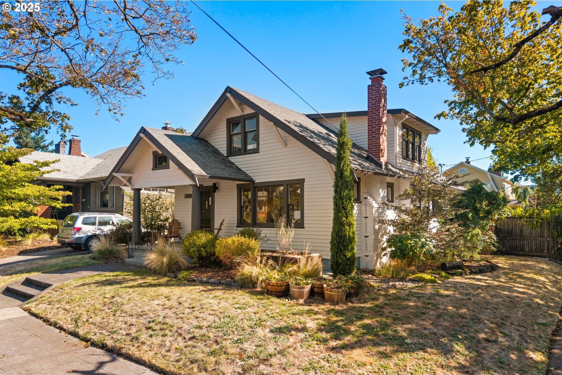 Charming Beaumont Bungalow on Corner Lot. Discover this storybook bungalow in the heart of Beaumont, perfectly perched on a corner lot with a detached garage. Full of character and thoughtfully updated, this home offers flexible living spaces that fit today’s lifestyle. The spacious upper level can serve as two bedrooms with a full bath, or transform into a private primary retreat with a sitting area and French doors opening to a balcony deck—your own getaway at home. On the main level, you’ll find a welcoming living room with fireplace, a dining room with built-in buffet, and a bright kitchen with room to unleash your culinary creativity. The kitchen’s eating bar is the perfect spot for casual meals or catching up with the cook. A bedroom, full bath, and versatile office nook complete this floor. The lower level extends the living space with a cozy family room, a fourth bedroom with egress, laundry, and generous storage options. Step outside to a private backyard designed for year round enjoyment. Entertain under the covered patio, gather around the firepit, or simply relax in your own outdoor retreat. This prime Beaumont location puts you just blocks from NE Fremont’s shops, cafés, and restaurants, while the neighborhood’s tree lined streets and top-rated schools make it one of Portland’s most desirable places to call home. Don’t miss the chance to own this timeless bungalow that blends charm, comfort, and convenience.