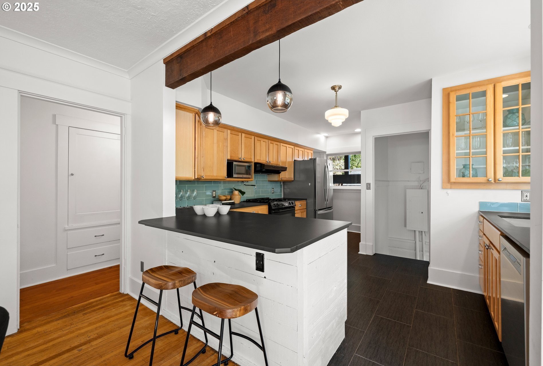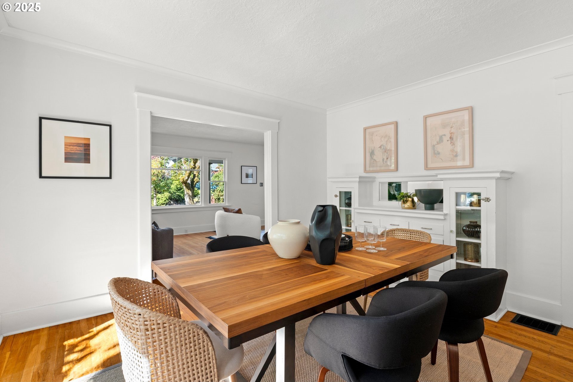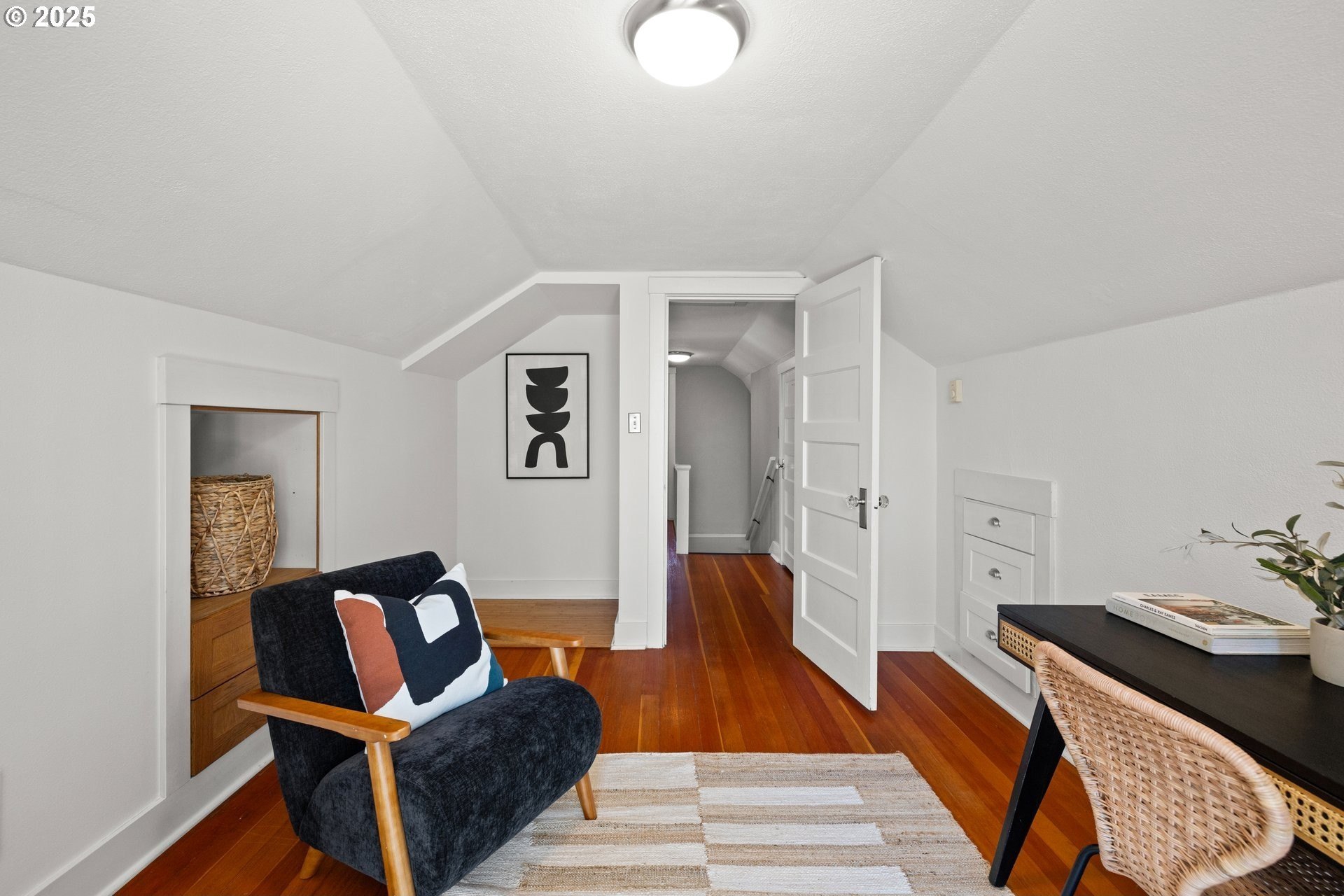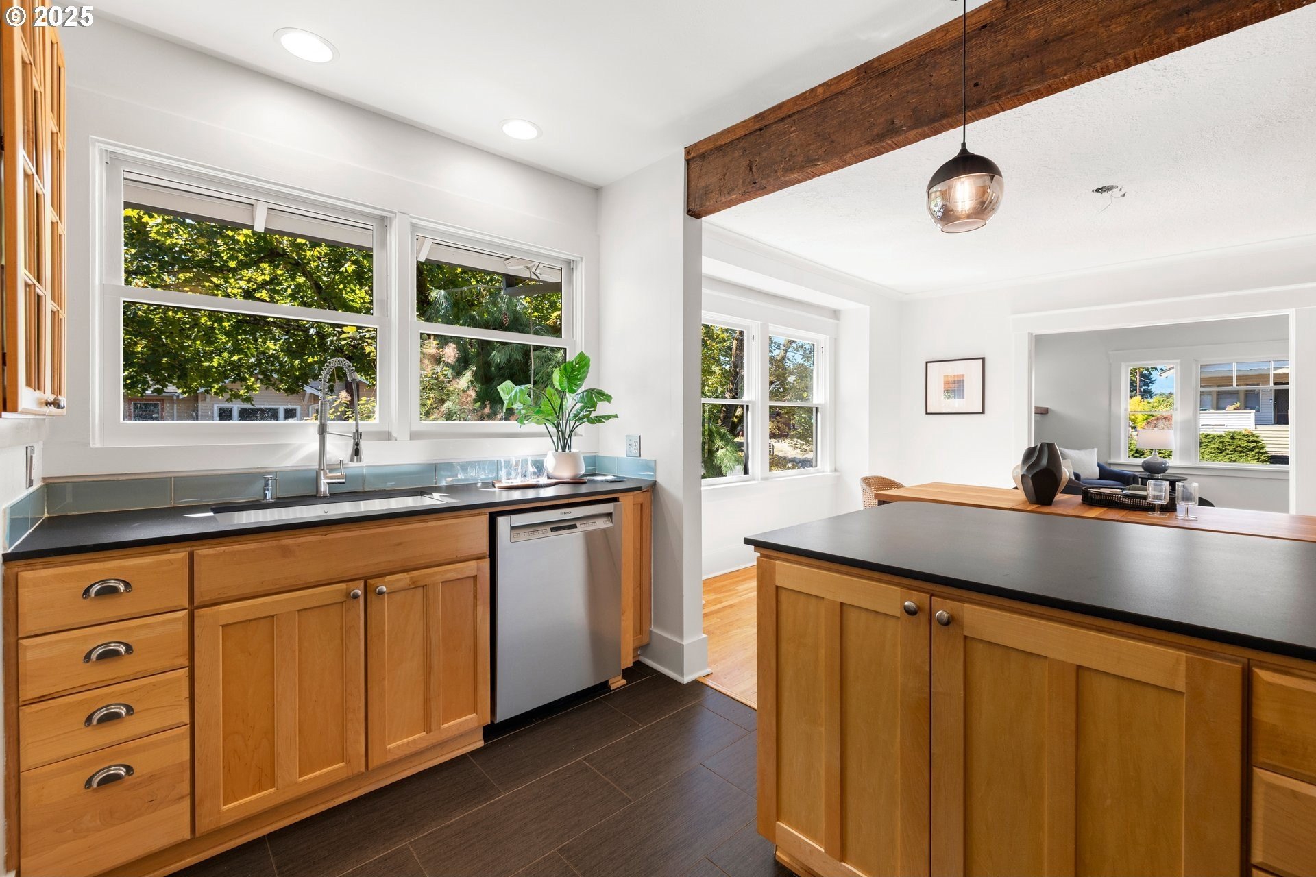 Charming Beaumont Bungalow on Corner Lot. Discover this storybook bungalow in the heart of Beaumont, perfectly perched on a corner lot with a detached garage. Full of character and thoughtfully updated, this home offers flexible living spaces that fit today’s lifestyle. The spacious upper level can serve as two bedrooms with a full bath, or transform into a private primary retreat with a sitting area and French doors opening to a balcony deck—your own getaway at home. On the main level, you’ll find a welcoming living room with fireplace, a dining room with built-in buffet, and a bright kitchen with room to unleash your culinary creativity. The kitchen’s eating bar is the perfect spot for casual meals or catching up with the cook. A bedroom, full bath, and versatile office nook complete this floor. The lower level extends the living space with a cozy family room, a fourth bedroom with egress, laundry, and generous storage options. Step outside to a private backyard designed for year round enjoyment. Entertain under the covered patio, gather around the firepit, or simply relax in your own outdoor retreat. This prime Beaumont location puts you just blocks from NE Fremont’s shops, cafés, and restaurants, while the neighborhood’s tree lined streets and top-rated schools make it one of Portland’s most desirable places to call home. Don’t miss the chance to own this timeless bungalow that blends charm, comfort, and convenience.