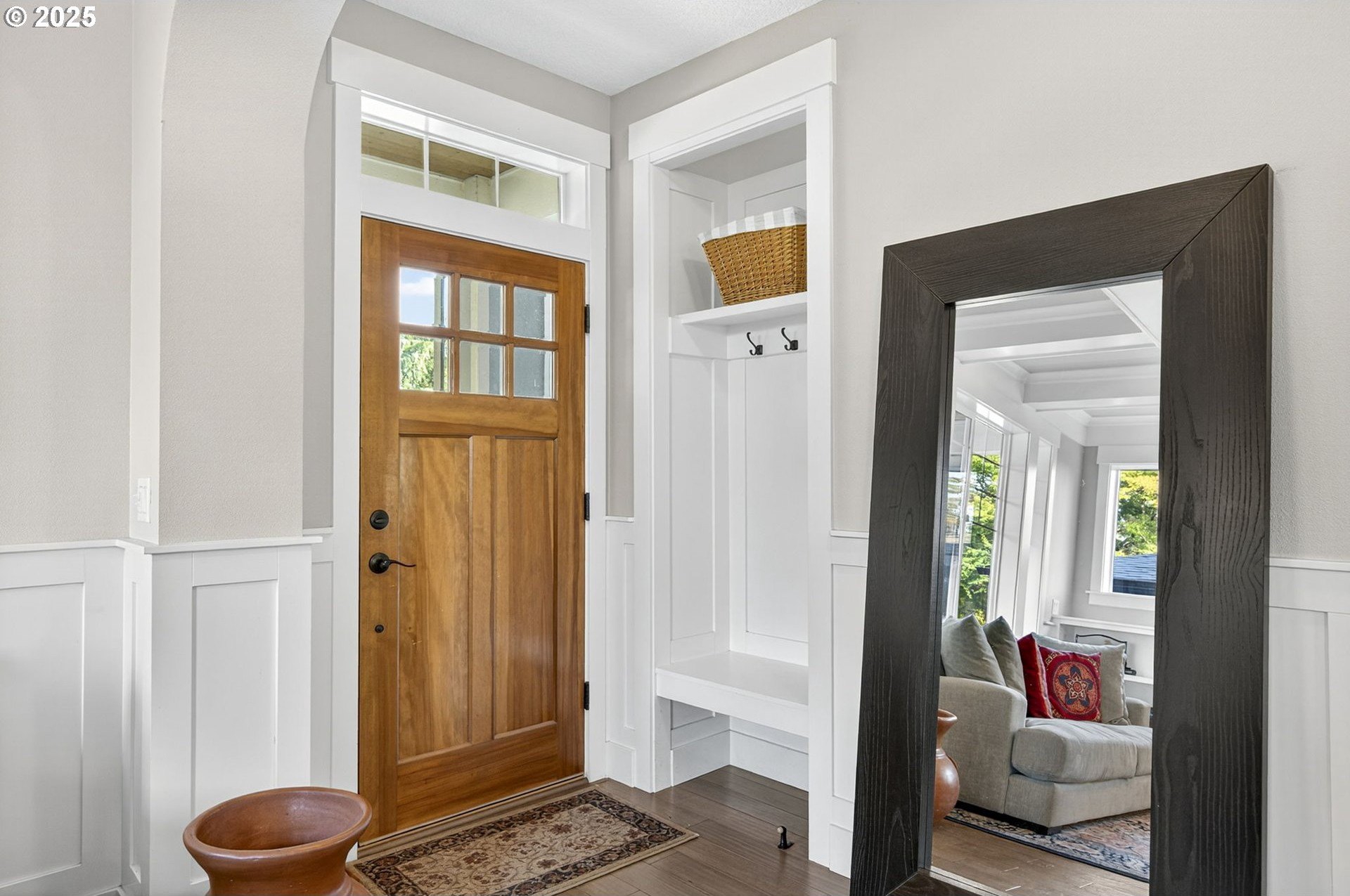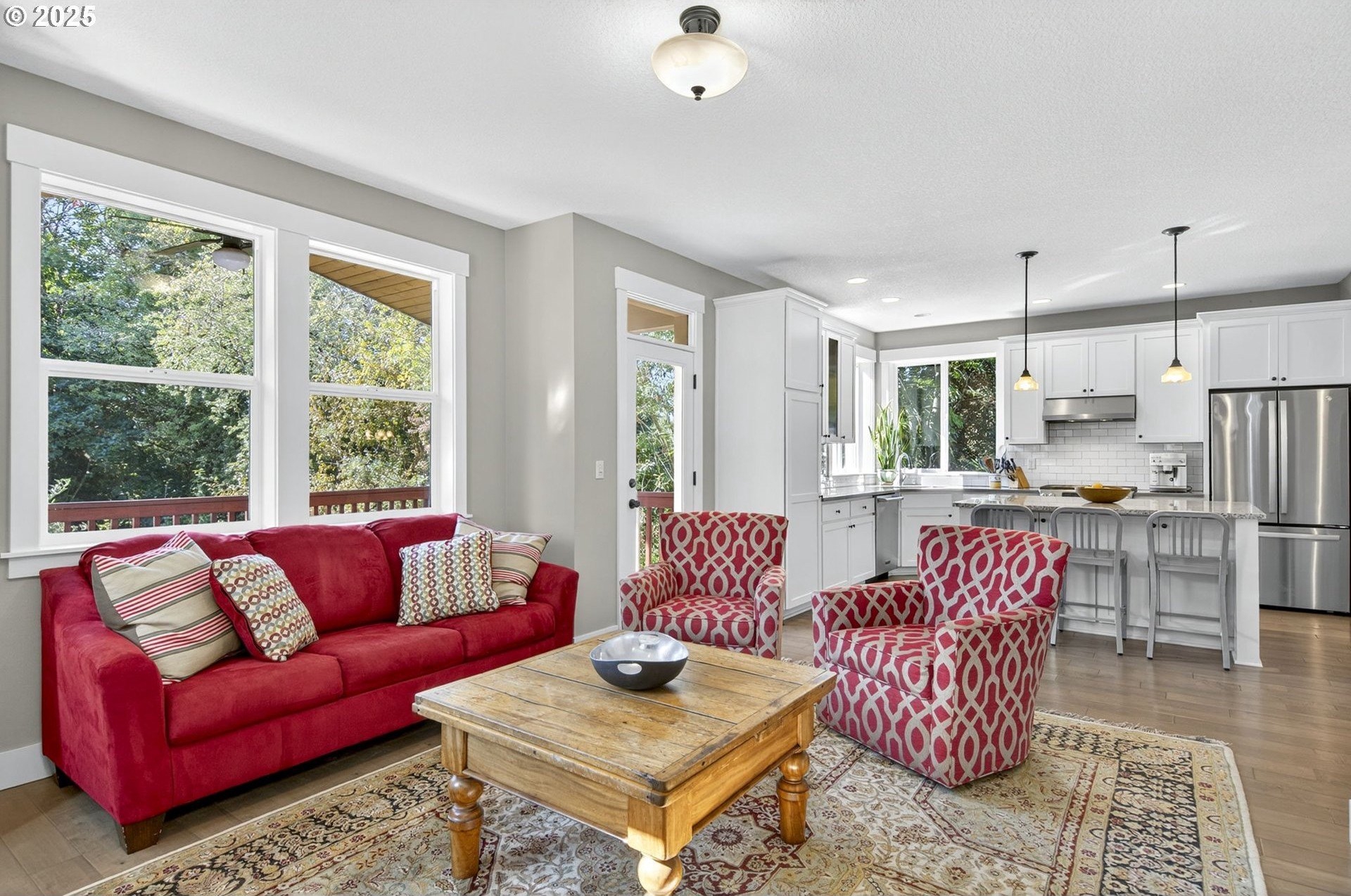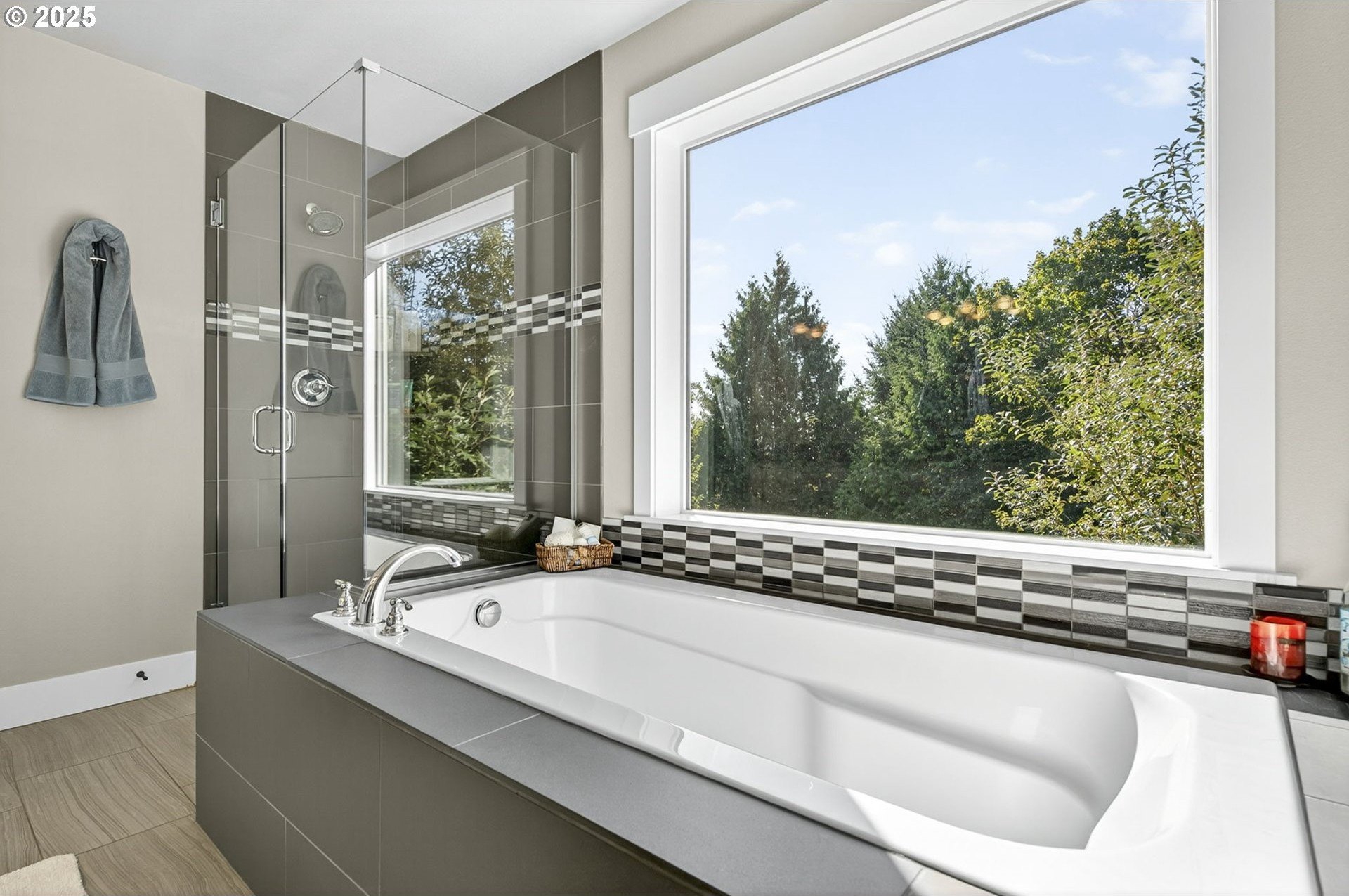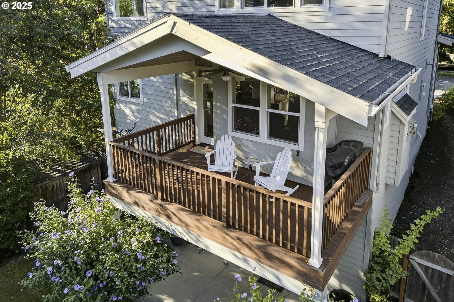 It's the rarest unicorn: elegant, modern LEED construction with an energy score of 8, on an oversized lot that feels like your own private park. The floor plan is perfect, with a luxurious primary suite plus two additional bedrooms and a second full bath upstairs; beautiful open gathering and entertaining spaces on the main level, and a separate suite on the ground floor, which is your dream home office, guest quarters, or AirBnB. Every detail of this house is gracious and dialed-in, from the softly weathered tones of the wood flooring throughout, to the exquisite blend of cool and warm tones in countertops, tile, and paint to create a beautifully relaxing harmony. Although you're just a few minutes from the Woodstock and Sellwood/Moreland business districts, and directly adjacent to biking and recreation on the Springwater Trail and at the gorgeously renovated Errol Heights Park, you'll feel as if you are in a secluded country retreat, with dappled light and vibrant greenery glowing from every window. The covered balcony deck and covered patio invite you to breathe into nature year-round. Located in coveted Woodstock/Ardenwald, this beautiful home truly is the best of both worlds, and you'll be just in time to experience the glorious blaze of fall color. [Home Energy Score = 8. HES Report at https://rpt.greenbuildingregistry.com/hes/OR10112570]