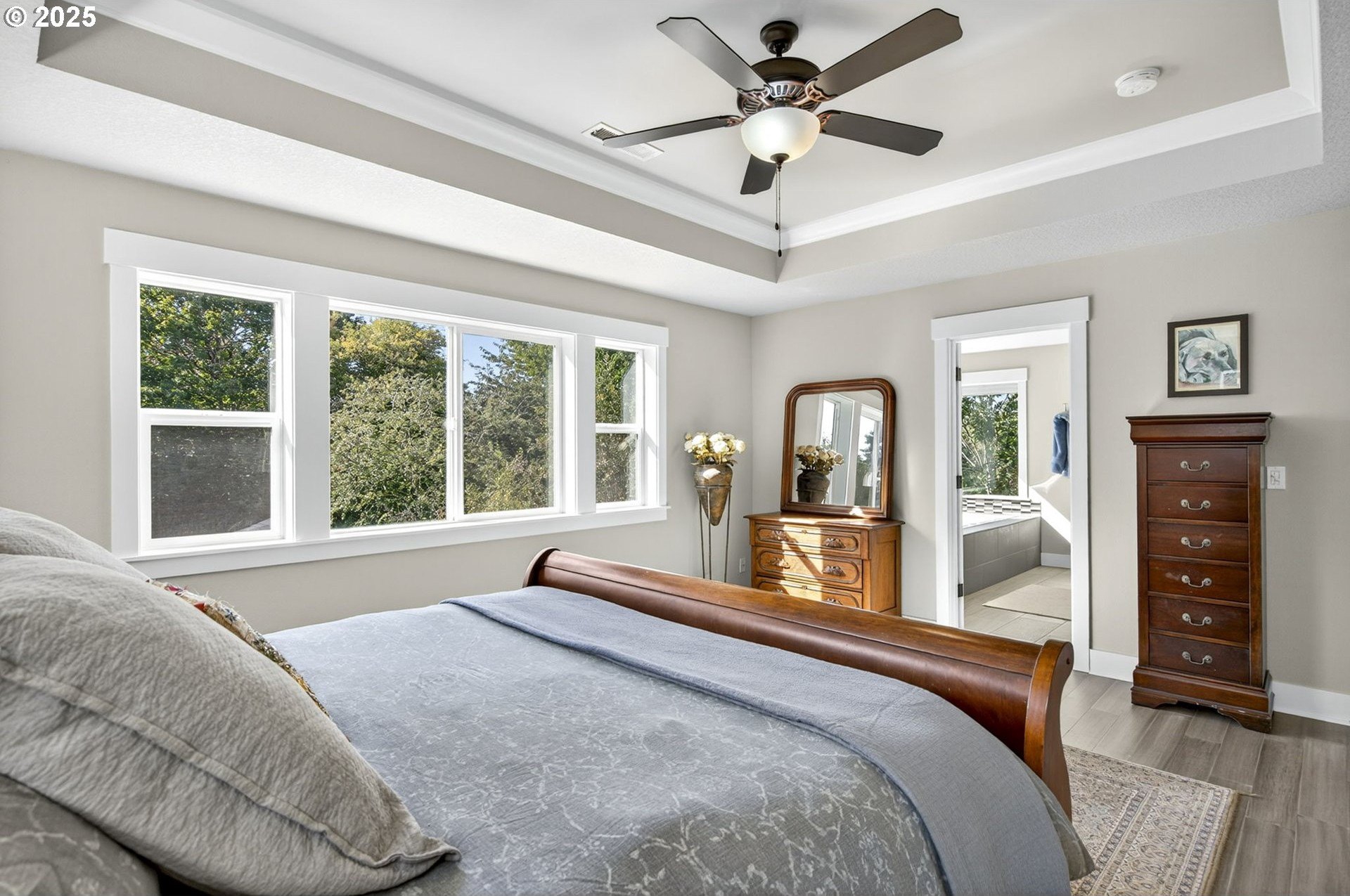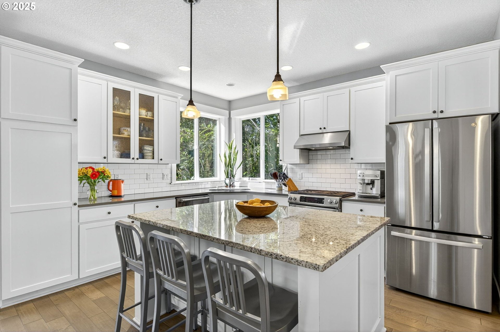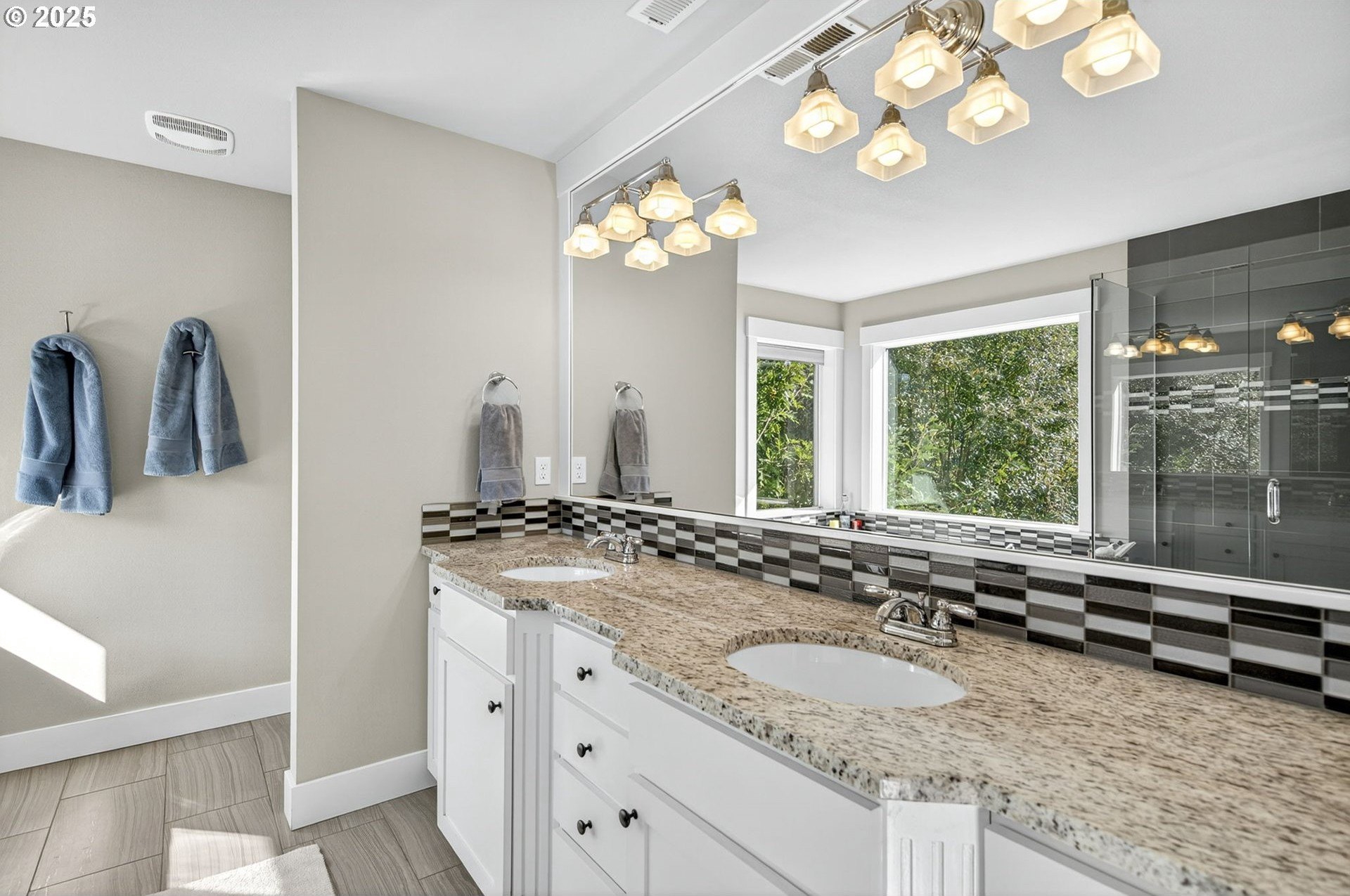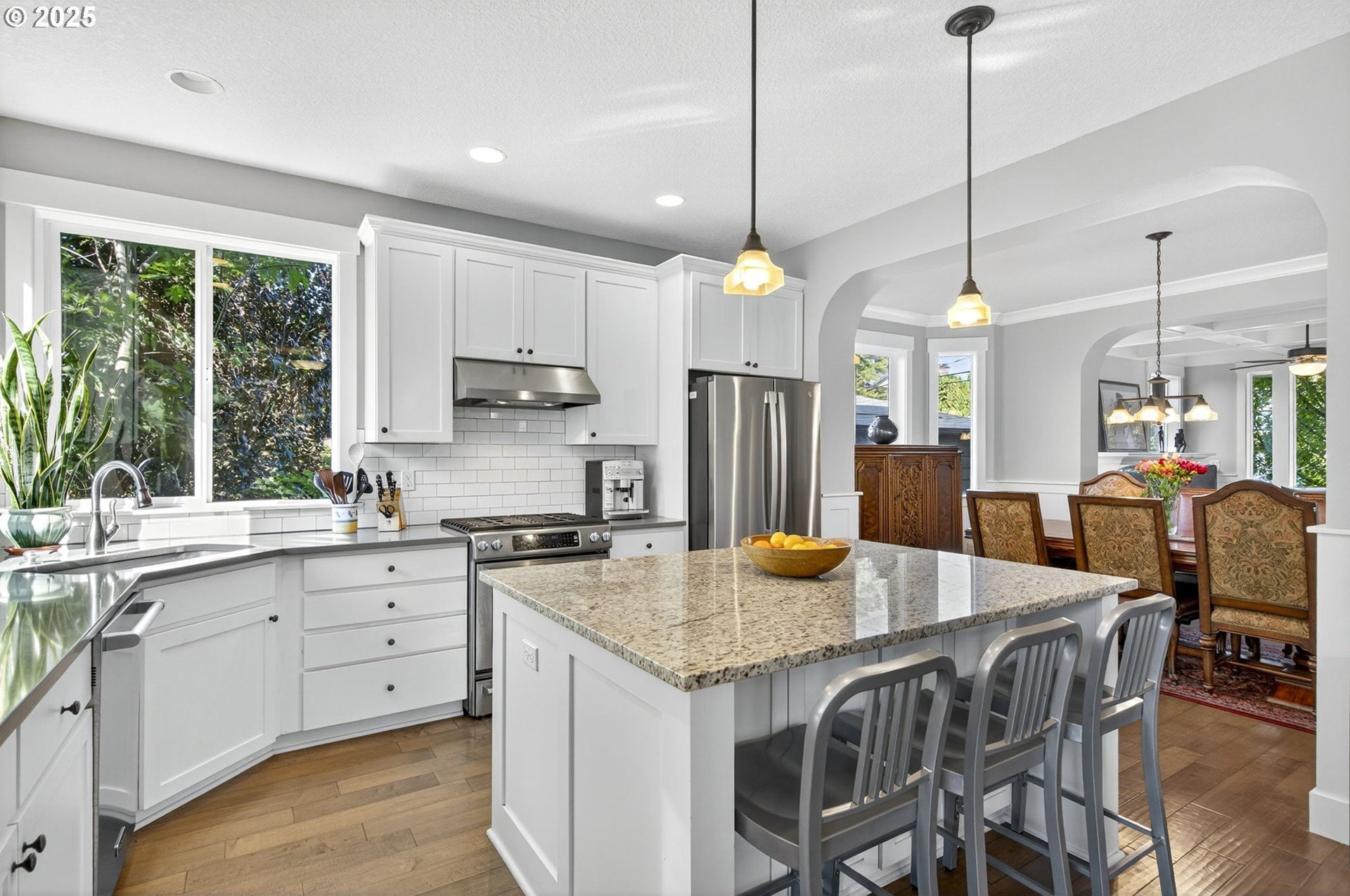 It's the rarest unicorn: elegant, modern LEED construction with an energy score of 8, on an oversized lot that feels like your own private park. The floor plan is perfect, with a luxurious primary suite plus two additional bedrooms and a second full bath upstairs; beautiful open gathering and entertaining spaces on the main level, and a separate suite on the ground floor, which is your dream home office, guest quarters, or AirBnB. Every detail of this house is gracious and dialed-in, from the softly weathered tones of the wood flooring throughout, to the exquisite blend of cool and warm tones in countertops, tile, and paint to create a beautifully relaxing harmony. Although you're just a few minutes from the Woodstock and Sellwood/Moreland business districts, and directly adjacent to biking and recreation on the Springwater Trail and at the gorgeously renovated Errol Heights Park, you'll feel as if you are in a secluded country retreat, with dappled light and vibrant greenery glowing from every window. The covered balcony deck and covered patio invite you to breathe into nature year-round. Located in coveted Woodstock/Ardenwald, this beautiful home truly is the best of both worlds, and you'll be just in time to experience the glorious blaze of fall color. [Home Energy Score = 8. HES Report at https://rpt.greenbuildingregistry.com/hes/OR10112570]