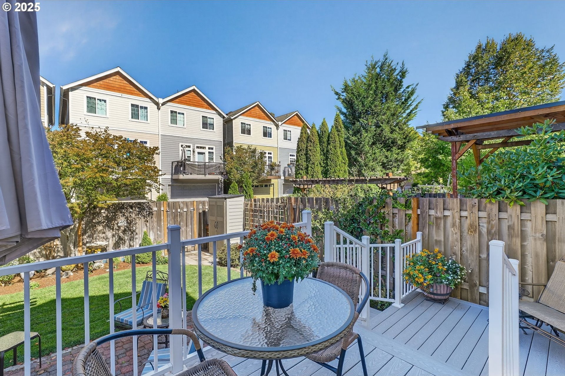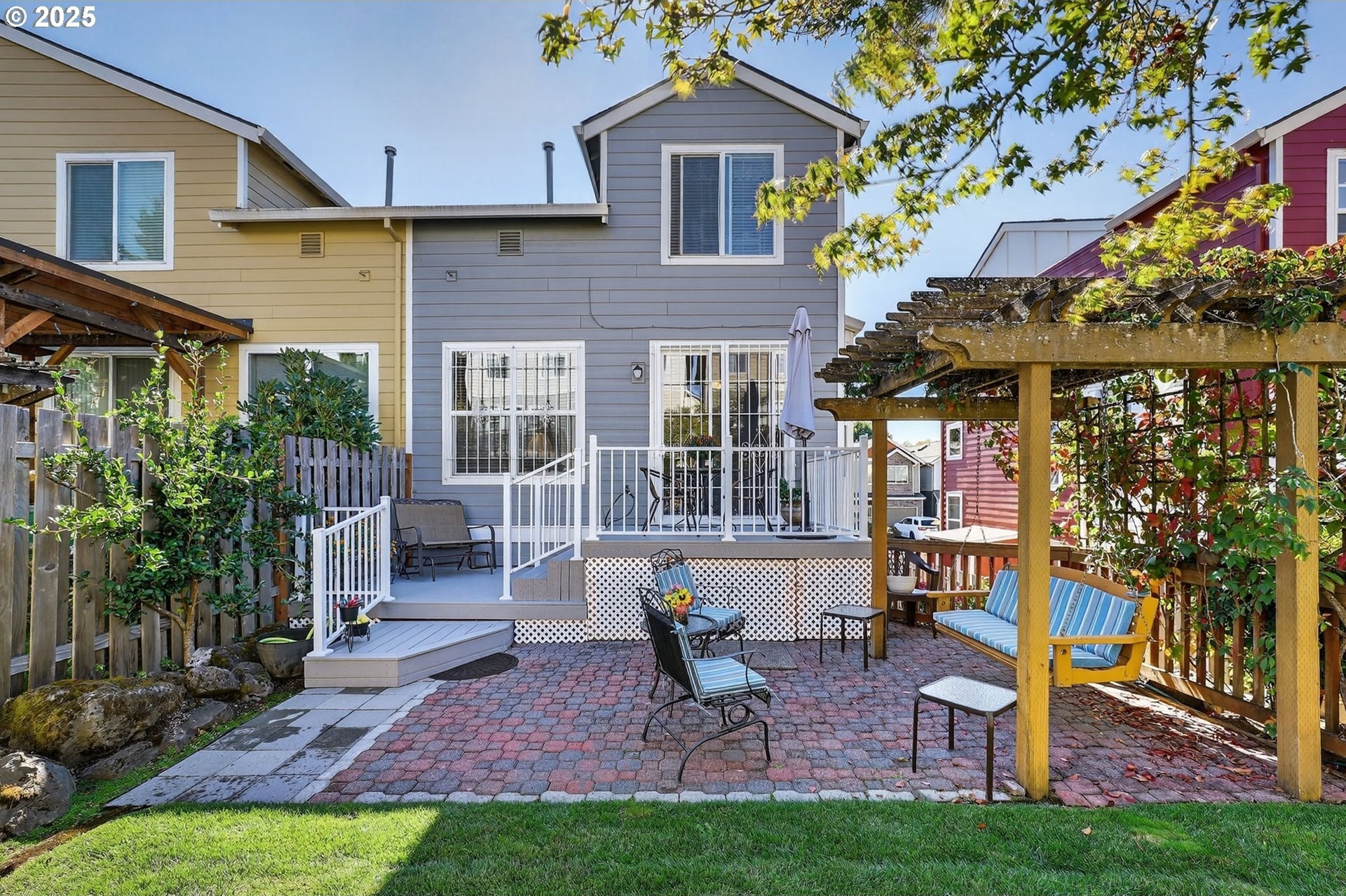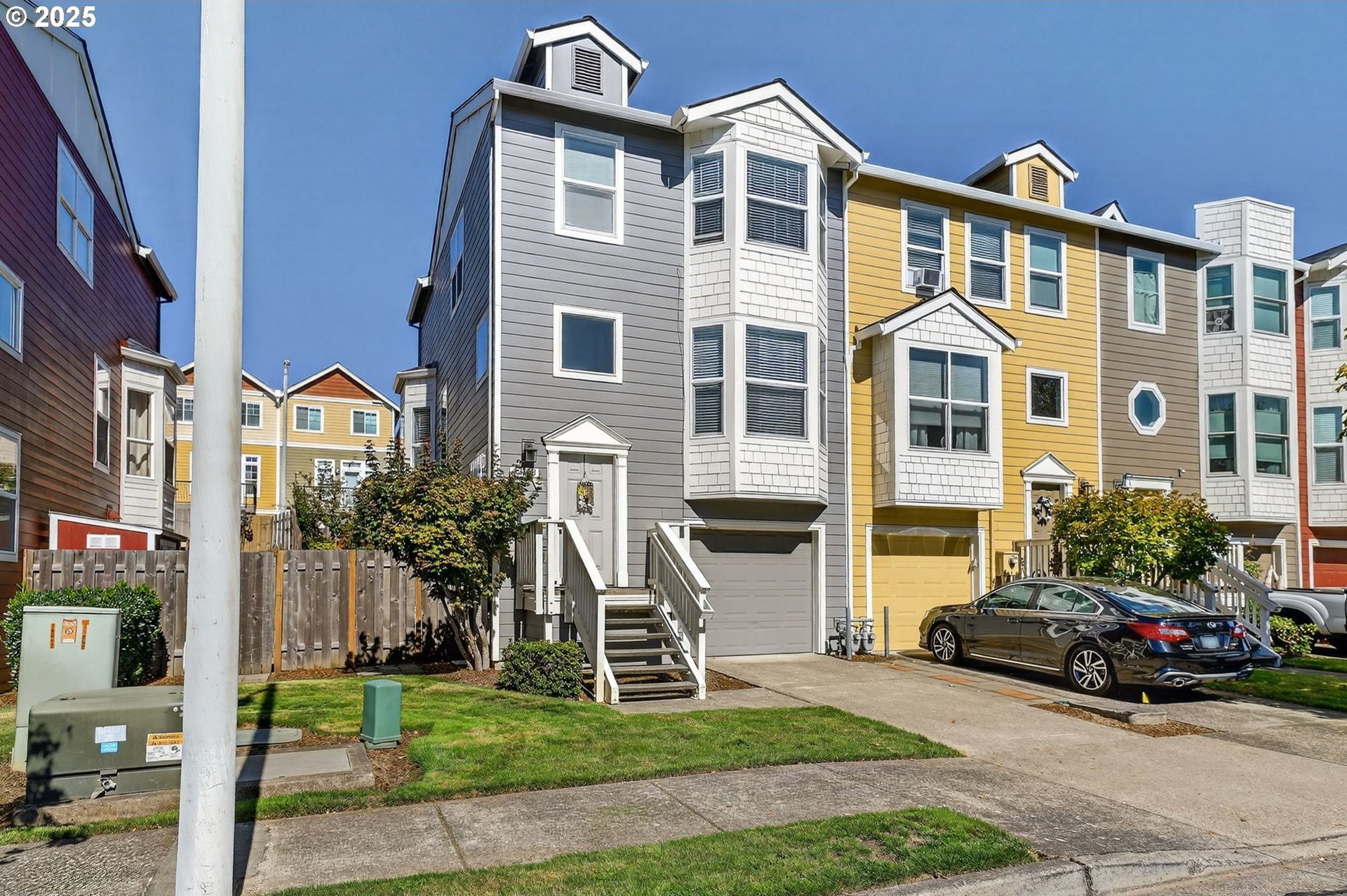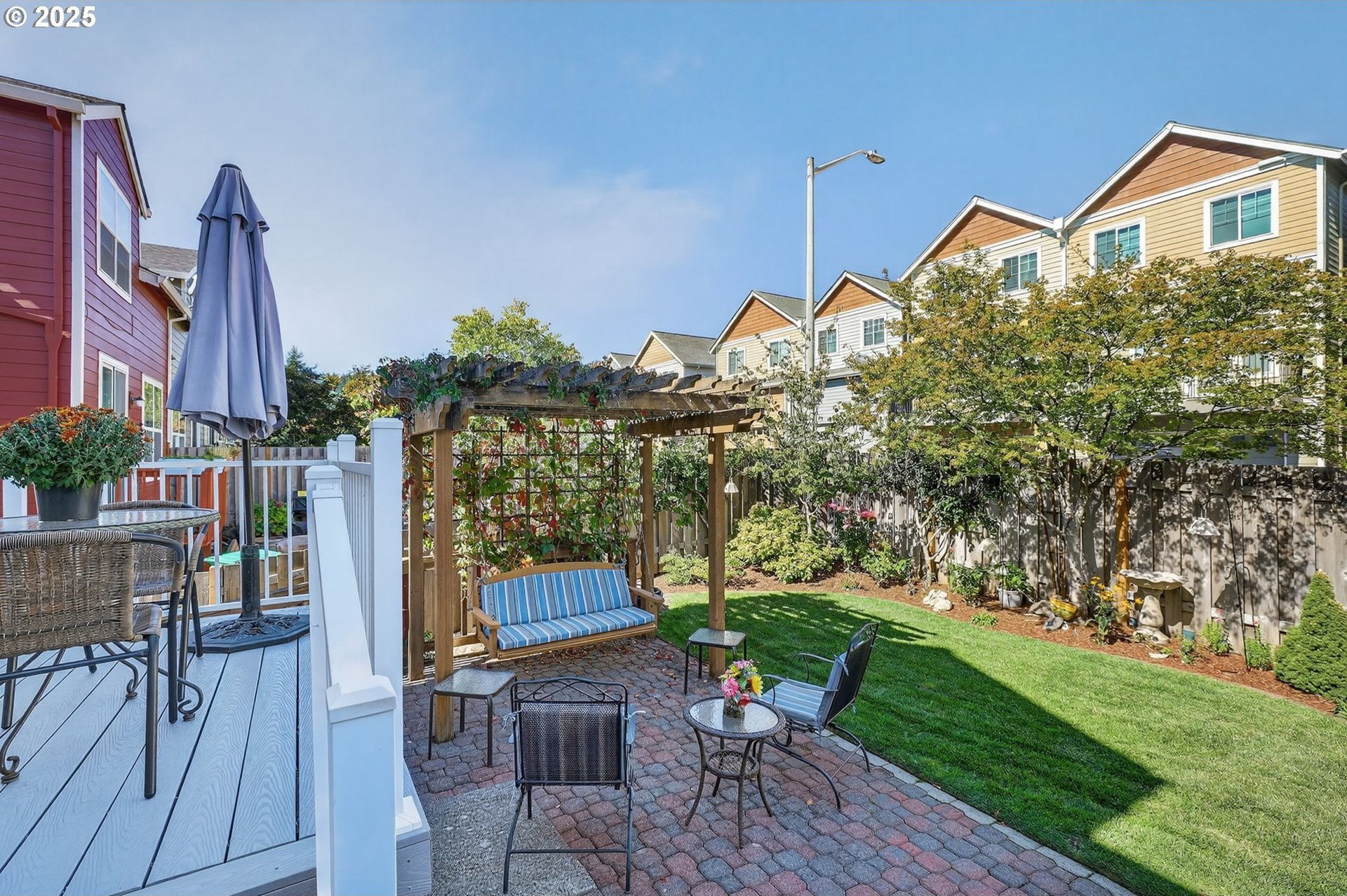 End-unit townhome that is light-filled, welcoming, and well cared for. The main level features a spacious dining room with a bay window and a roomy kitchen with gas range, dishwasher, refrigerator, and pantry—all appliances included. The living room with an electric fireplace opens to a newer deck with steps down to a level lawn and garden, complete with pergola and swing. Upstairs you’ll find two bedrooms. The primary bedroom offers a bay window, walk-in closet with organizer, and ensuite bathroom. Both upper-level bathrooms feature a tub/shower combination, and both bedrooms include ceiling fans. A storage room is accessible from the second bedroom, and a stackable washer and dryer is conveniently located upstairs. The lower level includes a light-filled bonus room with bay window, currently used as an office/sewing room, along with a half bathroom. The tandem garage with opener provides generous parking and storage.