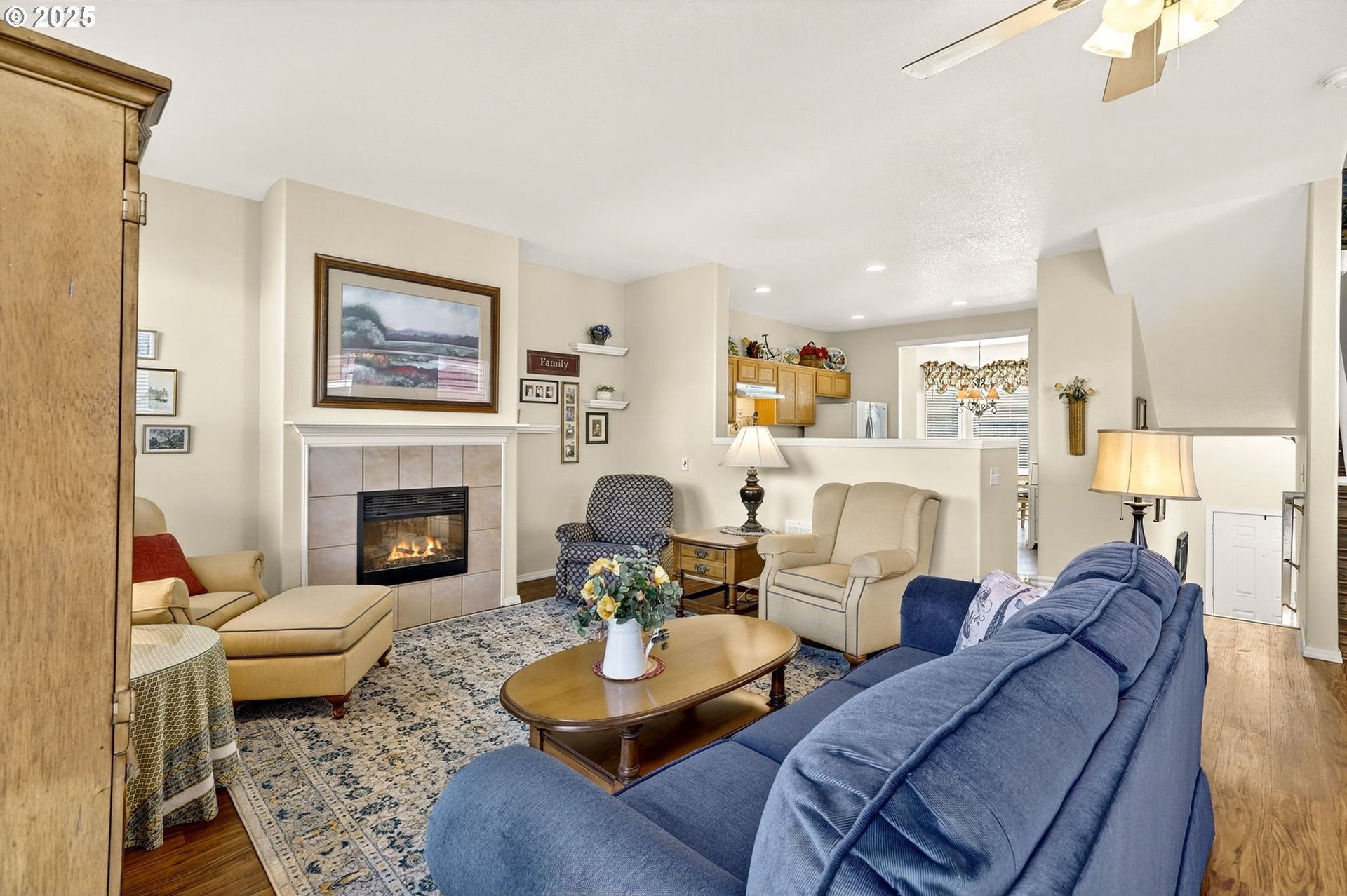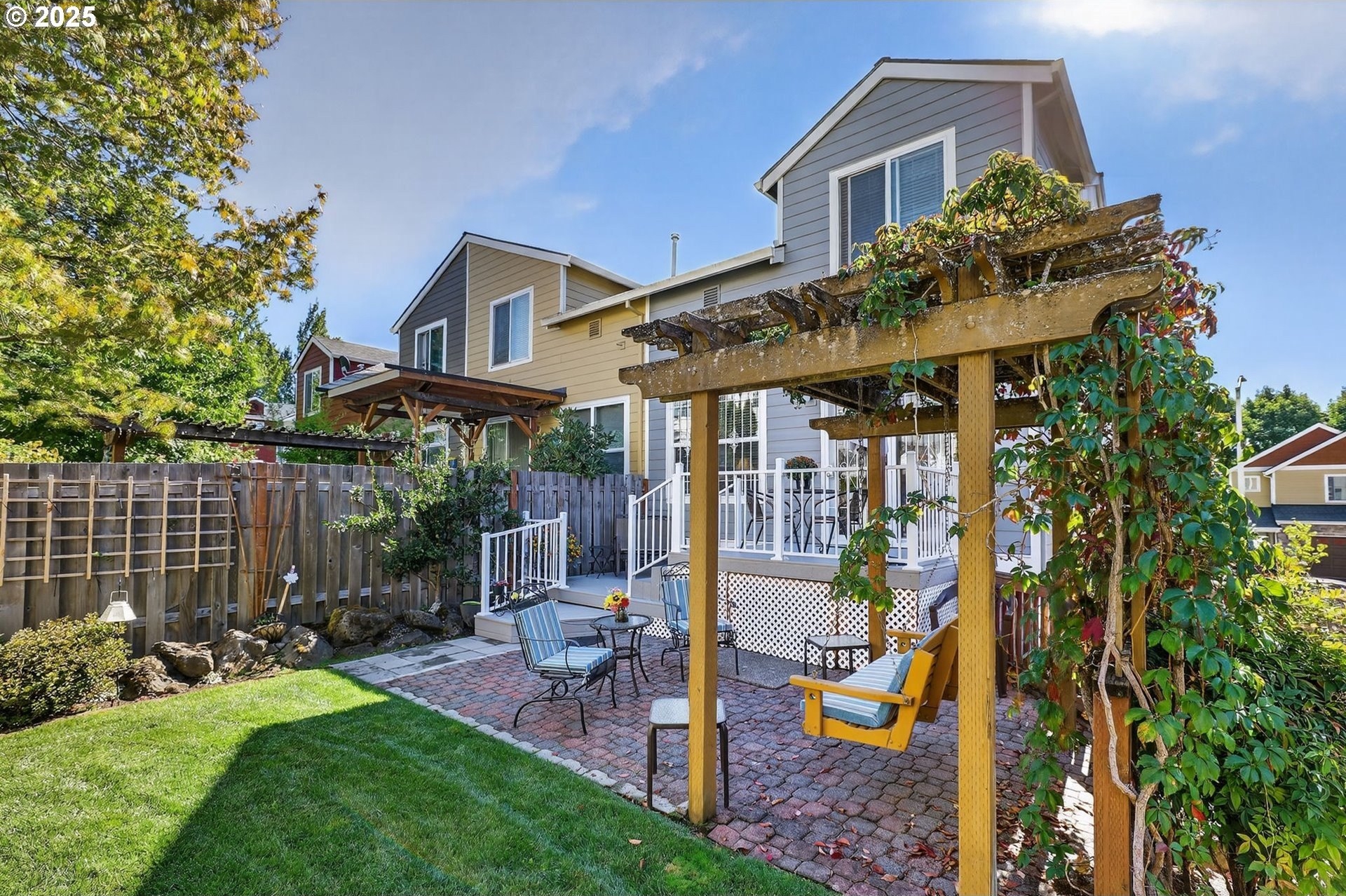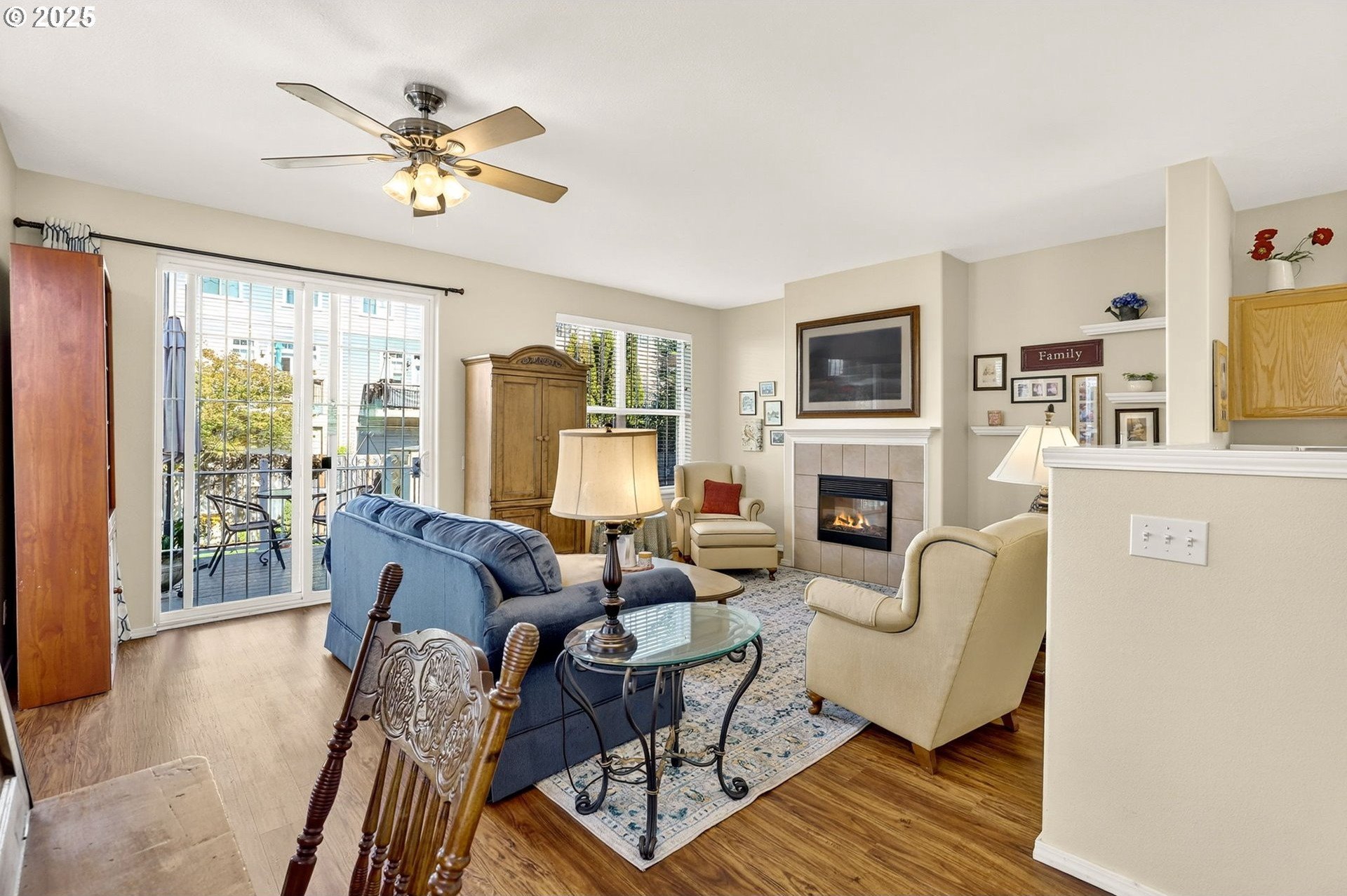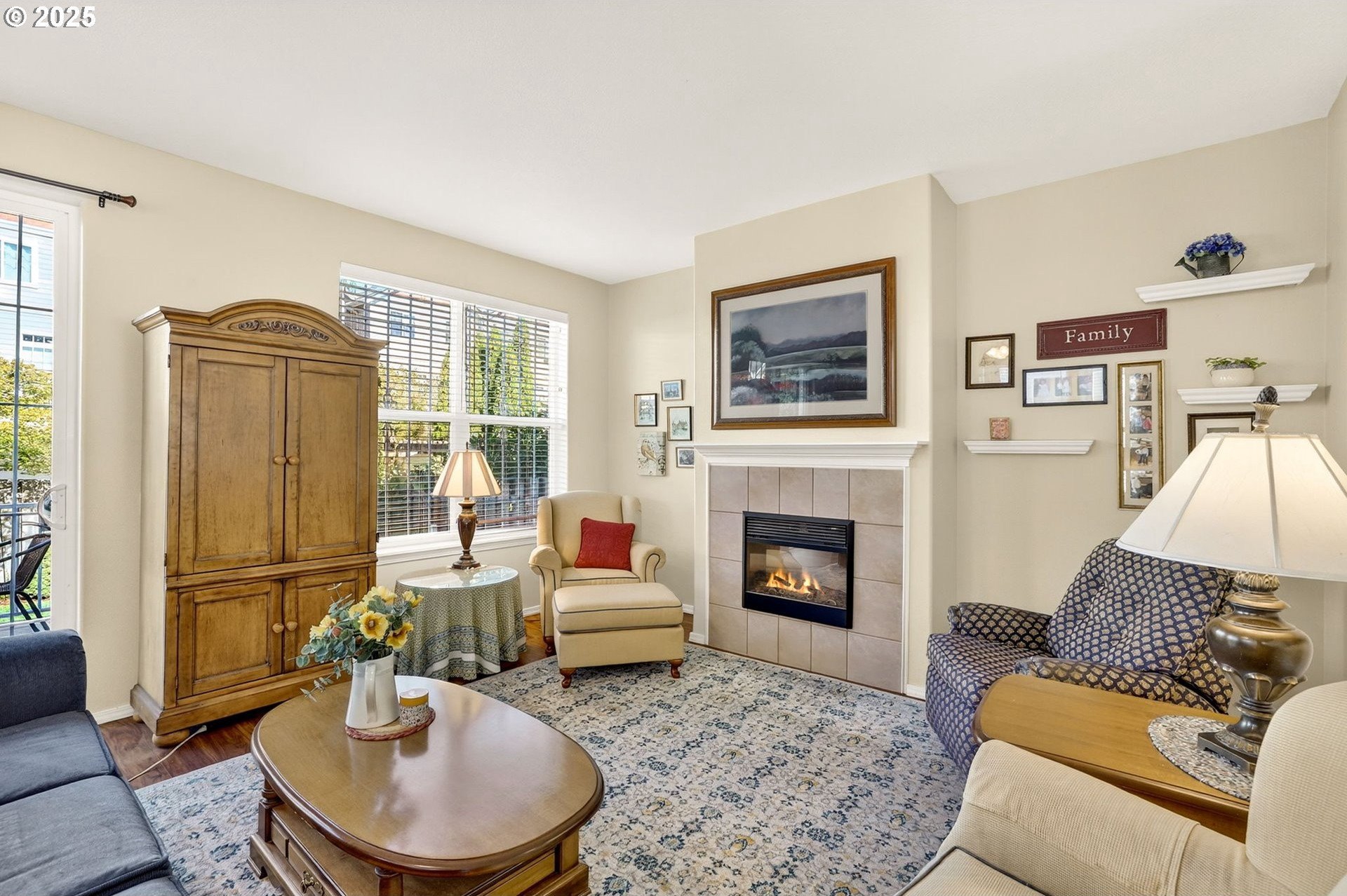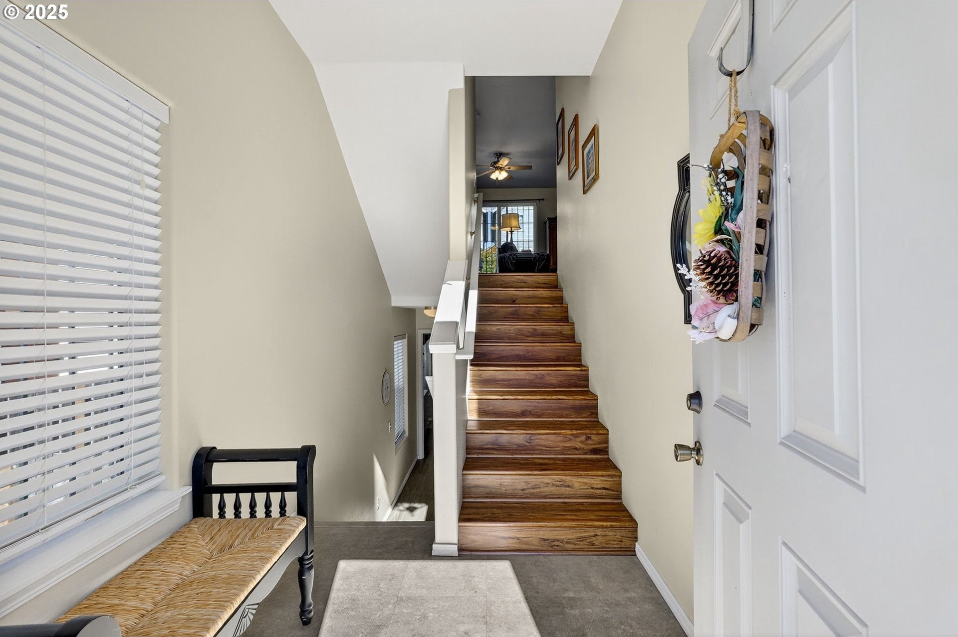 End-unit townhome that is light-filled, welcoming, and well cared for. The main level features a spacious dining room with a bay window and a roomy kitchen with gas range, dishwasher, refrigerator, and pantry—all appliances included. The living room with an electric fireplace opens to a newer deck with steps down to a level lawn and garden, complete with pergola and swing. Upstairs you’ll find two bedrooms. The primary bedroom offers a bay window, walk-in closet with organizer, and ensuite bathroom. Both upper-level bathrooms feature a tub/shower combination, and both bedrooms include ceiling fans. A storage room is accessible from the second bedroom, and a stackable washer and dryer is conveniently located upstairs. The lower level includes a light-filled bonus room with bay window, currently used as an office/sewing room, along with a half bathroom. The tandem garage with opener provides generous parking and storage.