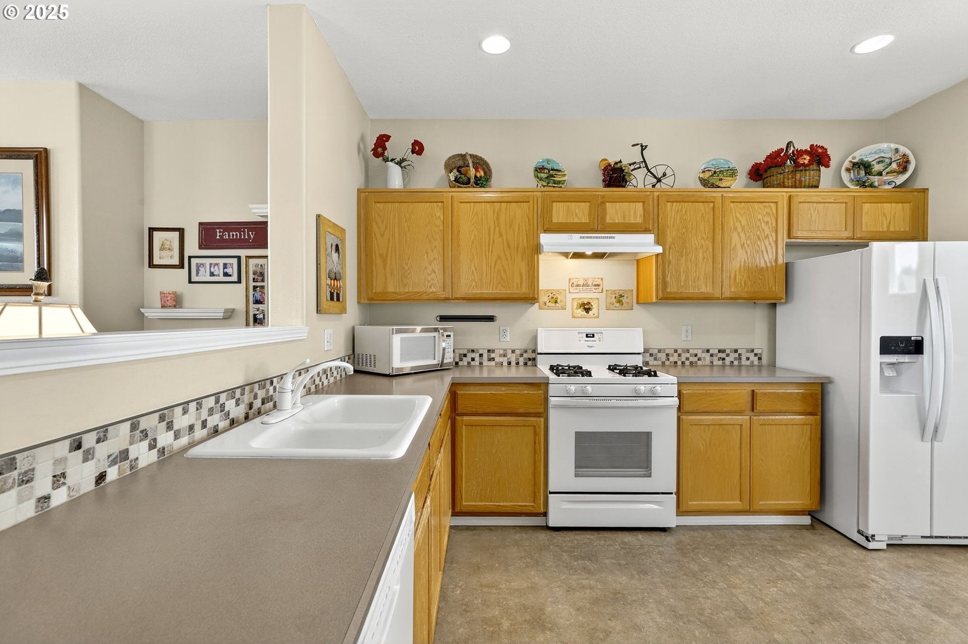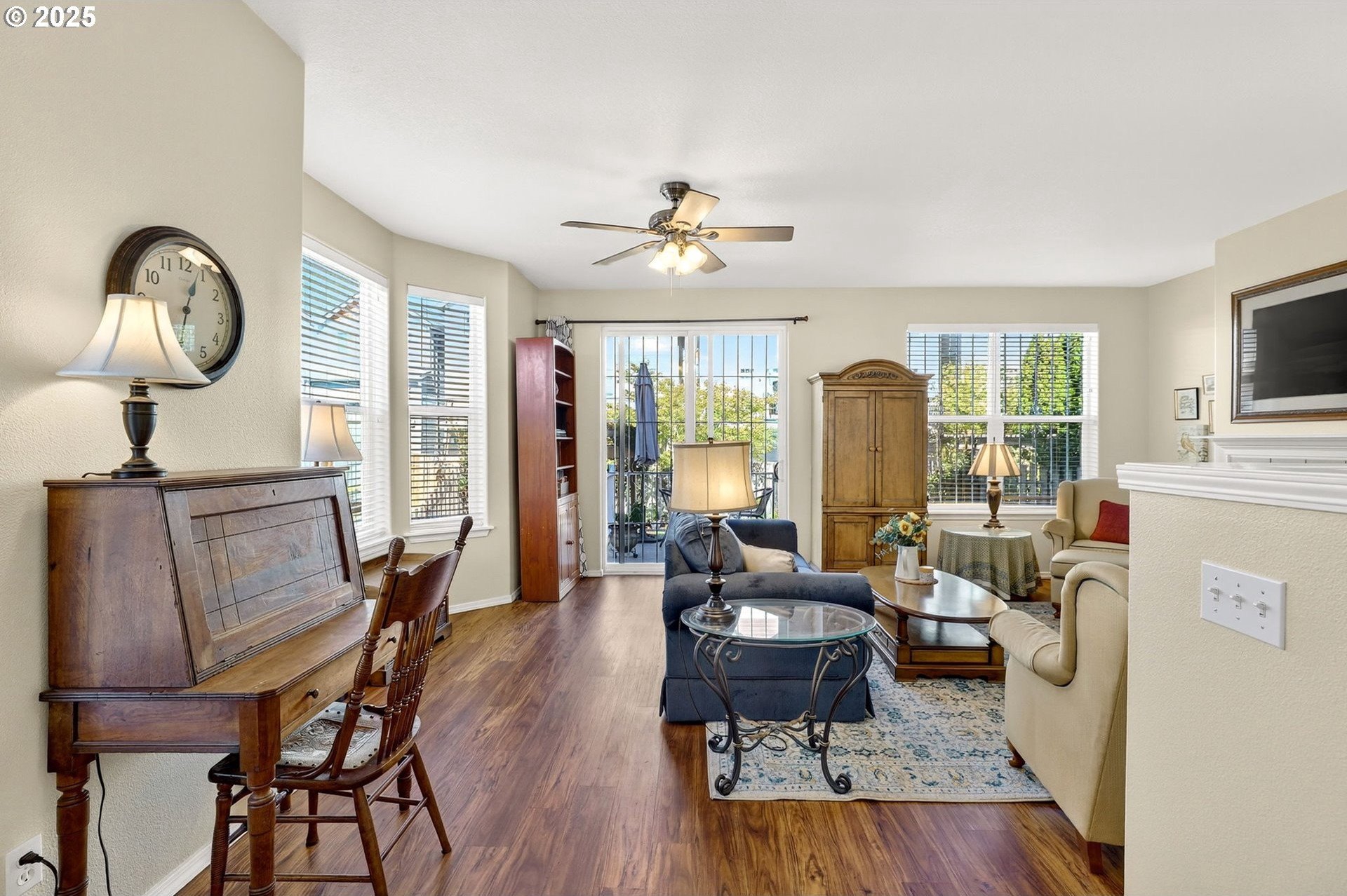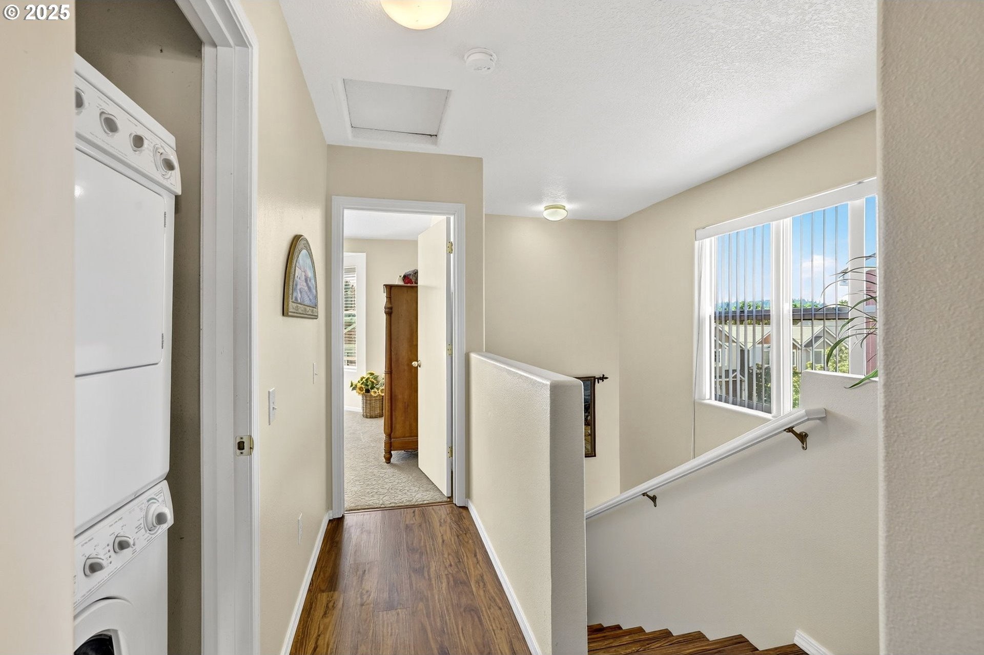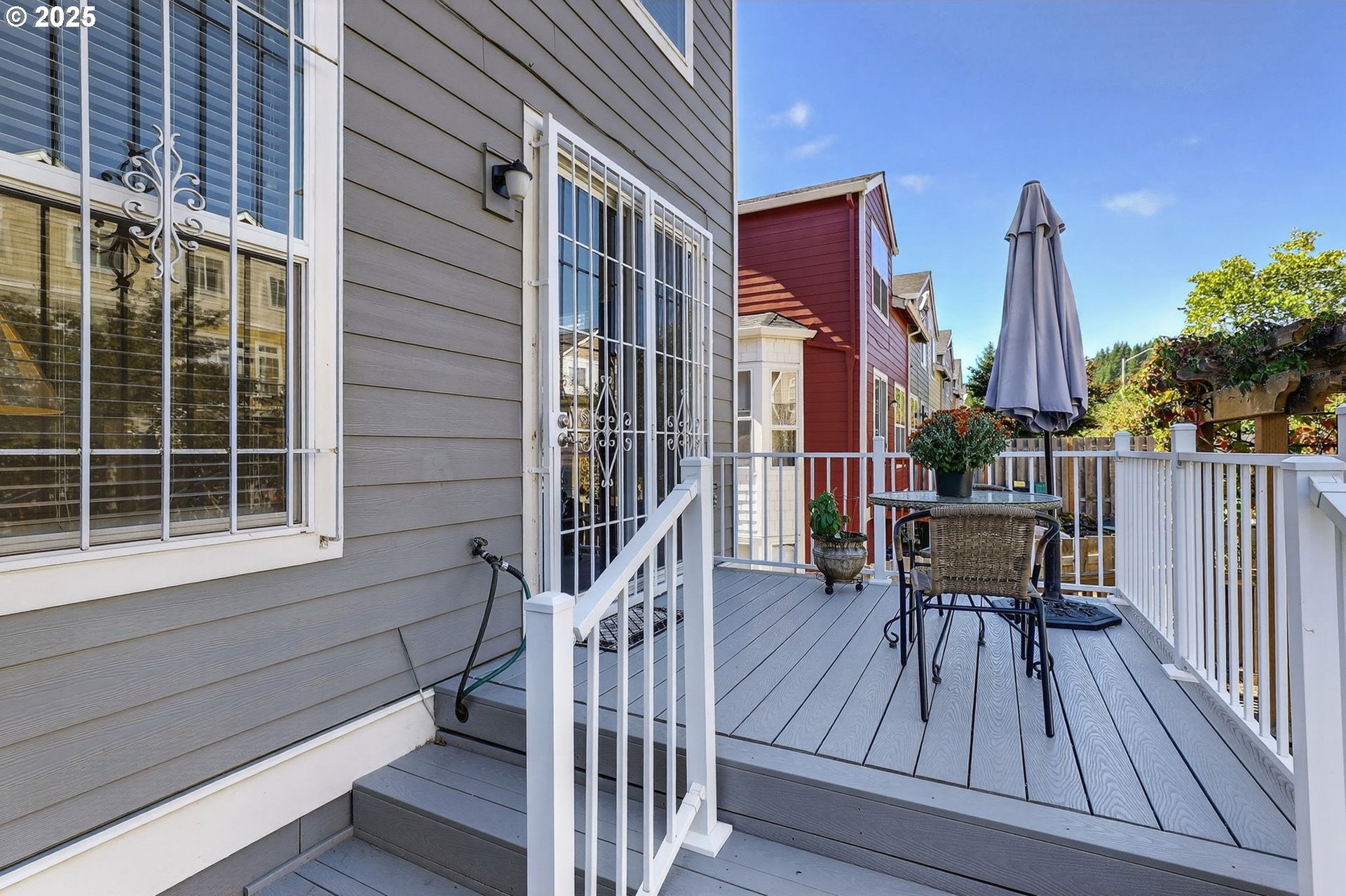 End-unit townhome that is light-filled, welcoming, and well cared for. The main level features a spacious dining room with a bay window and a roomy kitchen with gas range, dishwasher, refrigerator, and pantry—all appliances included. The living room with an electric fireplace opens to a newer deck with steps down to a level lawn and garden, complete with pergola and swing. Upstairs you’ll find two bedrooms. The primary bedroom offers a bay window, walk-in closet with organizer, and ensuite bathroom. Both upper-level bathrooms feature a tub/shower combination, and both bedrooms include ceiling fans. A storage room is accessible from the second bedroom, and a stackable washer and dryer is conveniently located upstairs. The lower level includes a light-filled bonus room with bay window, currently used as an office/sewing room, along with a half bathroom. The tandem garage with opener provides generous parking and storage.