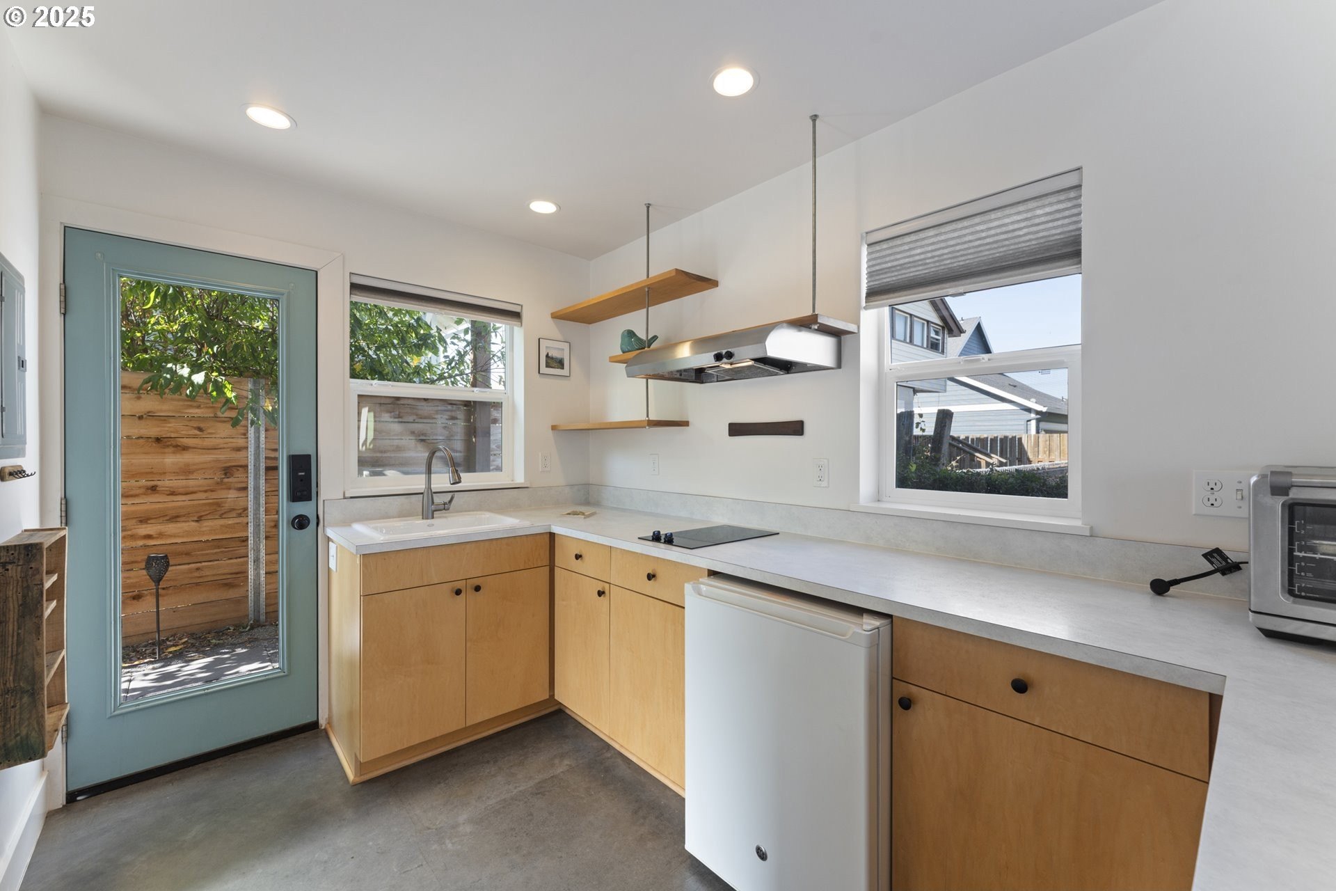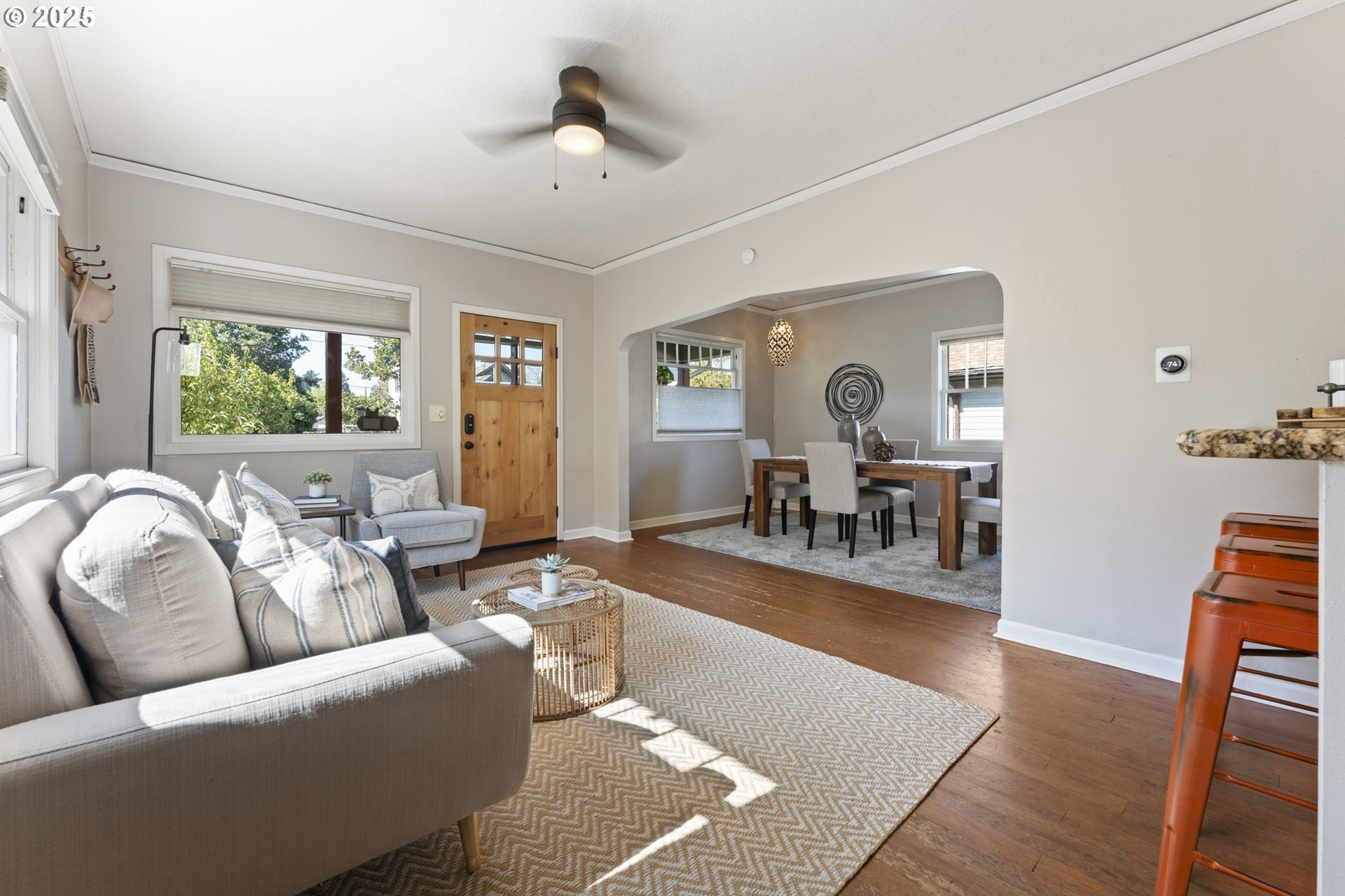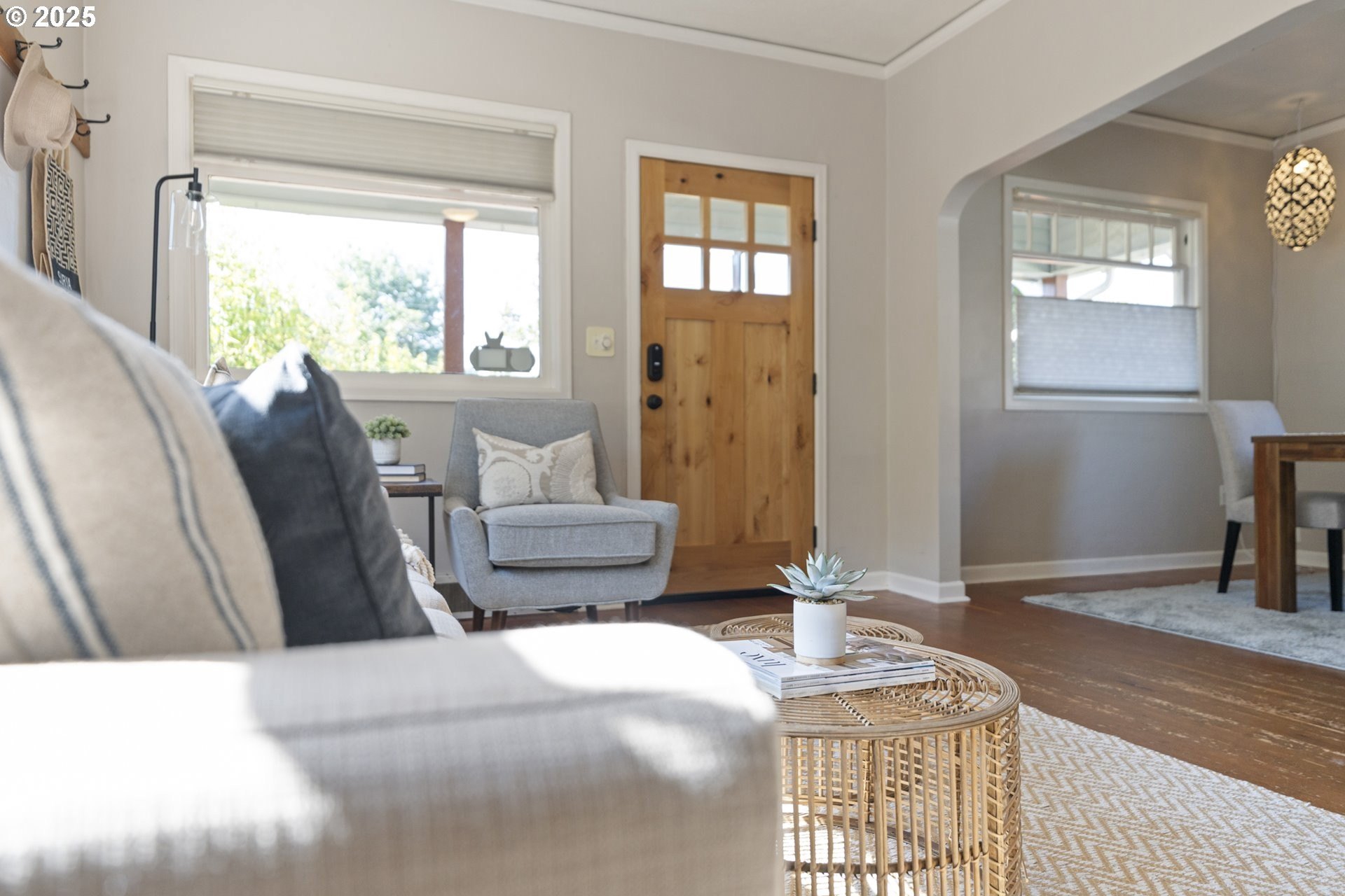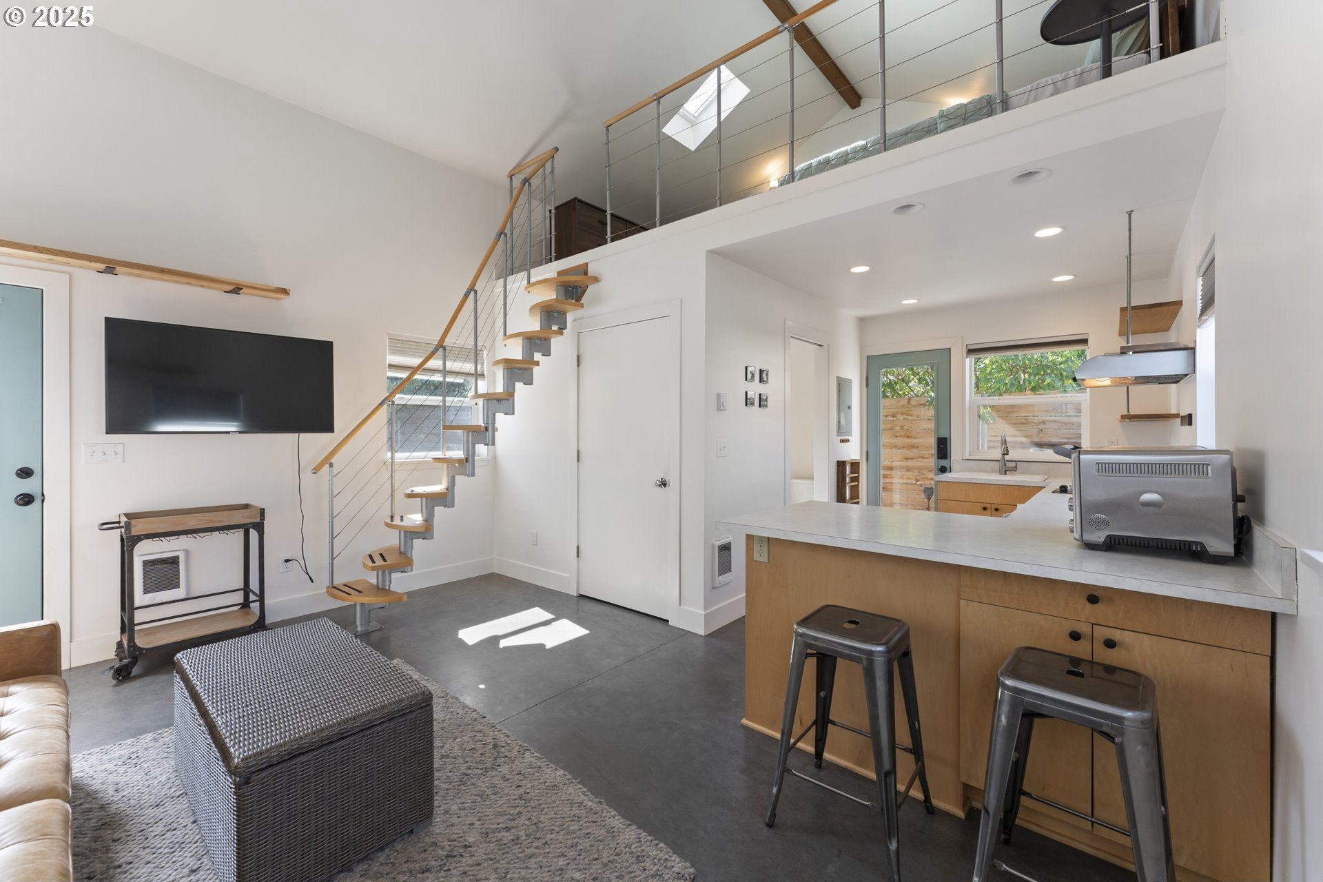 Kenton Charmer with income-generating ADU. Welcome to this beautifully updated home that blends vintage character with modern convenience. Relax on the spacious front porch before stepping inside to an open-concept main floor, showcasing original fir floors, an upgraded kitchen, plus a main-level bedroom and bath. Upstairs, you’ll find a light-filled primary retreat with skylights, built-ins, cork floors and a private office—perfect for working from home. The finished basement adds even more flexibility with a family room, full bath, and egress window, easily doubling as a third bedroom. Out back, the stylish detached and fully permitted ADU steals the show with soaring ceilings, a sleeping loft, and endless possibilities—ideal for guests, multigenerational living, or rental income with it's own private entrance and separated with a fence from the main yard. All of this in an unbeatable location just .3 miles from lively Denver Ave with its shops, cafes, and neighborhood energy.