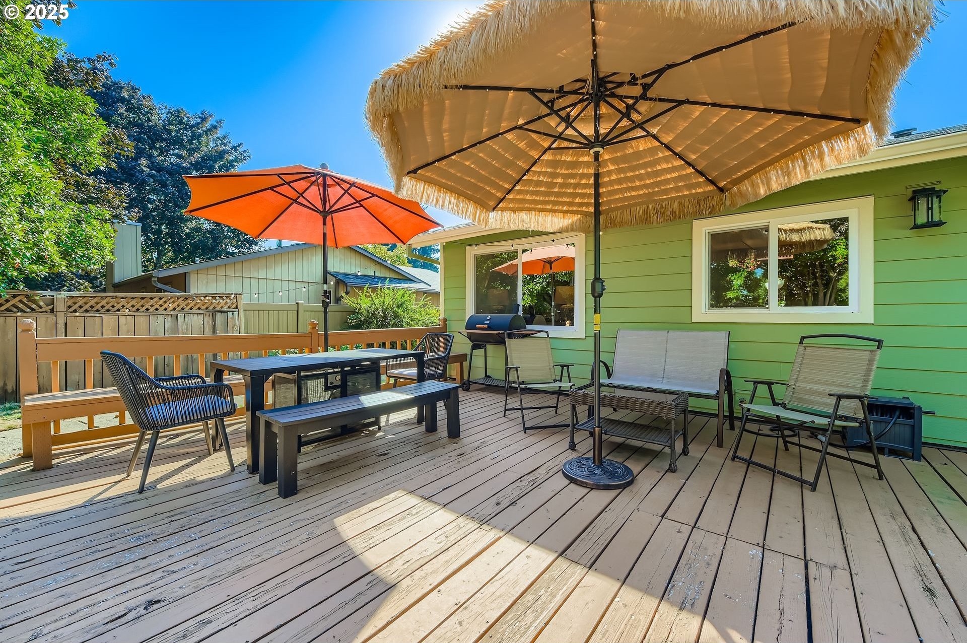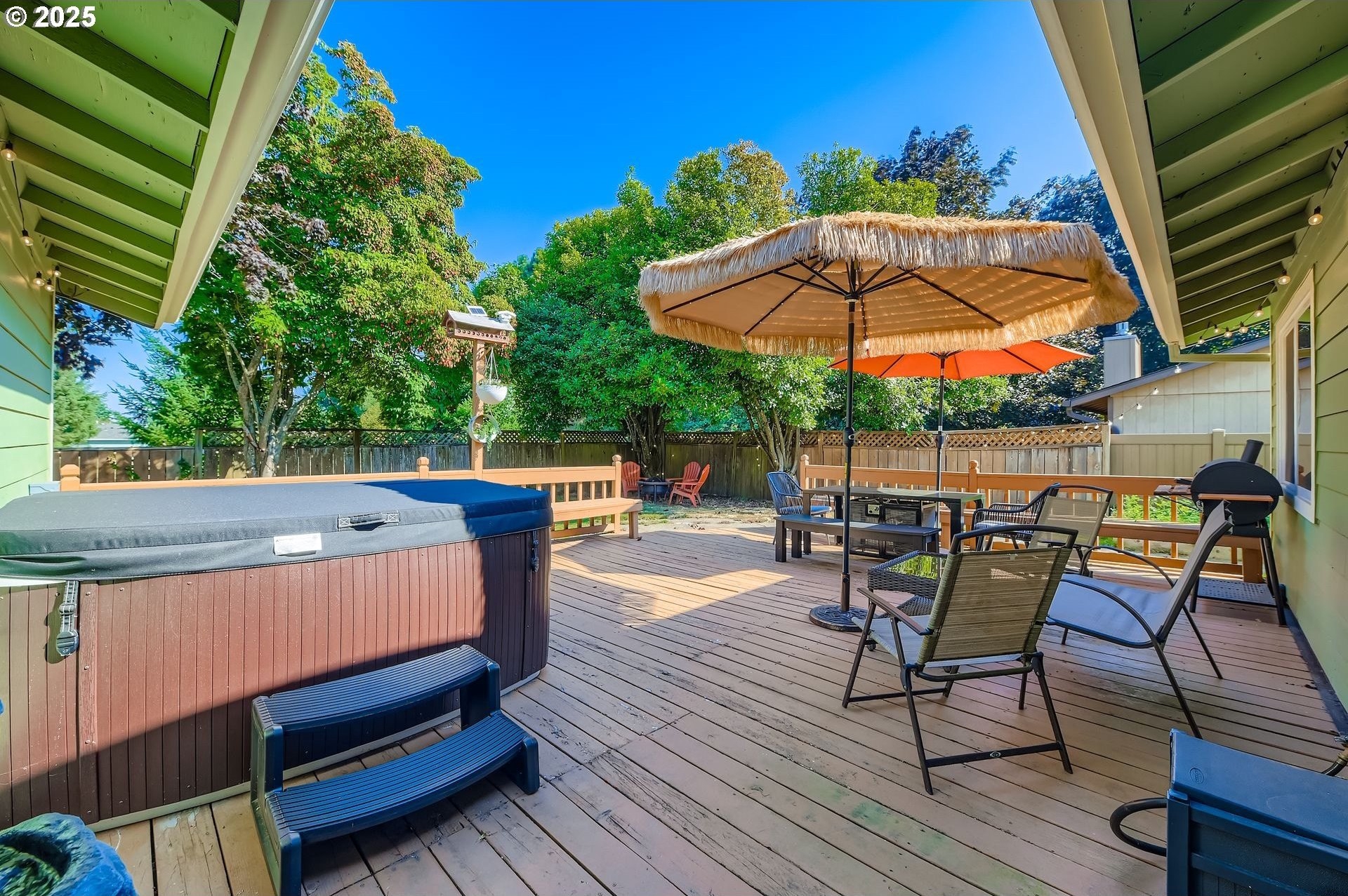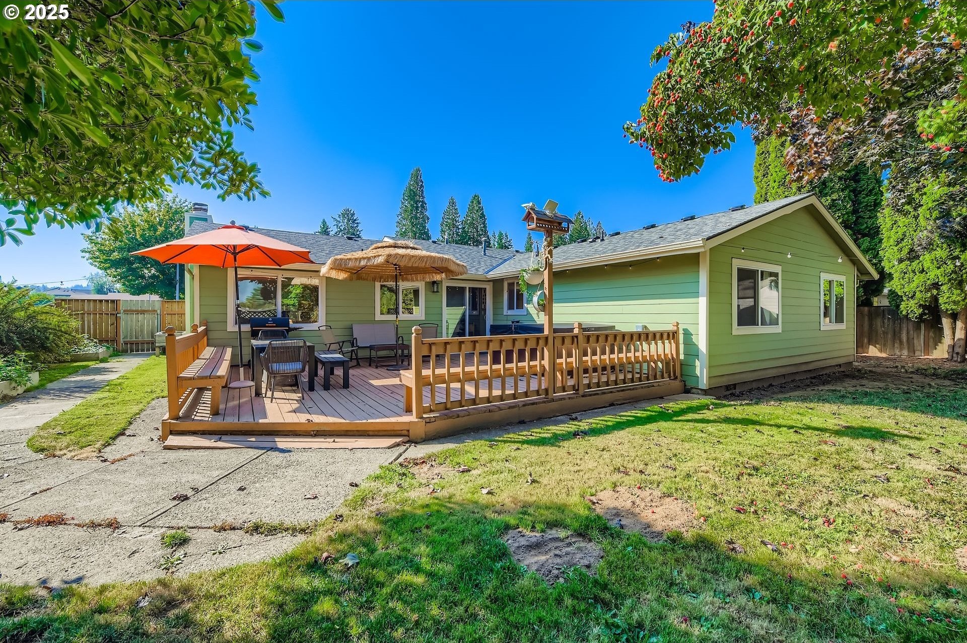 Exquisite One-Level Home in Serene Gresham Neighborhood! Welcome to this lovely 3-bedroom, 2-bathroom home offering 1,428 square feet of comfortable living space — all on one level! This well-maintained property is full of updates and move-in ready.Recent Upgrades Include: New roof, siding, exterior paint, and electrical panel (2023). New furnace and A/C (2017). New hot tub (2024) is NEGOTIABLE. Updated kitchen with eating bar, Corian countertops, newer gas range, cabinets, and dishwasher.Inside, you’ll find a spacious family room, dedicated laundry room, and double garage with plenty of storage plus pull-down attic storage. Step outside and fall in love with the beautiful fenced backyard, complete with garden space, deck, spacious lot, and a view of a Historic Barn — ideal for outdoor entertaining and Alfresco dining - a truly picturesque setting!Located in a quiet and peaceful neighborhood, this delightful home offers both comfort and convenience. Don't miss the opportunity to make this GEM your own — schedule a showing today! OPEN HOUSE FRIDAY 5-7PM, SAT. 1-3PM & SUNDAY 1-3PM.