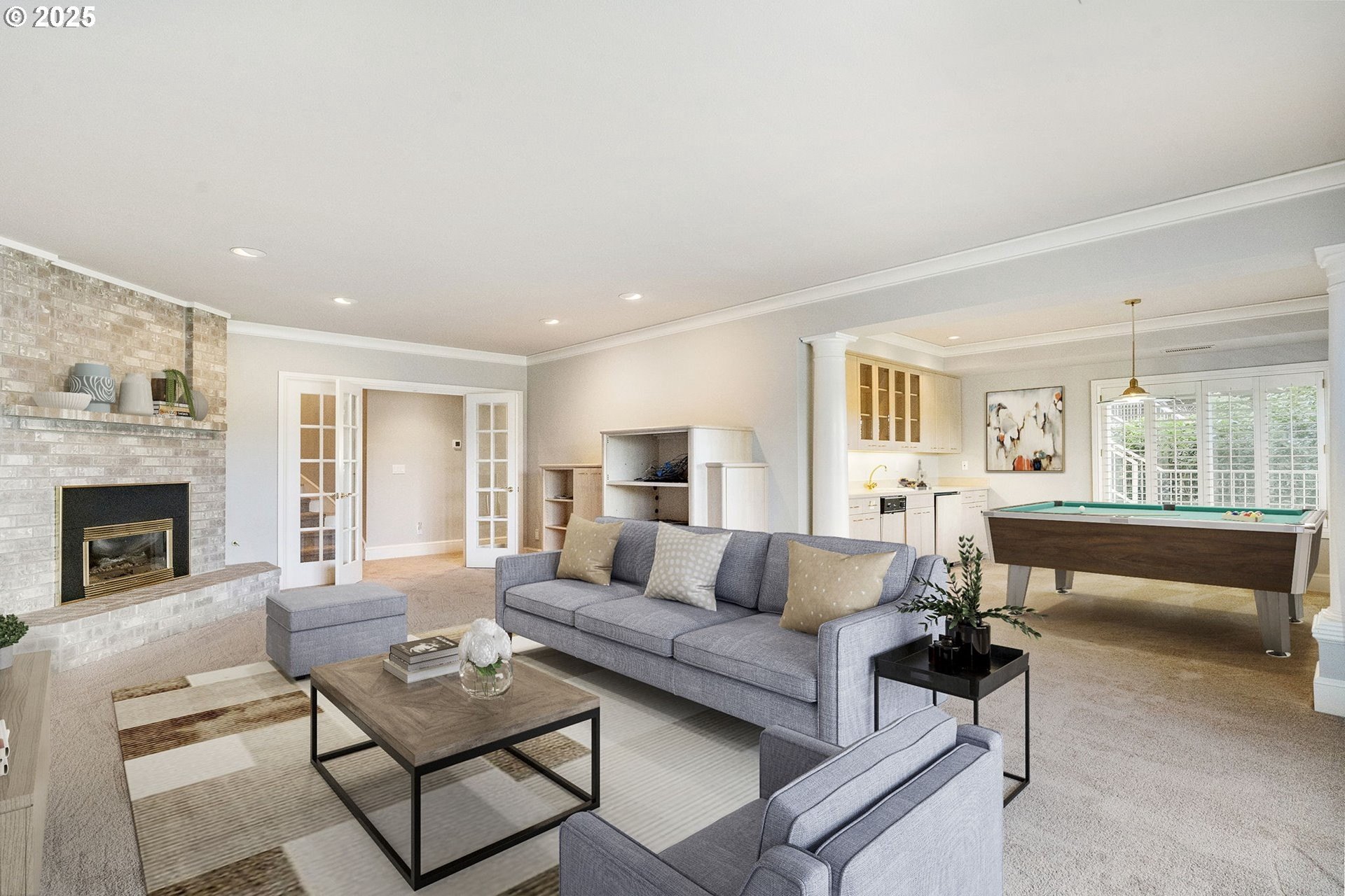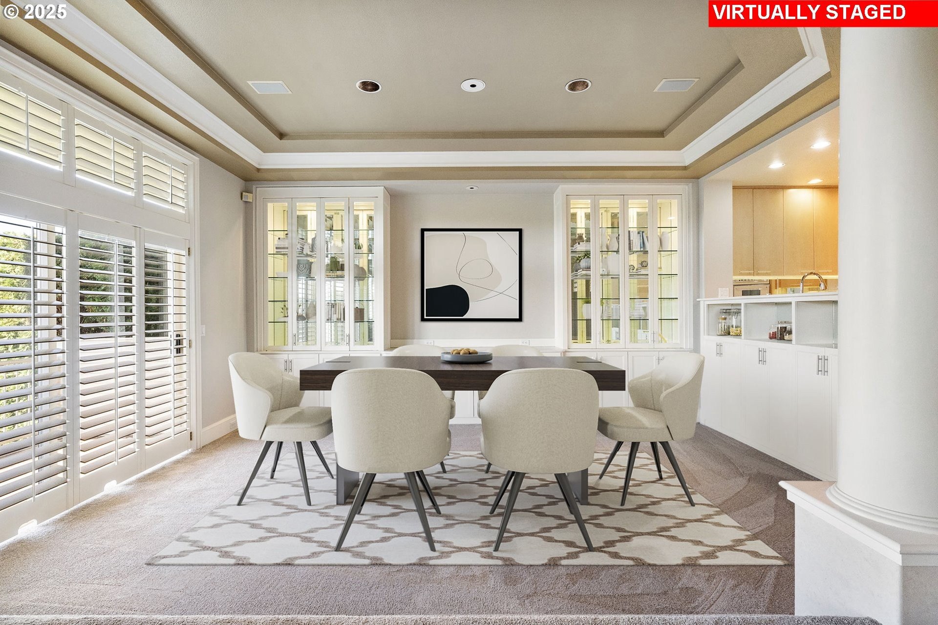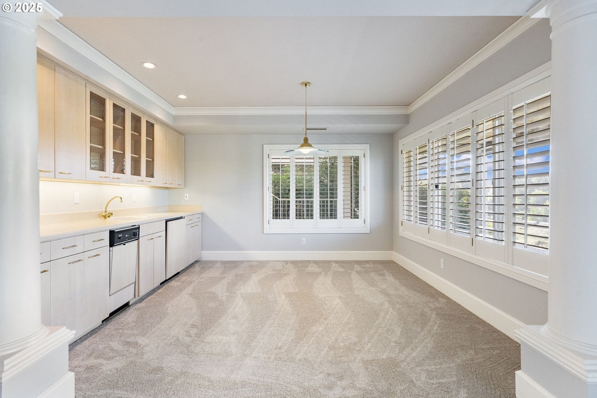 Jaw-dropping Vancouver Lake views from nearly every window! This expansive almost 4,000 sq ft condo in the private, gated Lake Crest Estates offers rare flexibility — perfect for multi-generational living or entertaining. The main level features a full kitchen and formal dining room with custom lighted built-in hutches, while the lower level offers a second kitchen/wet bar with built-in refrigerator, sink, dishwasher, and large dining area.Set within an exclusive community of only 4 units, this home provides exceptional privacy and quiet. Elegant plantation shutters throughout, Sliders on both levels leading to the covered deck and patio, and two fireplaces add charm and sophistication. Recent upgrades include new carpet, fresh paint, and a new HVAC system. Located in the sought-after Columbia River High School district, this residence blends space, elegance, and unmatched lake views.