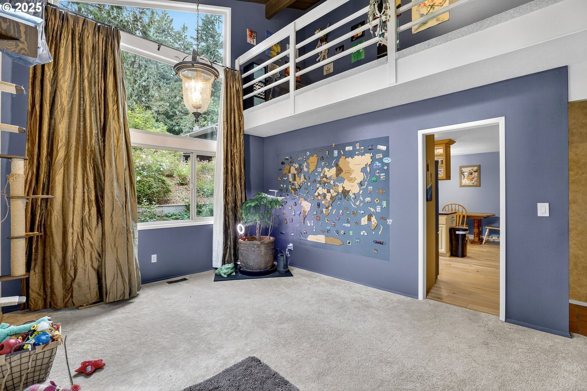 Centrally located in the highly sought-after Robinwood Estate subdivision of West Linn, this light-filled Northwest Contemporary home offers a versatile floor plan and timeless design.The main level features soaring vaulted ceilings, expansive windows, and an open living/dining room with French doors leading to a private patio. The spacious primary suite is also on the main, complete with French doors opening to a deck. A well-designed kitchen with a breakfast nook and a convenient laundry room complete the main floor.Upstairs, two bedrooms are separated by an airy catwalk and loft area, perfect for a home office, reading nook, or library. A full bathroom serves the upper level. Robinwood Estates is known for its peaceful atmosphere and friendly community—a rare find in such a desirable location.