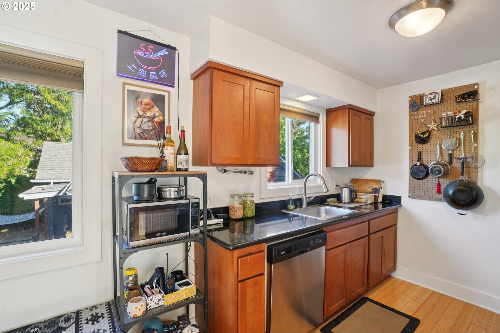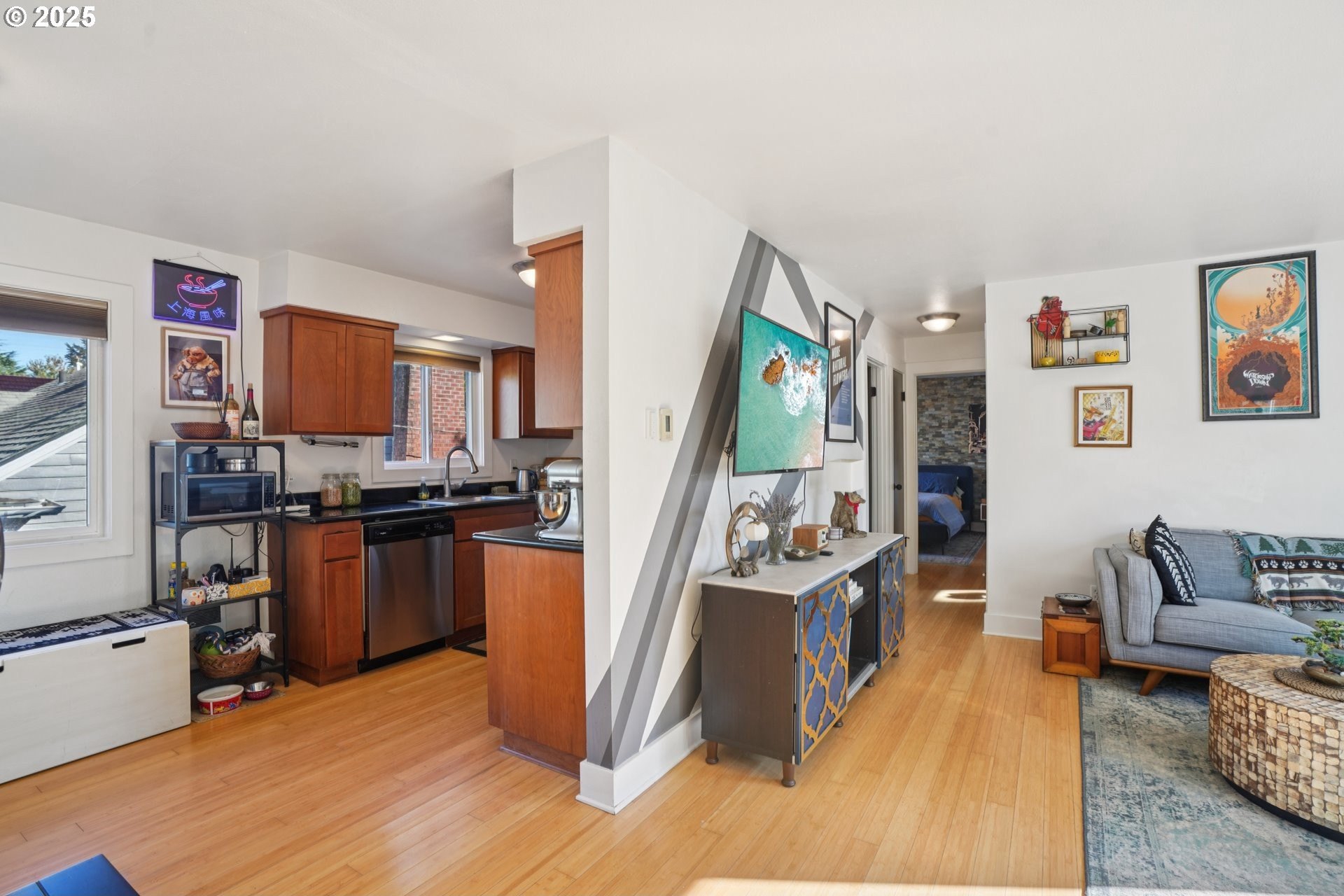 Charming Inner Eastside Condo – Walk Everywhere! Discover this stylish and bright upper-level 2-bedroom condo, perfectly located in the vibrant Inner Eastside. With a Walk Score of 94 and Bike Score of 99, you’re just minutes to Division, Hawthorne, shopping, restaurants, and everything Portland has to offer. Inside, enjoy bamboo flooring, an updated kitchen with granite slab counters, cherry-finished cabinets, and stainless steel appliances. The open-concept living and dining area provides a comfortable space for both everyday living and entertaining. Two spacious bedrooms feature generously sized closets, while the bathroom shines with slate floors, subway tile, and a marble slab countertop. Additional conveniences include an in-unit washer/dryer, on-demand hot water, and a deeded parking spot. Move-in ready and packed with updates, this condo is the perfect blend of comfort, style, and city living.