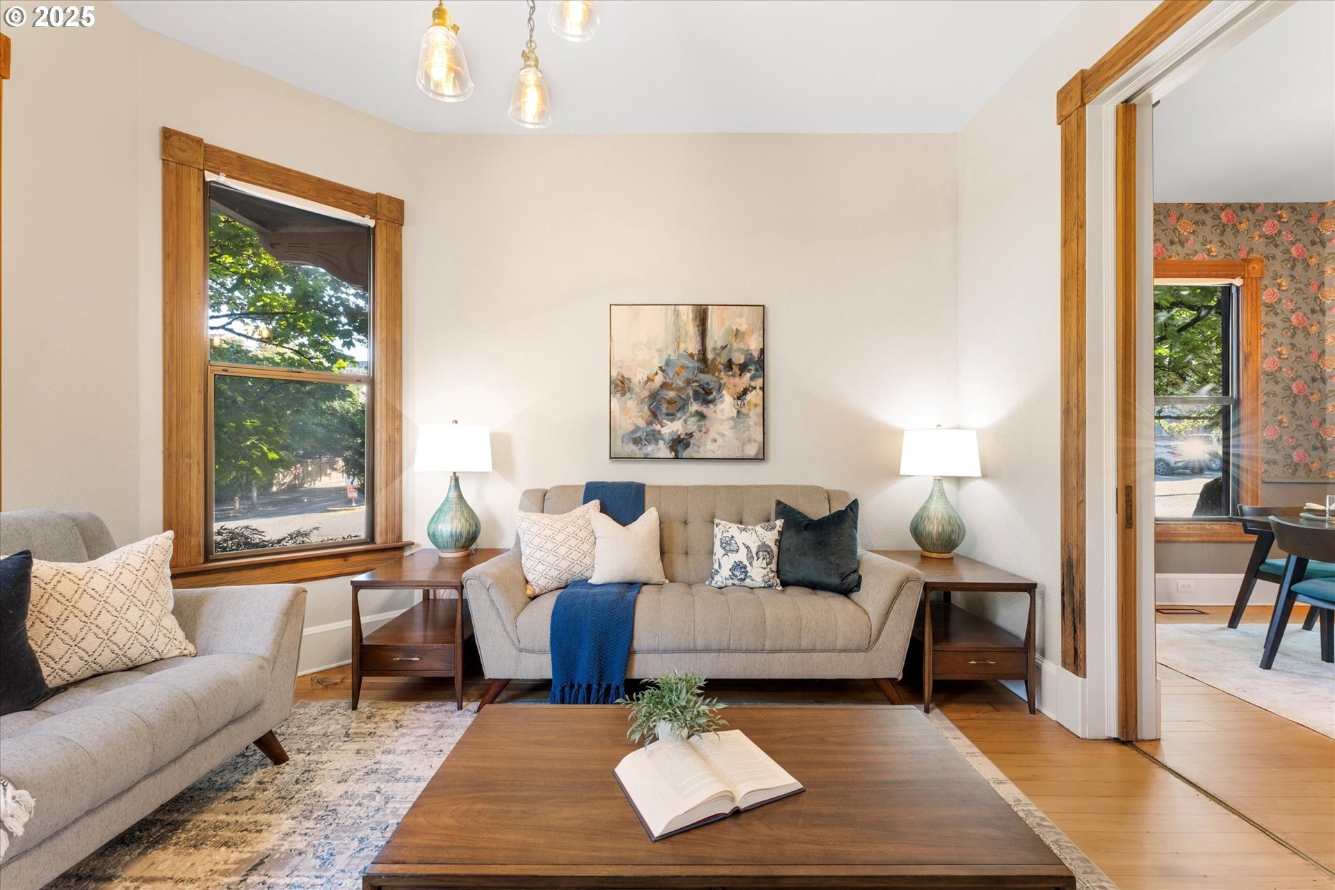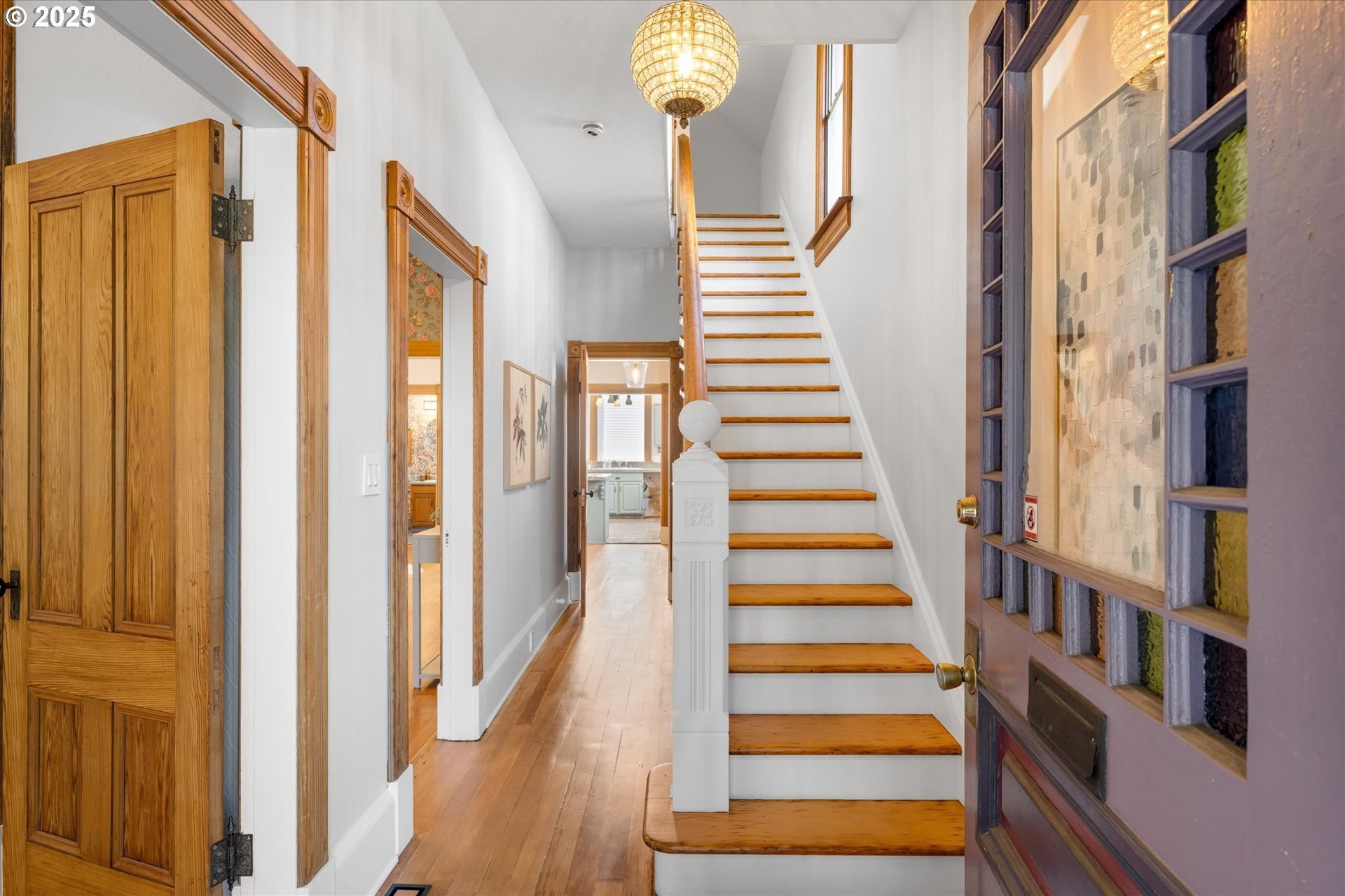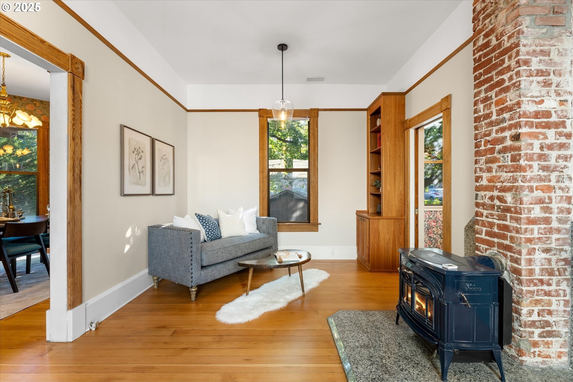 Queen Anne charm with a wink. This lovingly preserved yet reimagined Victorian is overflowing with personality, from newly refinished hardwoods that actually shine to cozy nooks perfect for readers, zoomers, and day-dreamers alike. The classic layout offers gracious flow, with the formal dining room taking center stage—an ideal setting for holiday feasts, card games, and evenings that stretch into laughter and candlelight. The kitchen showcasing with new stainless steel appliances, blends old-world practicality with modern ease, offering a seamless space for everyday meals and midnight snacks alike. Morning light pours through the sunroom, perfect for slow coffee rituals and Sunday papers. Outside, the fully fenced backyard is both functional and enchanting: garden beds ready for dahlias or heirloom tomatoes, a deck made for twilight dinners, and a shed waiting patiently for new bikes, kayaks, and skis alike. Upstairs, discover four restful bedrooms, each with its own quiet charm. BONUS! New interior paint, new stainless appliances, preserved craftsmanship with a modern refresh, newer roof, newer furnace and water heater. All this, just a half-mile to shops, parks, and transit—and under a mile to the waterfront for breezy strolls and golden-hour views. Endlessly charming. Enduringly practical. A Victorian with heart, ready for her next chapter. [Home Energy Score = 1. HES Report at https://rpt.greenbuildingregistry.com/hes/OR10241986]