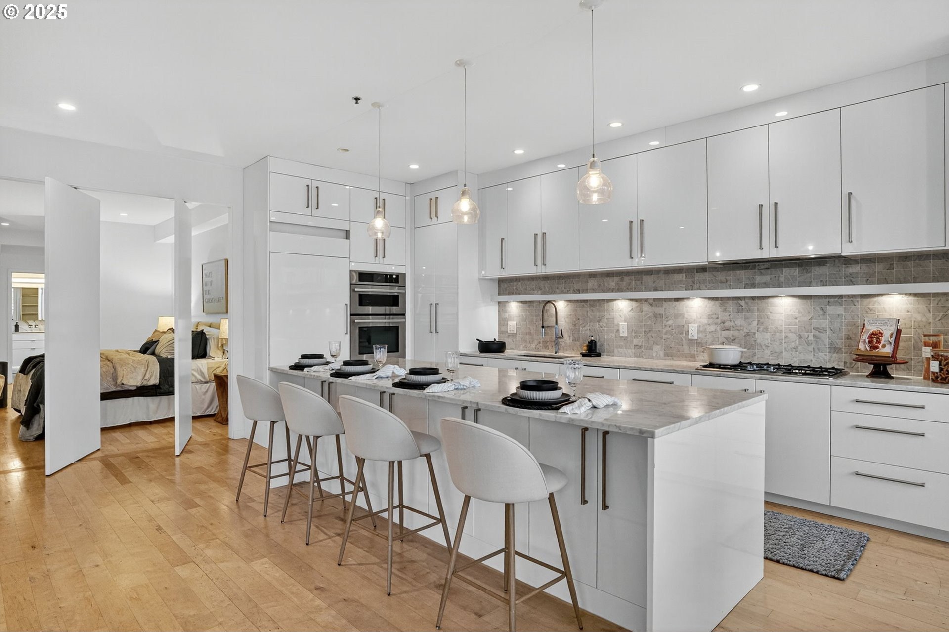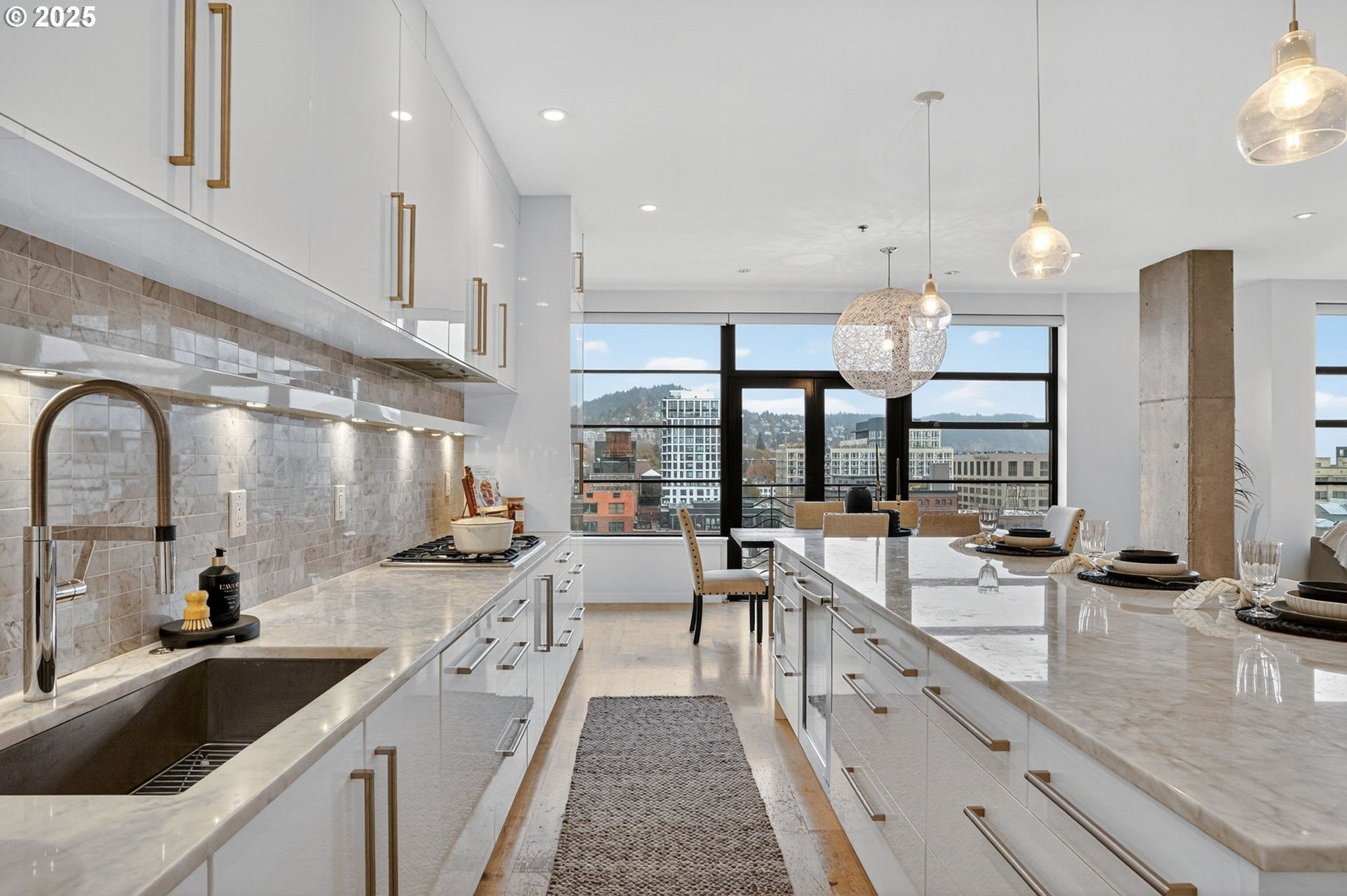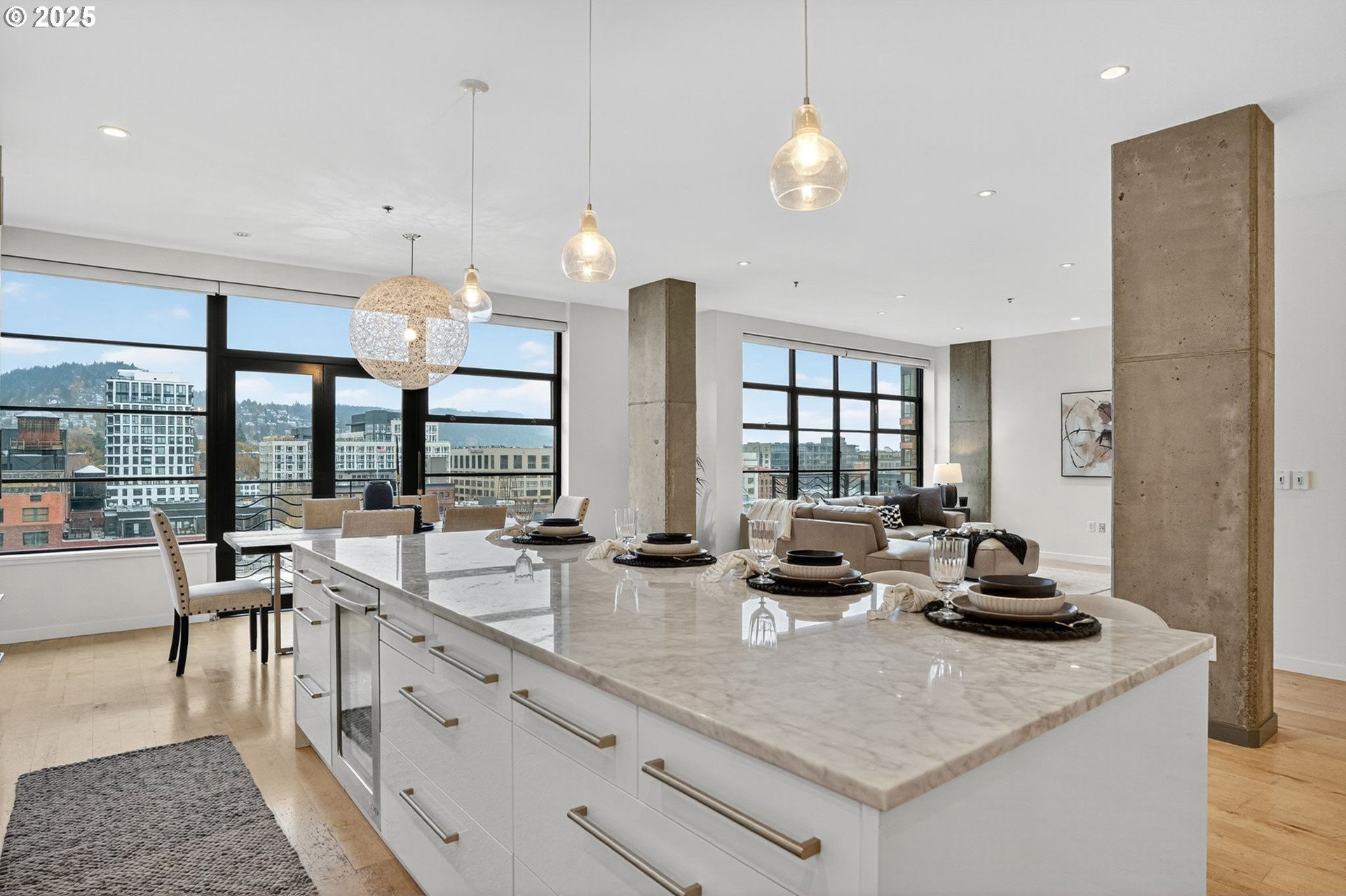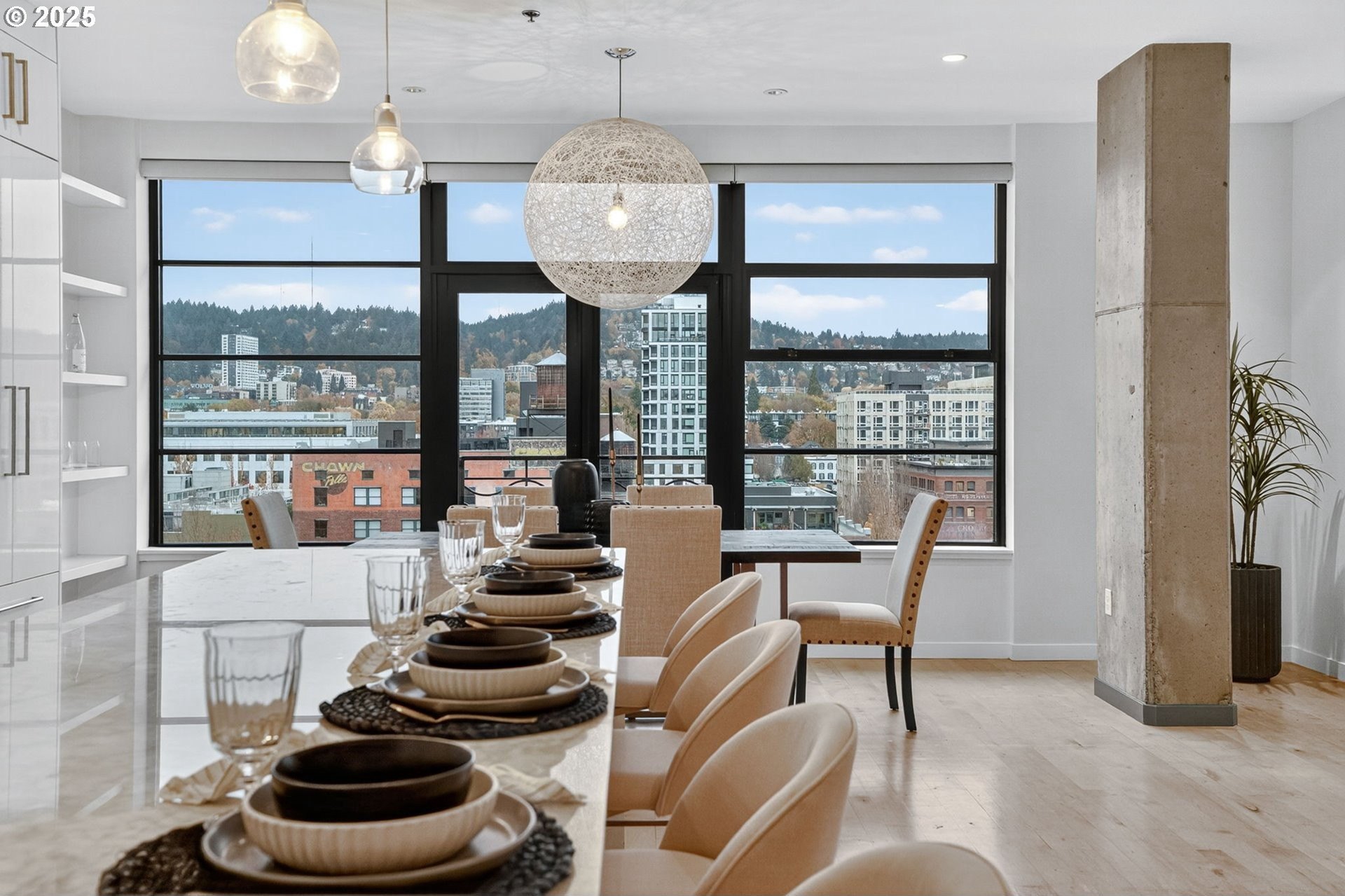 Experience luxurious city living high above the Pearl District in this stunning 10th-floor condo at The Gregory. Soaring views of the city and West Hills create a breathtaking backdrop for everyday life. The open floor plan blends modern design with flexibility, featuring elegant louvered wall dividers that let you choose between open, loft-style living or private bedroom retreats. The gourmet kitchen is a showpiece with Carrara marble countertops, a spacious island with breakfast bar seating, and abundant storage. Every detail has been thoughtfully designed with style and comfort in mind, from the built-in features to the Juliet balcony that invites you to soak in the sunsets. Enjoy exclusive amenities including a 5th-floor patio with grills and panoramic city views, secure bike storage, and a deeded parking space & storage unit. With world-class dining, shopping, and parks just outside your door, The Gregory offers the perfect blend of luxury, convenience, and vibrant urban energy. Come experience the best of Pearl District living - schedule your private tour today.