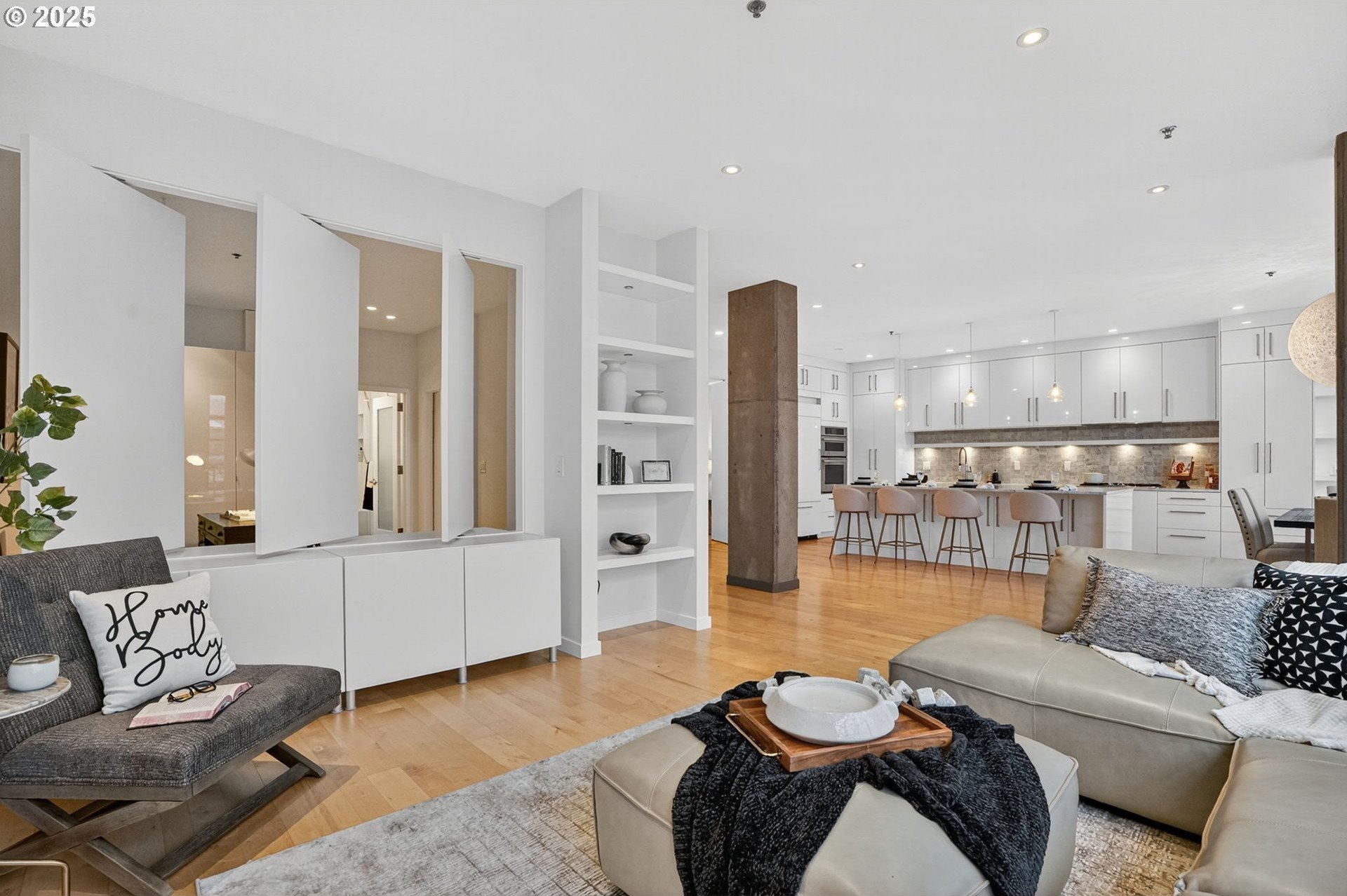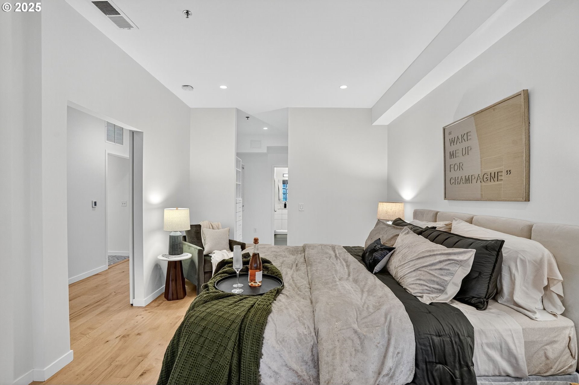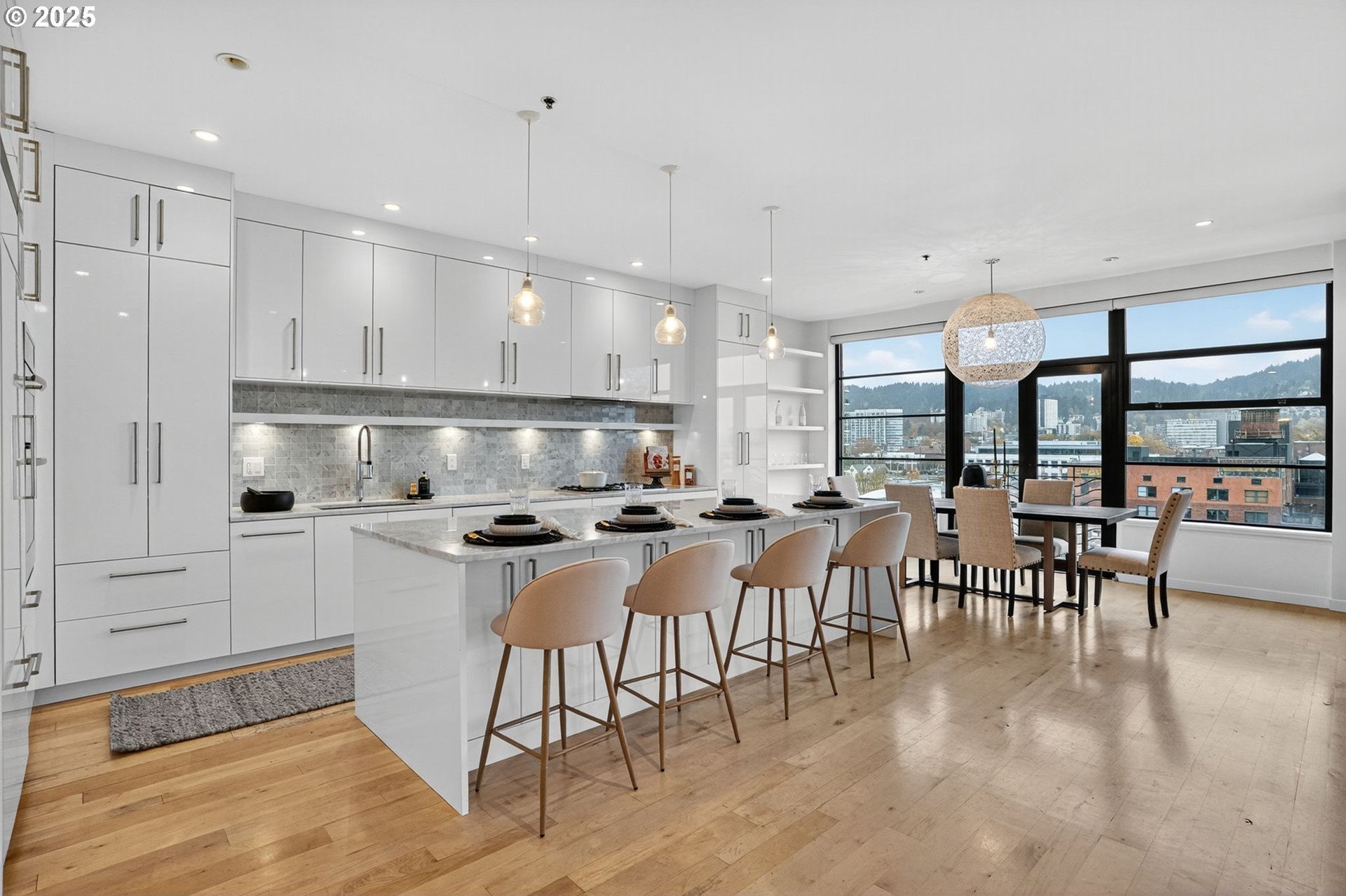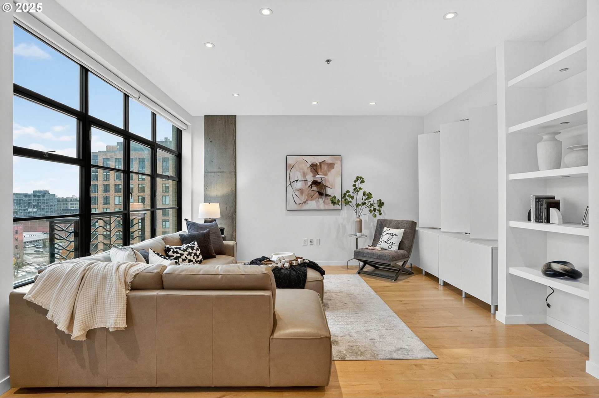 Experience luxurious city living high above the Pearl District in this stunning 10th-floor condo at The Gregory. Soaring views of the city and West Hills create a breathtaking backdrop for everyday life. The open floor plan blends modern design with flexibility, featuring elegant louvered wall dividers that let you choose between open, loft-style living or private bedroom retreats. The gourmet kitchen is a showpiece with Carrara marble countertops, a spacious island with breakfast bar seating, and abundant storage. Every detail has been thoughtfully designed with style and comfort in mind, from the built-in features to the Juliet balcony that invites you to soak in the sunsets. Enjoy exclusive amenities including a 5th-floor patio with grills and panoramic city views, secure bike storage, and a deeded parking space & storage unit. With world-class dining, shopping, and parks just outside your door, The Gregory offers the perfect blend of luxury, convenience, and vibrant urban energy. Come experience the best of Pearl District living - schedule your private tour today.