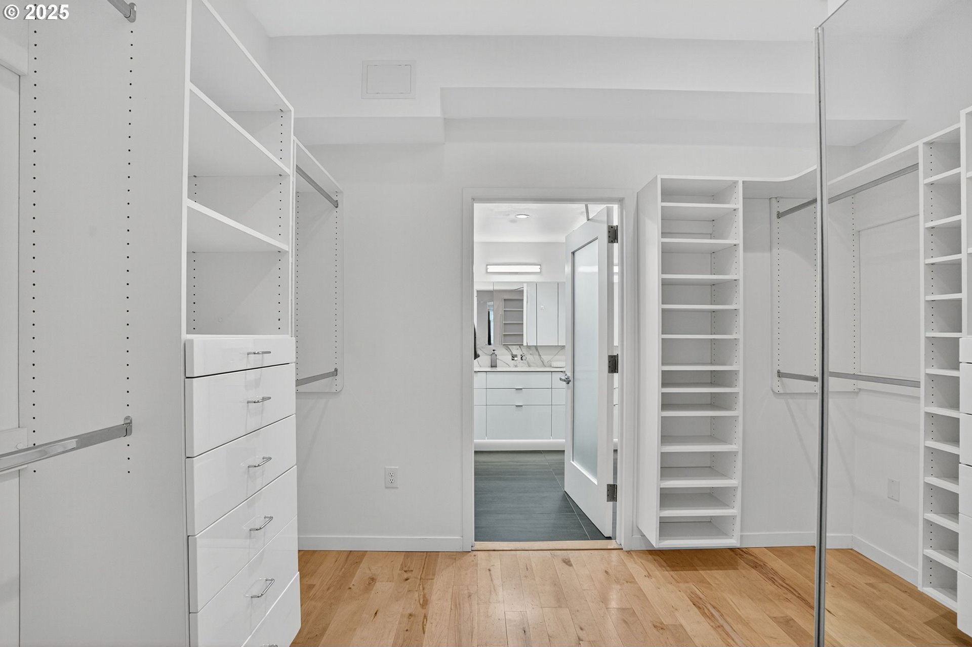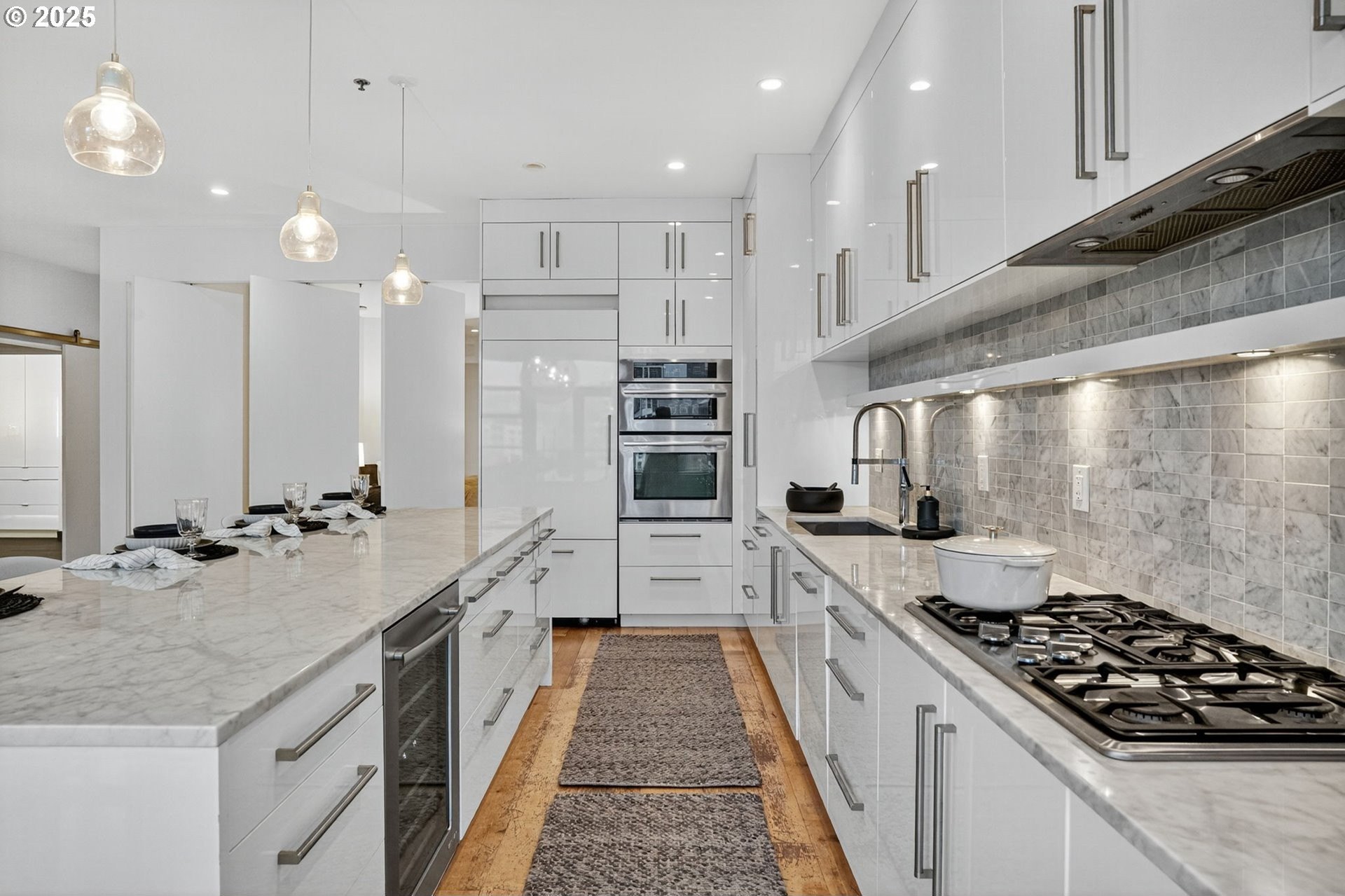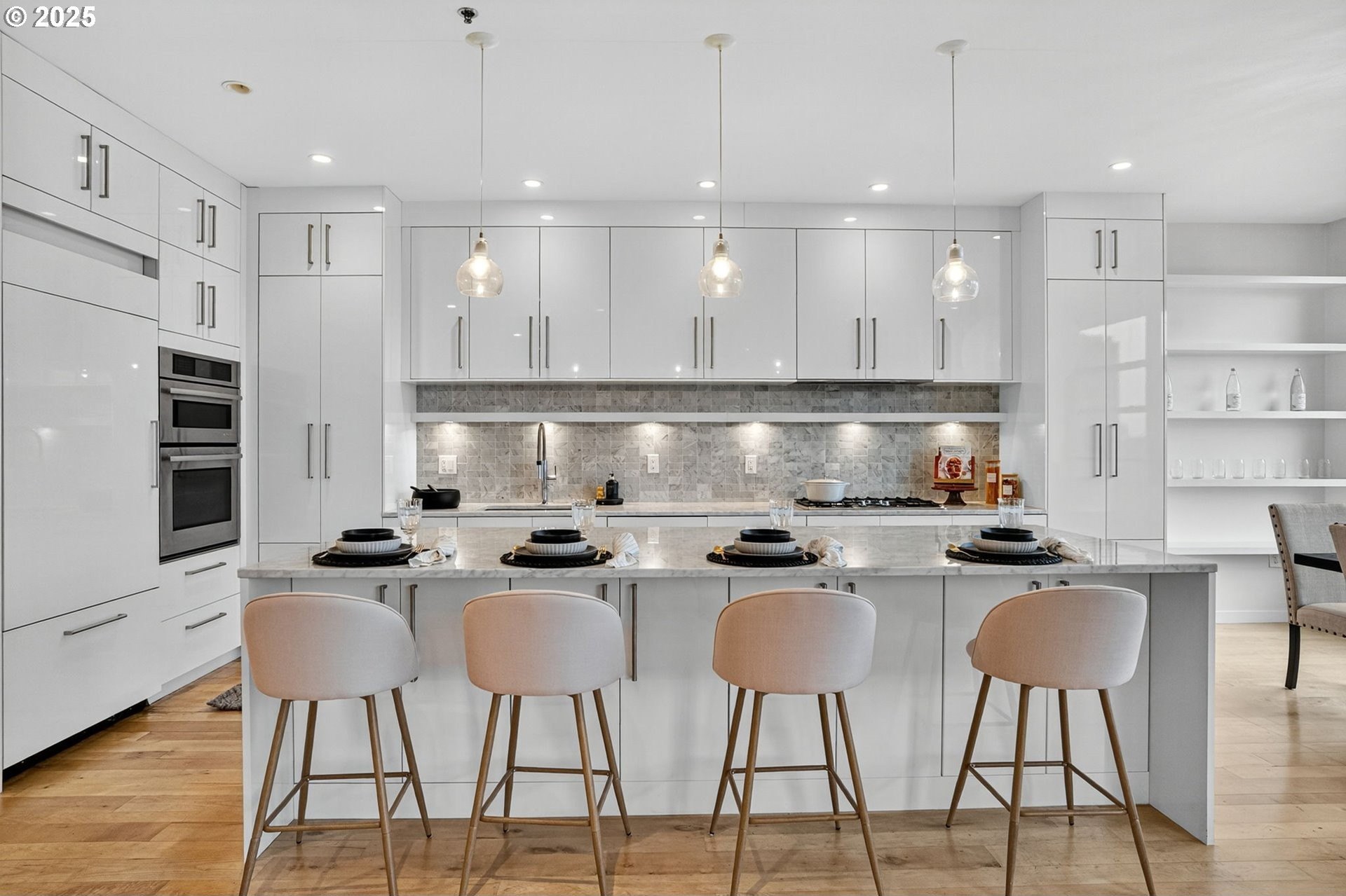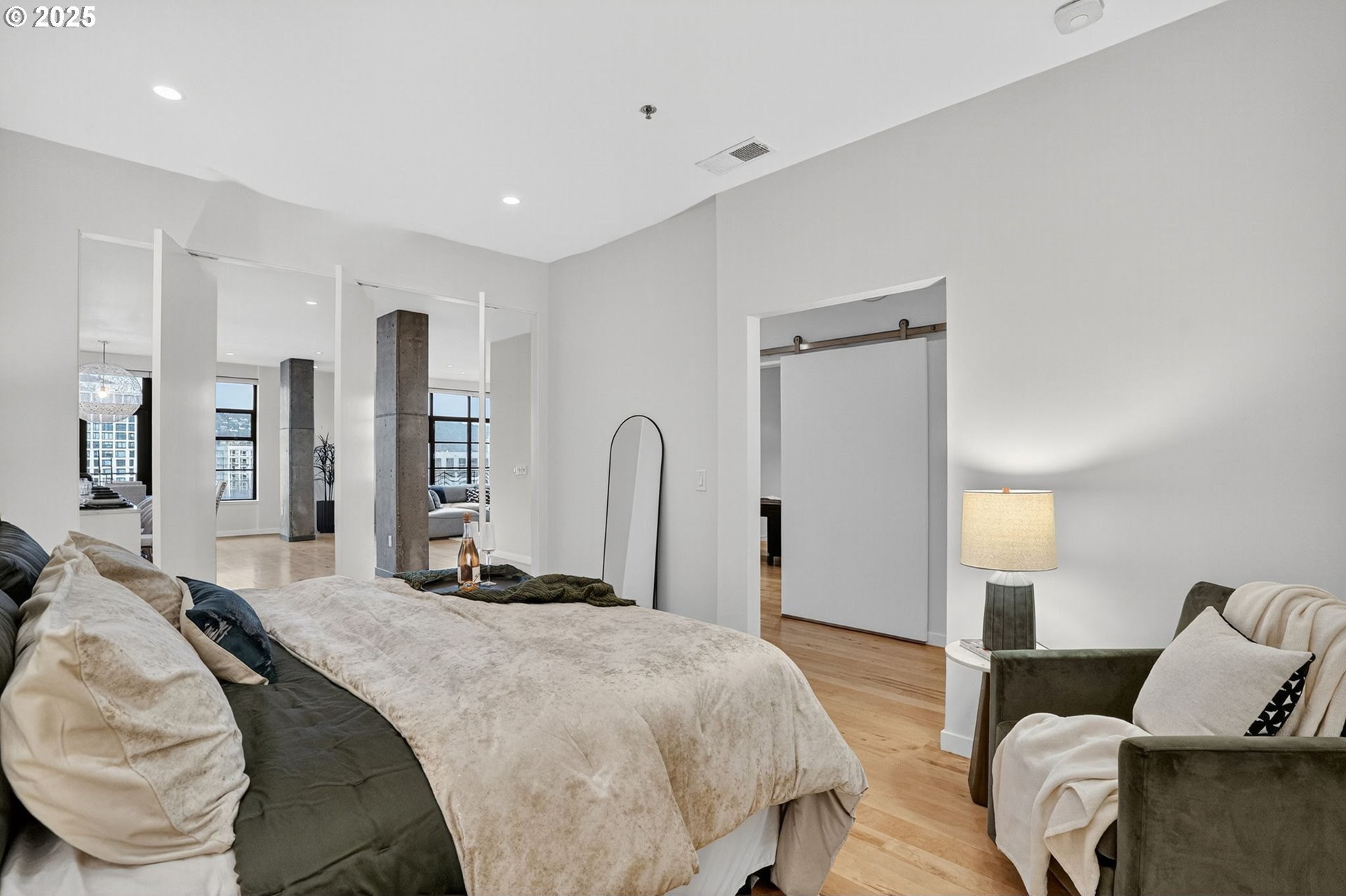Experience luxurious city living high above the Pearl District in this stunning 10th-floor condo at The Gregory. Soaring views of the city and West Hills create a breathtaking backdrop for everyday life. The open floor plan blends modern design with flexibility, featuring elegant louvered wall dividers that let you choose between open, loft-style living or private bedroom retreats. The gourmet kitchen is a showpiece with Carrara marble countertops, a spacious island with breakfast bar seating, and abundant storage. Every detail has been thoughtfully designed with style and comfort in mind, from the built-in features to the Juliet balcony that invites you to soak in the sunsets. Enjoy exclusive amenities including a 5th-floor patio with grills and panoramic city views, secure bike storage, and a deeded parking space & storage unit. With world-class dining, shopping, and parks just outside your door, The Gregory offers the perfect blend of luxury, convenience, and vibrant urban energy. Come experience the best of Pearl District living - schedule your private tour today.