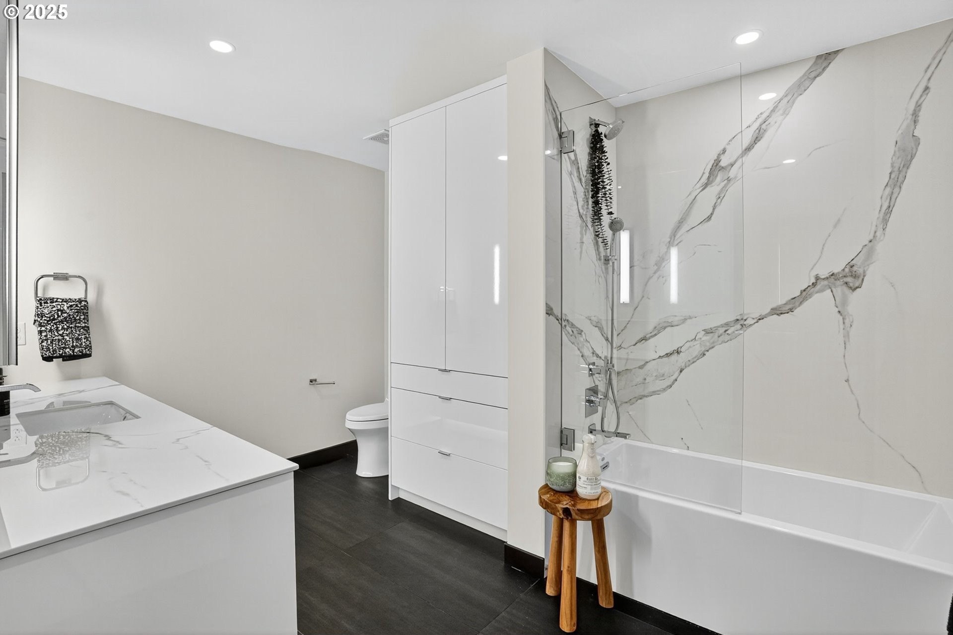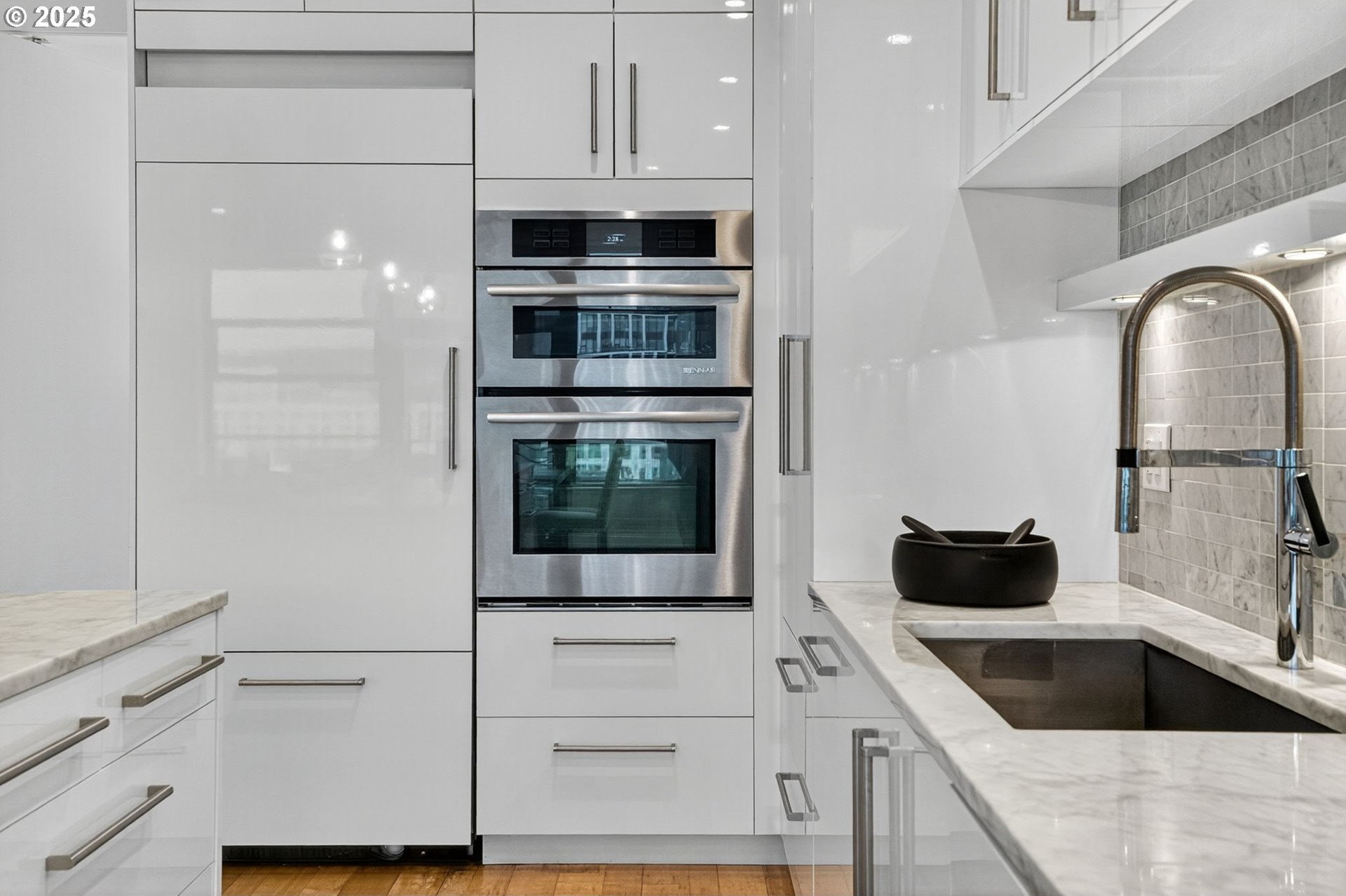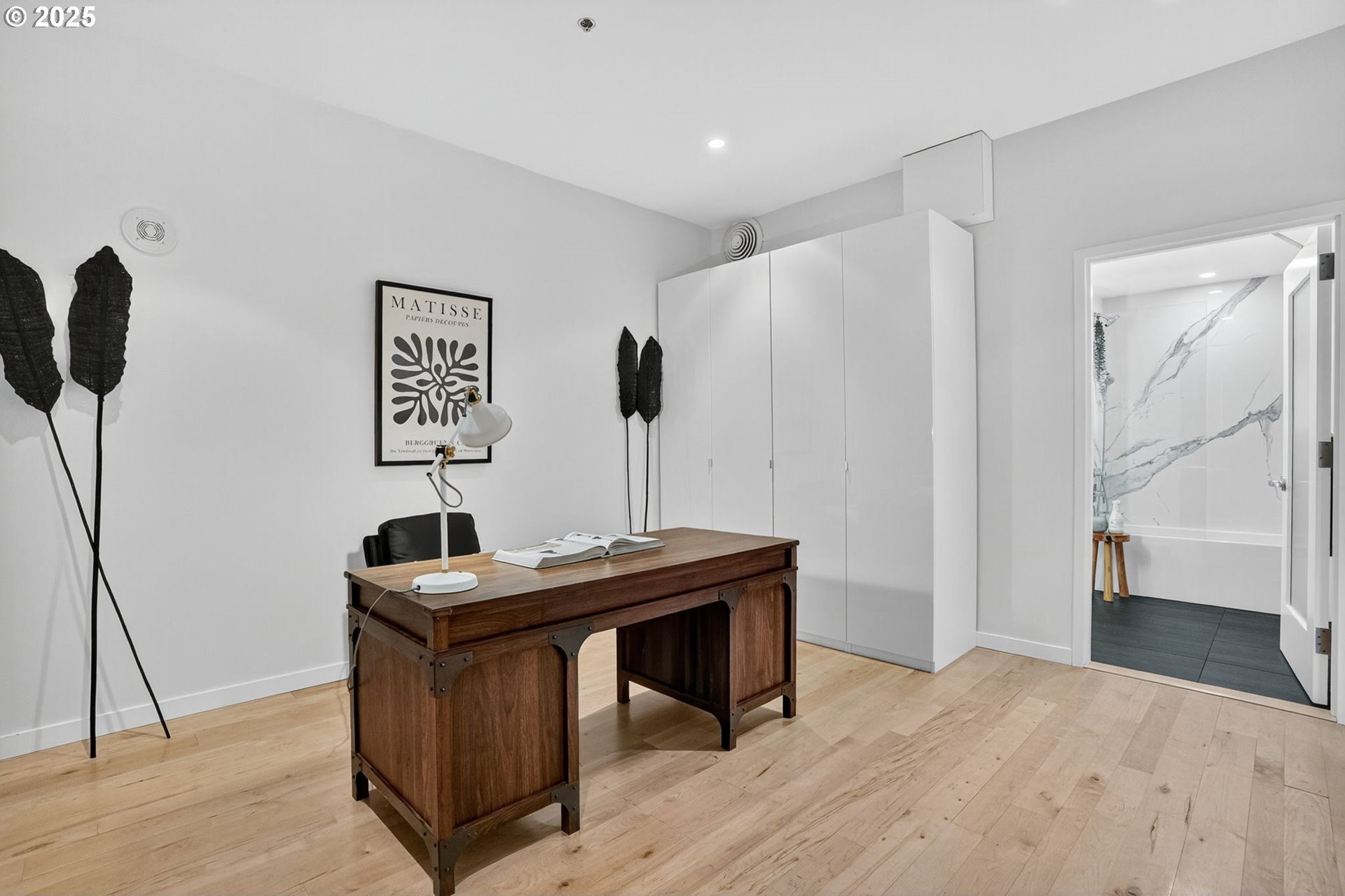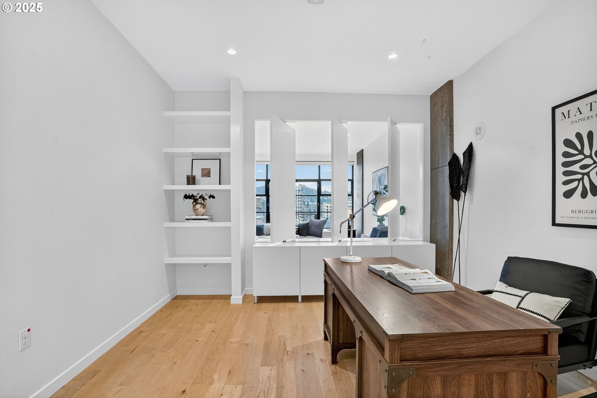 Experience luxurious city living high above the Pearl District in this stunning 10th-floor condo at The Gregory. Soaring views of the city and West Hills create a breathtaking backdrop for everyday life. The open floor plan blends modern design with flexibility, featuring elegant louvered wall dividers that let you choose between open, loft-style living or private bedroom retreats. The gourmet kitchen is a showpiece with Carrara marble countertops, a spacious island with breakfast bar seating, and abundant storage. Every detail has been thoughtfully designed with style and comfort in mind, from the built-in features to the Juliet balcony that invites you to soak in the sunsets. Enjoy exclusive amenities including a 5th-floor patio with grills and panoramic city views, secure bike storage, and a deeded parking space & storage unit. With world-class dining, shopping, and parks just outside your door, The Gregory offers the perfect blend of luxury, convenience, and vibrant urban energy. Come experience the best of Pearl District living - schedule your private tour today.