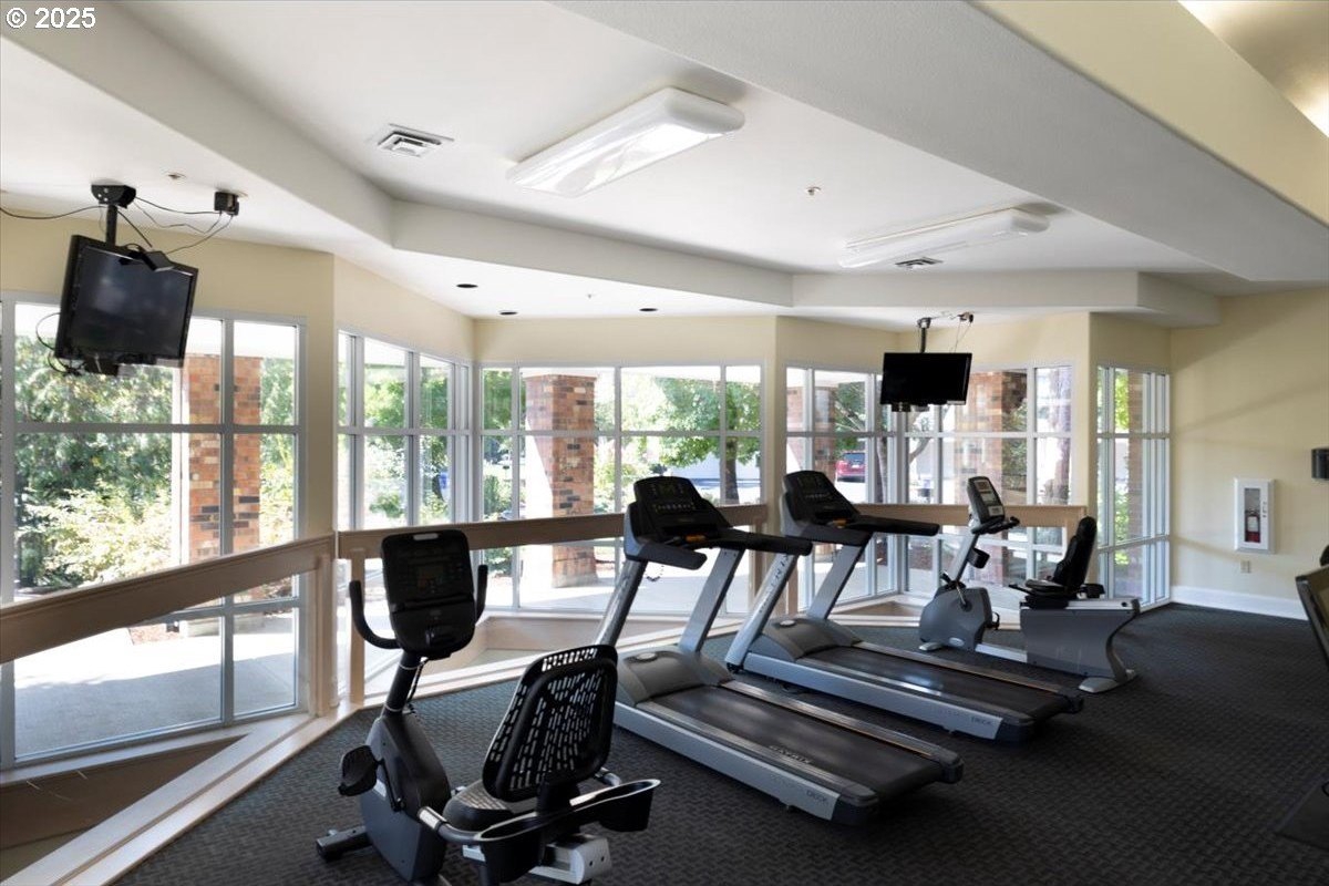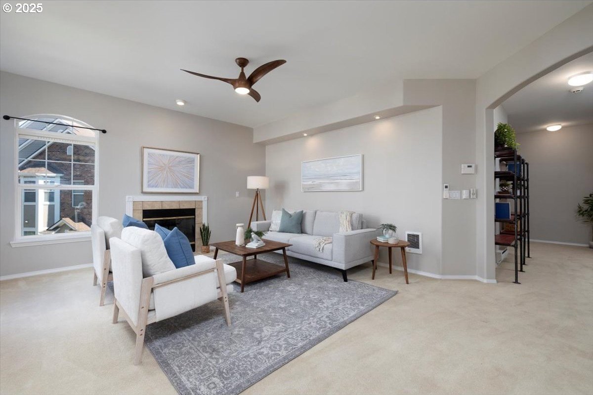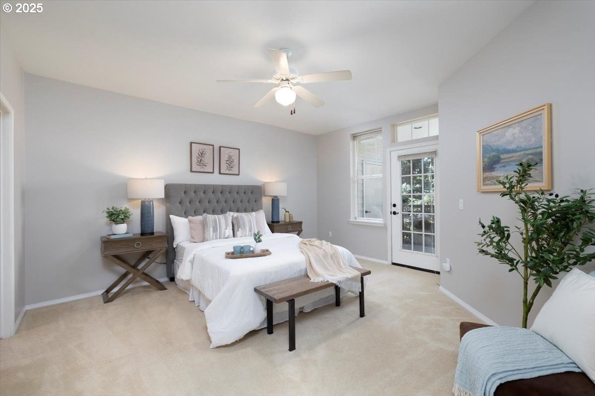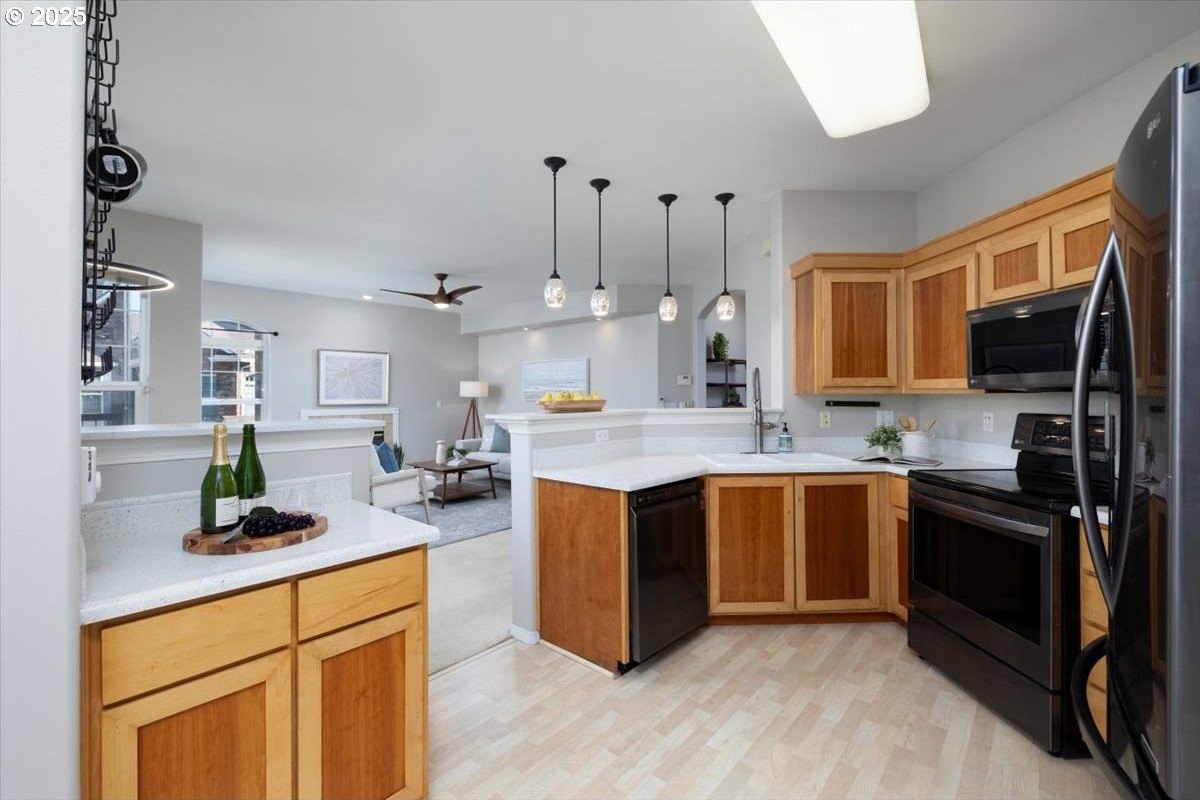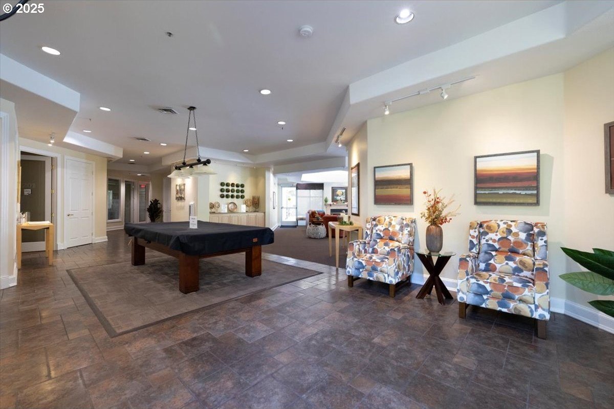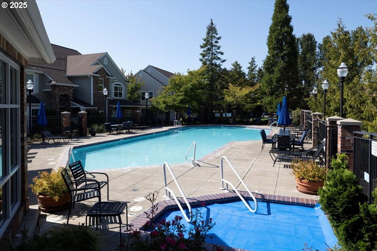 Welcome to highly sought-after Orenco Station! This gorgeous corner-unit condo offers 2 bedrooms, 2 bathrooms, and an oversized attached 2-car garage (side by side) with an EV charger. Freshly painted and move-in ready, the home features a bright and inviting open floor plan. The living room includes a cozy wood-burning fireplace and deck access, while the spacious bayed dining area flows seamlessly into the kitchen—complete with granite bar seating, a pantry, nook, and newer stainless steel appliances (refrigerator included). The primary suite boasts a large walk-in closet and private deck, and you’ll appreciate the additional office space with built-in desk and shelving. A generous laundry and storage room (washer and dryer included) adds convenience. South-facing windows flood the home with natural light, while a newer mini-split heat pump ensures comfort year-round. HOA covers water and sewer. Just outside your door, enjoy the vibrant Orenco Station neighborhood with New Seasons Market, restaurants, cafes, and MAX Light Rail all within easy reach.