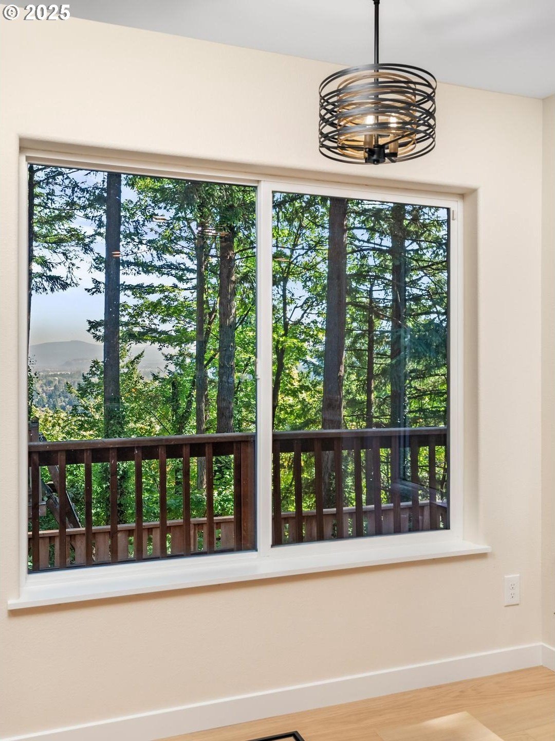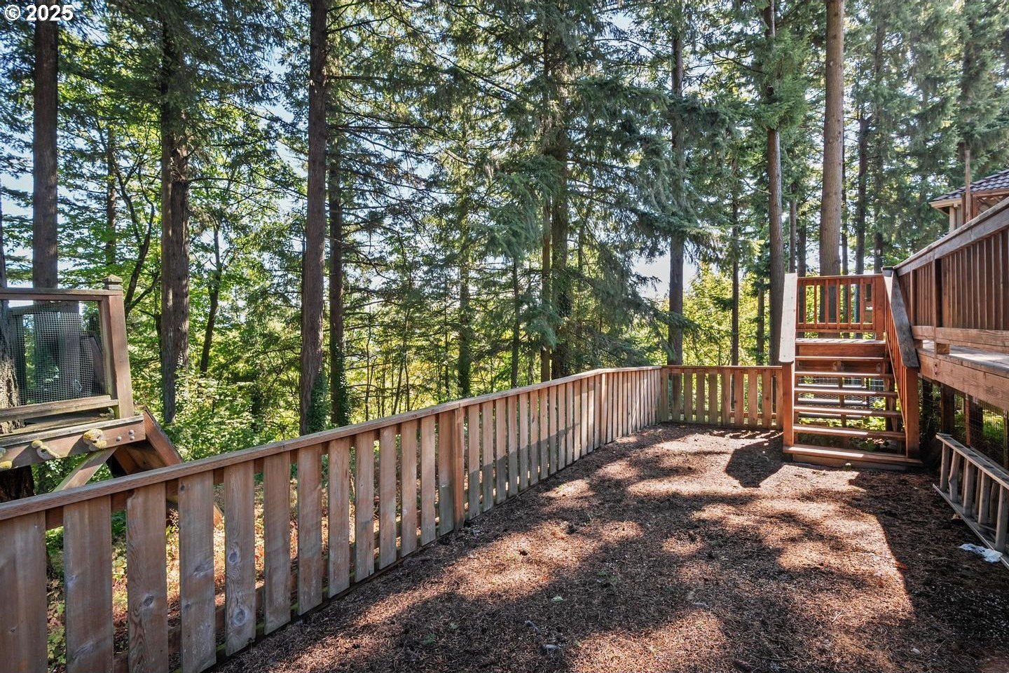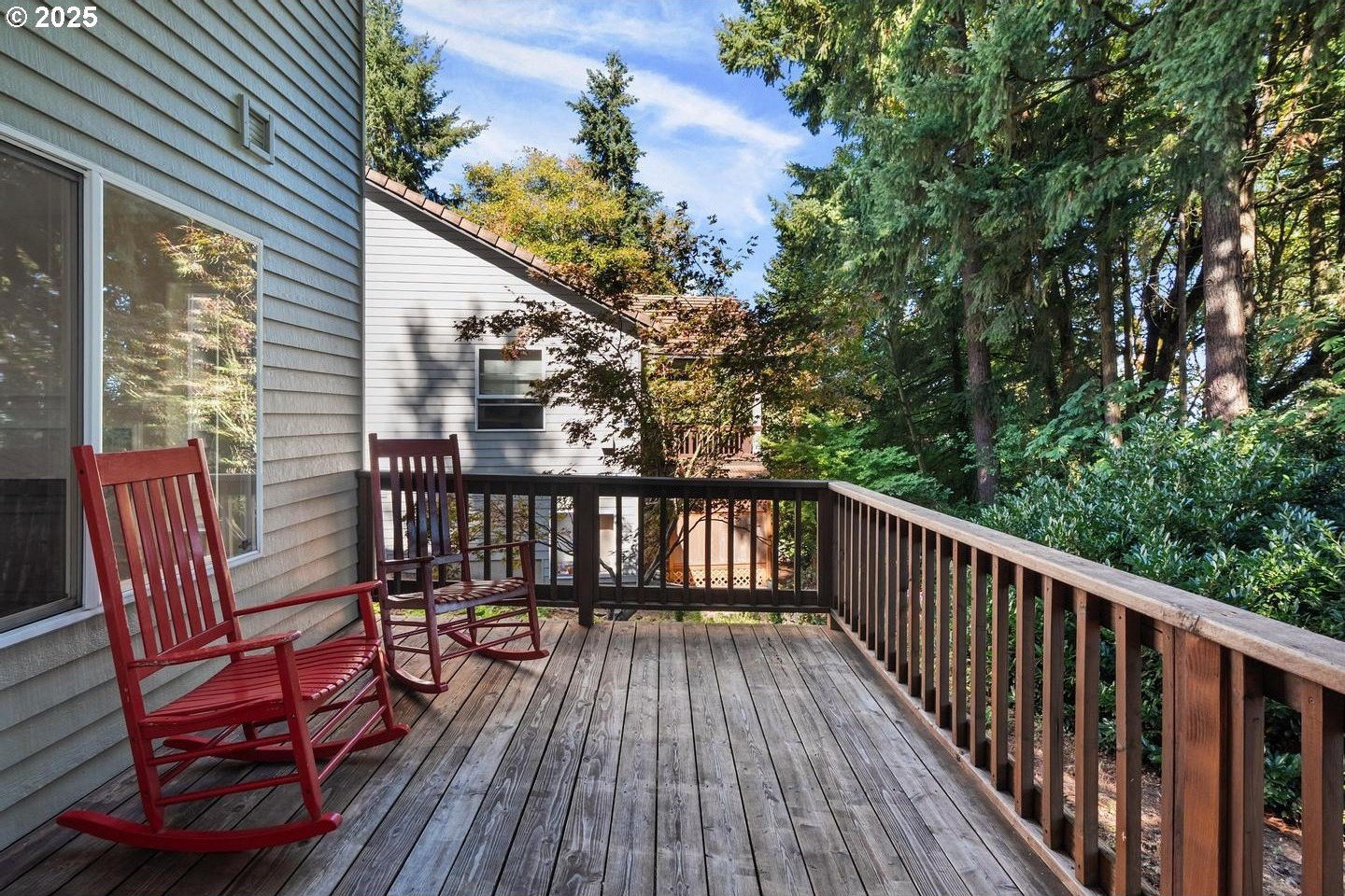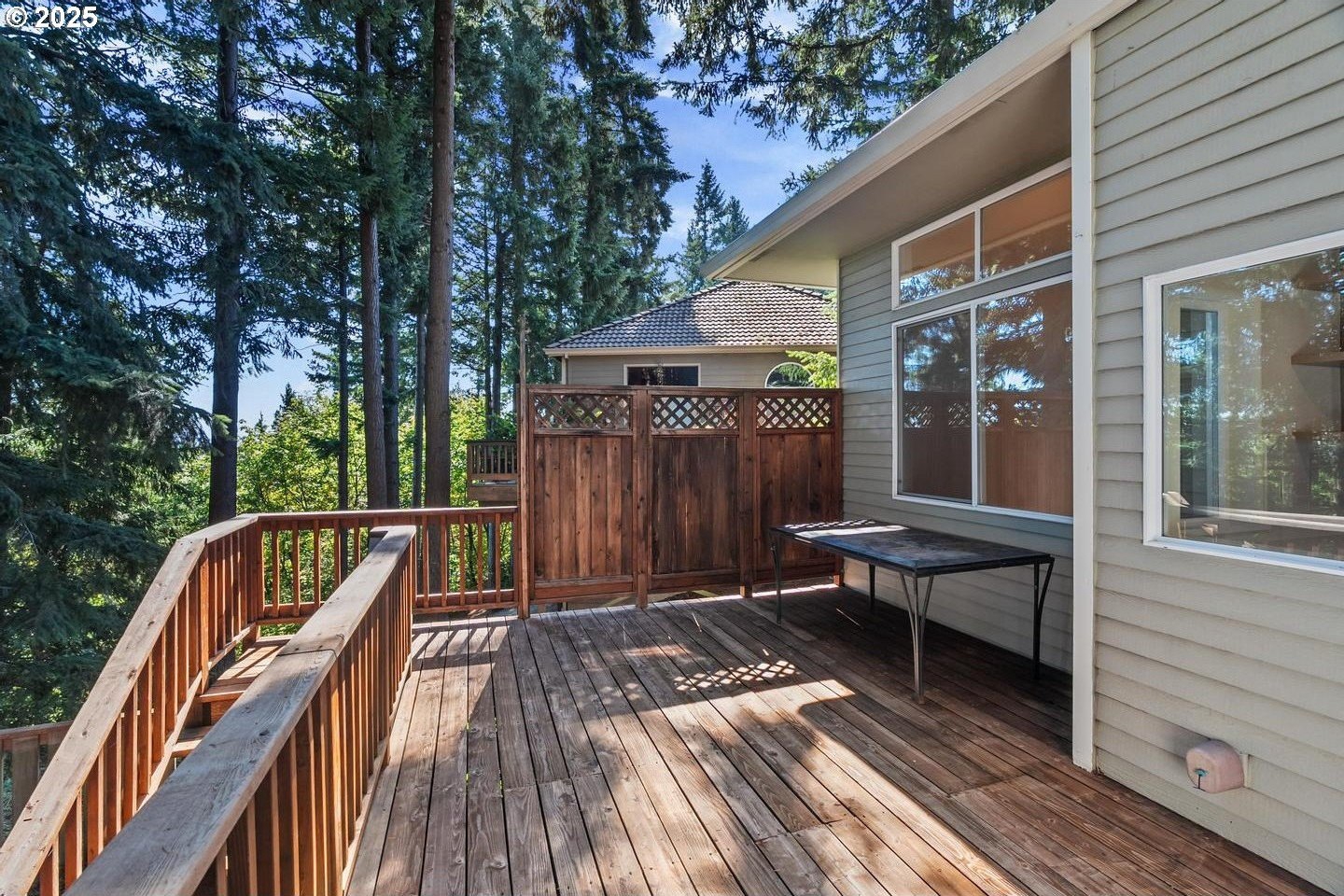 Perched atop Rocky Butte in a quiet cul-de-sac, this beautifully remodeled home offers breathtaking views and a rare private setting beside the historic landmark. Surrounded by lush evergreens, it seamlessly blends modern updates with natural beauty. Step inside to soaring vaulted ceilings and light-filled living spaces, where walls of windows frame serene forest views. The spacious kitchen boasts quartz counters, a large island with a gas Wolf cooktop, new cabinetry, top-of-the-line appliances, and gleaming hardwood floors—all opening to a cozy family room with a fireplace. Glass door leads to a large deck with amazing views, perfect for morning coffee or evening gatherings. Upstairs, the owner’s suite is a peaceful retreat with stunning views, a walk-in closet, and a spa-like bath featuring brushed gold fixtures, heated tile floors, and a walk-in shower. Throughout the home, you’ll find new cabinetry, quartz counters, tile, flooring, designer finishes, and contemporary lighting. Nestled next to the historic Rocky Butte Viewpoint Park with access to a 2.7-mile bike/hike trail, this home offers both tranquility and convenience—just minutes from city amenities. Remodeled in 2024 with new presidential roof, furnace, water heater, plumbing, electrical, SS appliances, cabinets, quartz counters, tile, & much more. A rare opportunity to own a pristine, one-of-a-kind retreat! [Home Energy Score = 4. HES Report at https://rpt.greenbuildingregistry.com/hes/OR10232648]