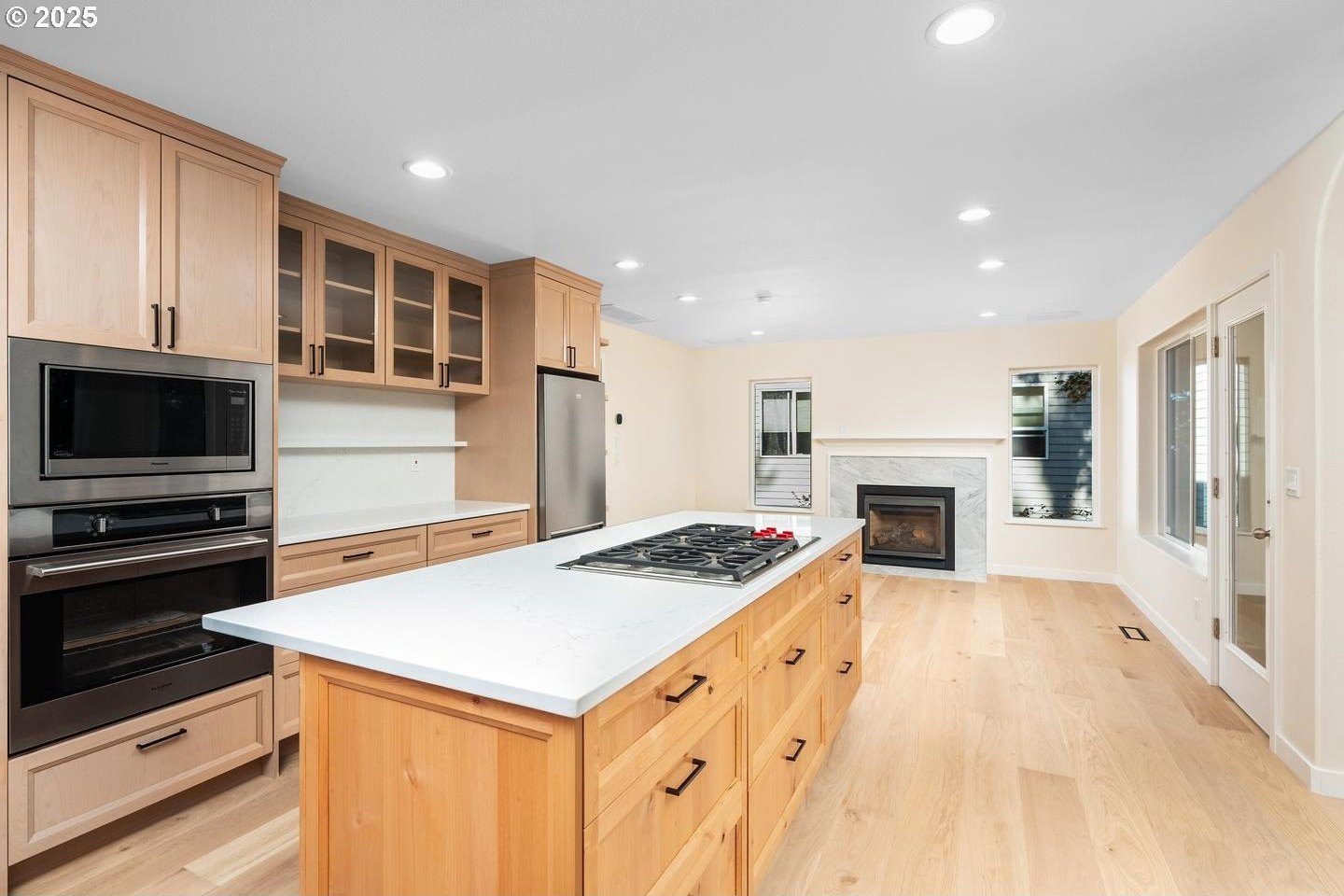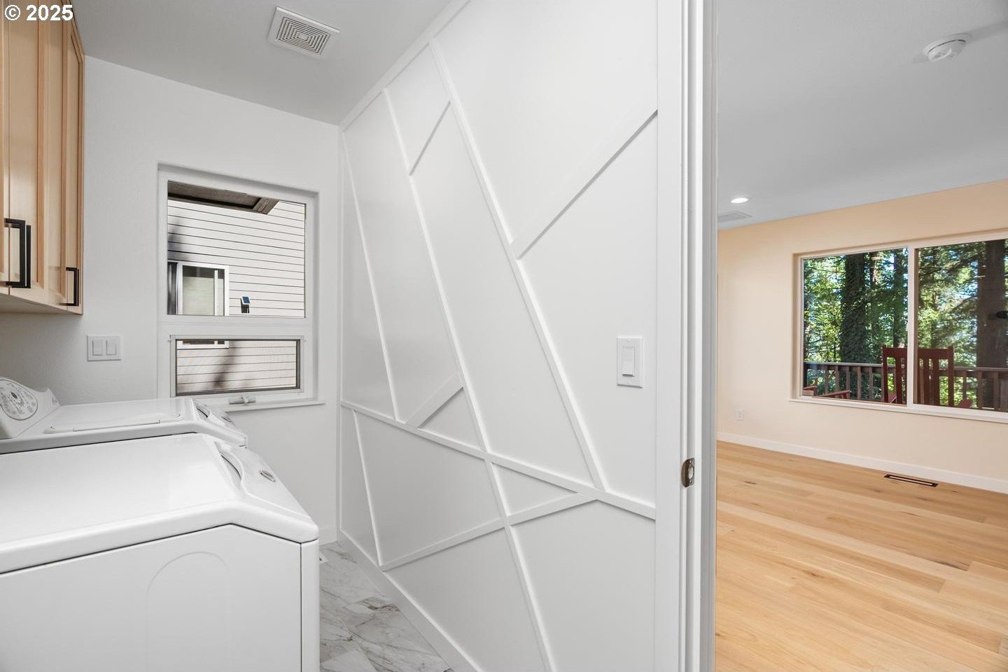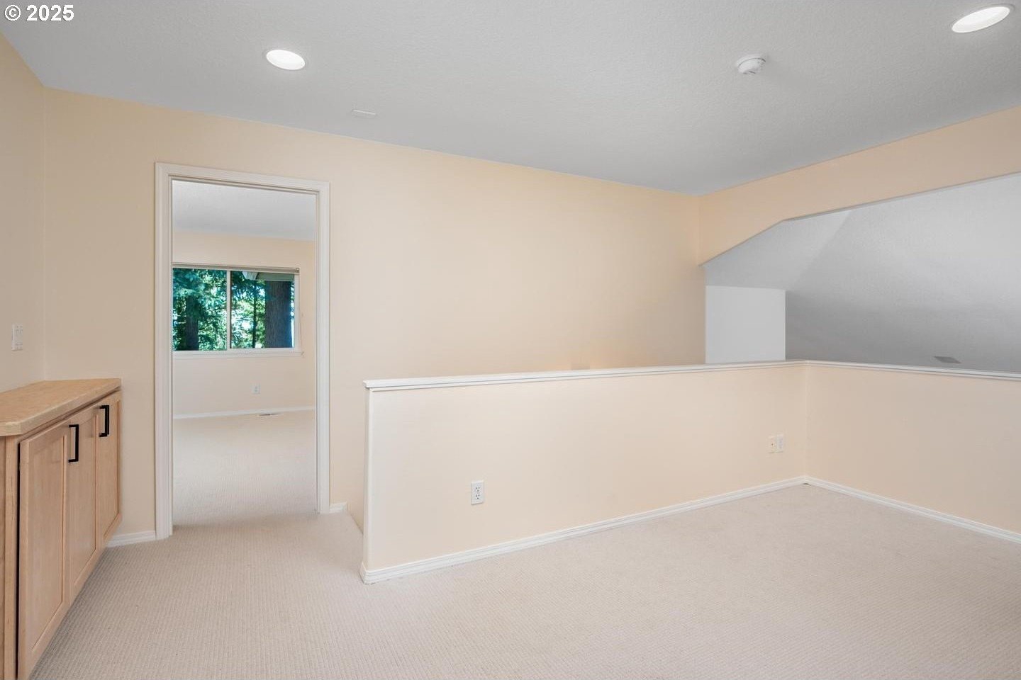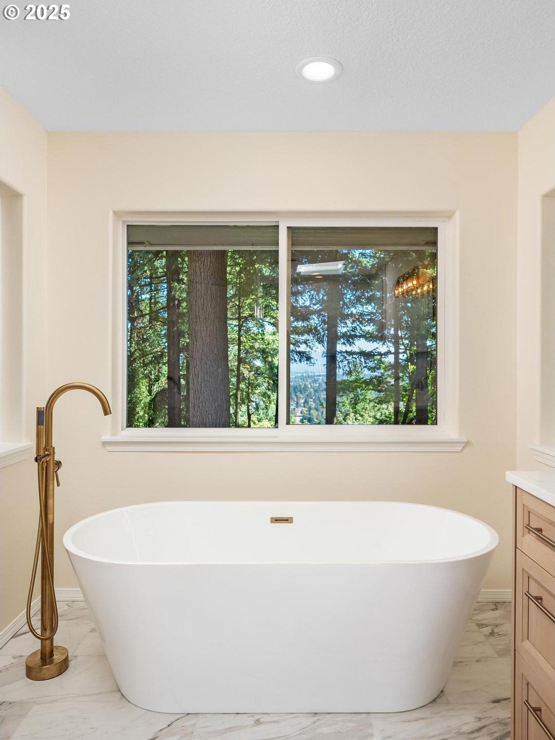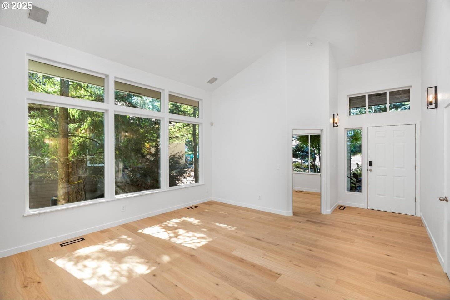 Perched atop Rocky Butte in a quiet cul-de-sac, this beautifully remodeled home offers breathtaking views and a rare private setting beside the historic landmark. Surrounded by lush evergreens, it seamlessly blends modern updates with natural beauty. Step inside to soaring vaulted ceilings and light-filled living spaces, where walls of windows frame serene forest views. The spacious kitchen boasts quartz counters, a large island with a gas Wolf cooktop, new cabinetry, top-of-the-line appliances, and gleaming hardwood floors—all opening to a cozy family room with a fireplace. Glass door leads to a large deck with amazing views, perfect for morning coffee or evening gatherings. Upstairs, the owner’s suite is a peaceful retreat with stunning views, a walk-in closet, and a spa-like bath featuring brushed gold fixtures, heated tile floors, and a walk-in shower. Throughout the home, you’ll find new cabinetry, quartz counters, tile, flooring, designer finishes, and contemporary lighting. Nestled next to the historic Rocky Butte Viewpoint Park with access to a 2.7-mile bike/hike trail, this home offers both tranquility and convenience—just minutes from city amenities. Remodeled in 2024 with new presidential roof, furnace, water heater, plumbing, electrical, SS appliances, cabinets, quartz counters, tile, & much more. A rare opportunity to own a pristine, one-of-a-kind retreat! [Home Energy Score = 4. HES Report at https://rpt.greenbuildingregistry.com/hes/OR10232648]